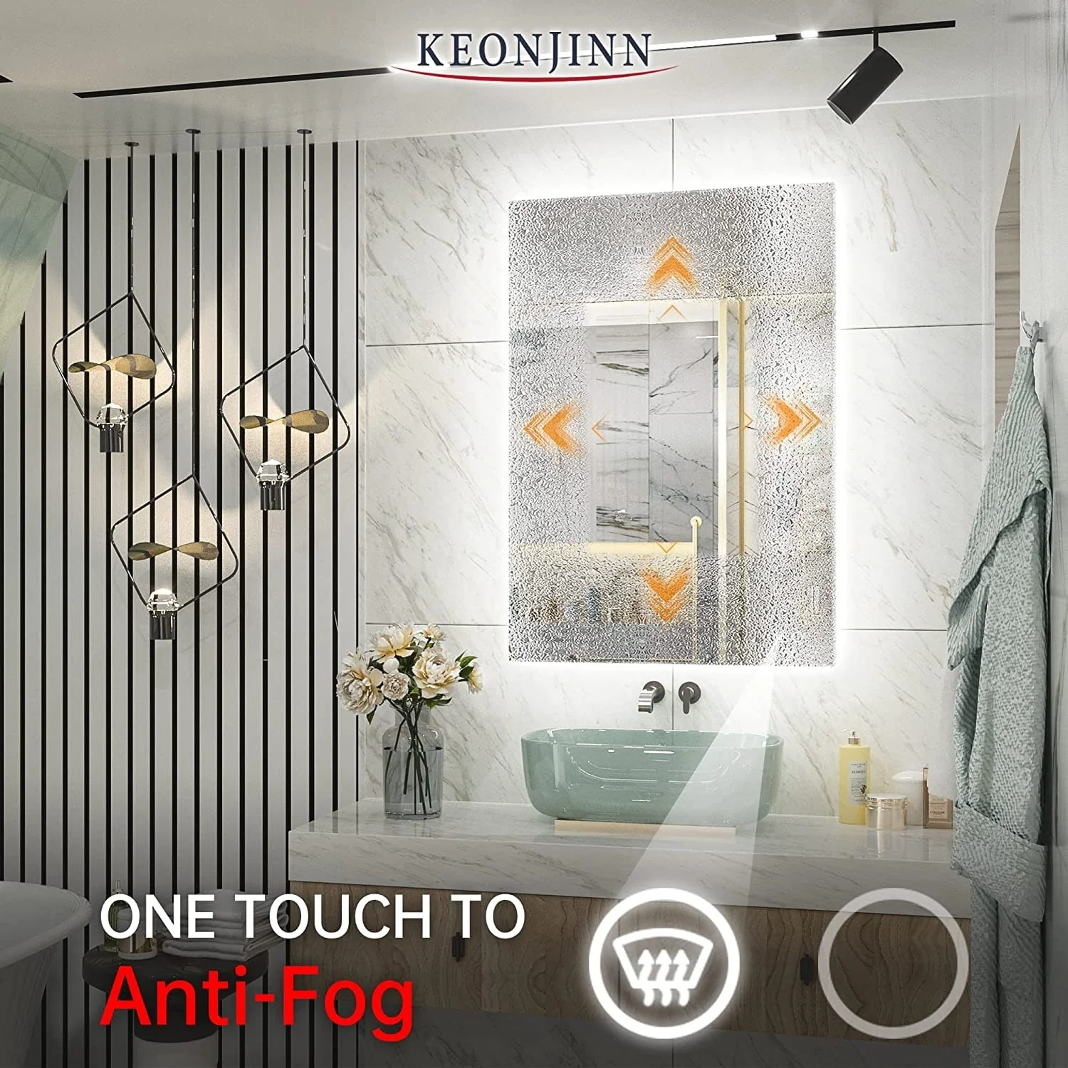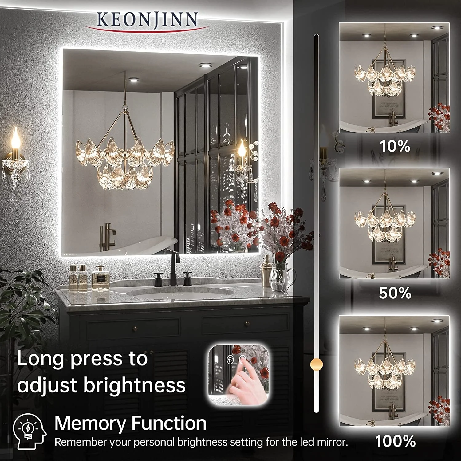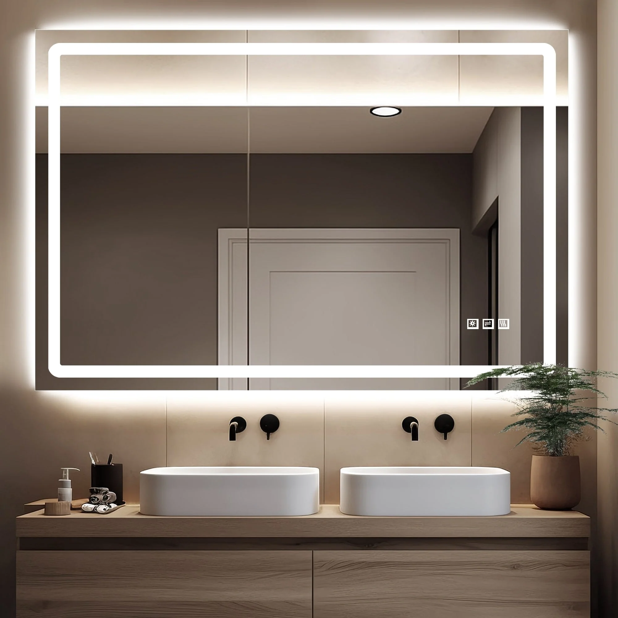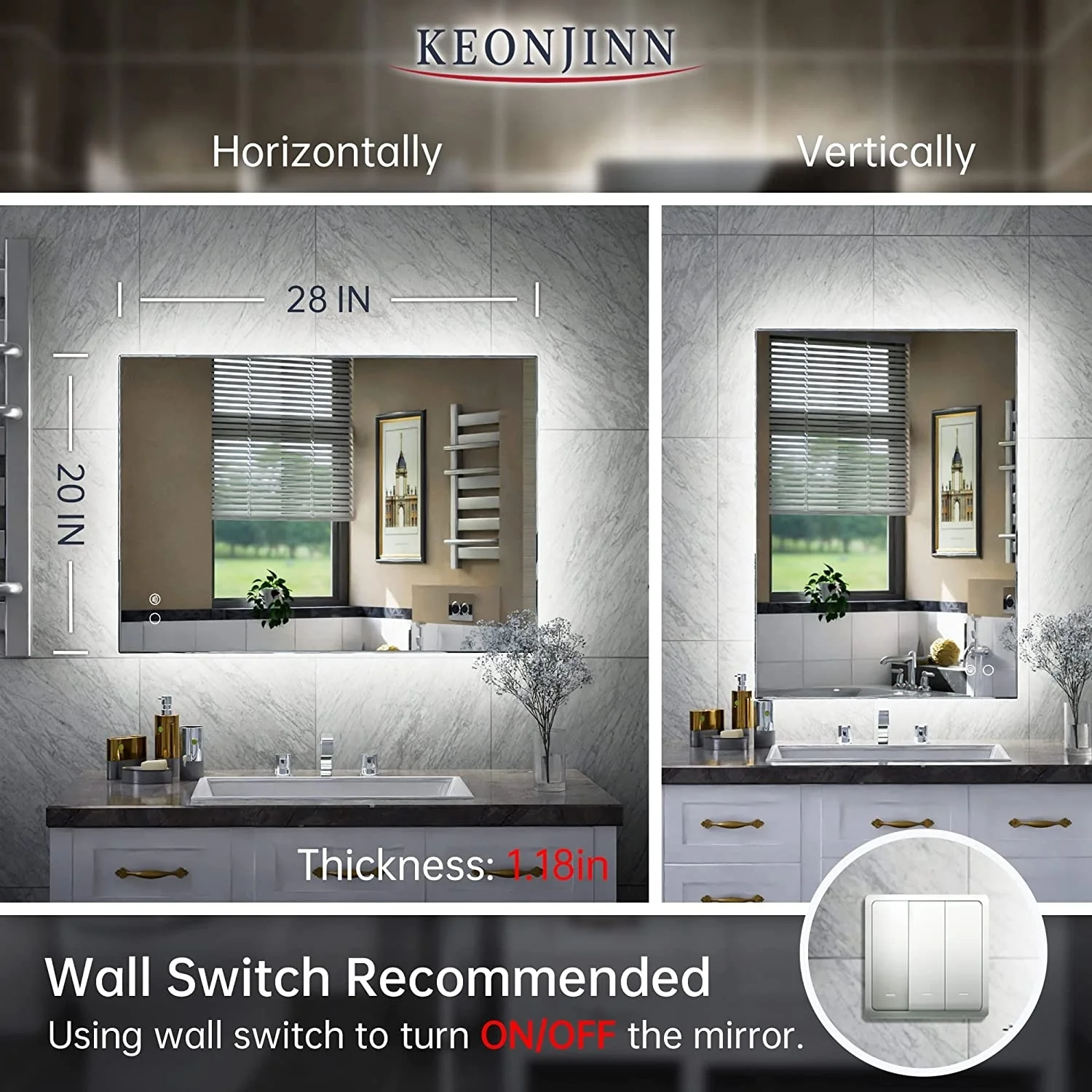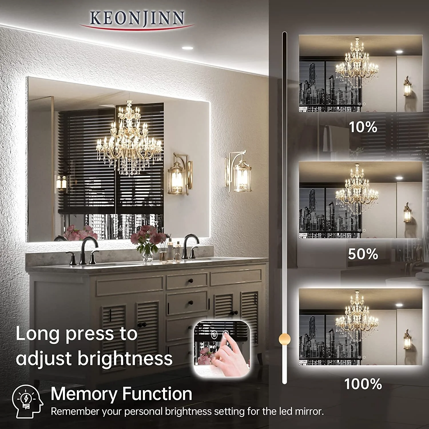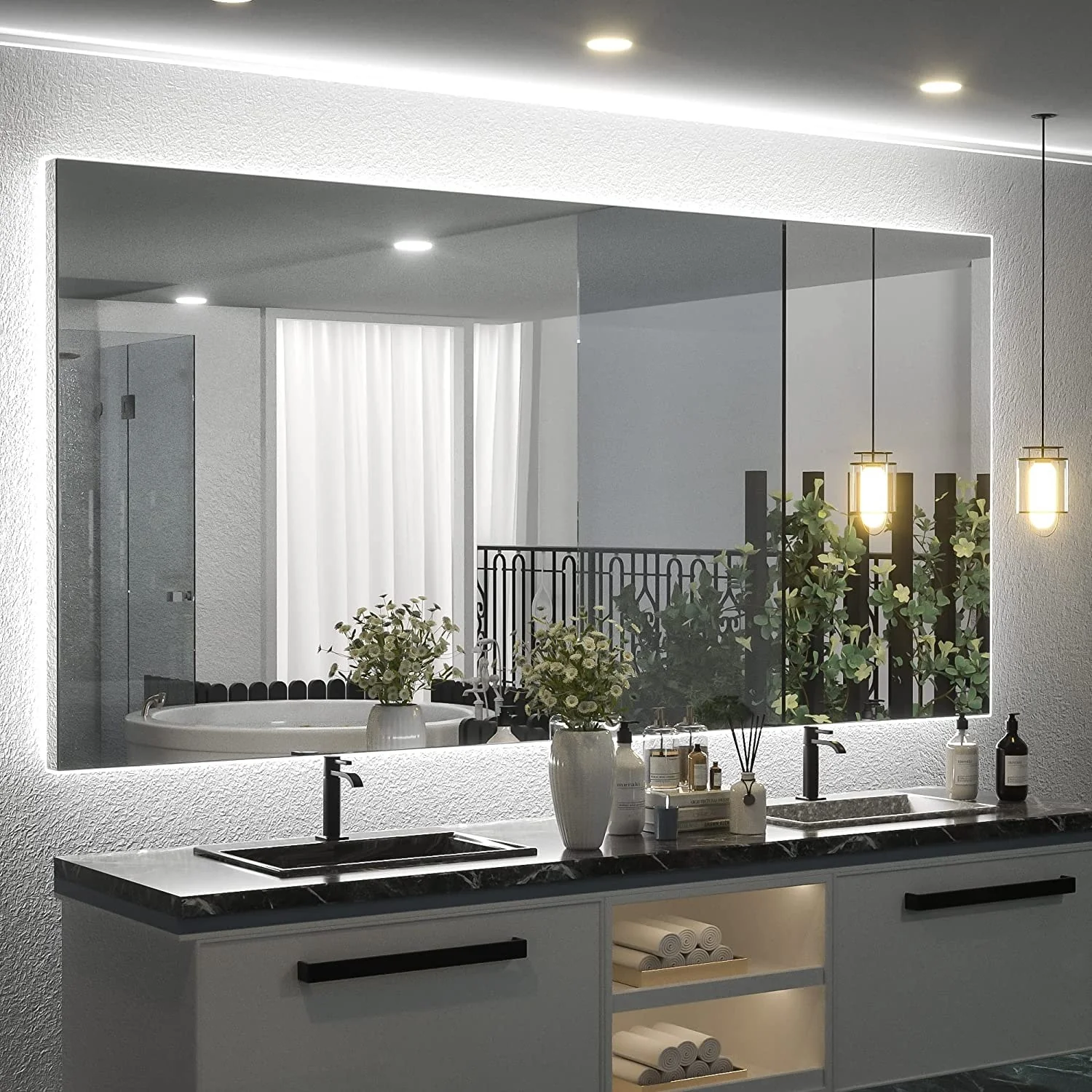 KIOTEE Super Bright Anti-fog Frameless Dimmable Mirror with Backlit and Front Lighting and 3-Year Warranty