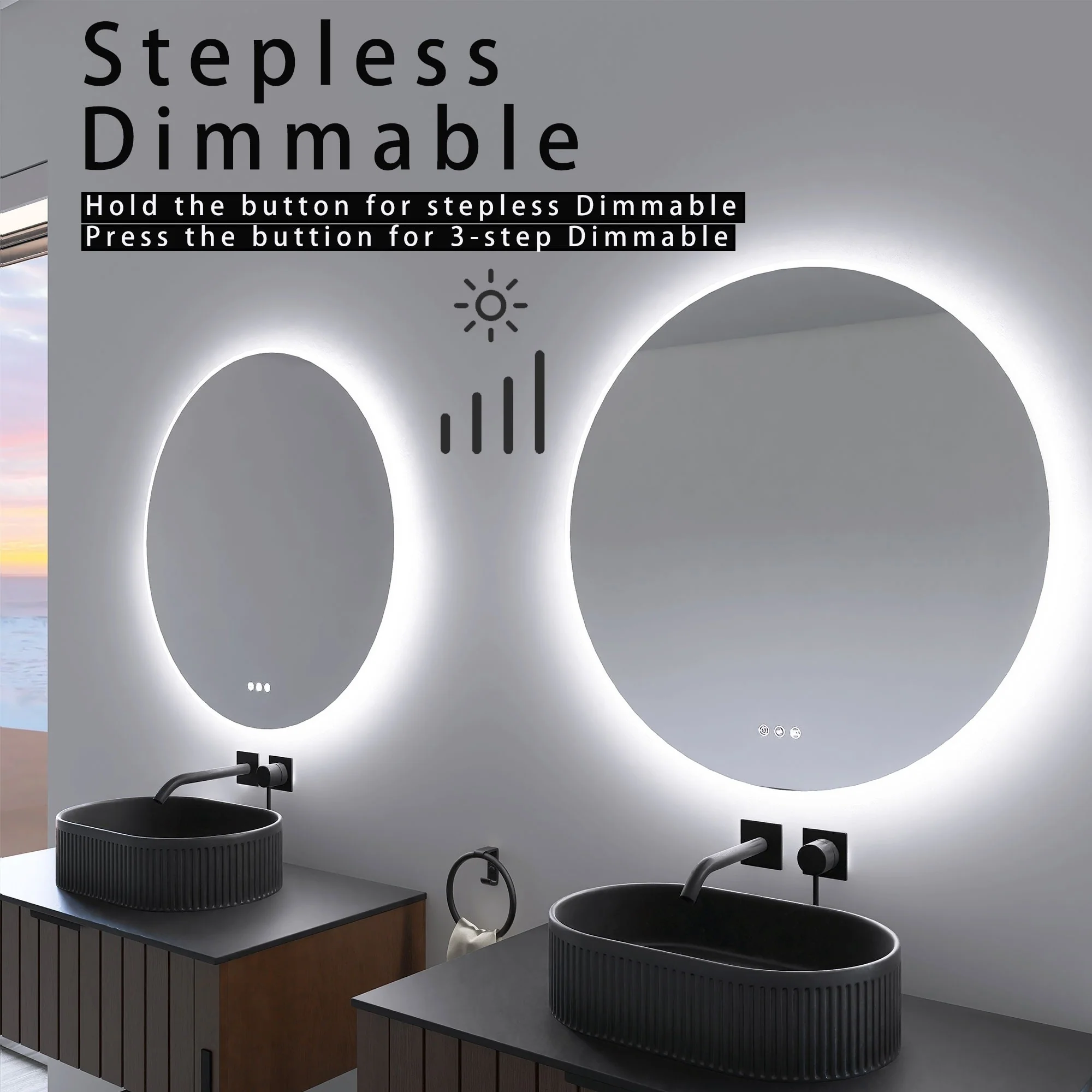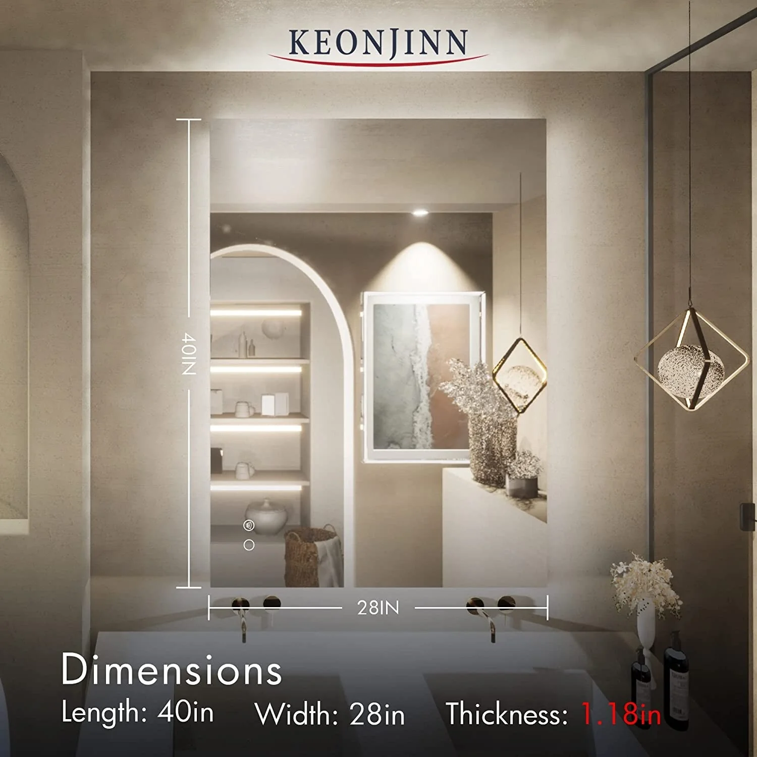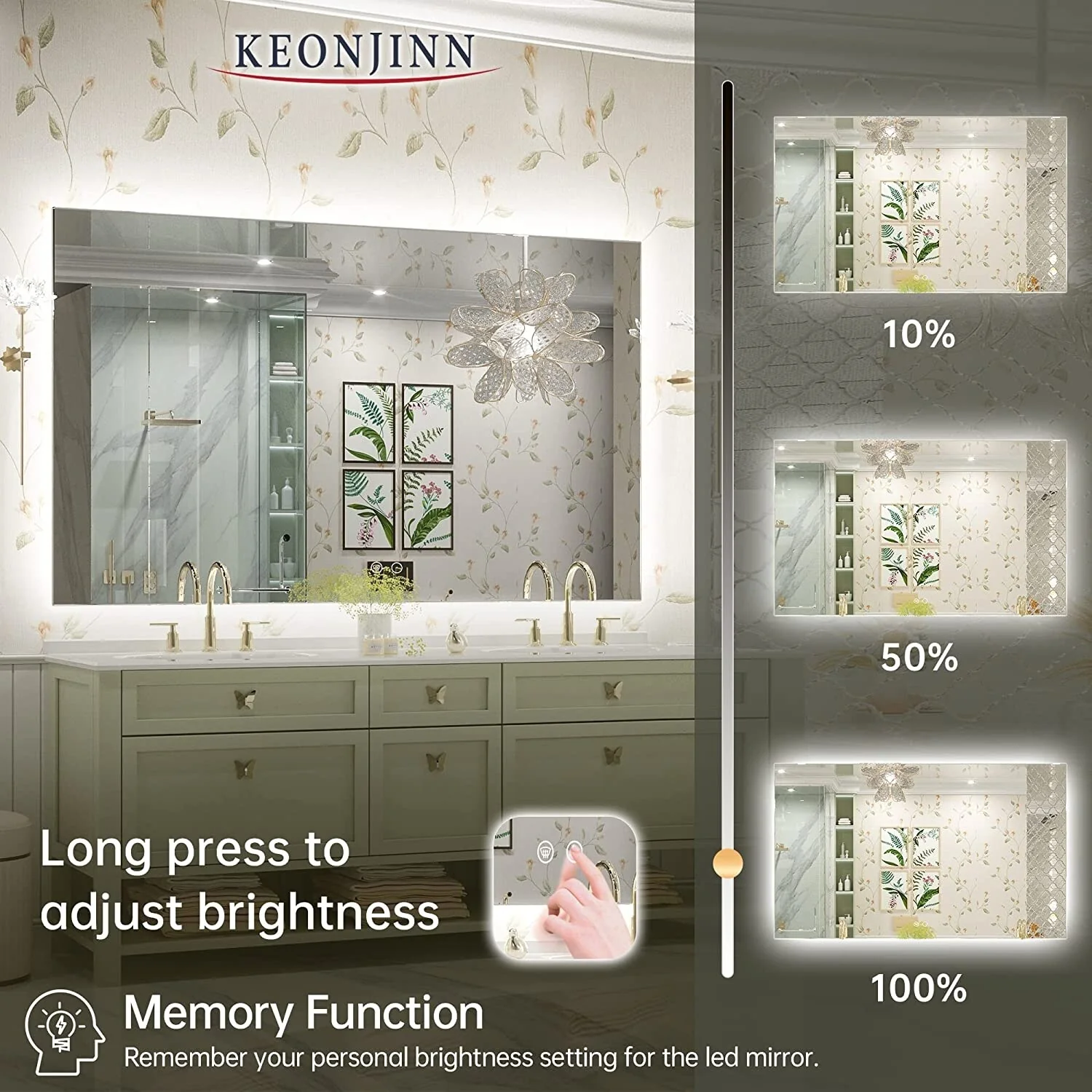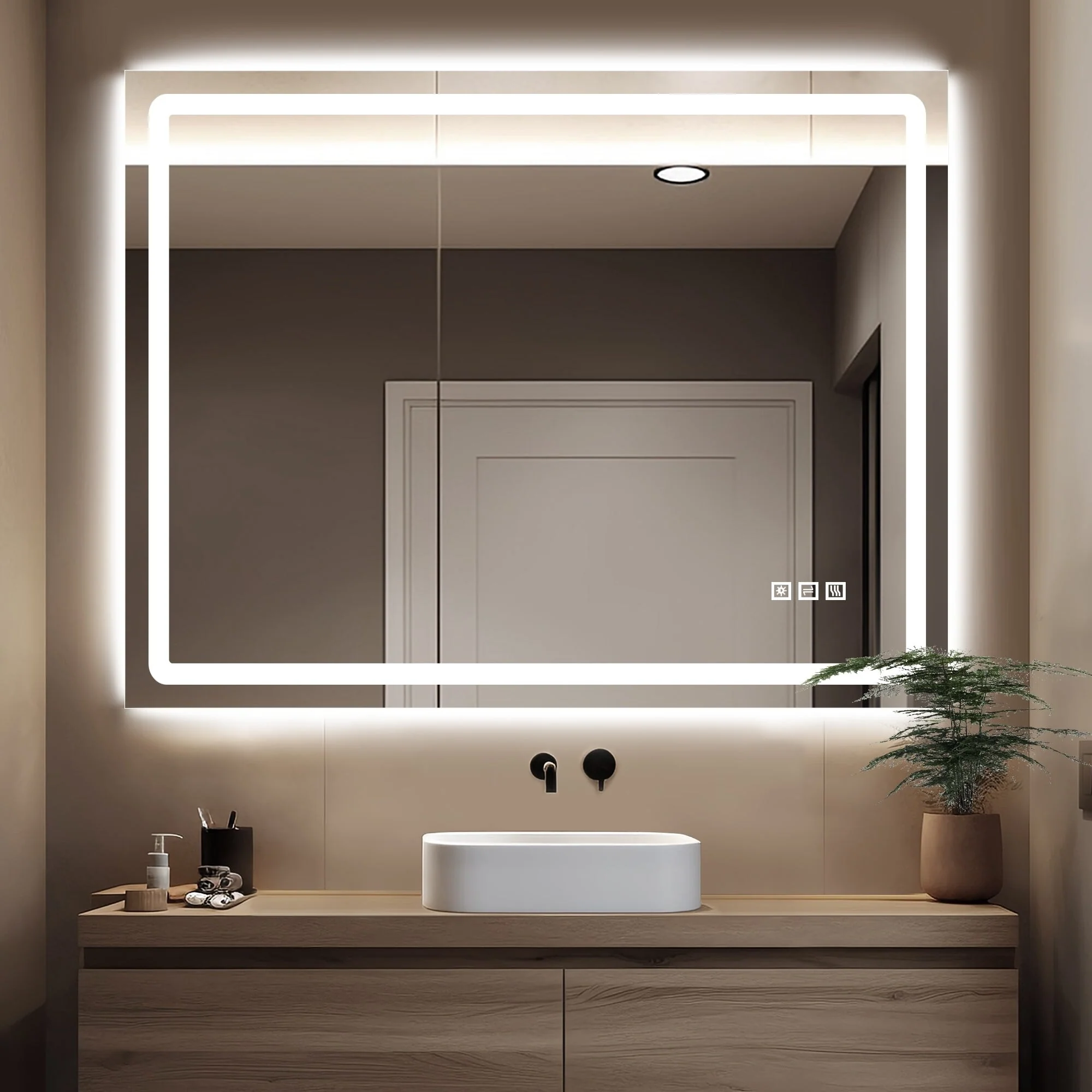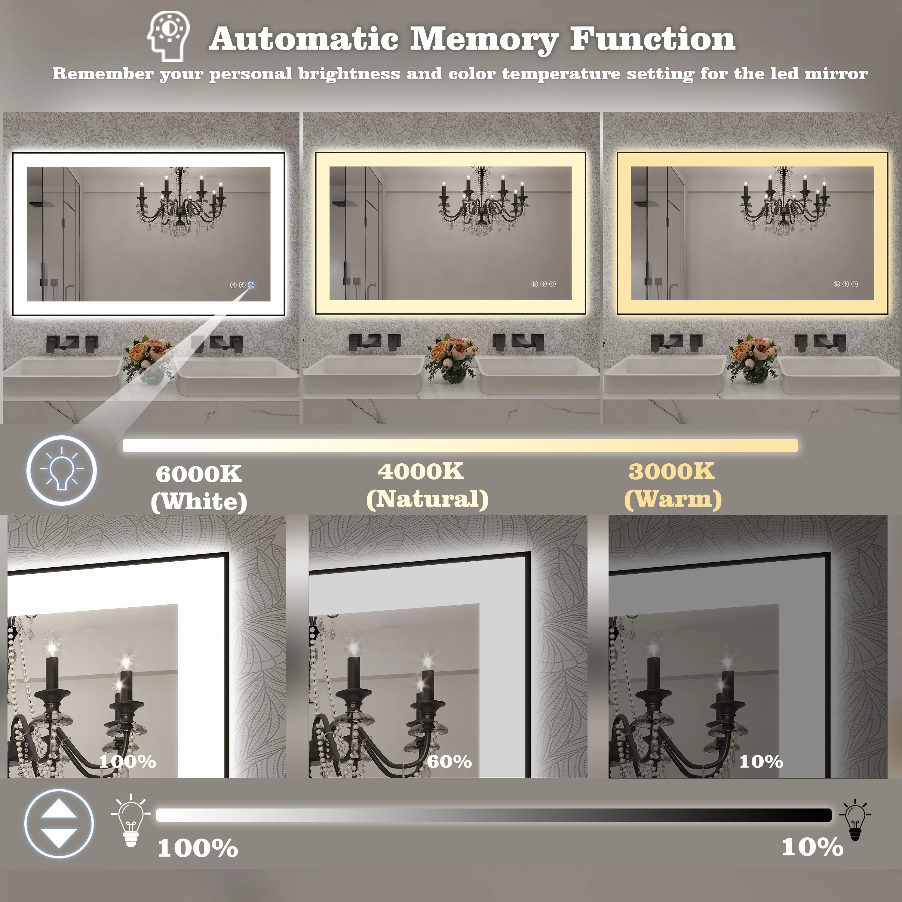KIOTEE Super Bright Anti-fog Frameless Dimmable Mirror with Backlit and Front Lighting and 3-Year Warranty