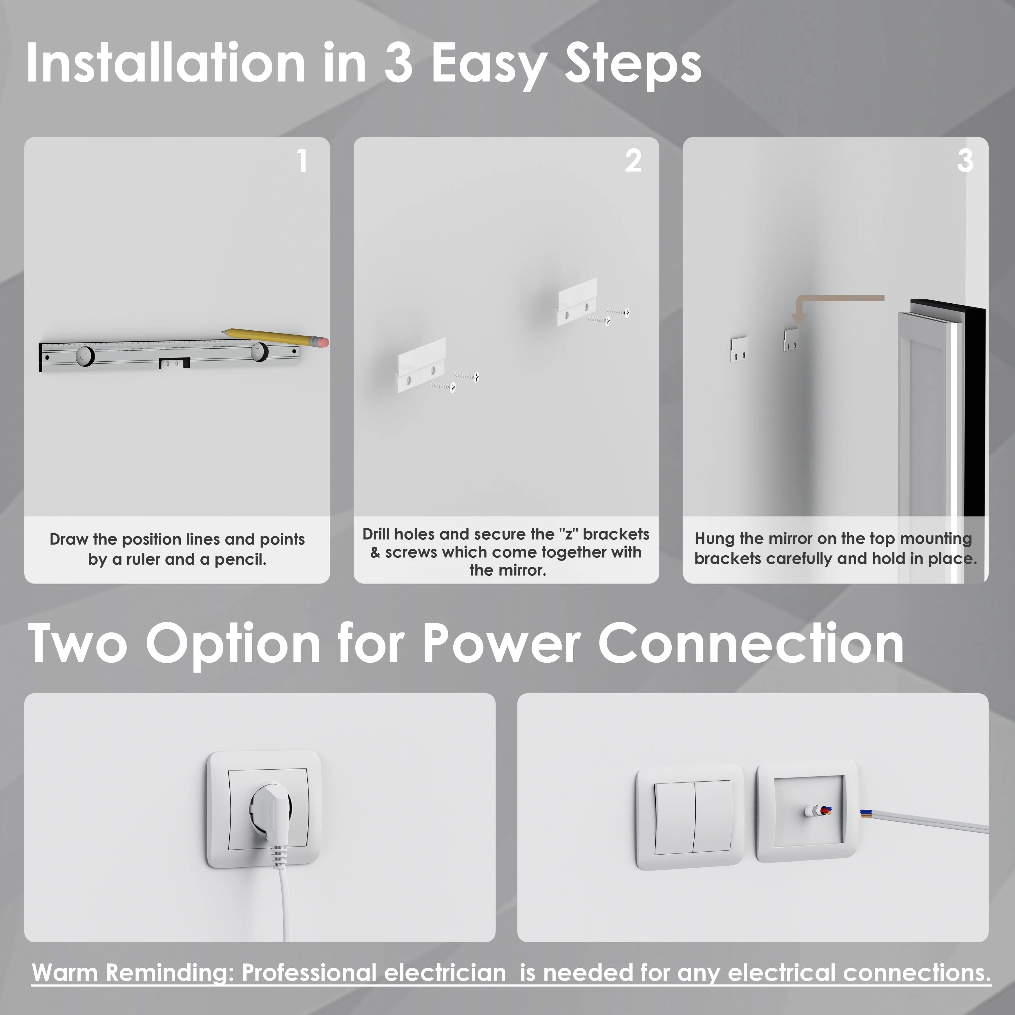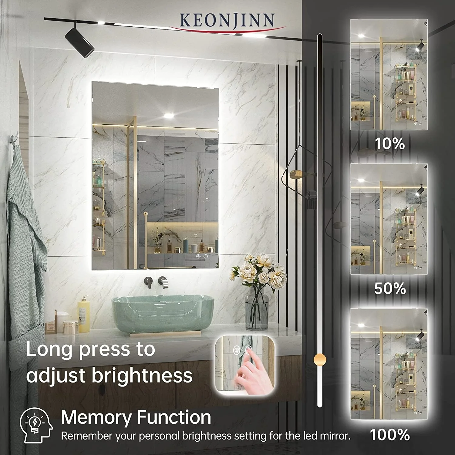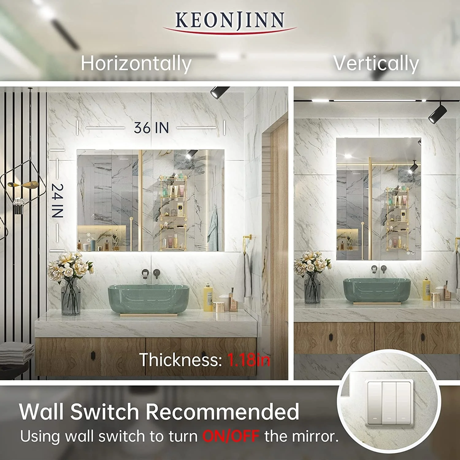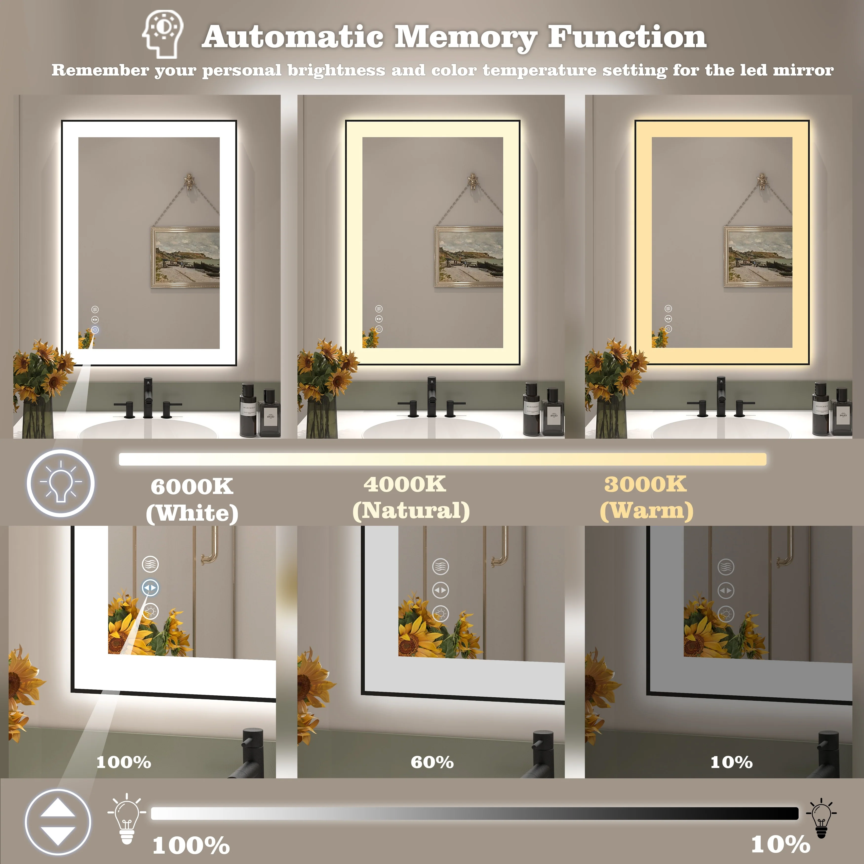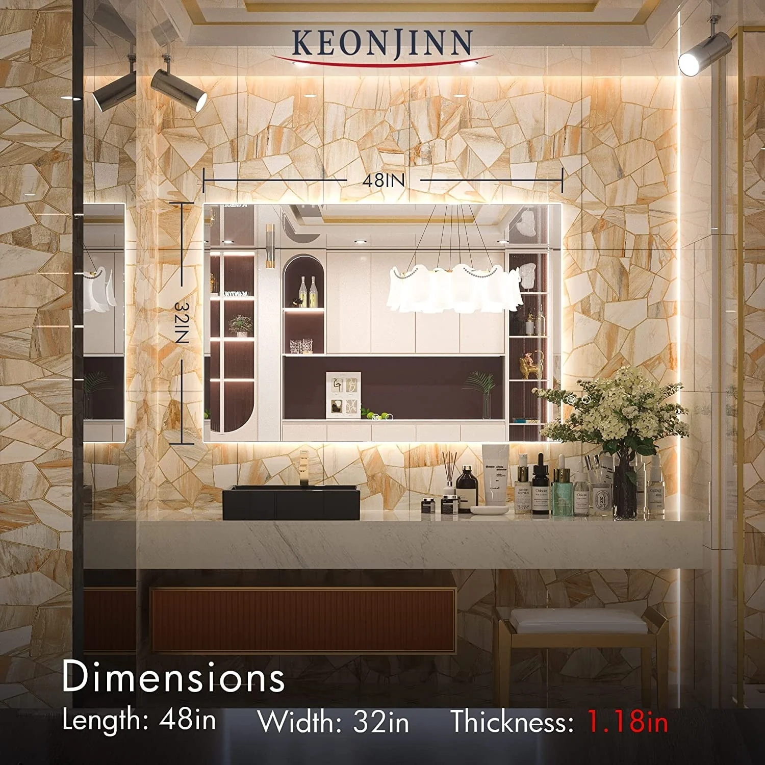 KIOTEE Super Bright Anti-fog Frameless Dimmable Mirror with Backlit and Front Lighting and 3-Year Warranty