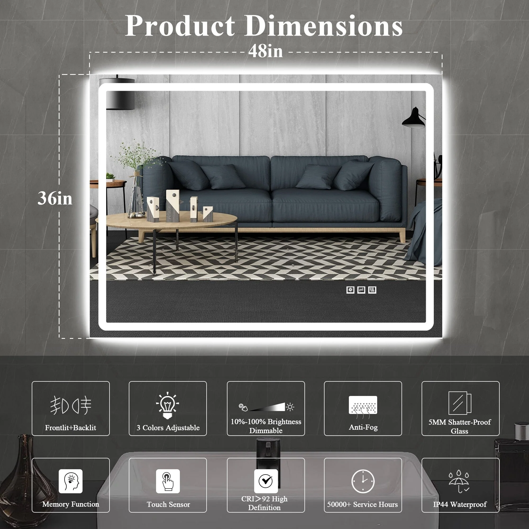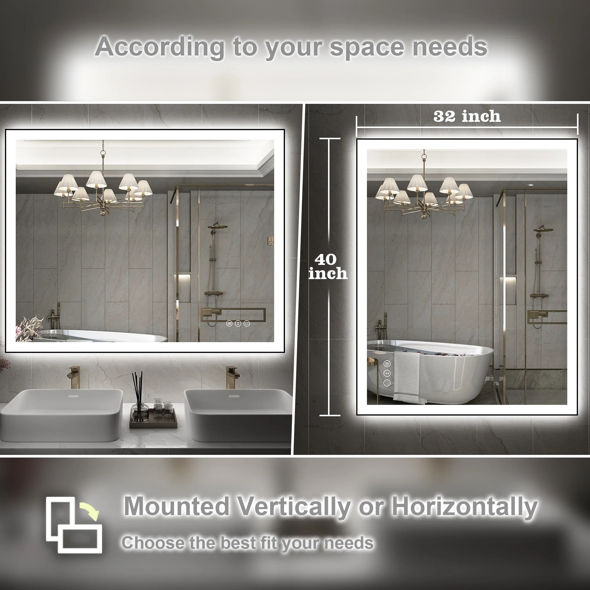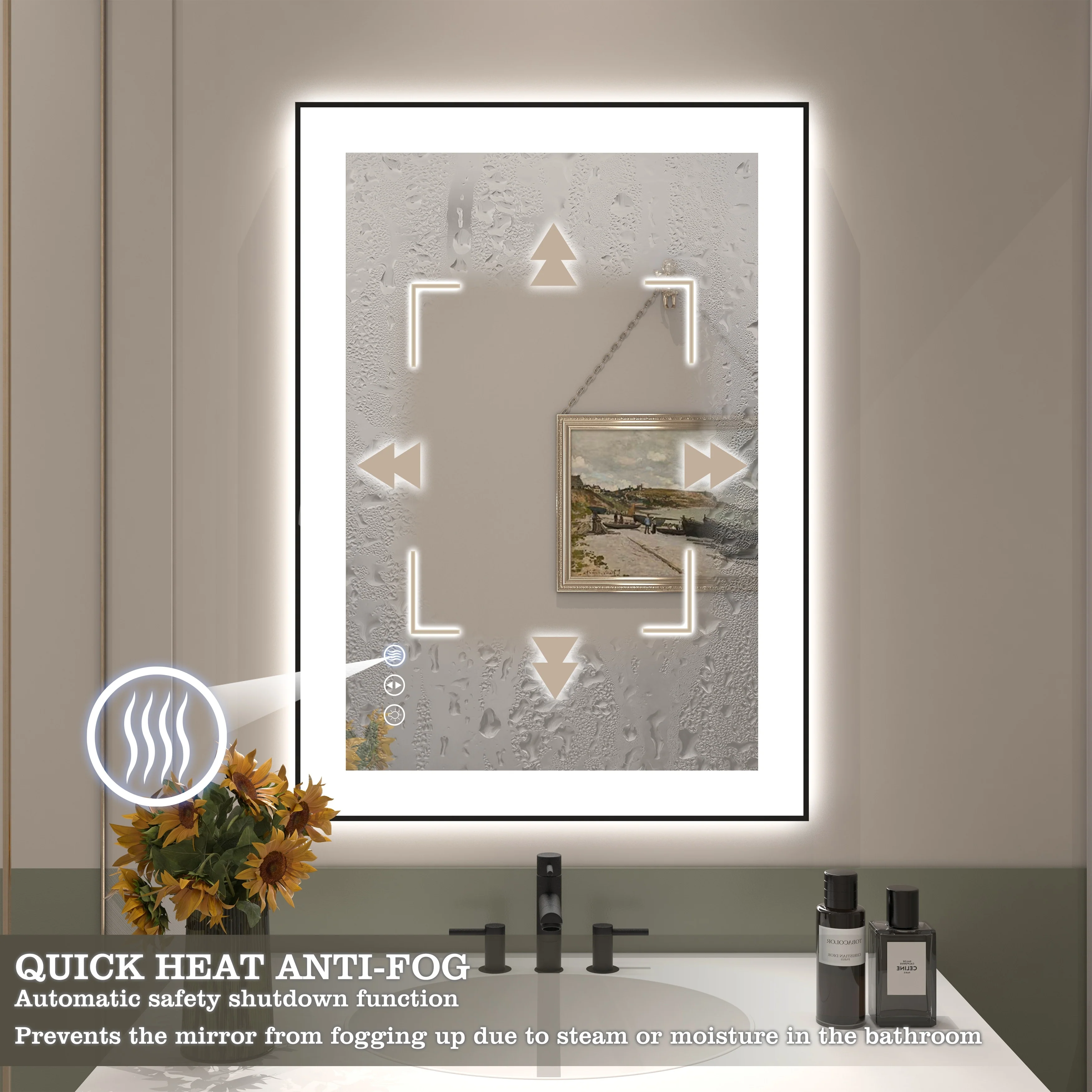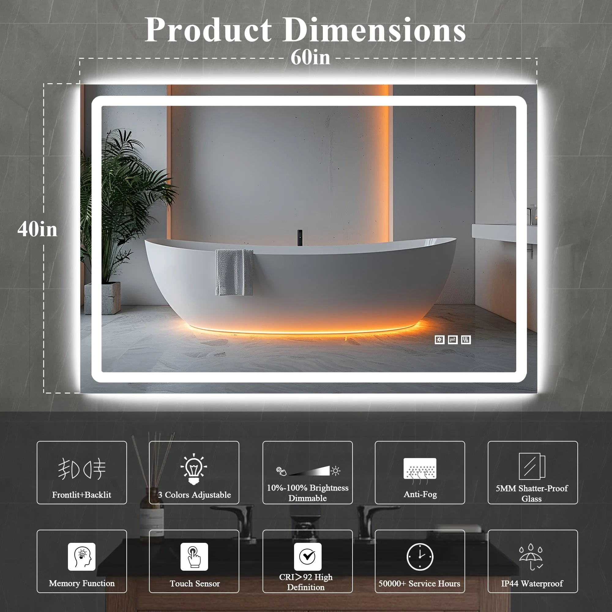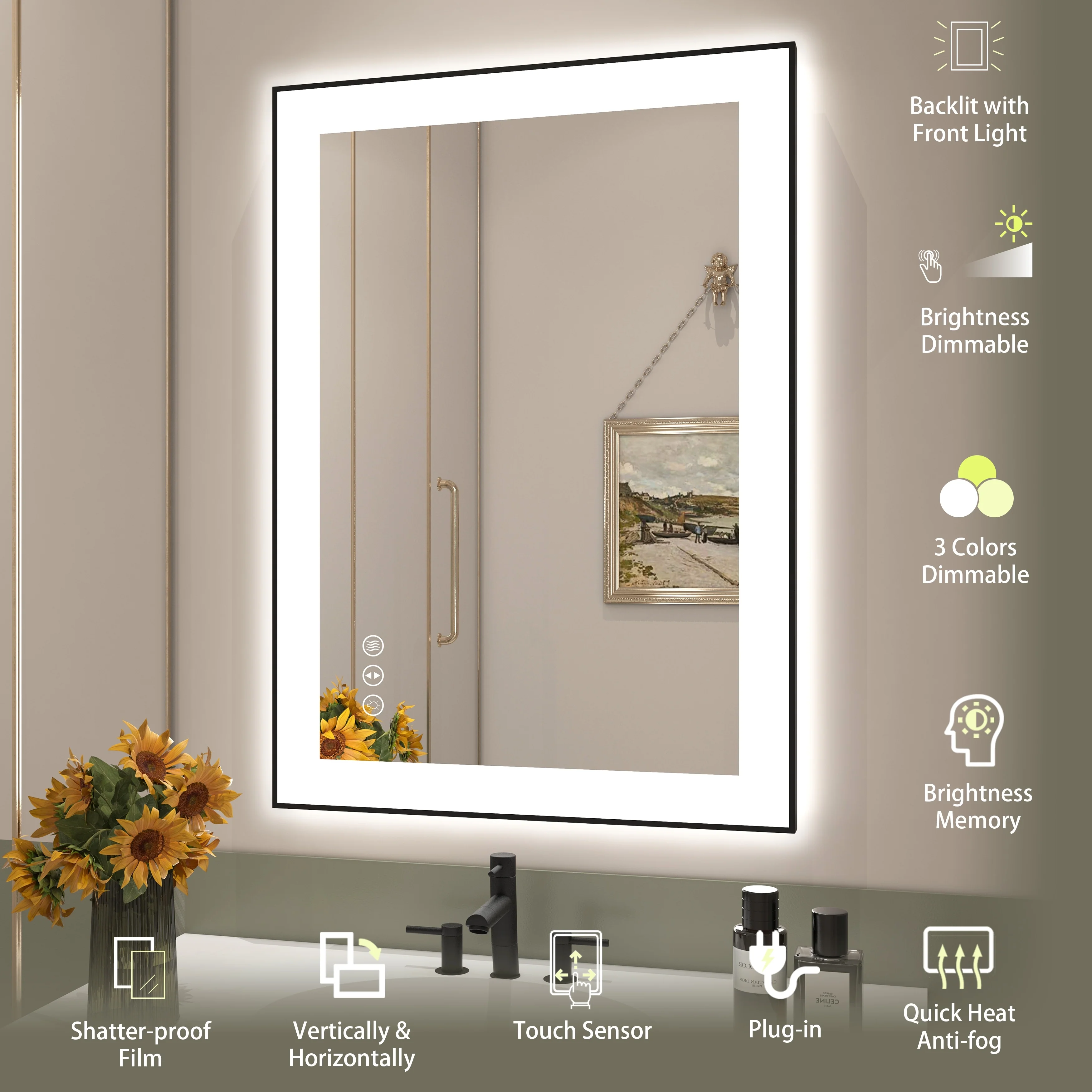 Led Bathroom Mirror w/ Lights, Lighted Vanity Mirror with Frontlit & Backlit for Vanity Room, Anti-Fog Bathroom Mirror