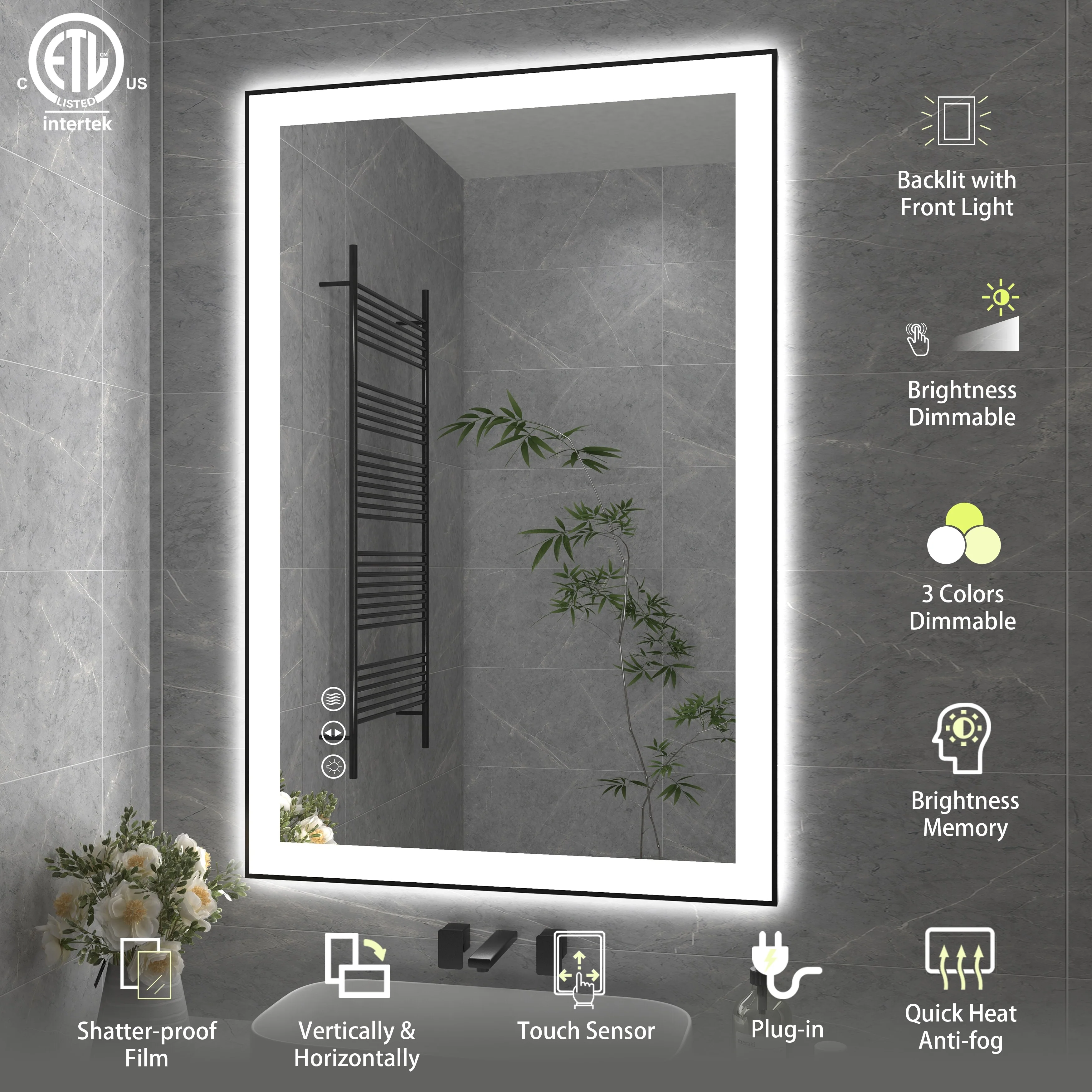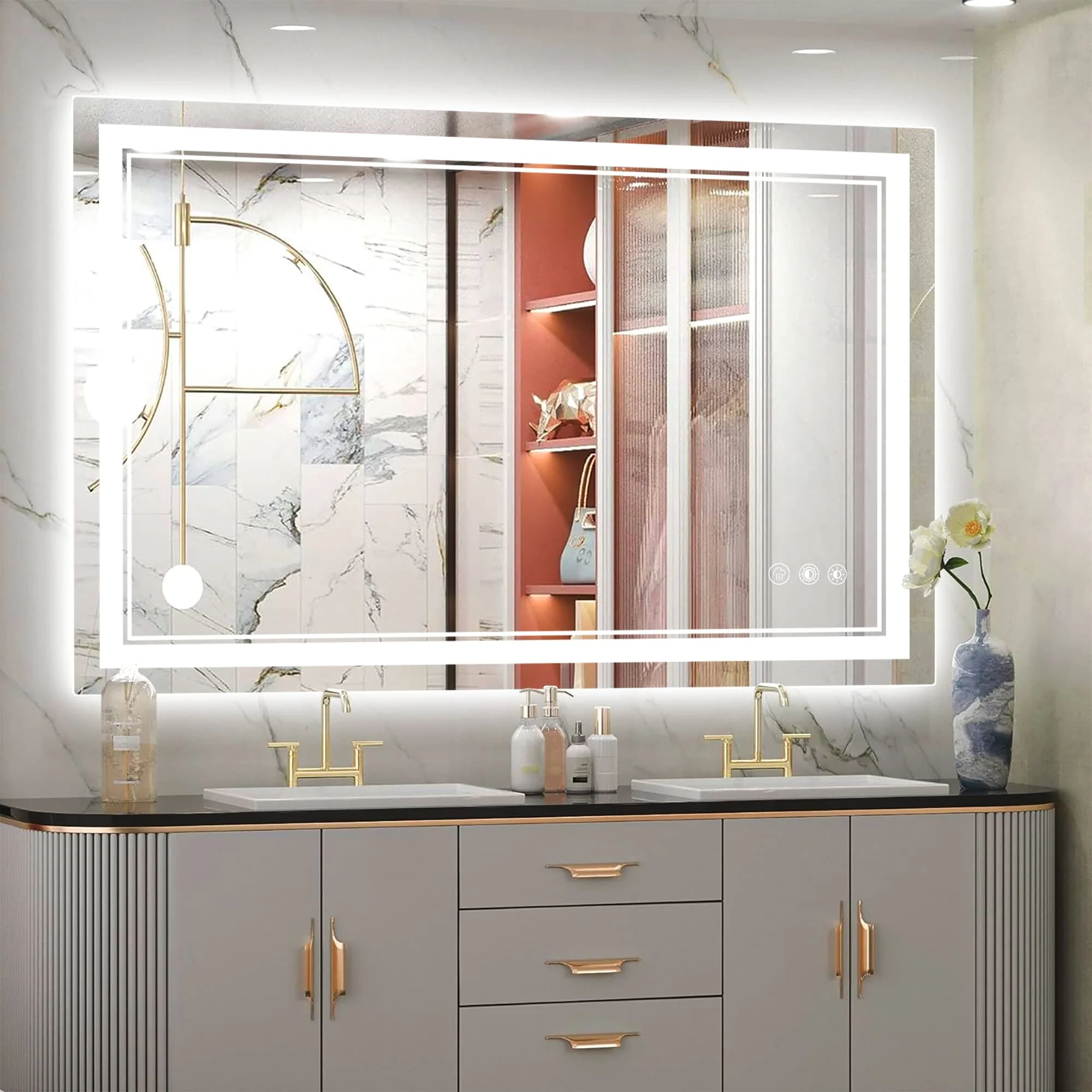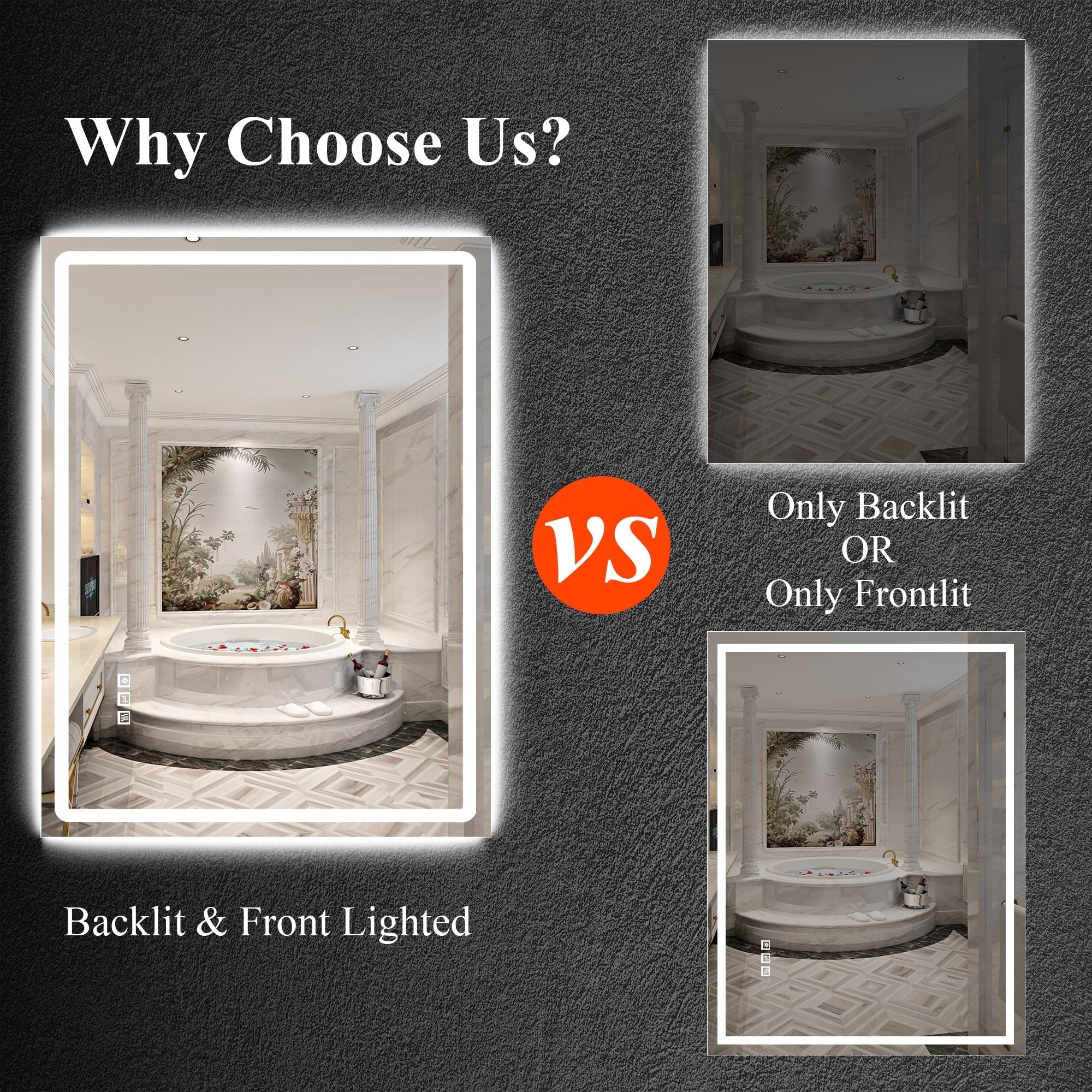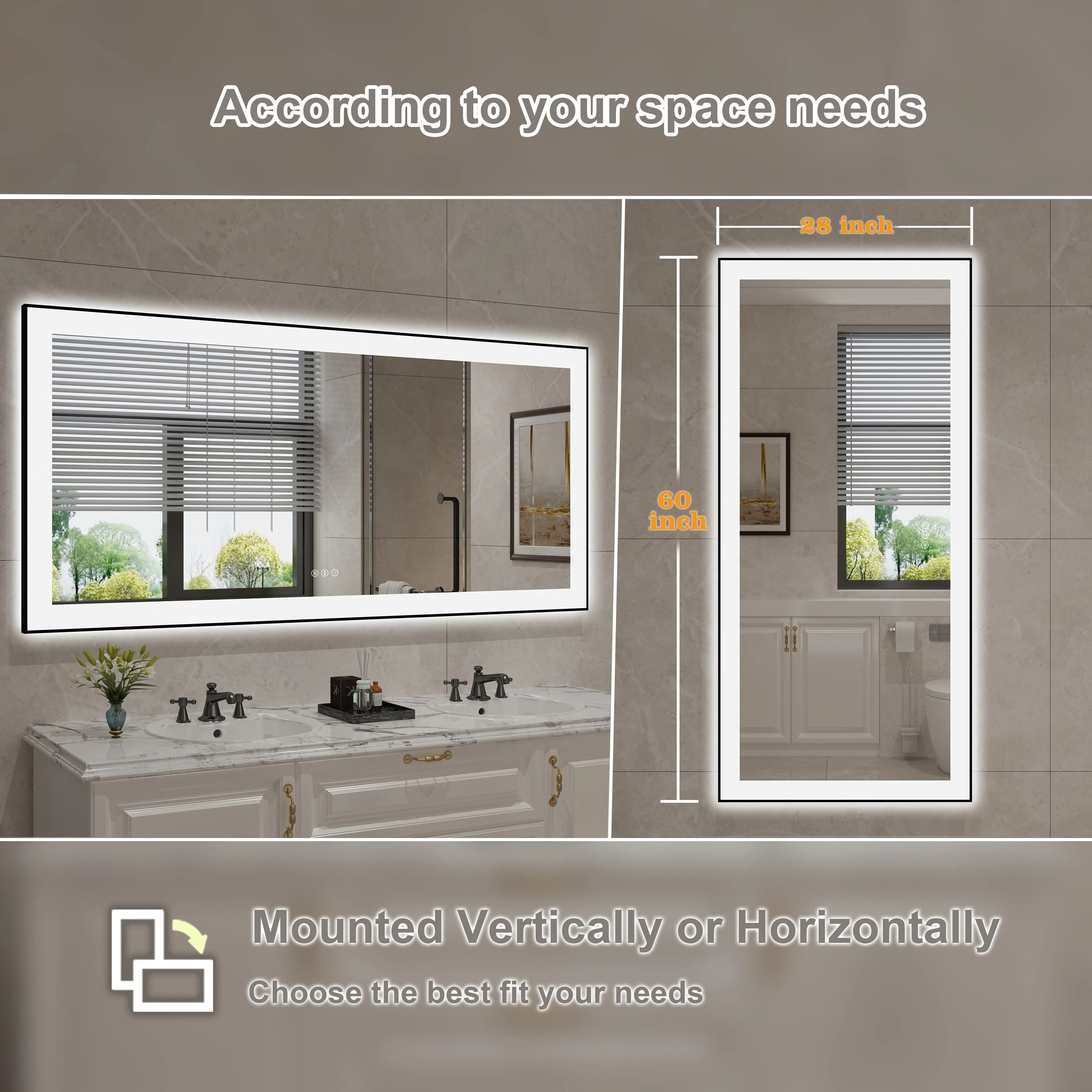 Led Bathroom Mirror w/ Lights, Lighted Vanity Mirror with Frontlit & Backlit for Vanity Room, Anti-Fog Bathroom Mirror
