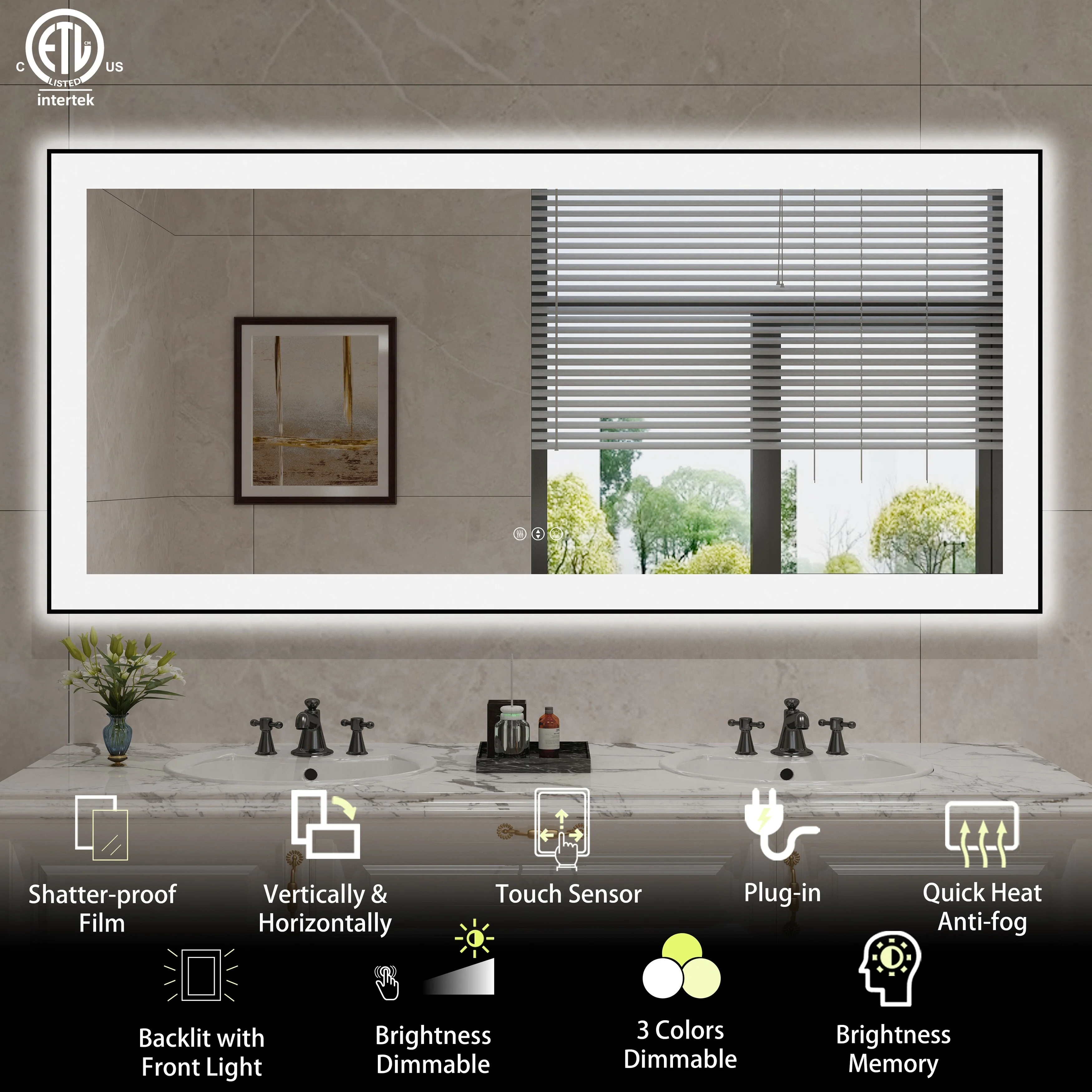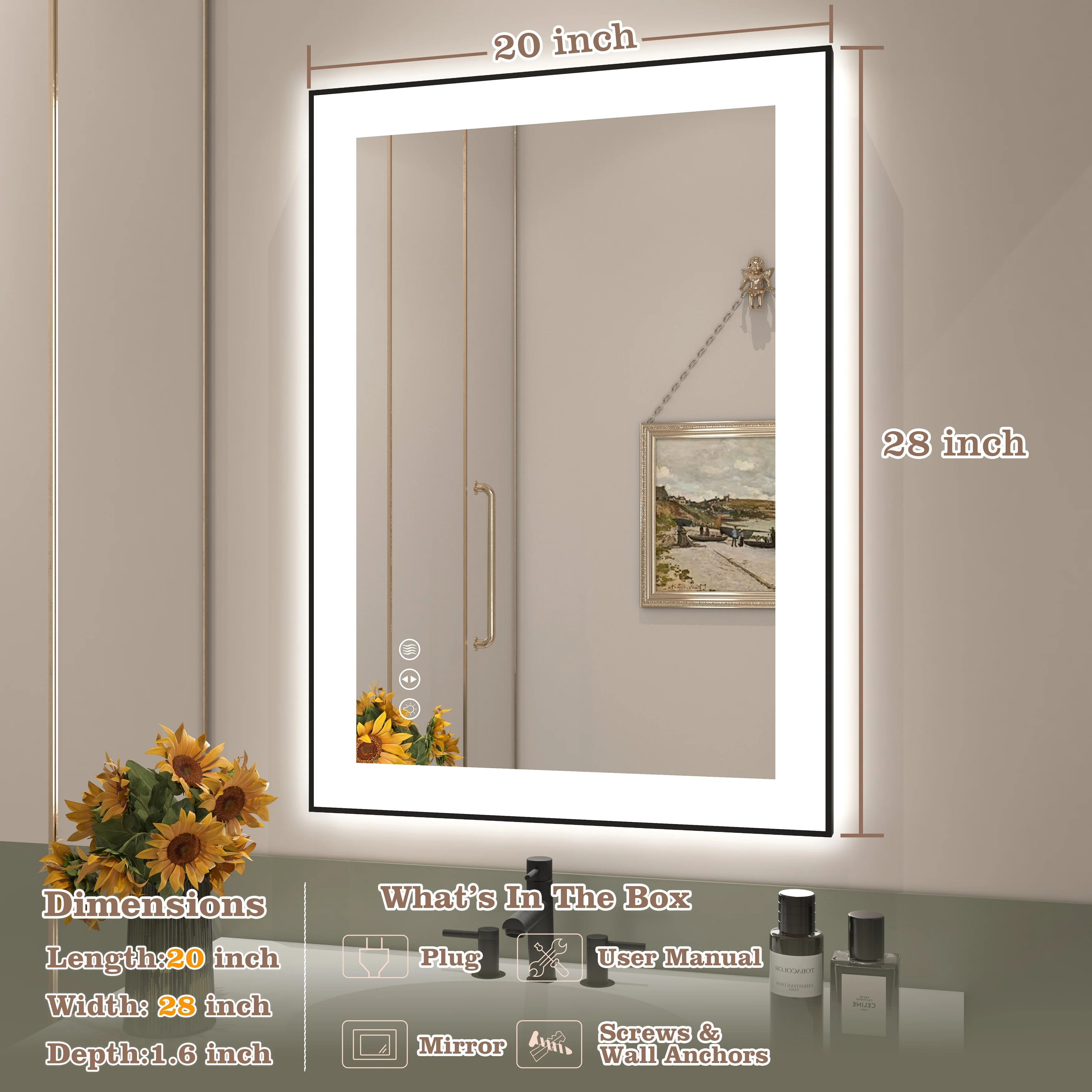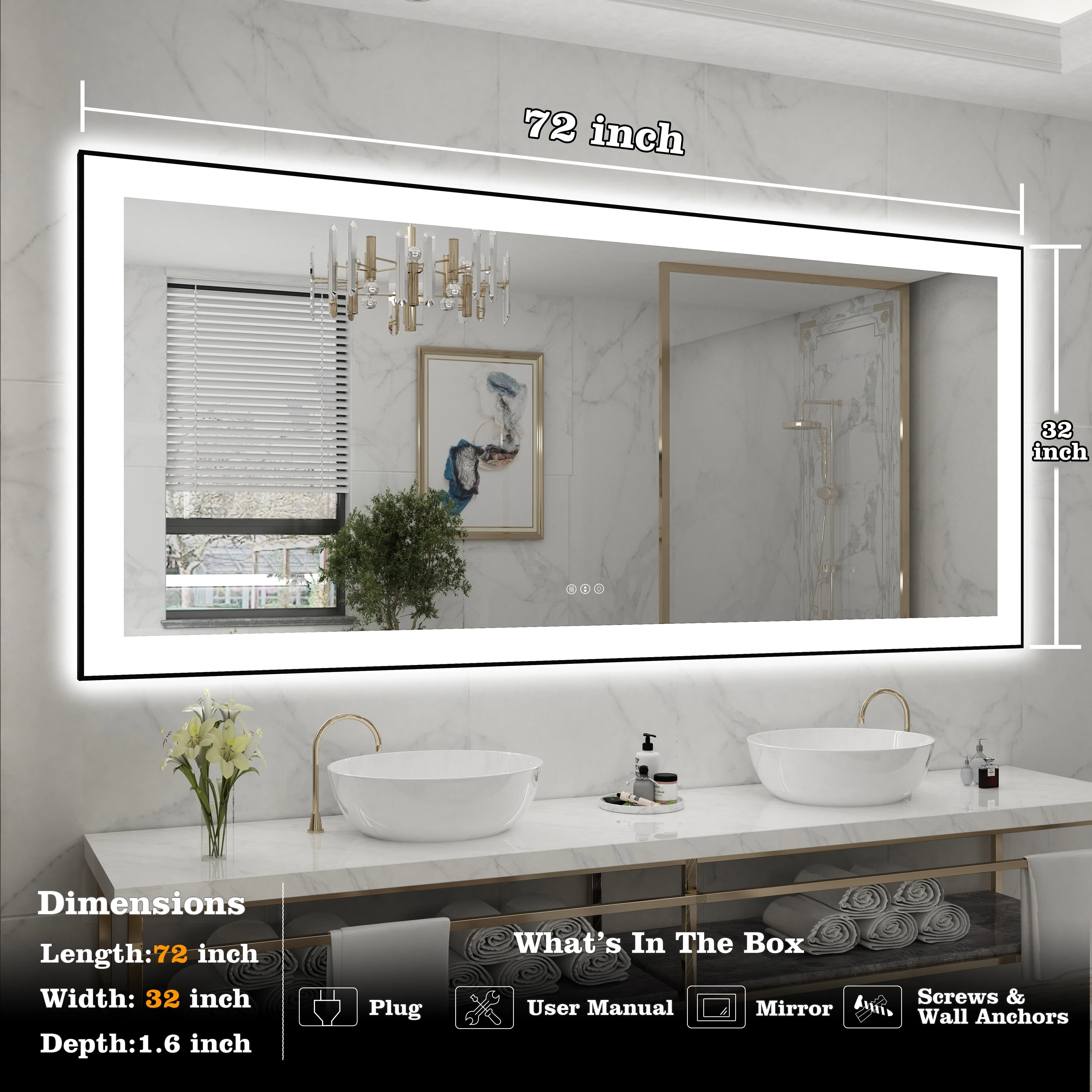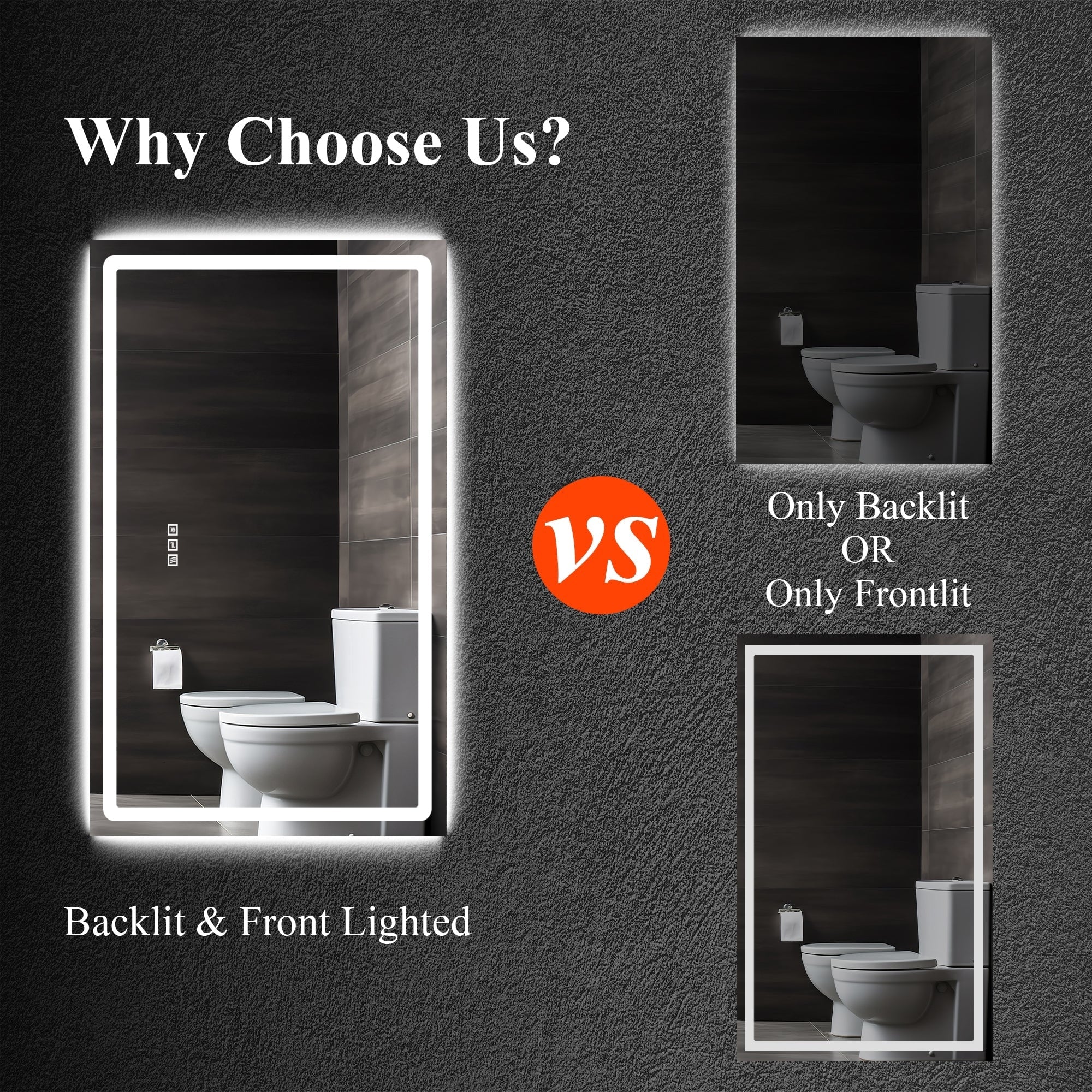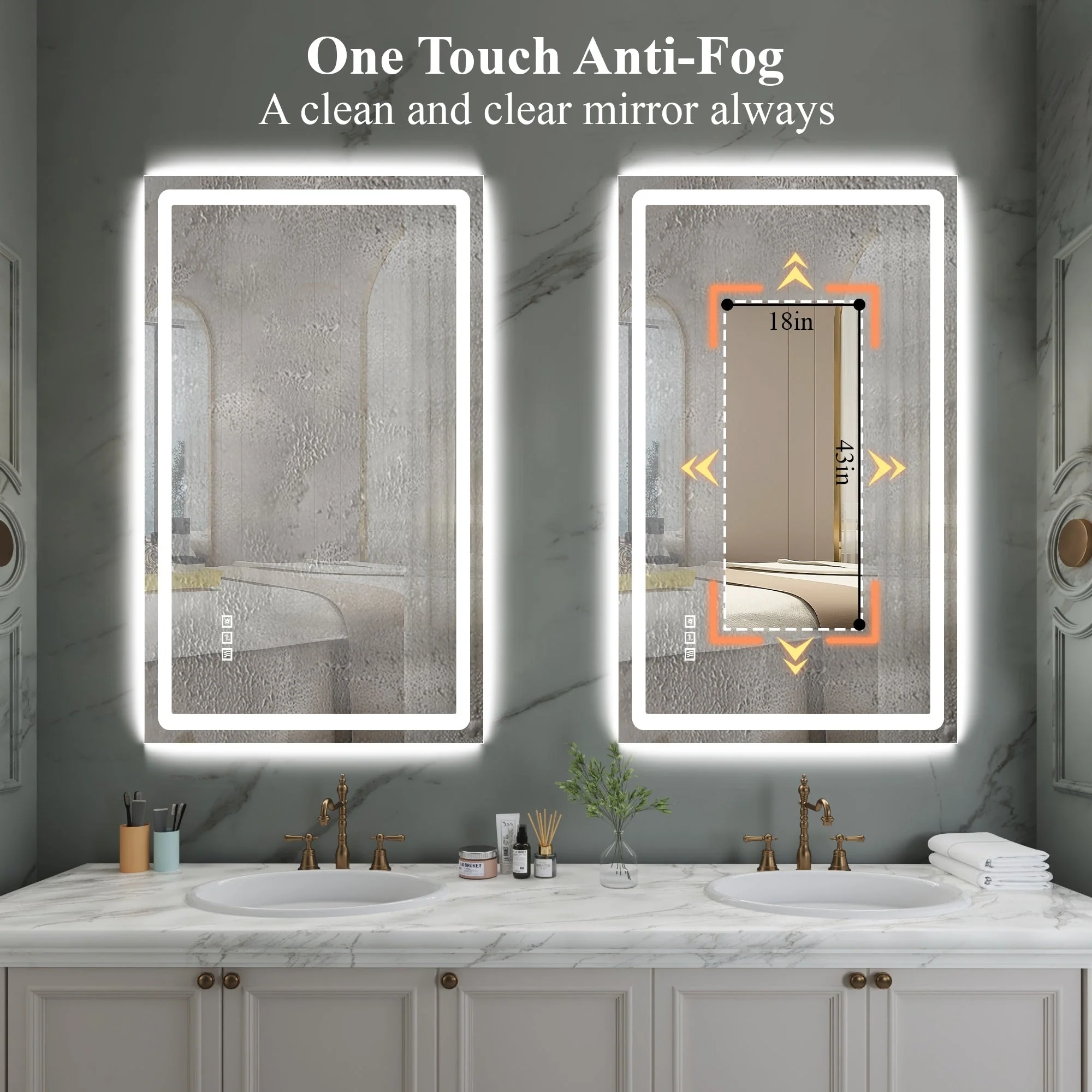 Led Bathroom Mirror w/ Lights, Lighted Vanity Mirror with Frontlit & Backlit for Vanity Room, Anti-Fog Bathroom Mirror