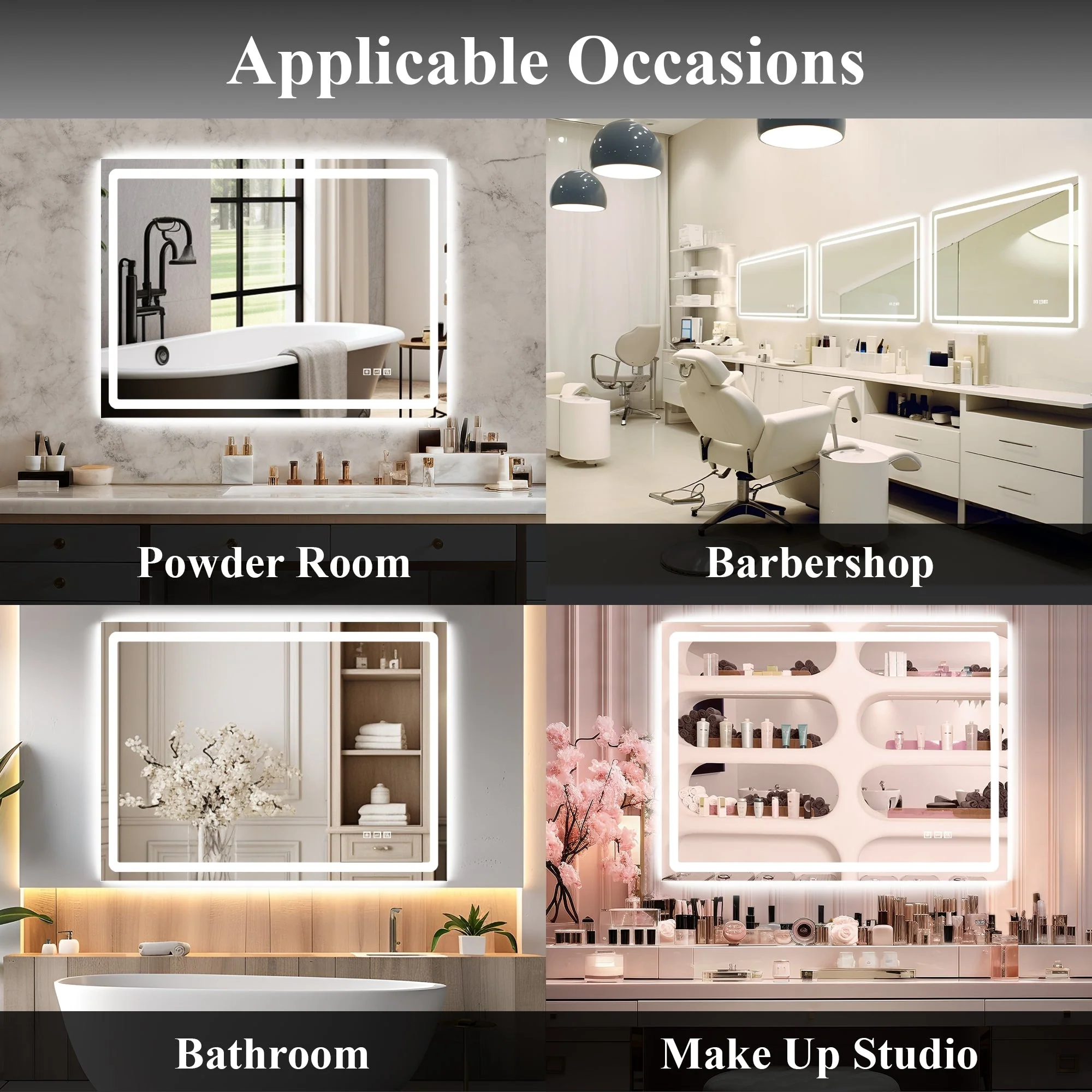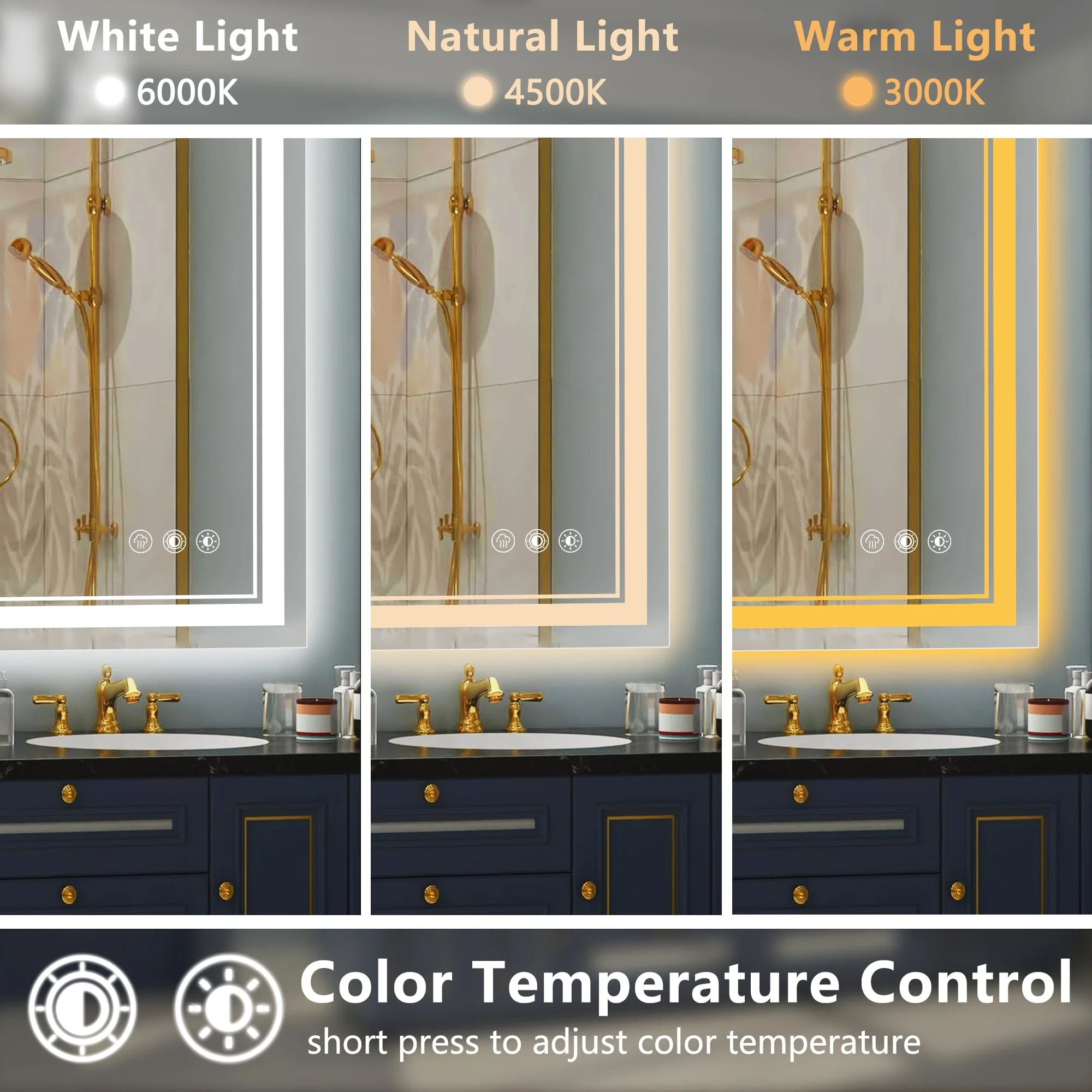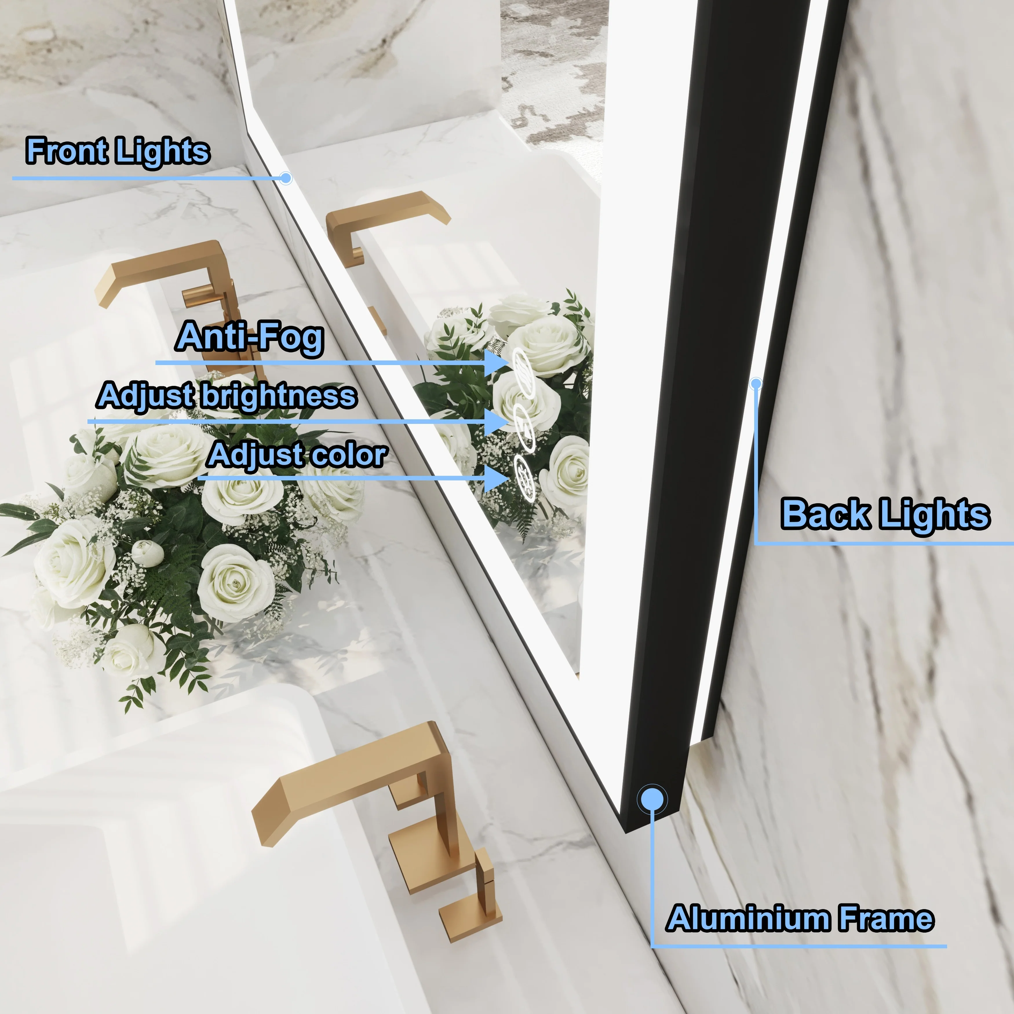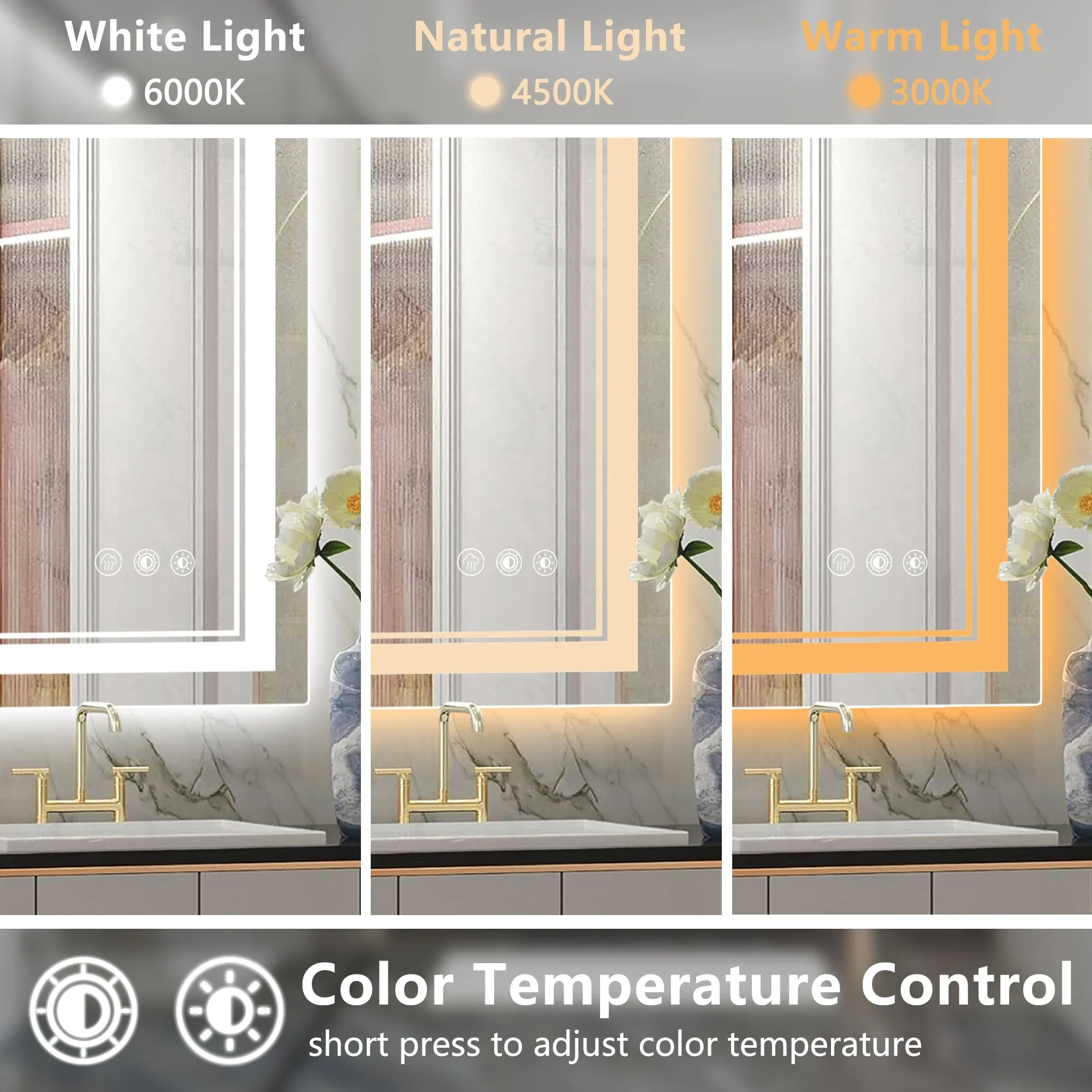 Led Bathroom Mirror w/ Lights, Lighted Vanity Mirror with Frontlit & Backlit for Vanity Room, Anti-Fog Bathroom Mirror