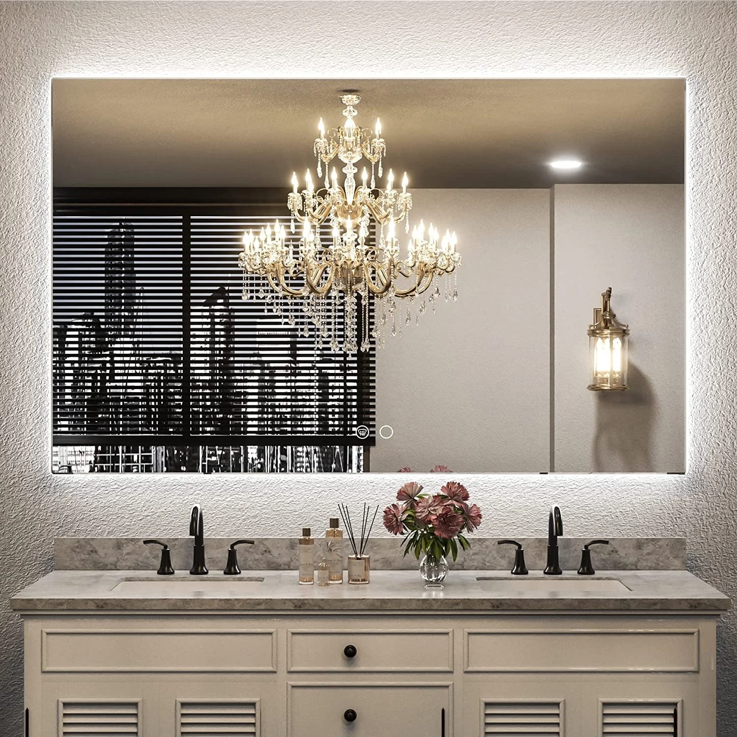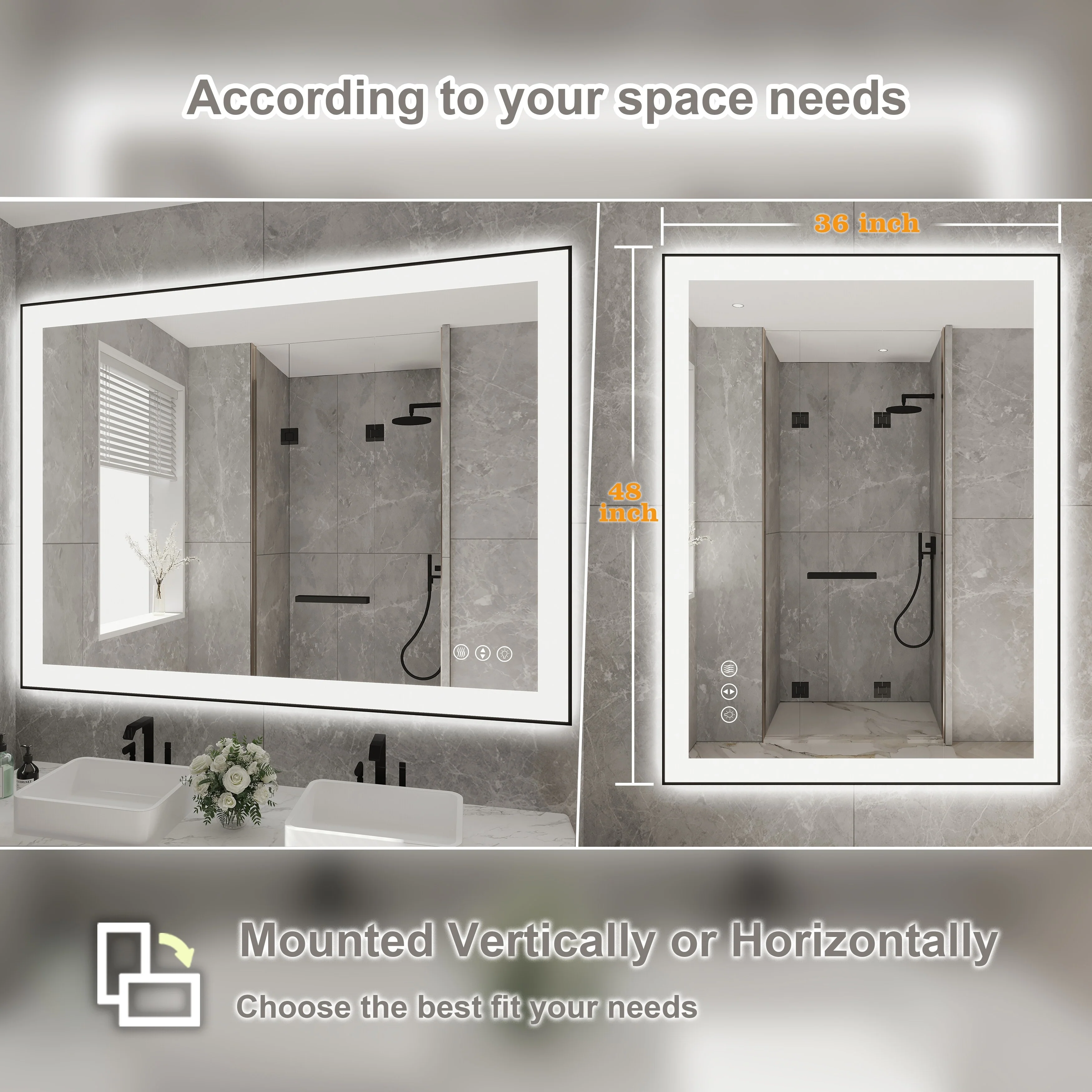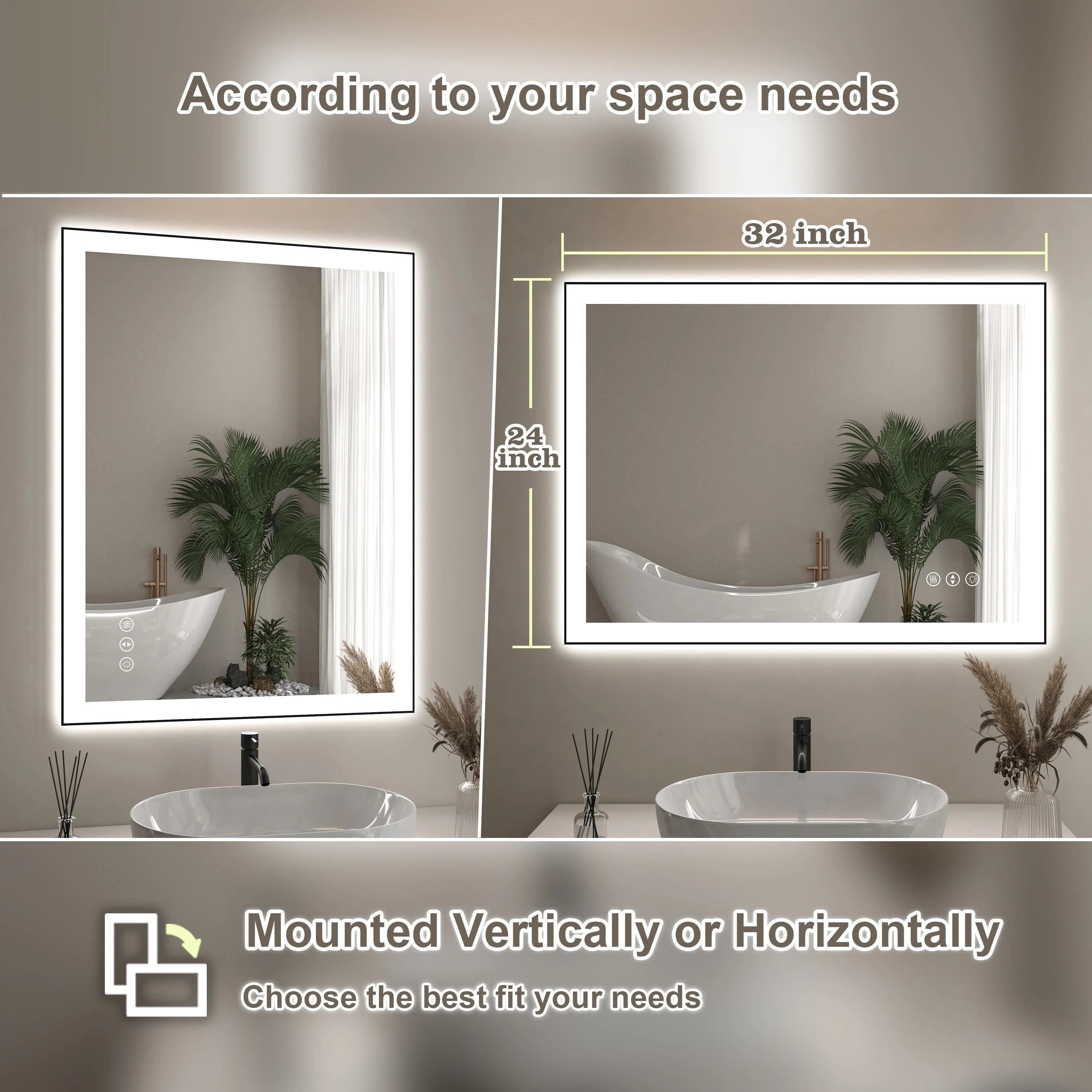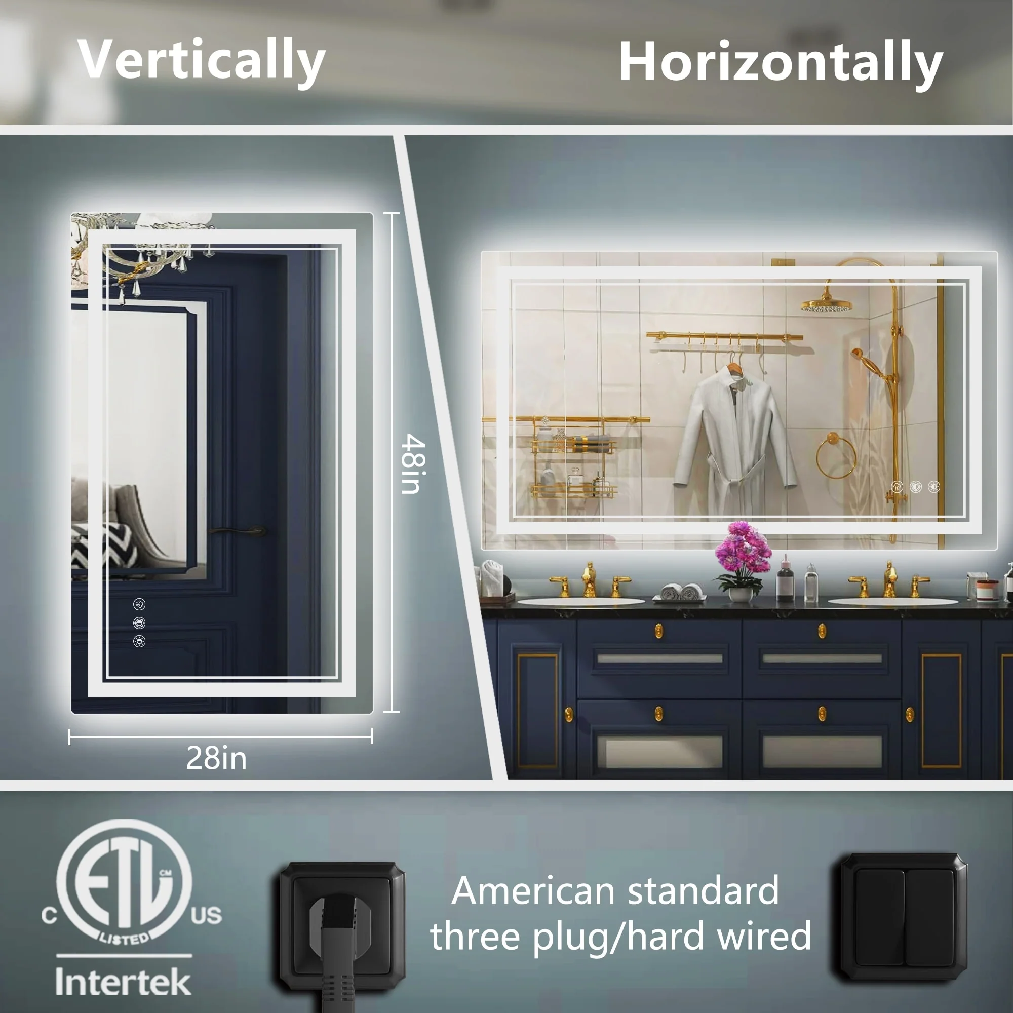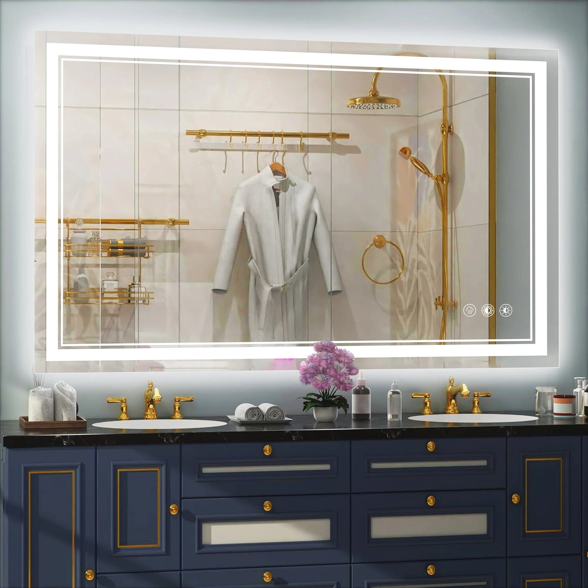 Led Bathroom Mirror w/ Lights, Lighted Vanity Mirror with Frontlit & Backlit for Vanity Room, Anti-Fog Bathroom Mirror