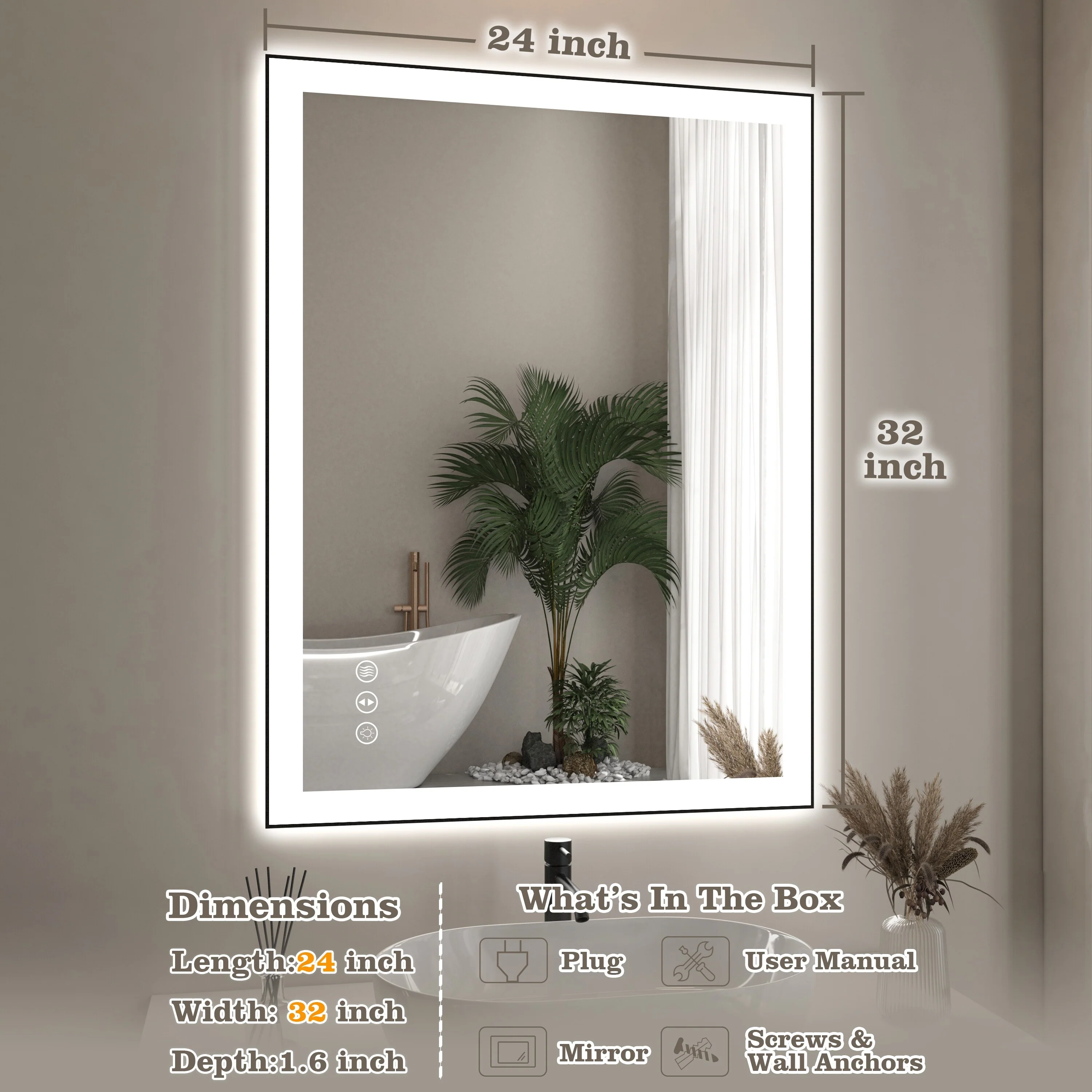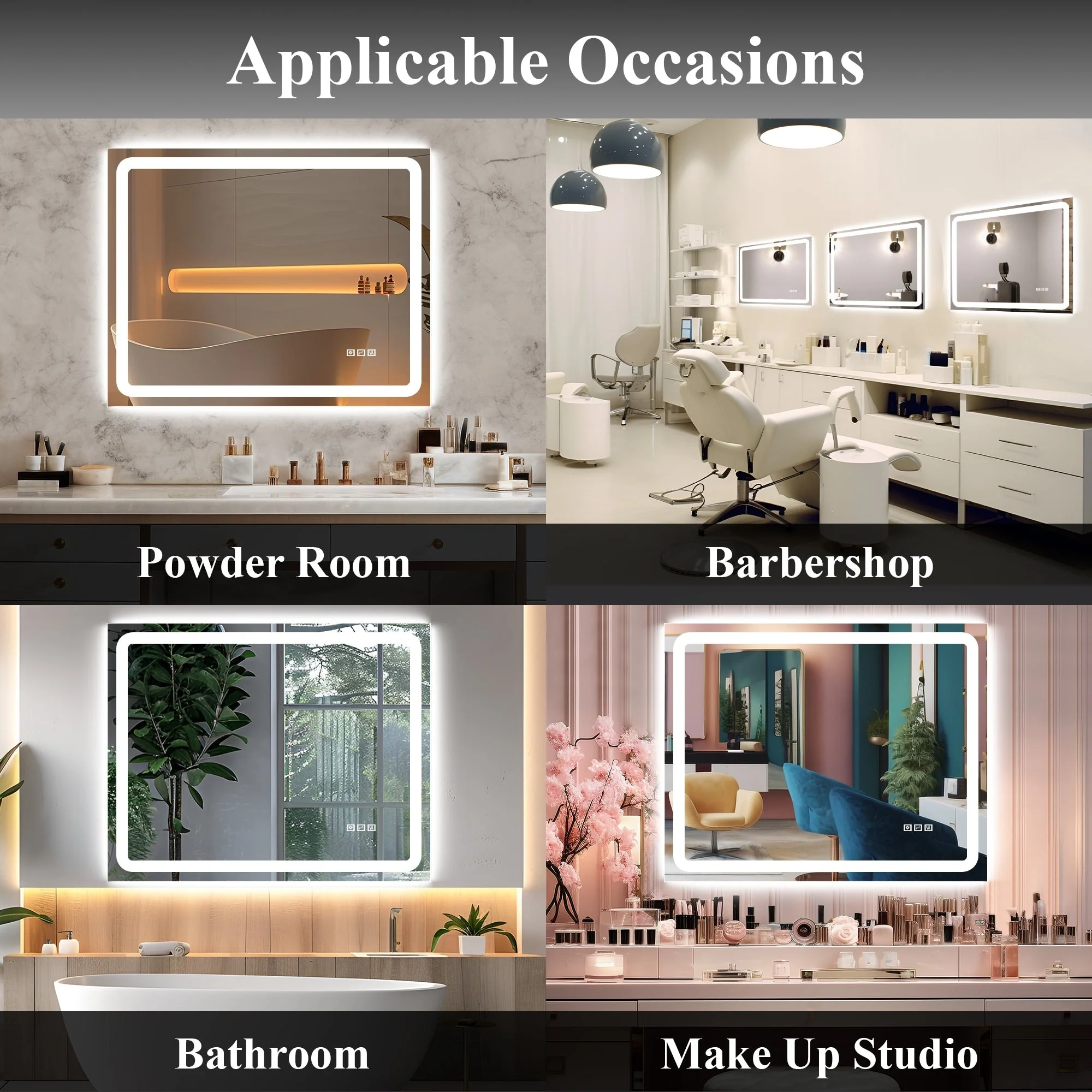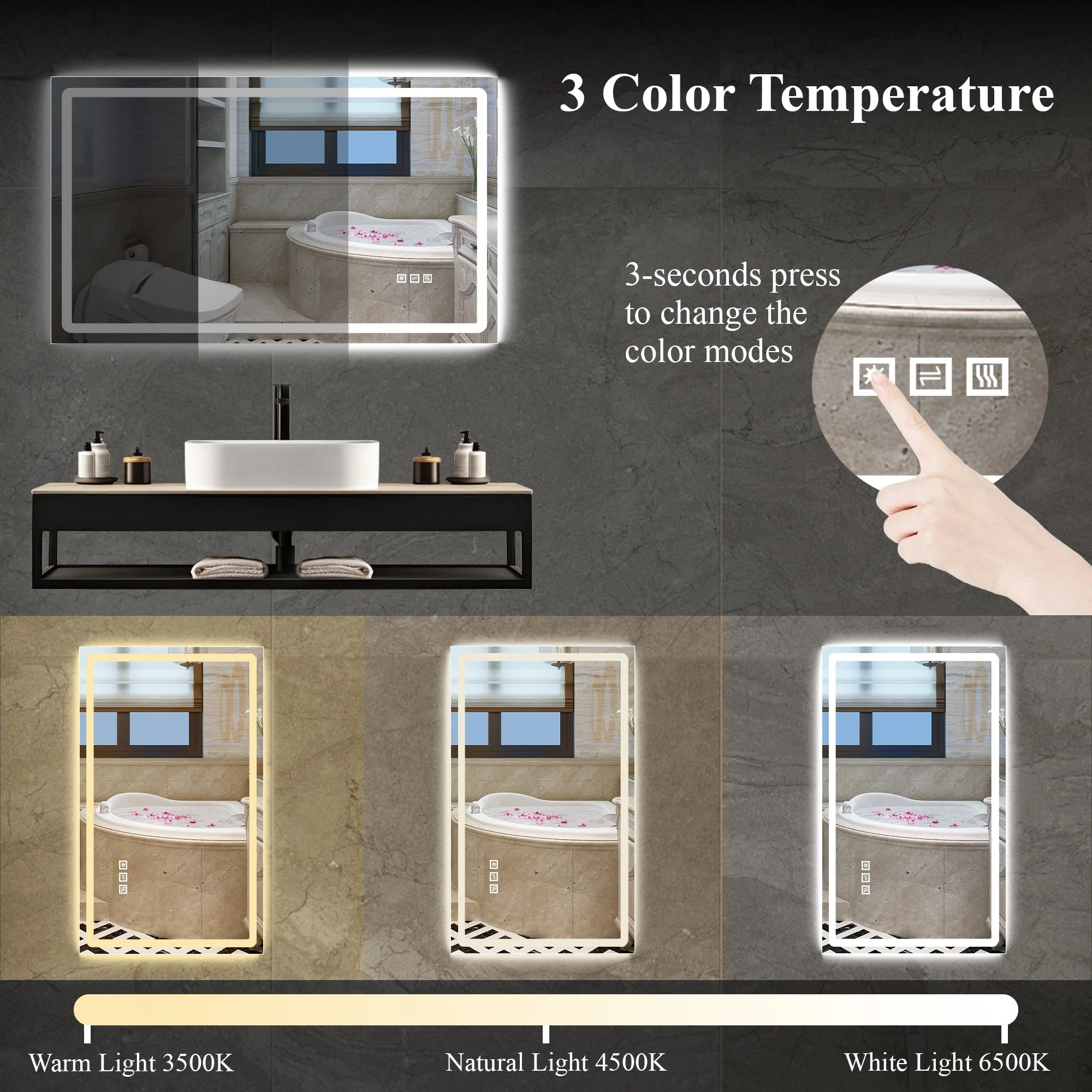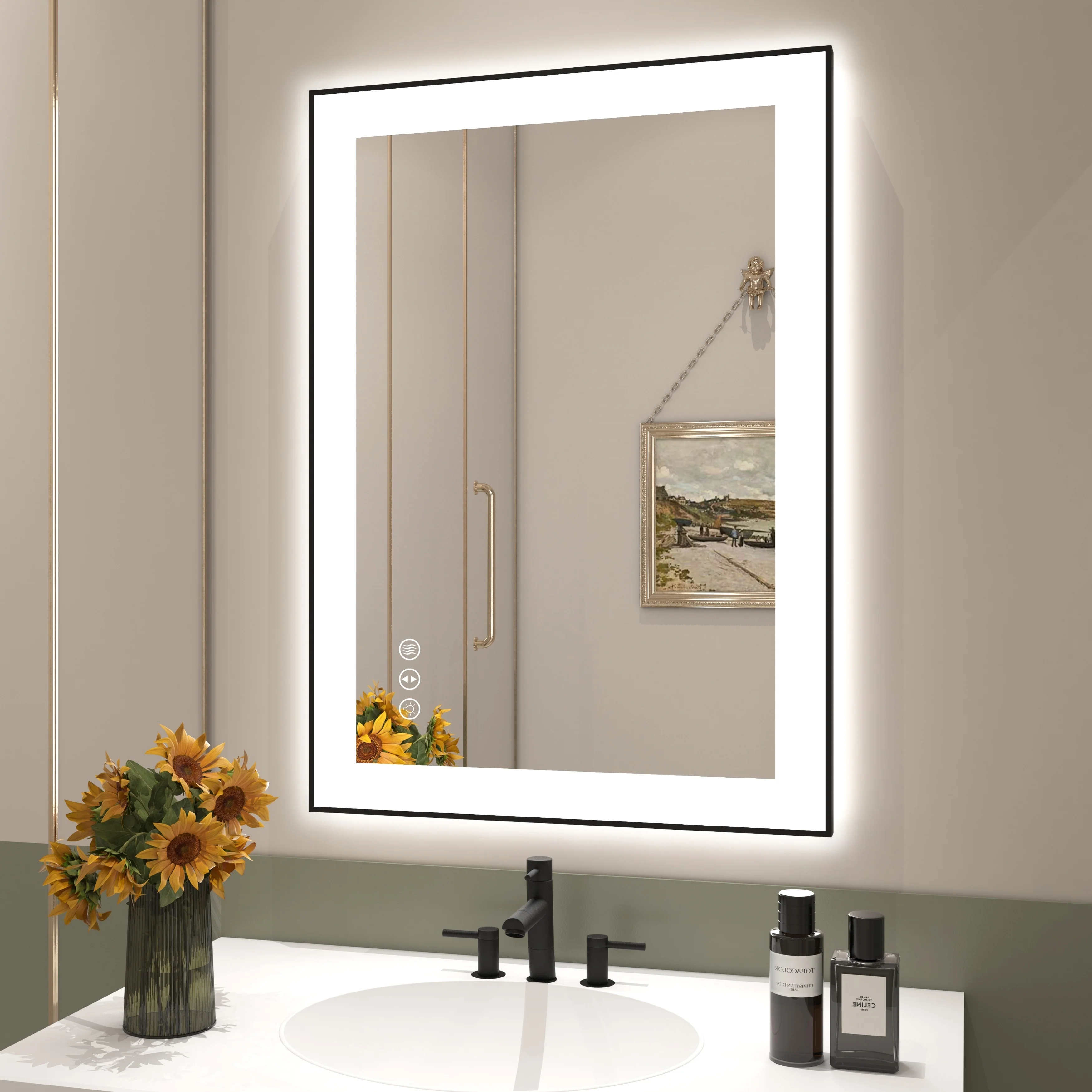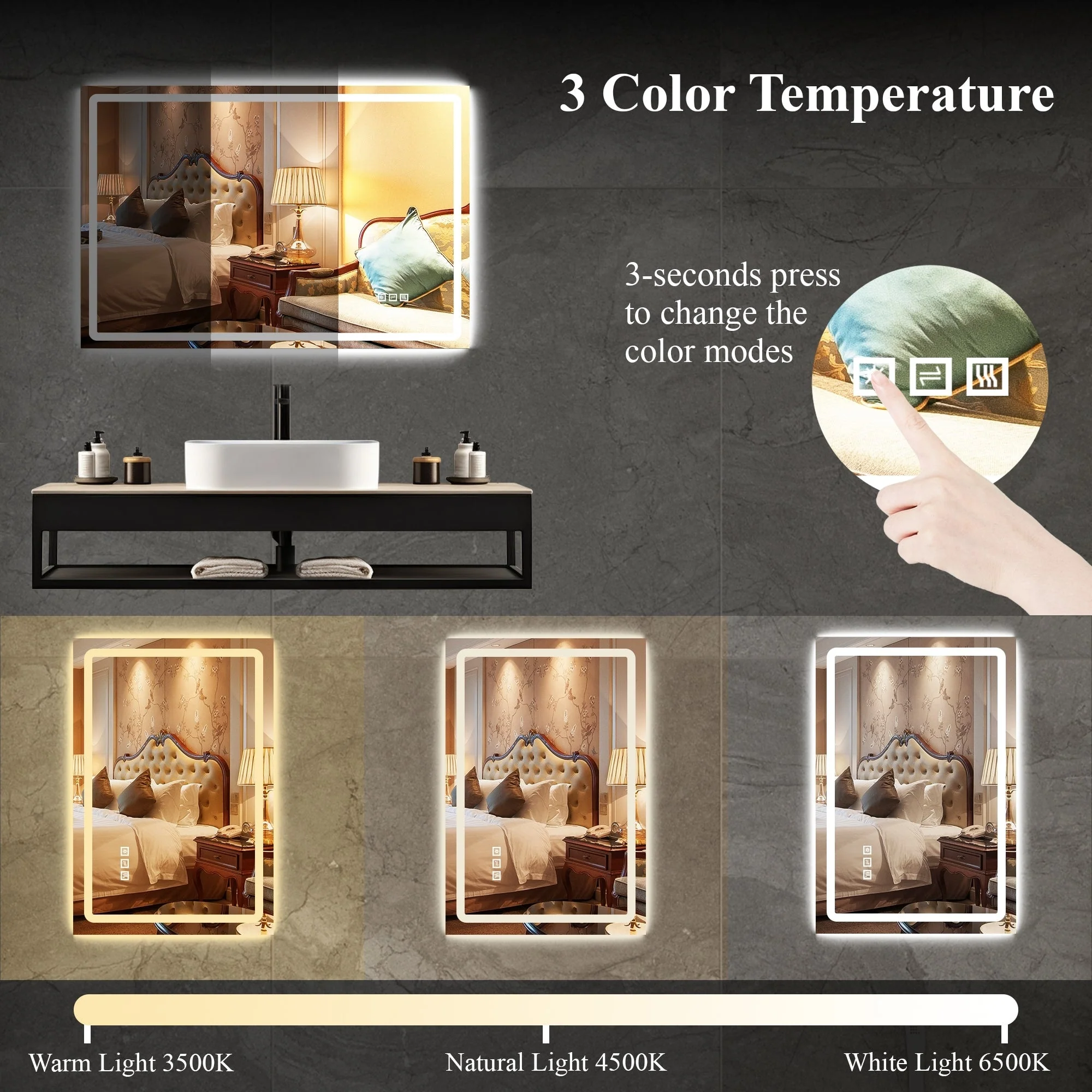 Led Bathroom Mirror w/ Lights, Lighted Vanity Mirror with Frontlit & Backlit for Vanity Room, Anti-Fog Bathroom Mirror