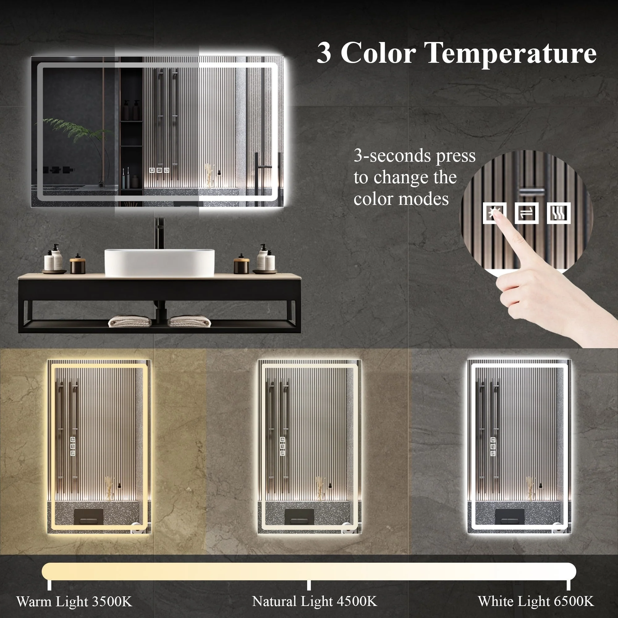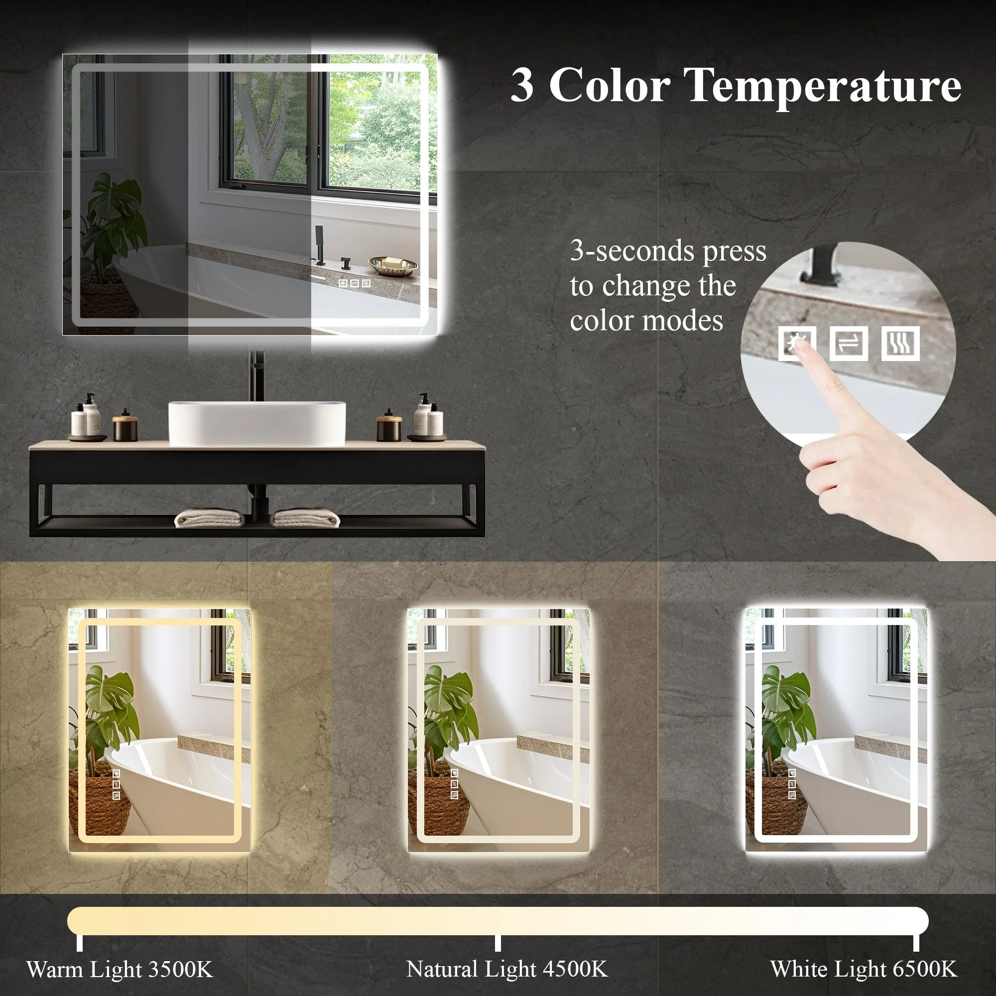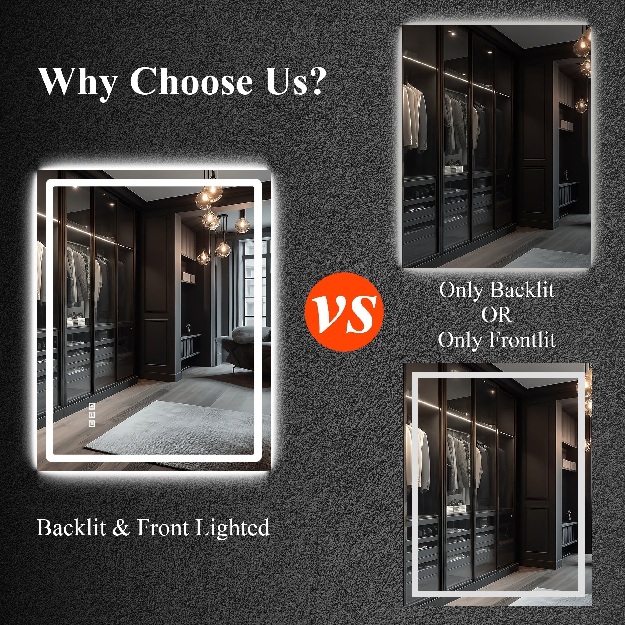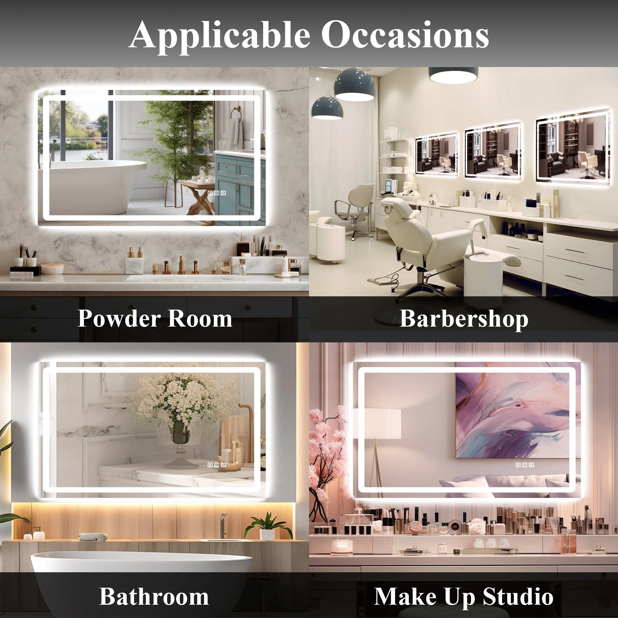 Led Bathroom Mirror w/ Lights, Lighted Vanity Mirror with Frontlit & Backlit for Vanity Room, Anti-Fog Bathroom Mirror