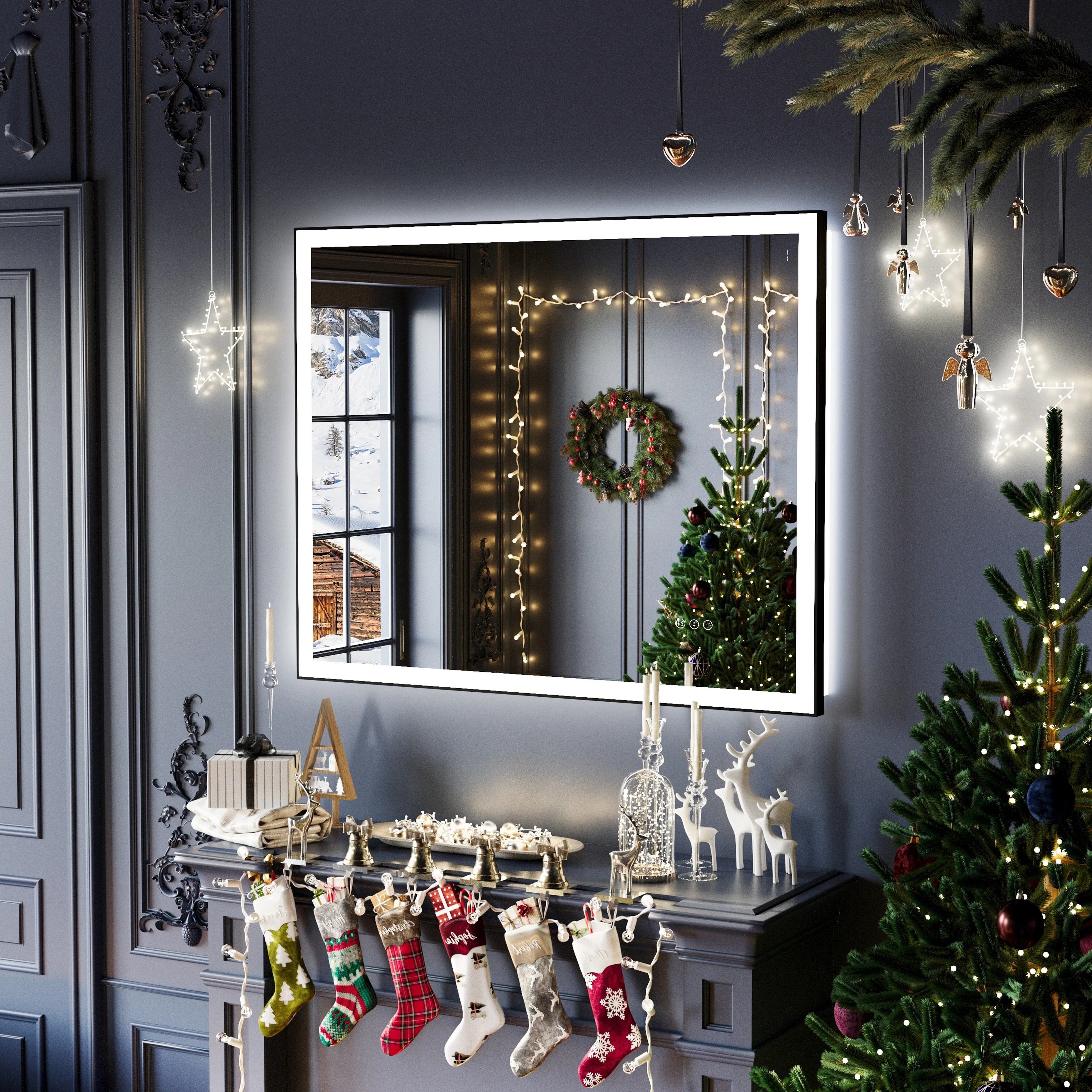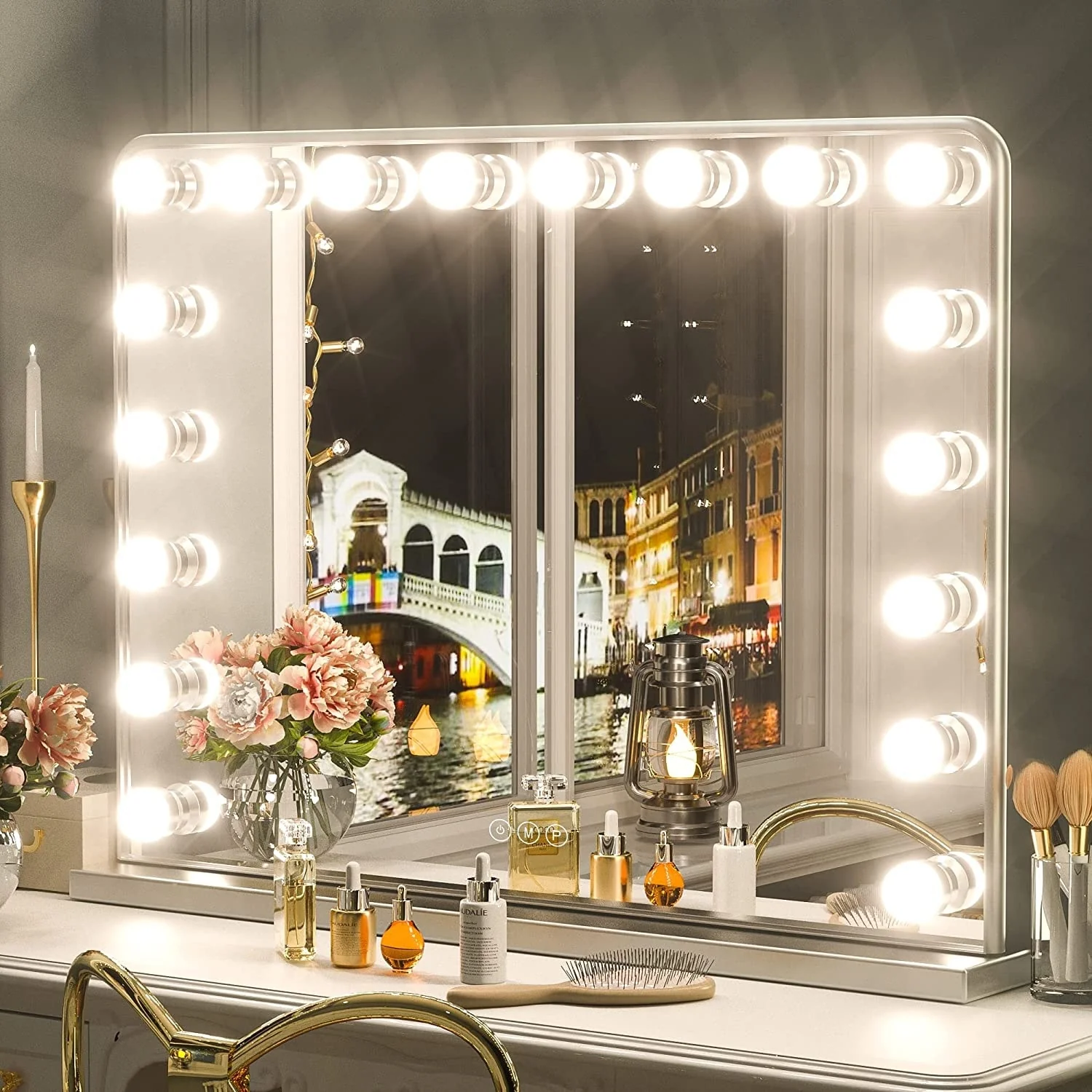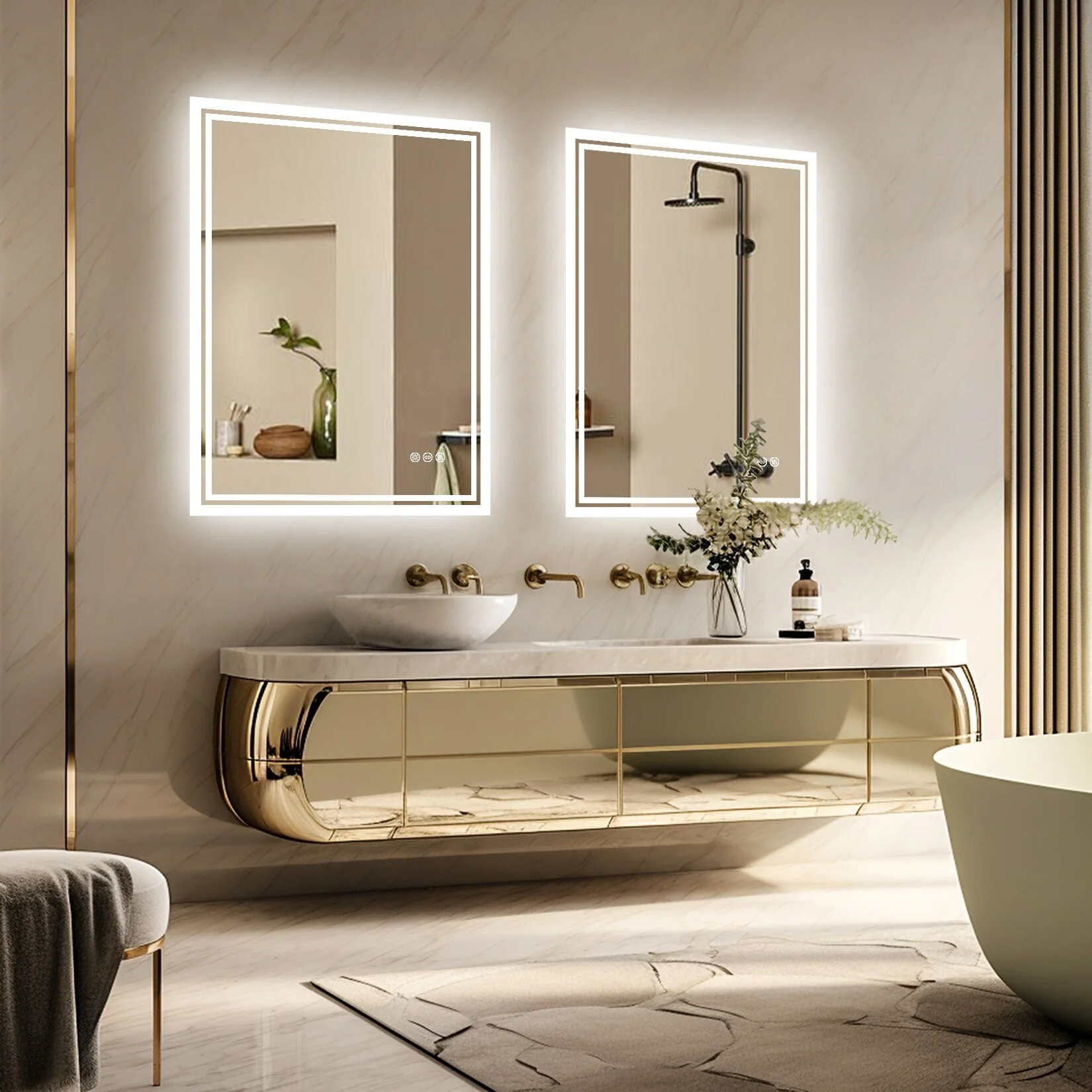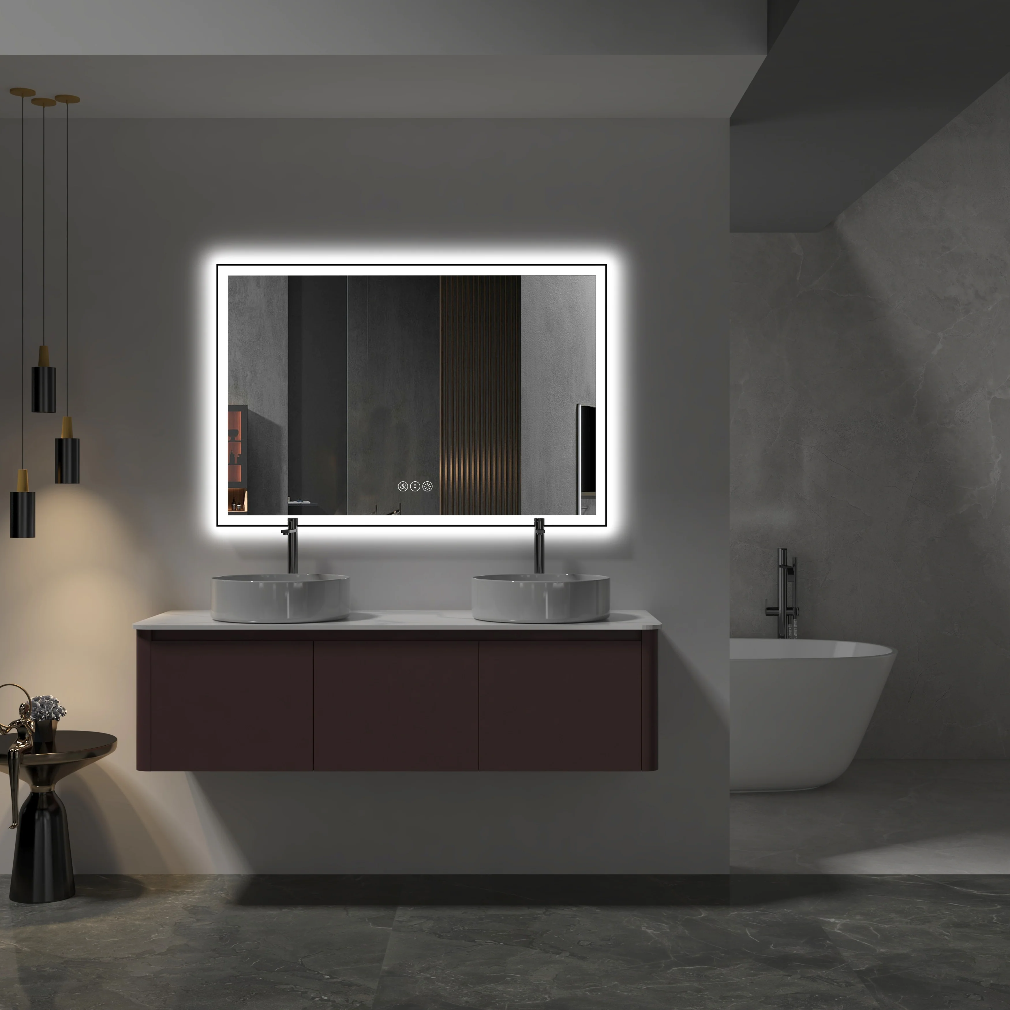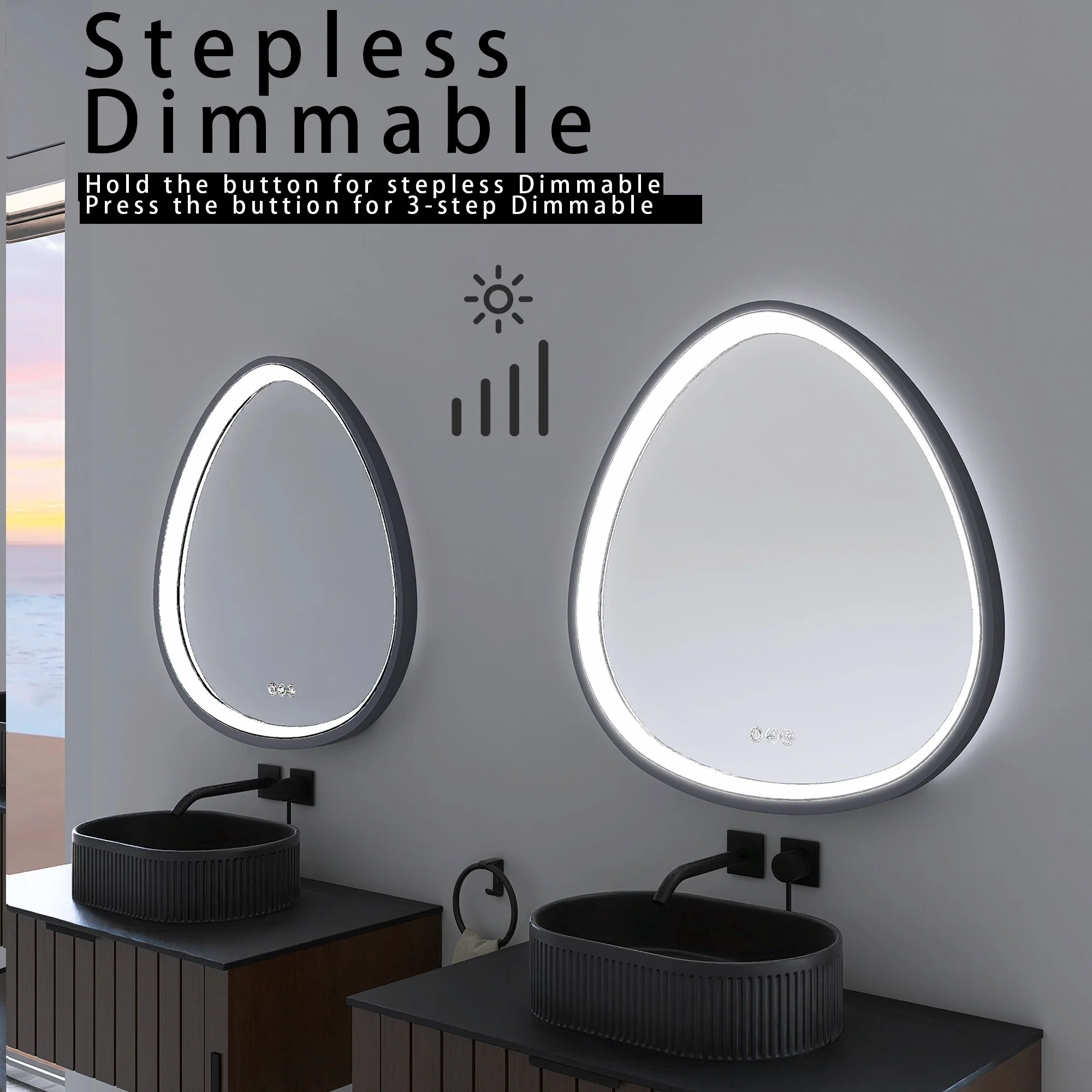 Led Bathroom Mirror w/ Lights, Lighted Vanity Mirror with Frontlit & Backlit for Vanity Room, Anti-Fog Bathroom Mirror