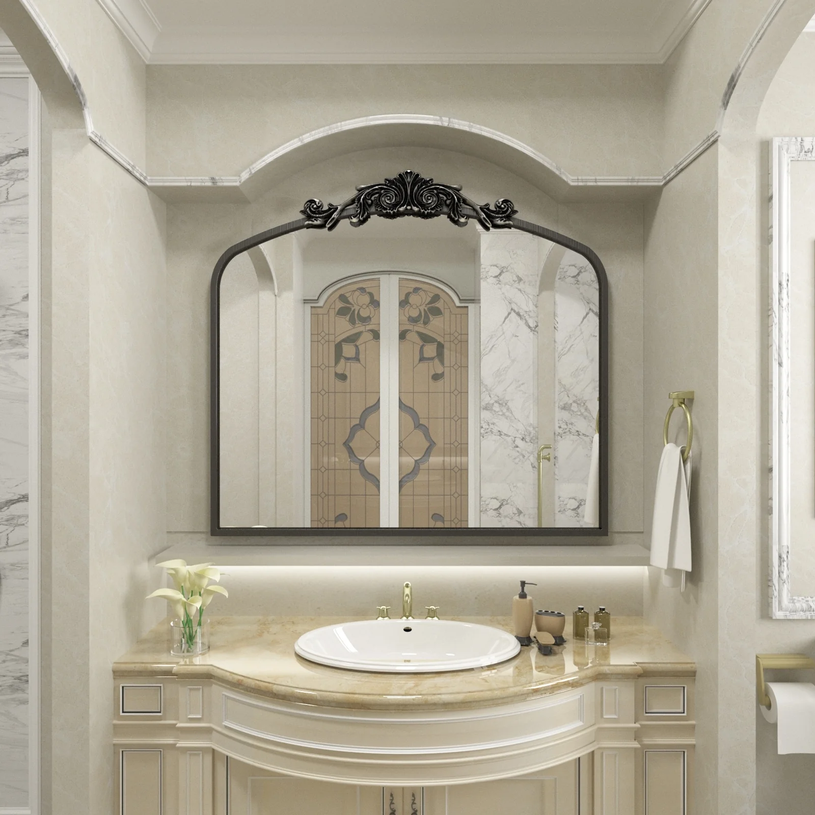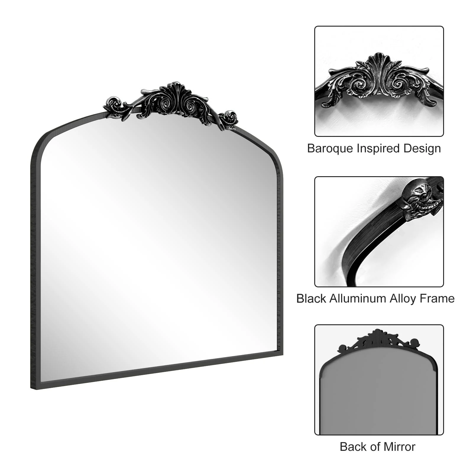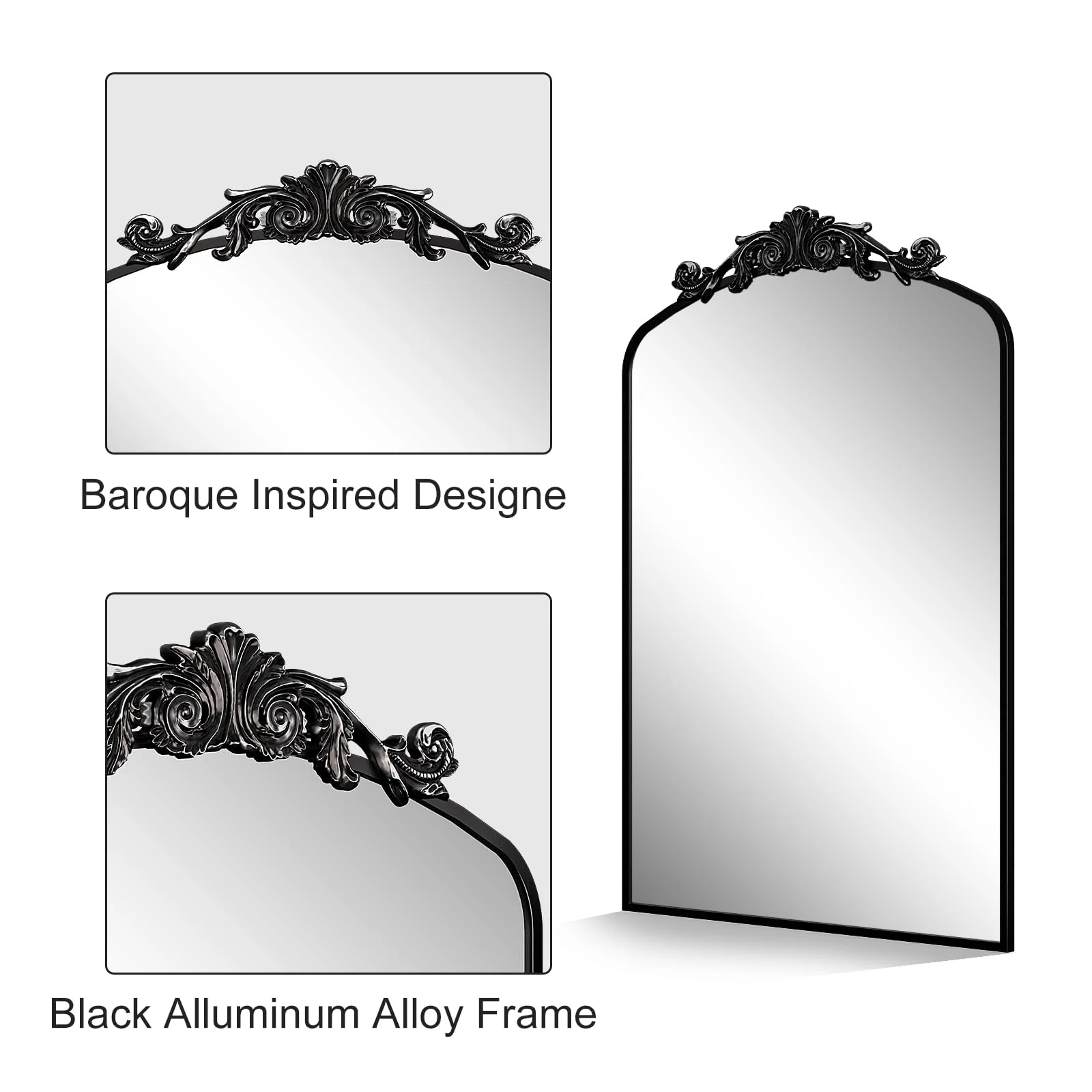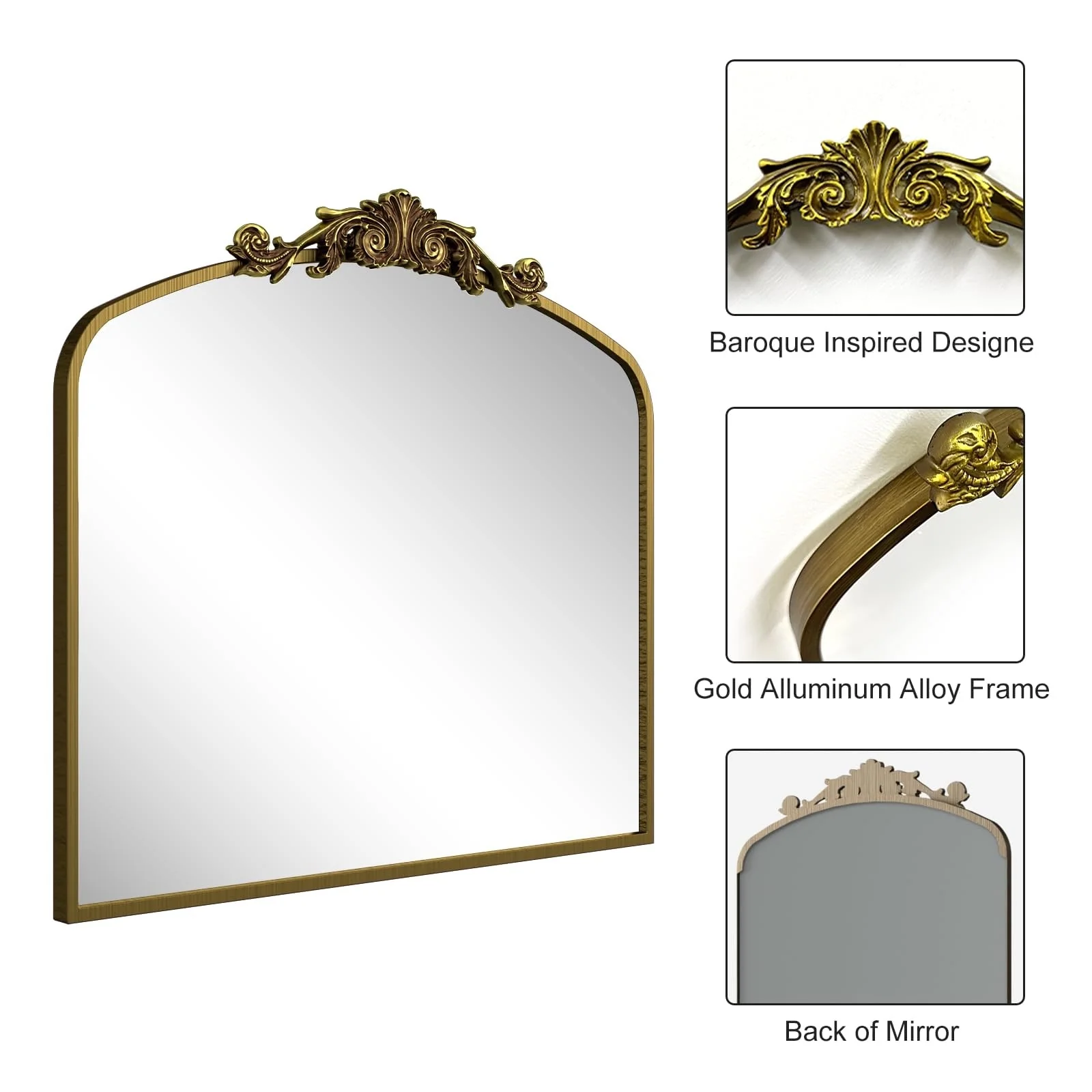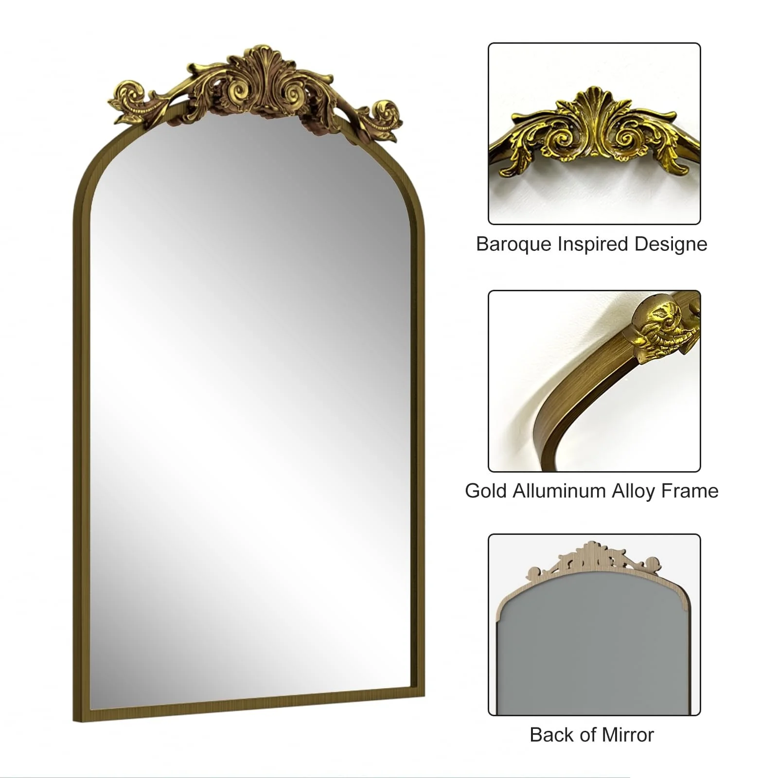 Apmir Arched Vintage Mirror Traditional Baroque Style Wall Mirror