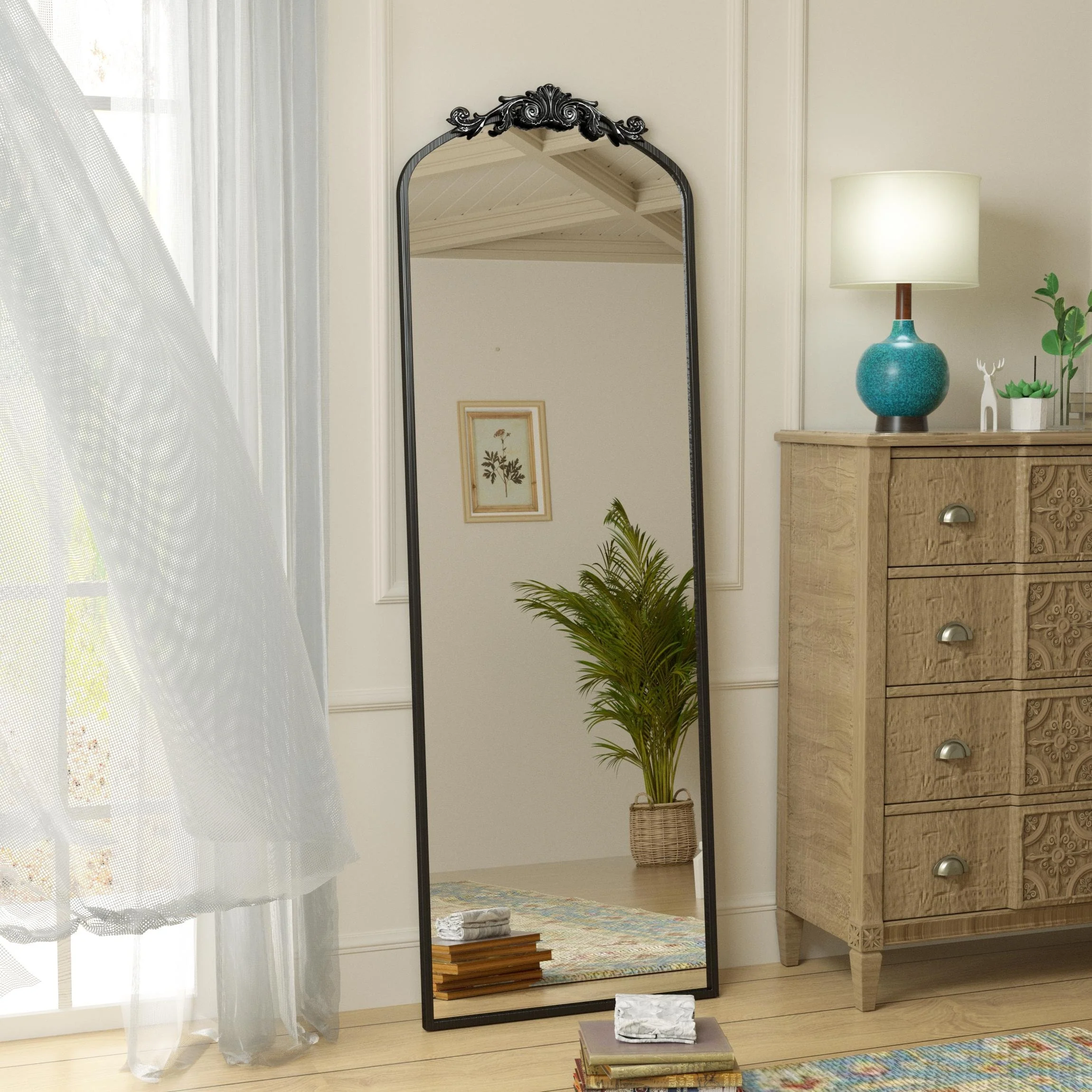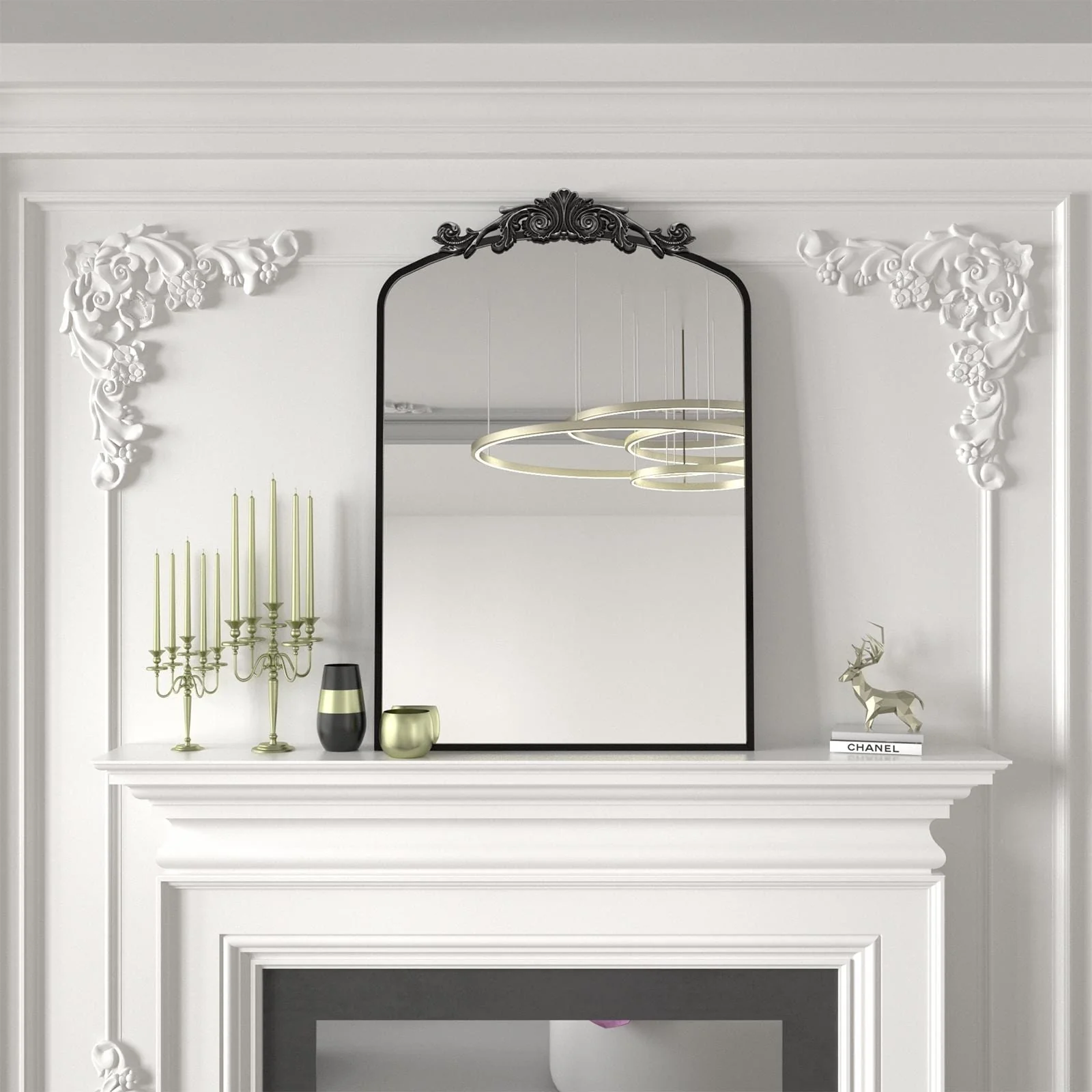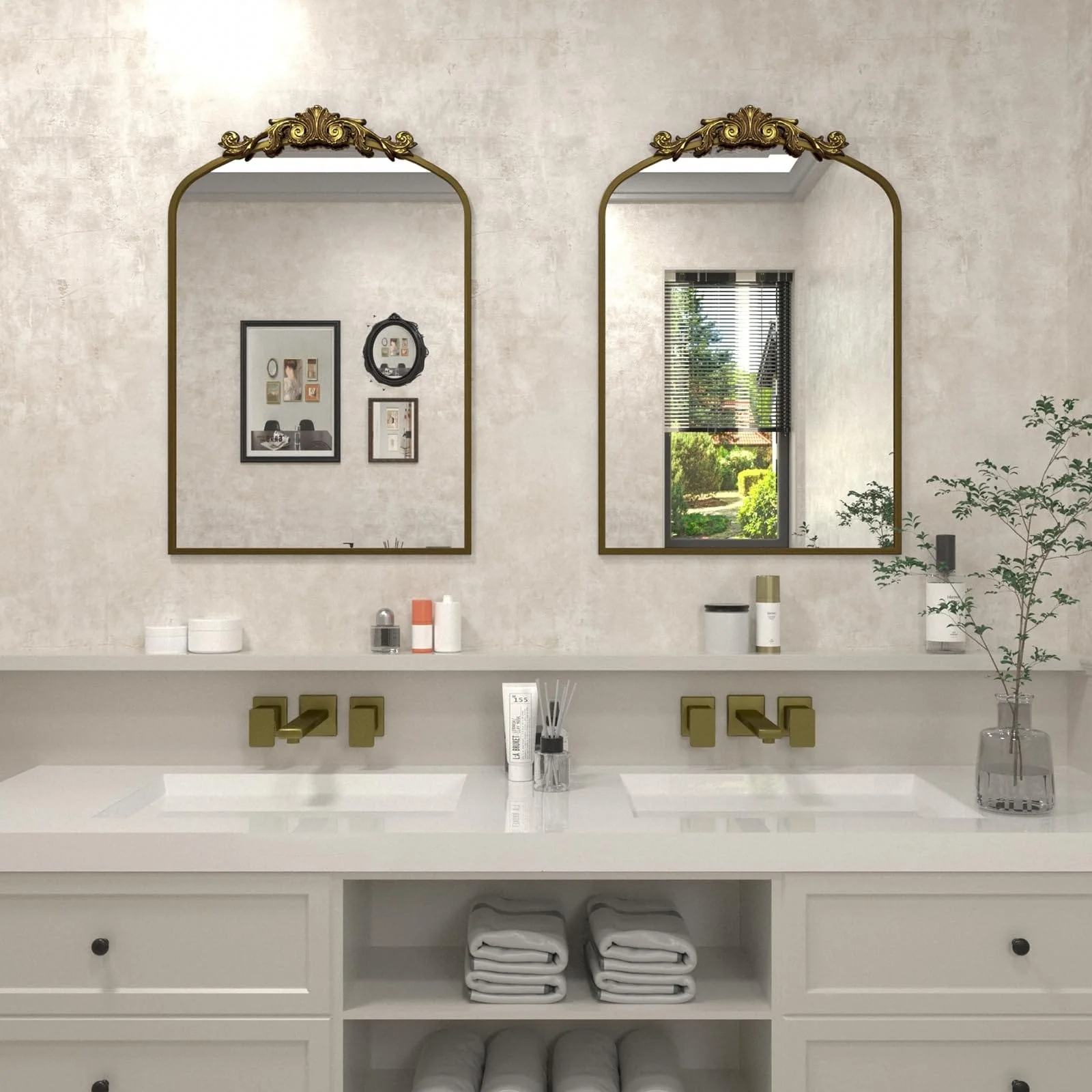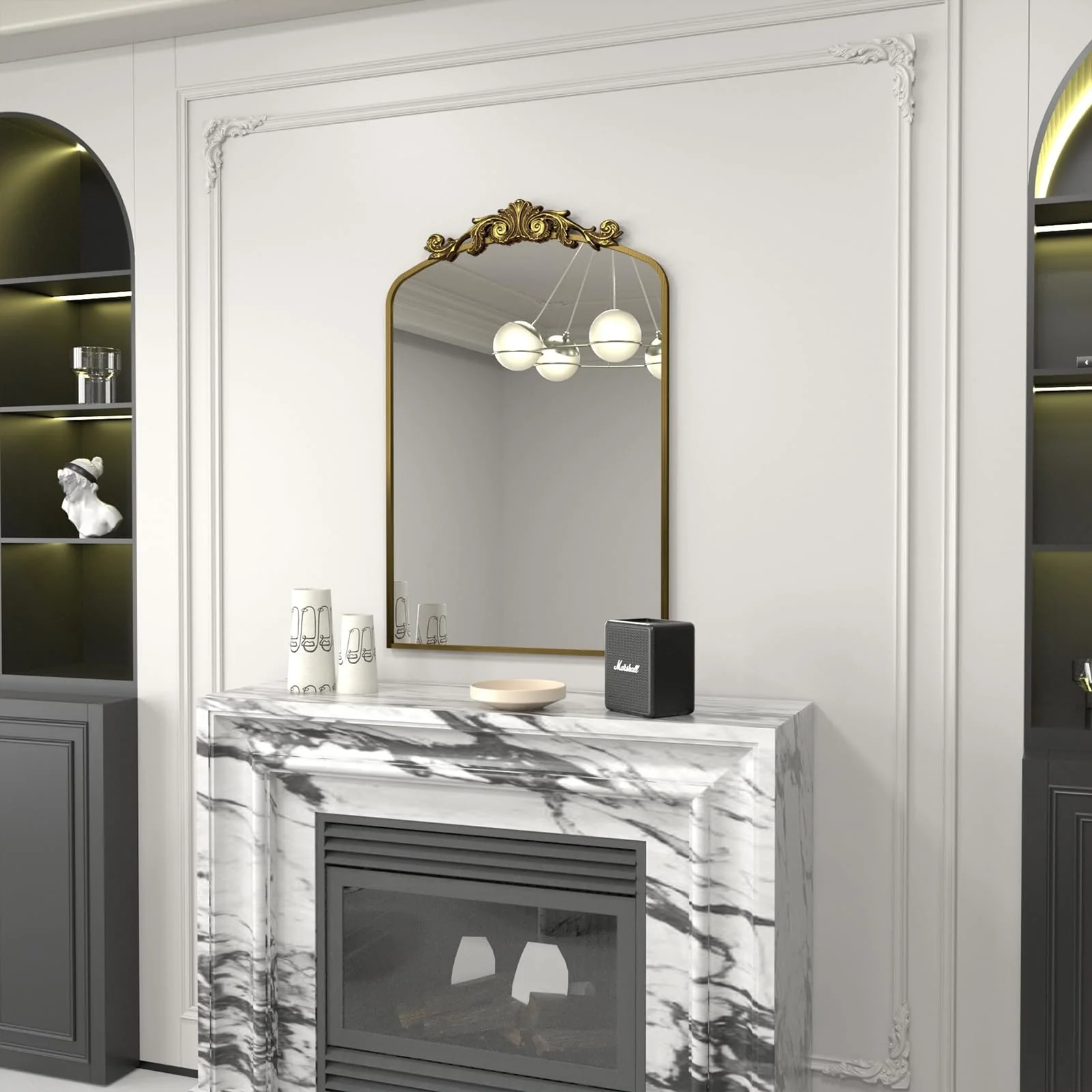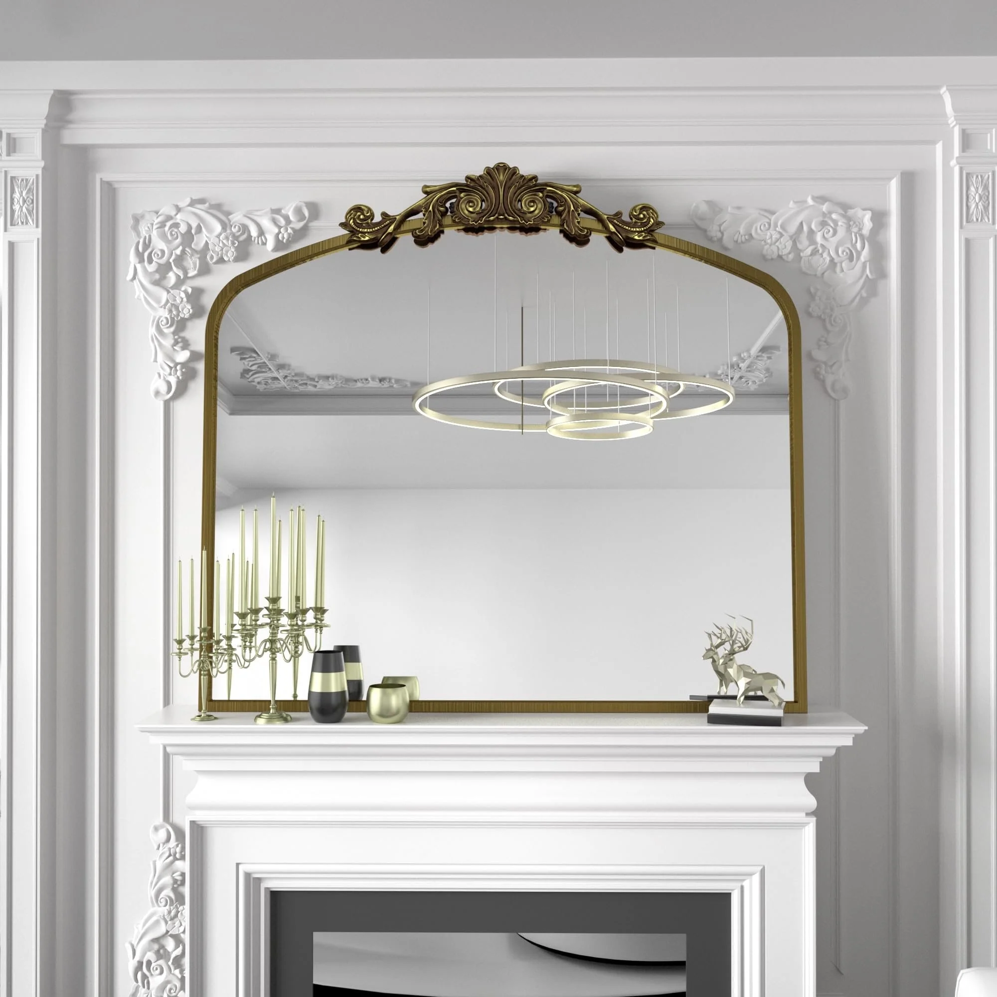 Apmir Arched Vintage Mirror Traditional Baroque Style Wall Mirror