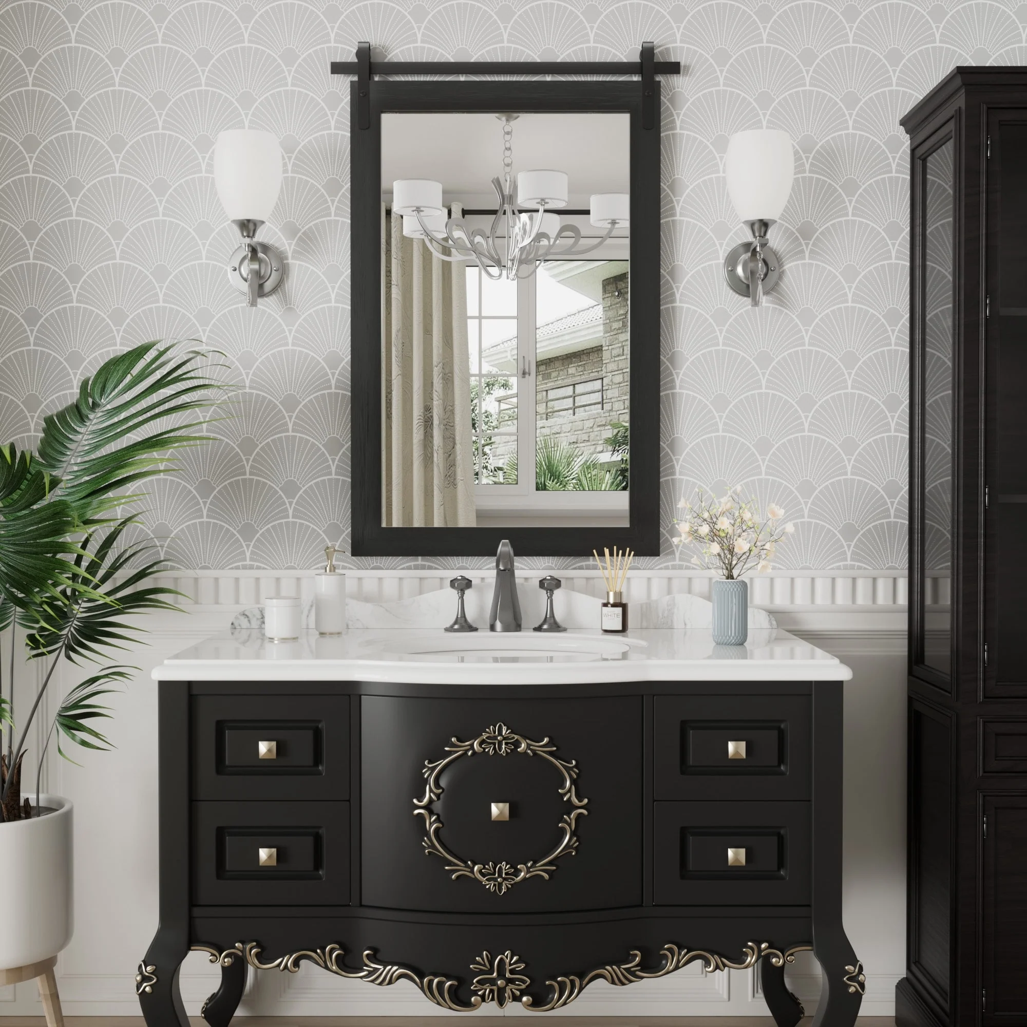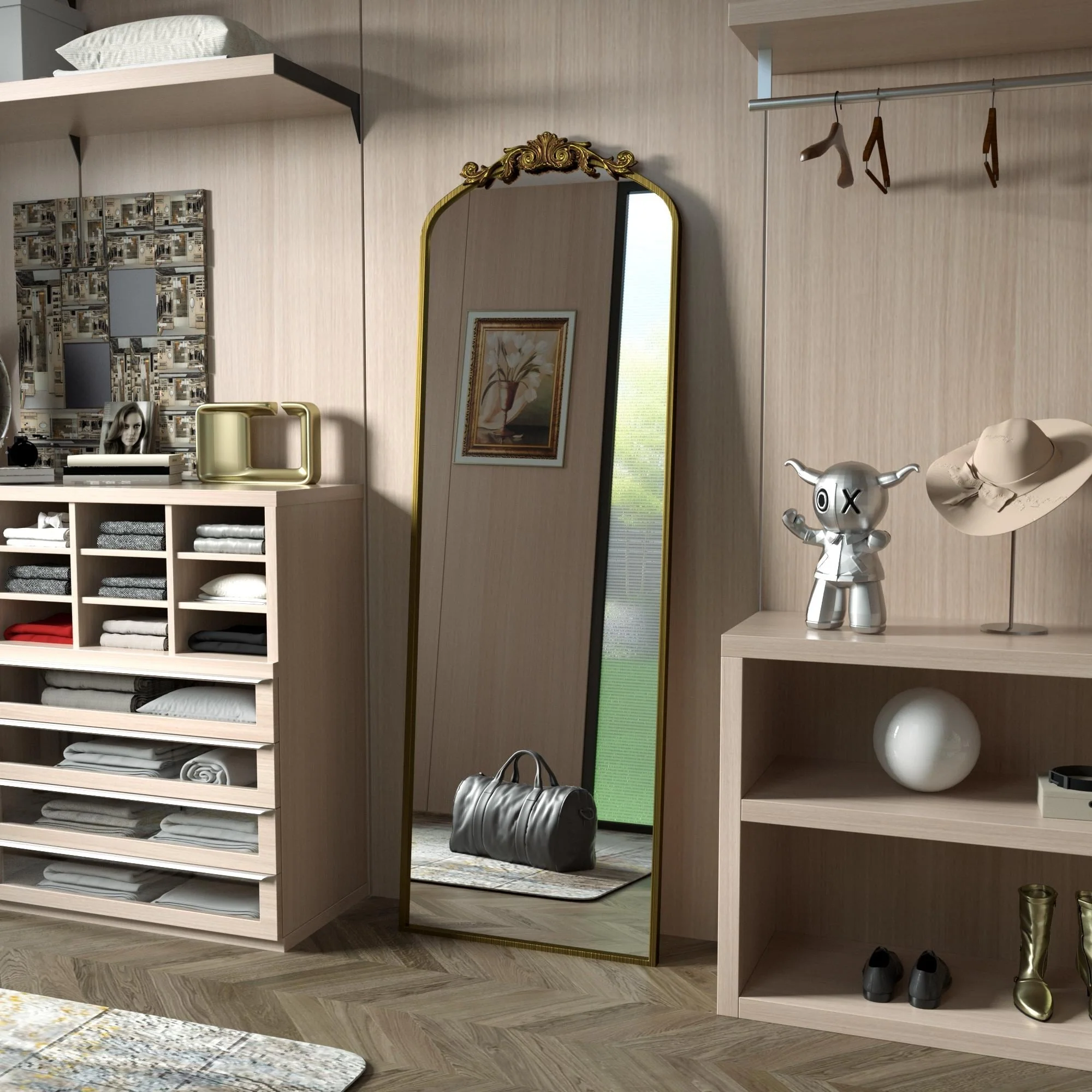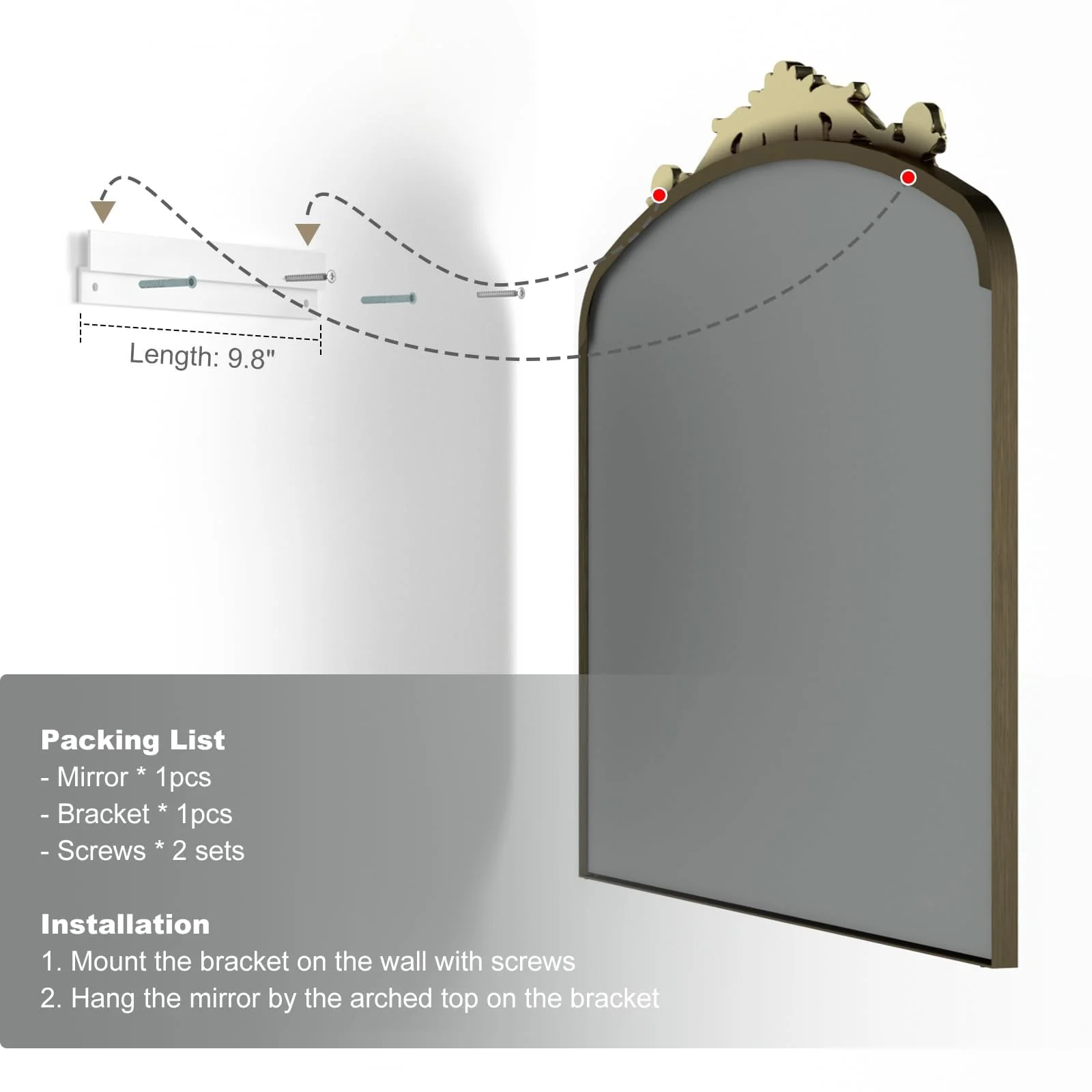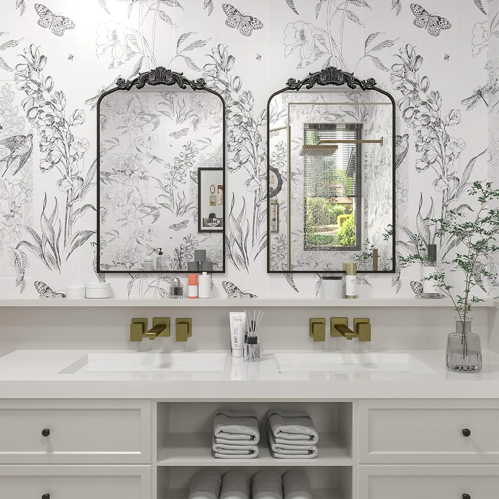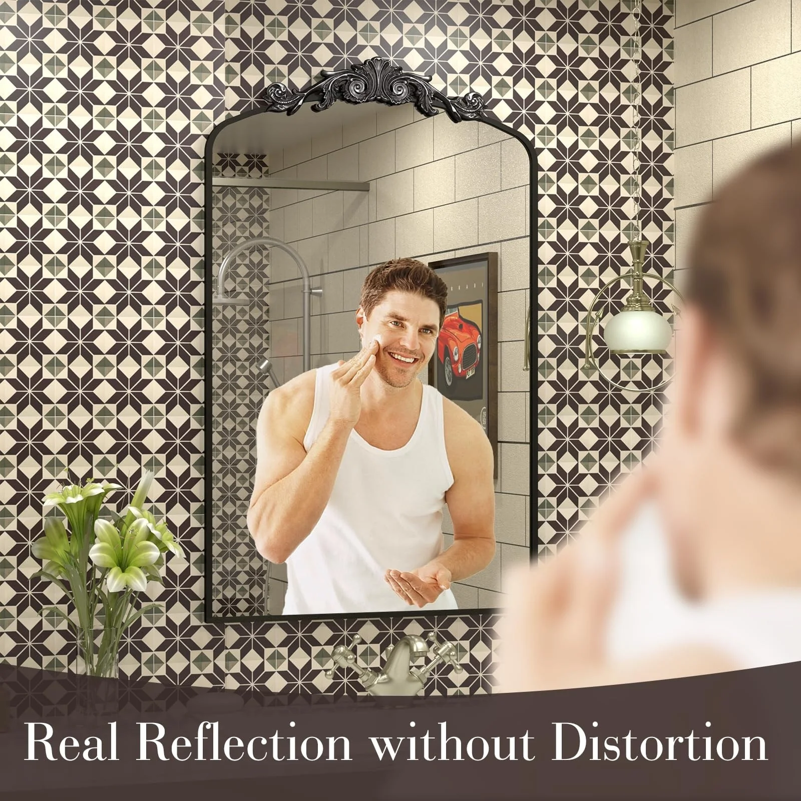 Apmir Arched Vintage Mirror Traditional Baroque Style Wall Mirror