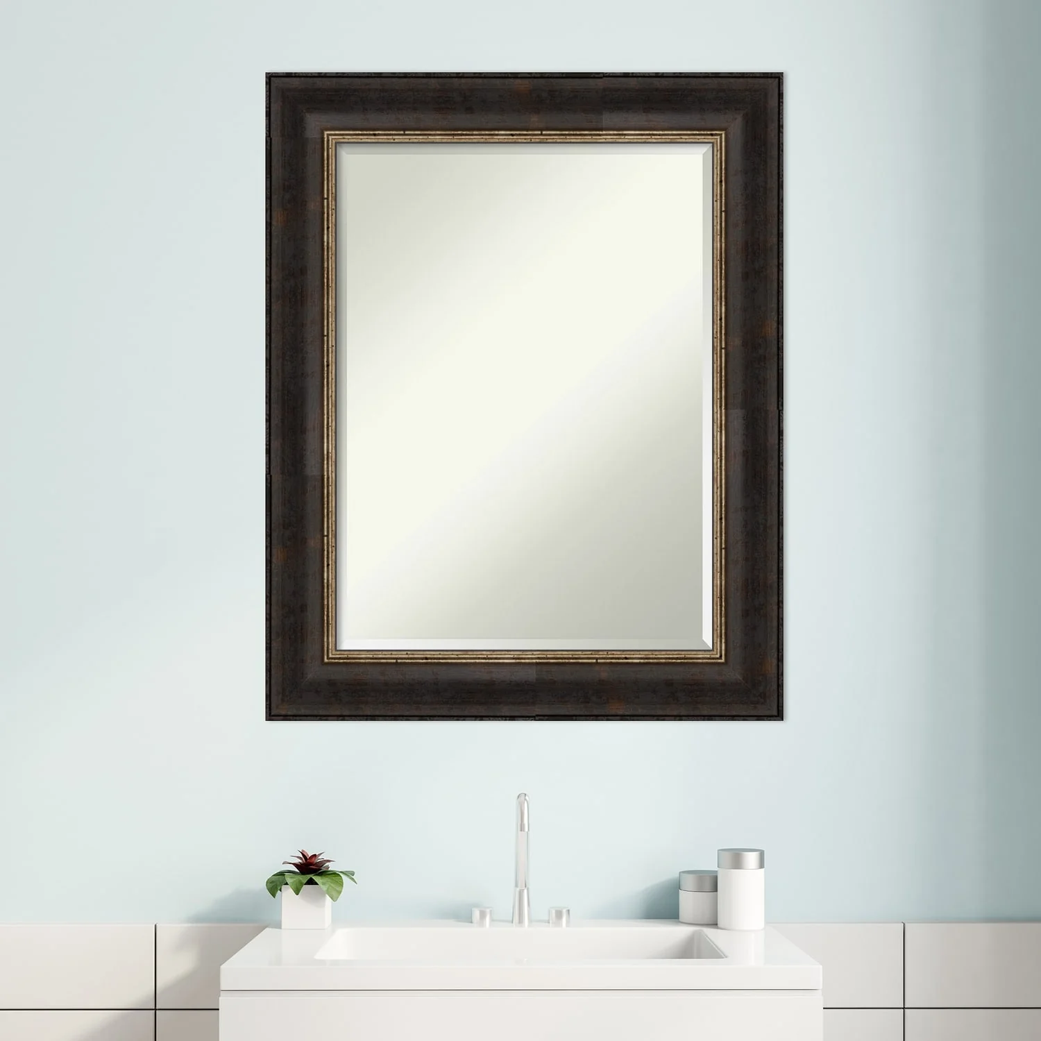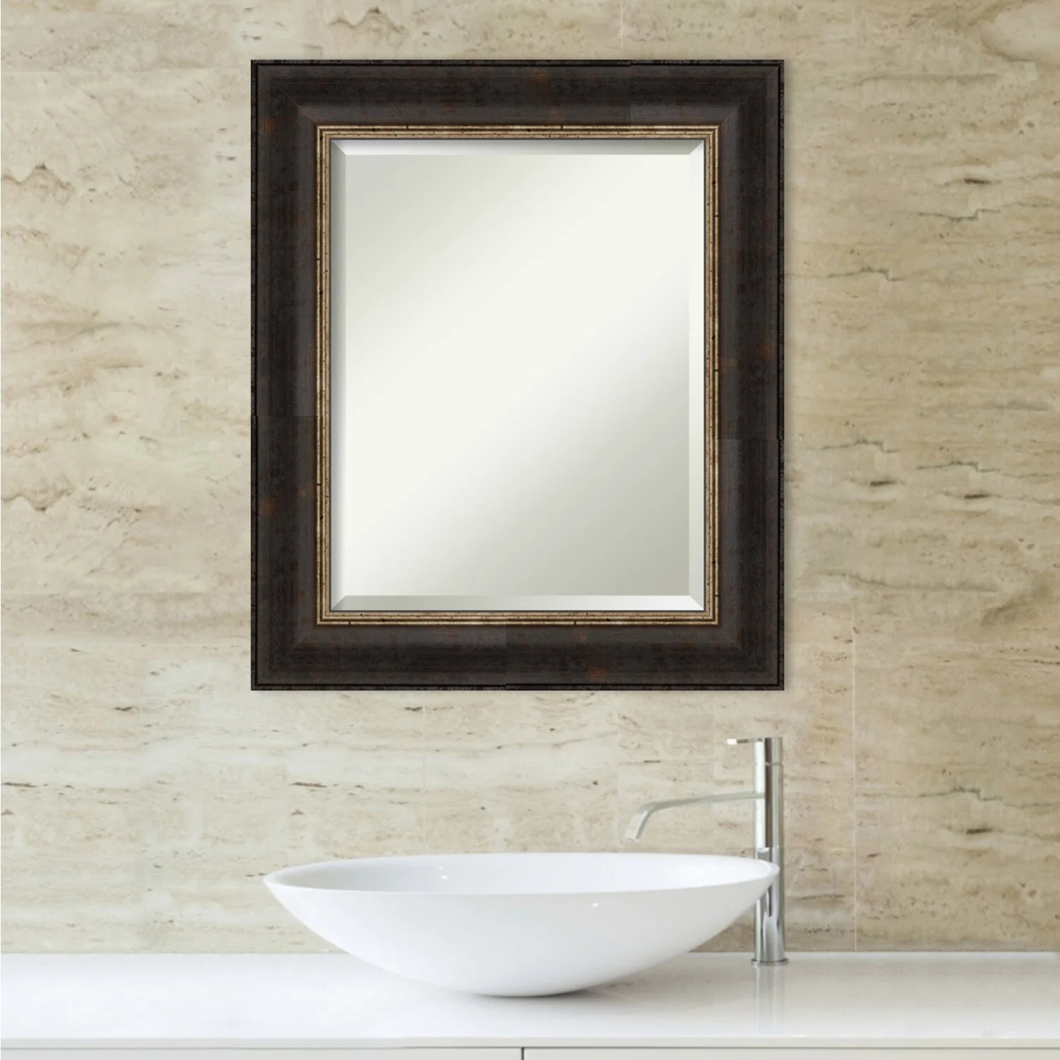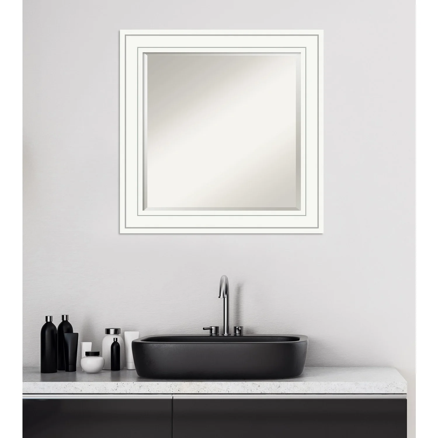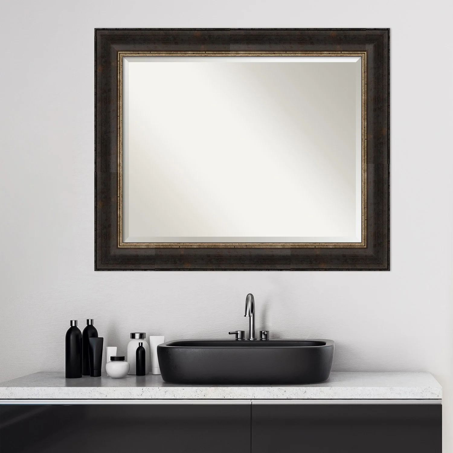 Beveled Bathroom Wall Mirror - Varied Black Frame - Varied Black