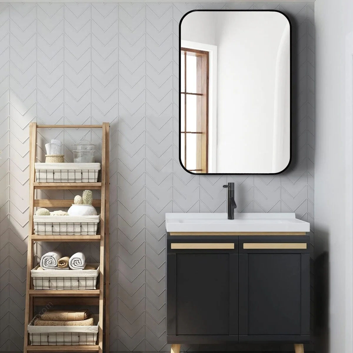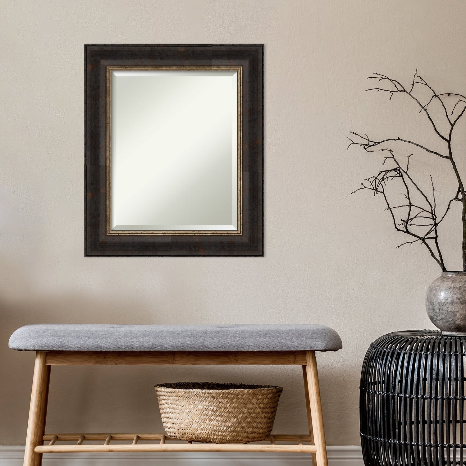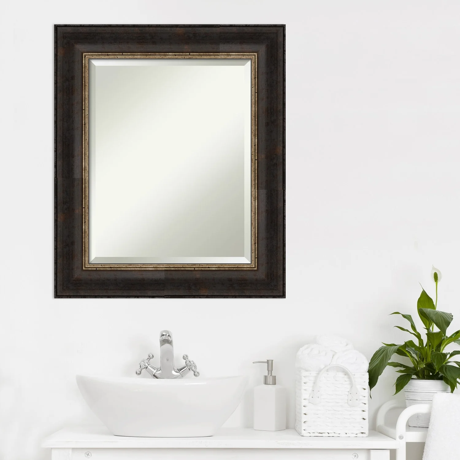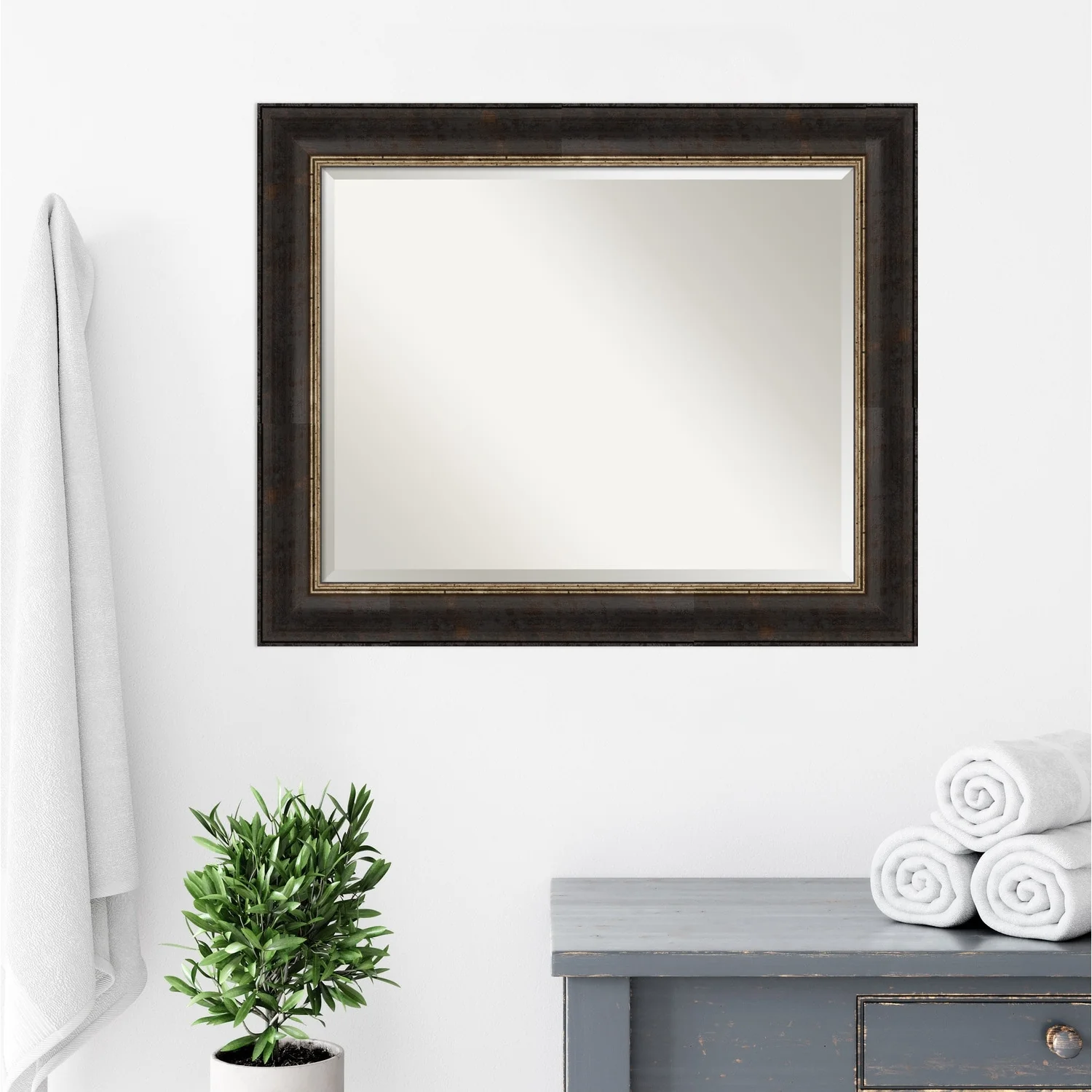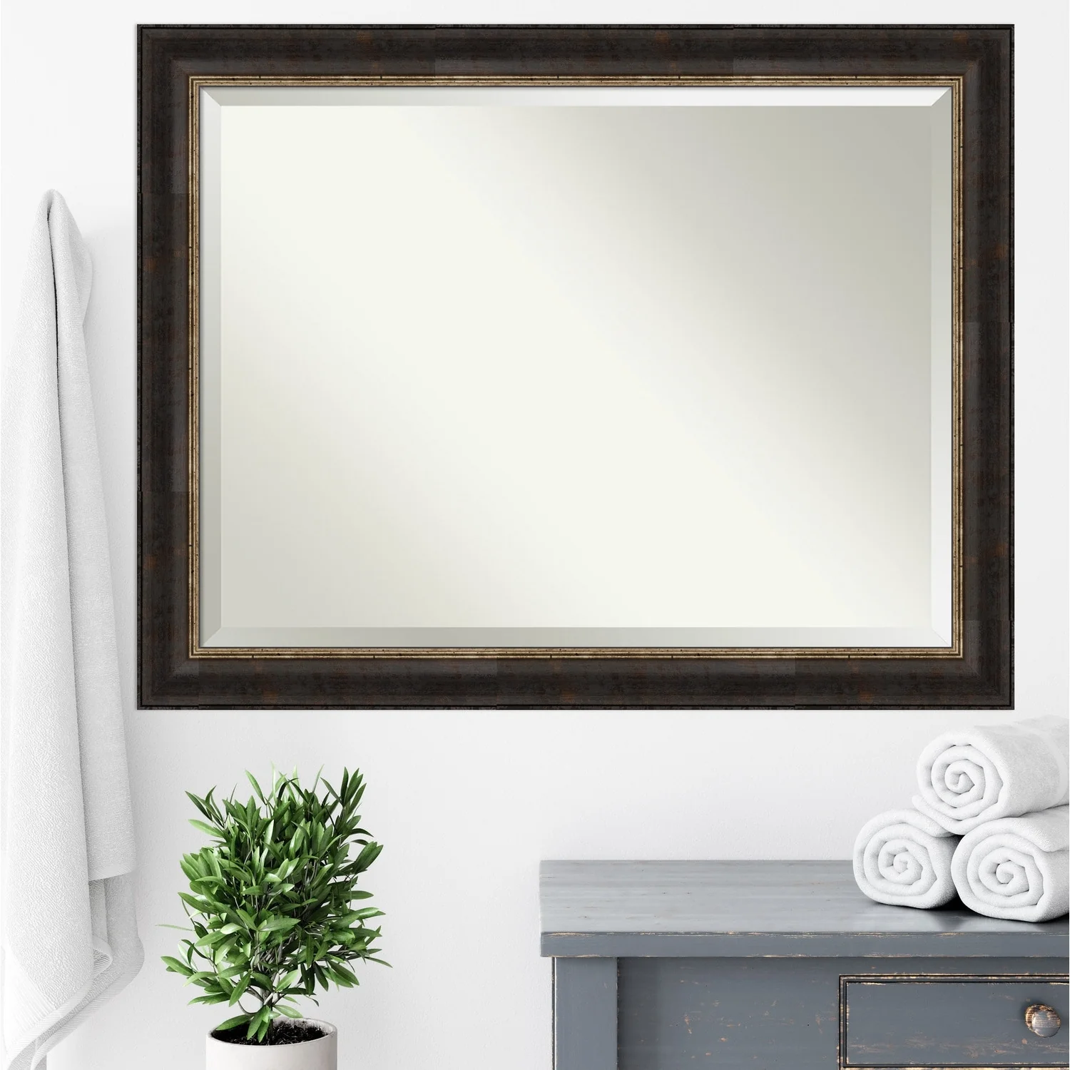 Beveled Bathroom Wall Mirror - Varied Black Frame - Varied Black