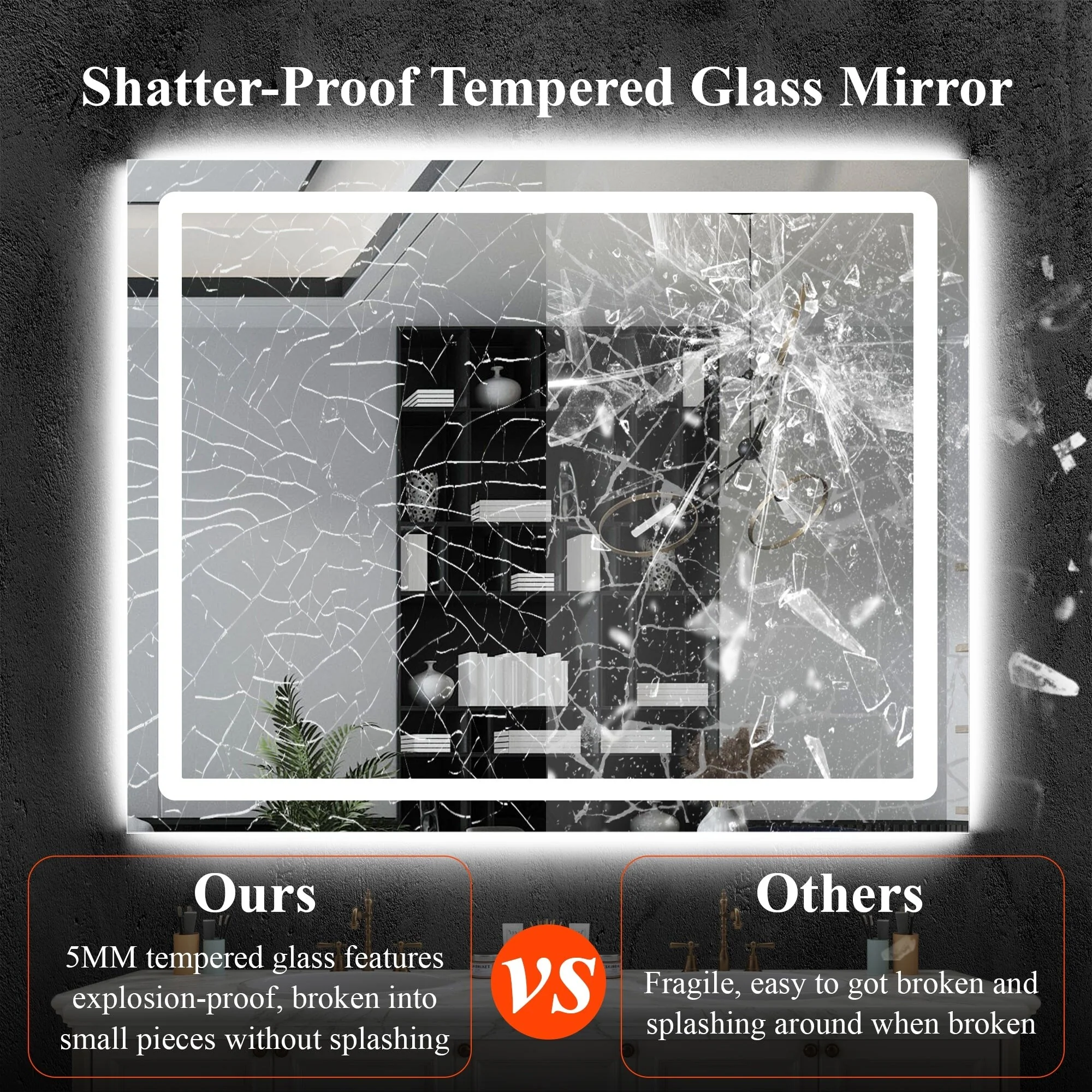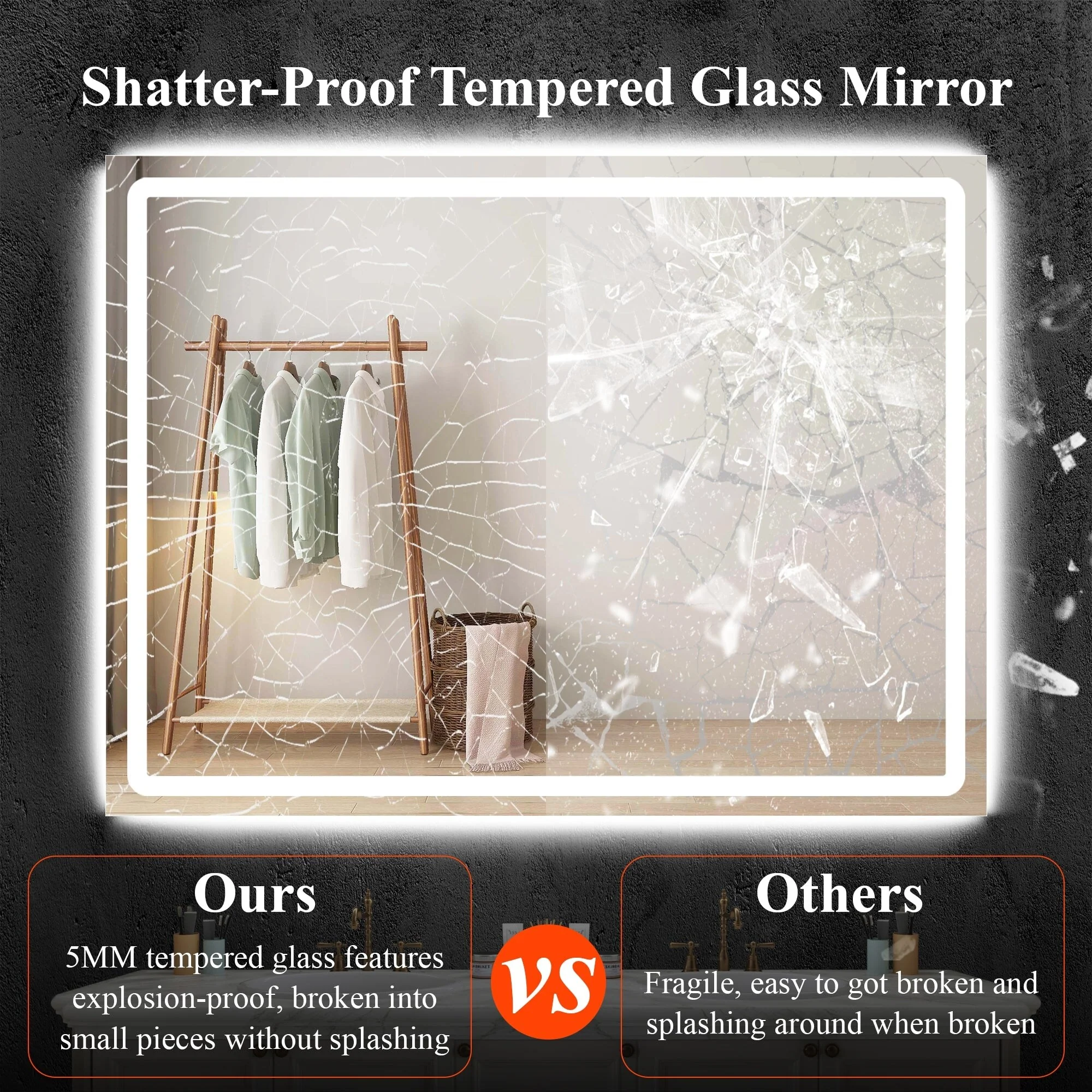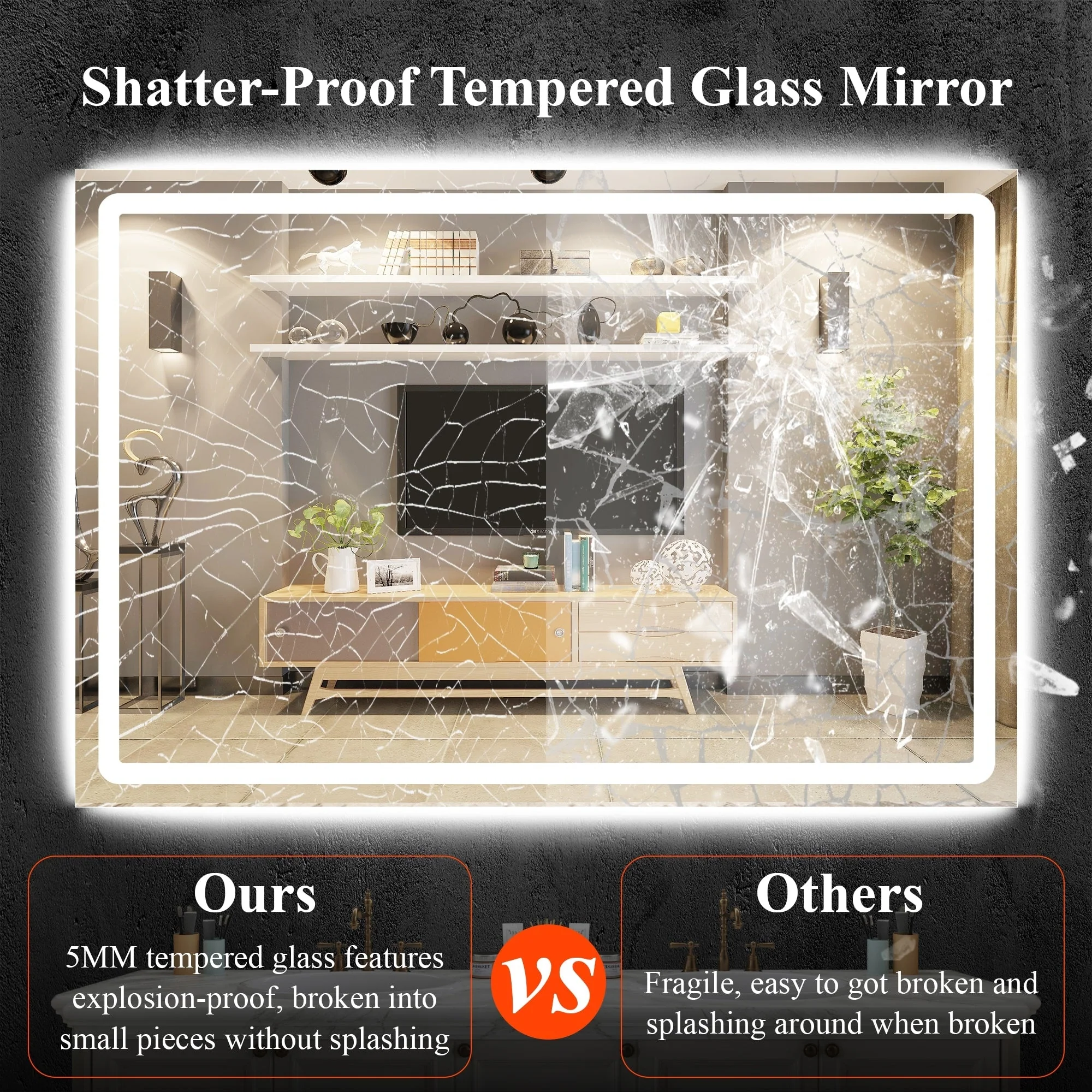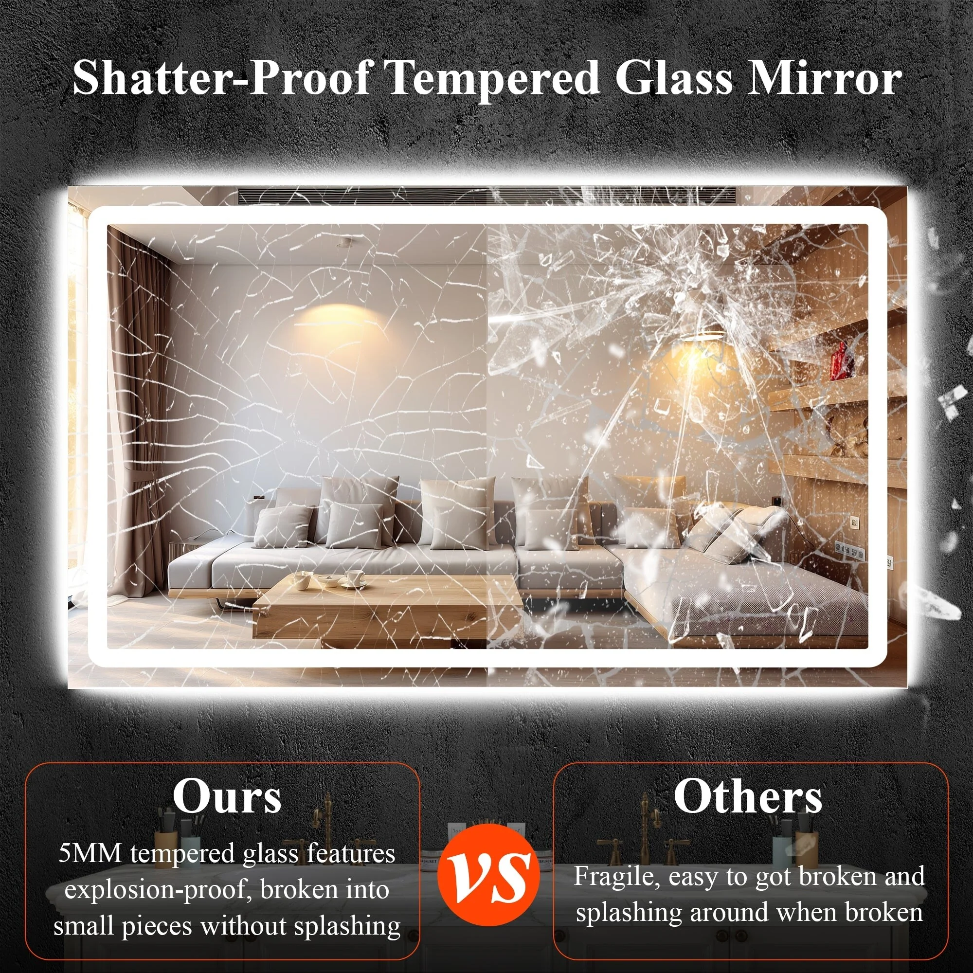 KIOTEE Rectangular LED Frontlit & RGB Backlit Anti-Fog Tempered Glass Bathroom Vanity Mirror with ETL and 3-Year Warranty