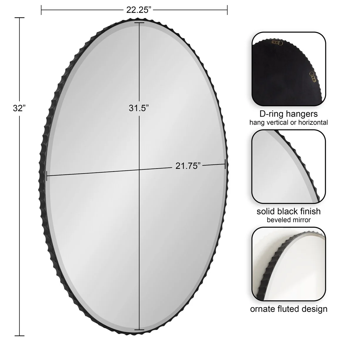 Kate and Laurel Elmora Fluted Oval Wall Mirror