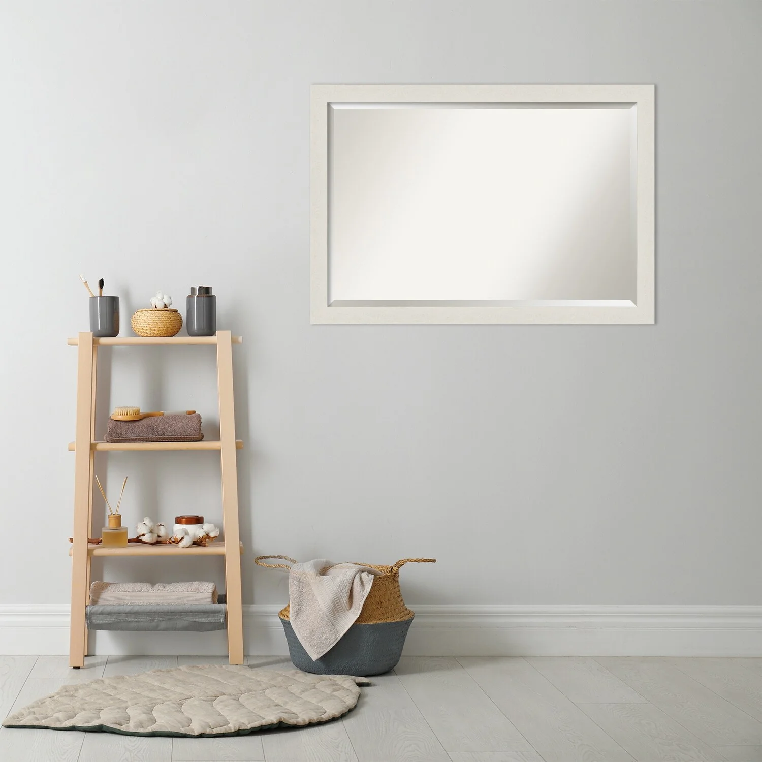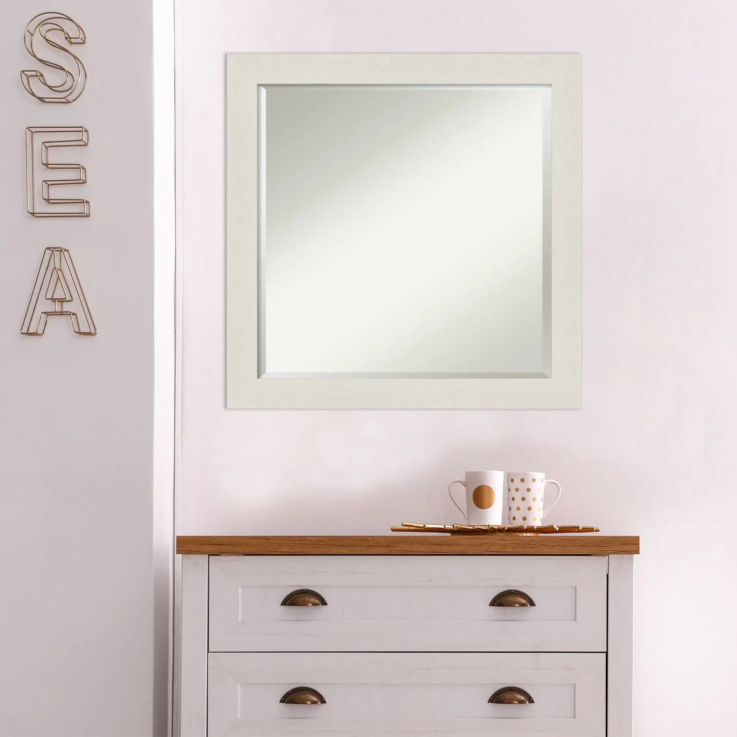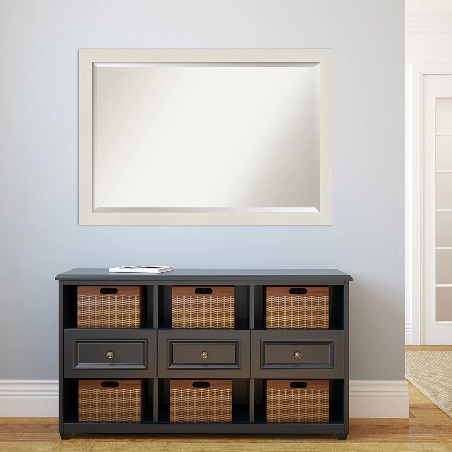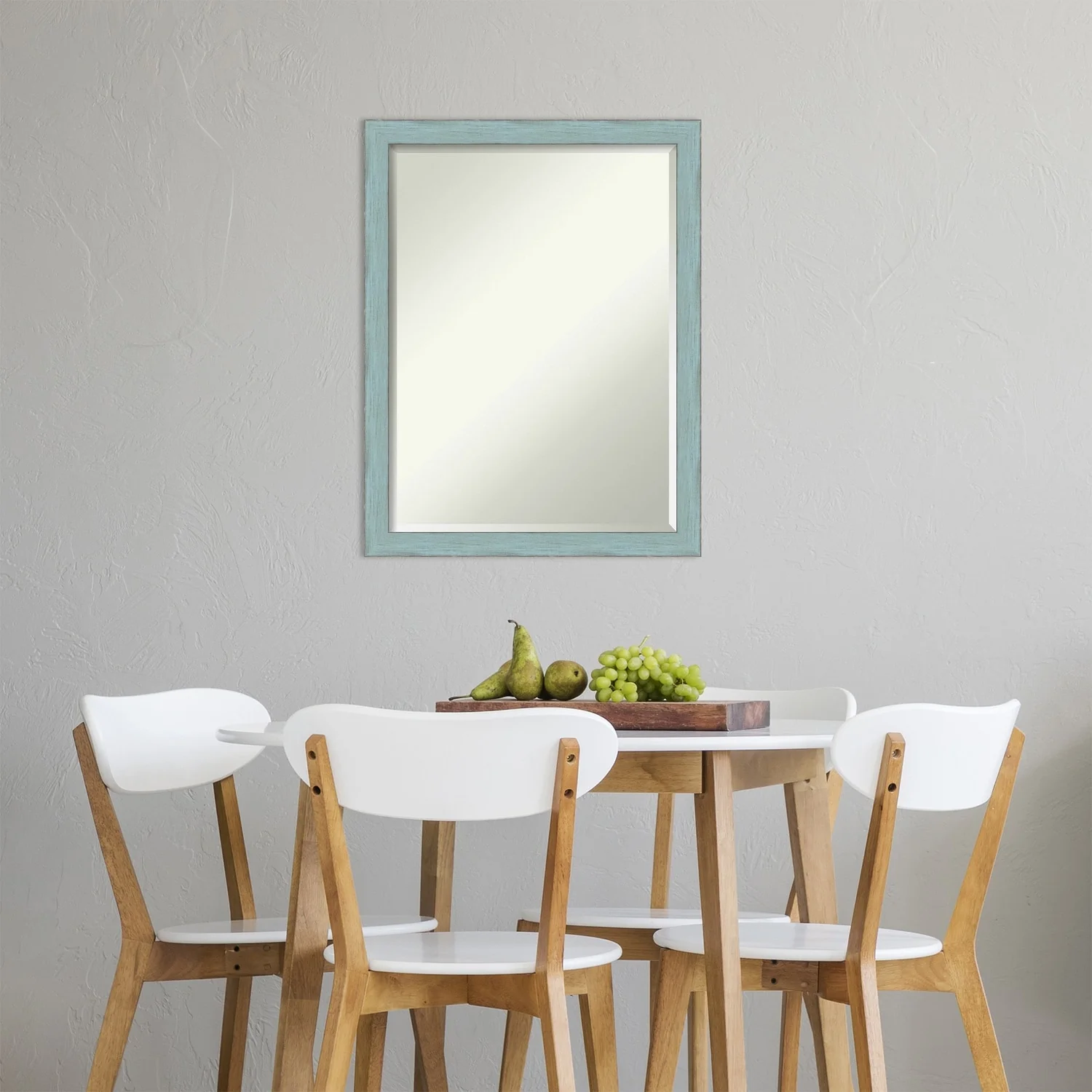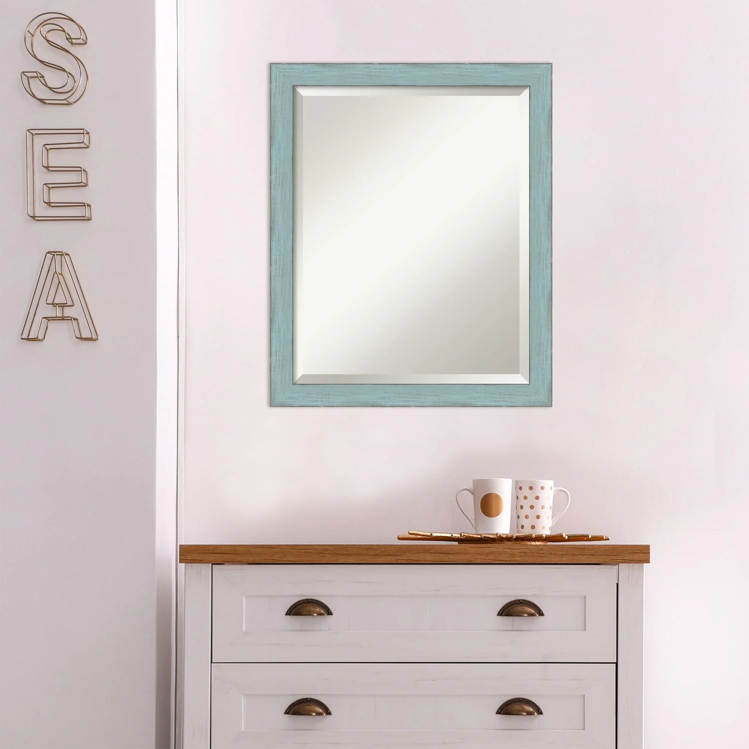 Beveled Wood Wall Mirror - Sky Blue Rustic Frame
