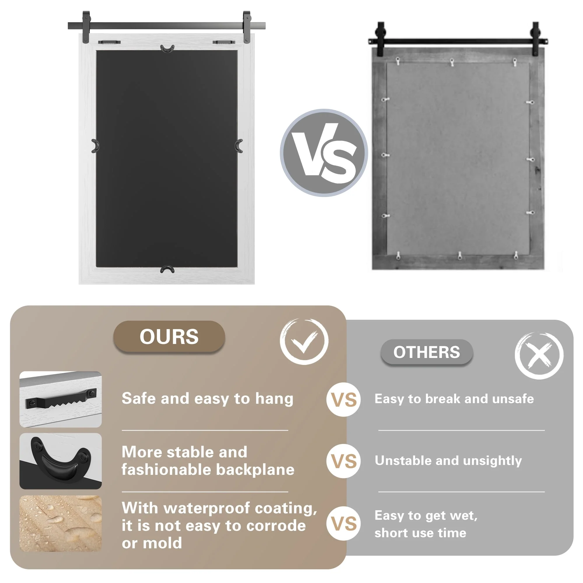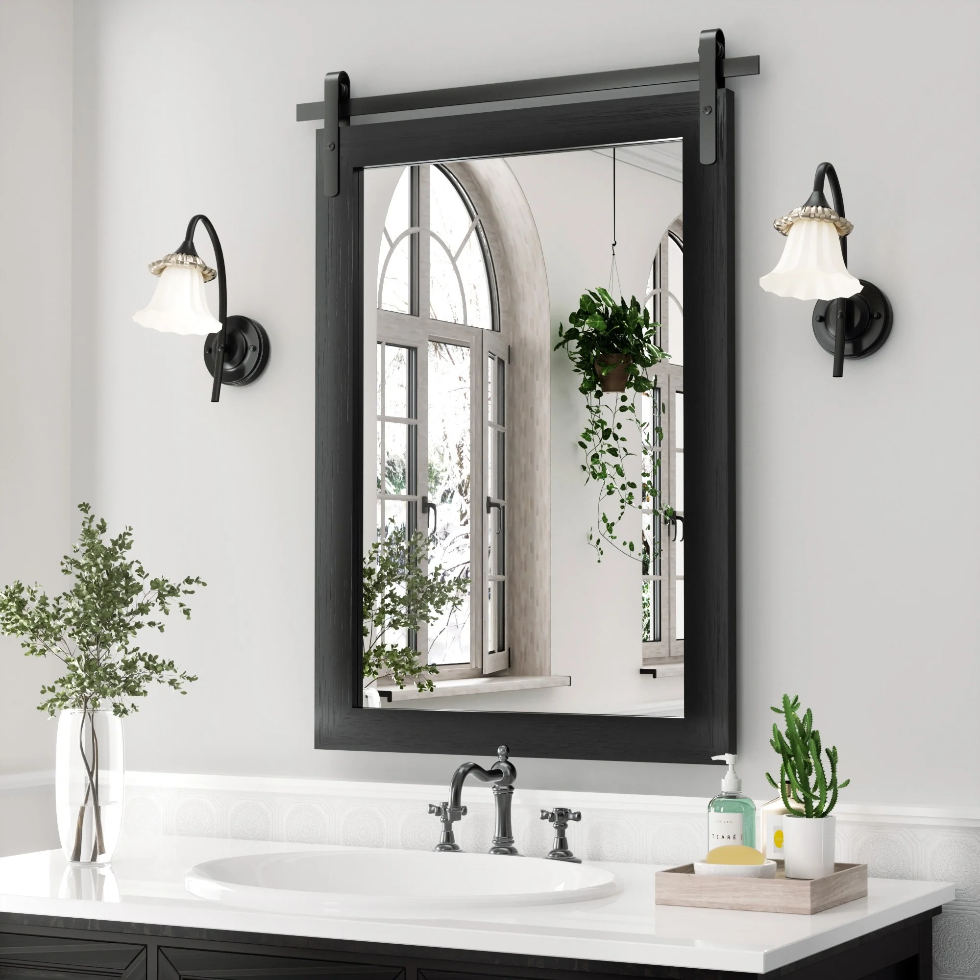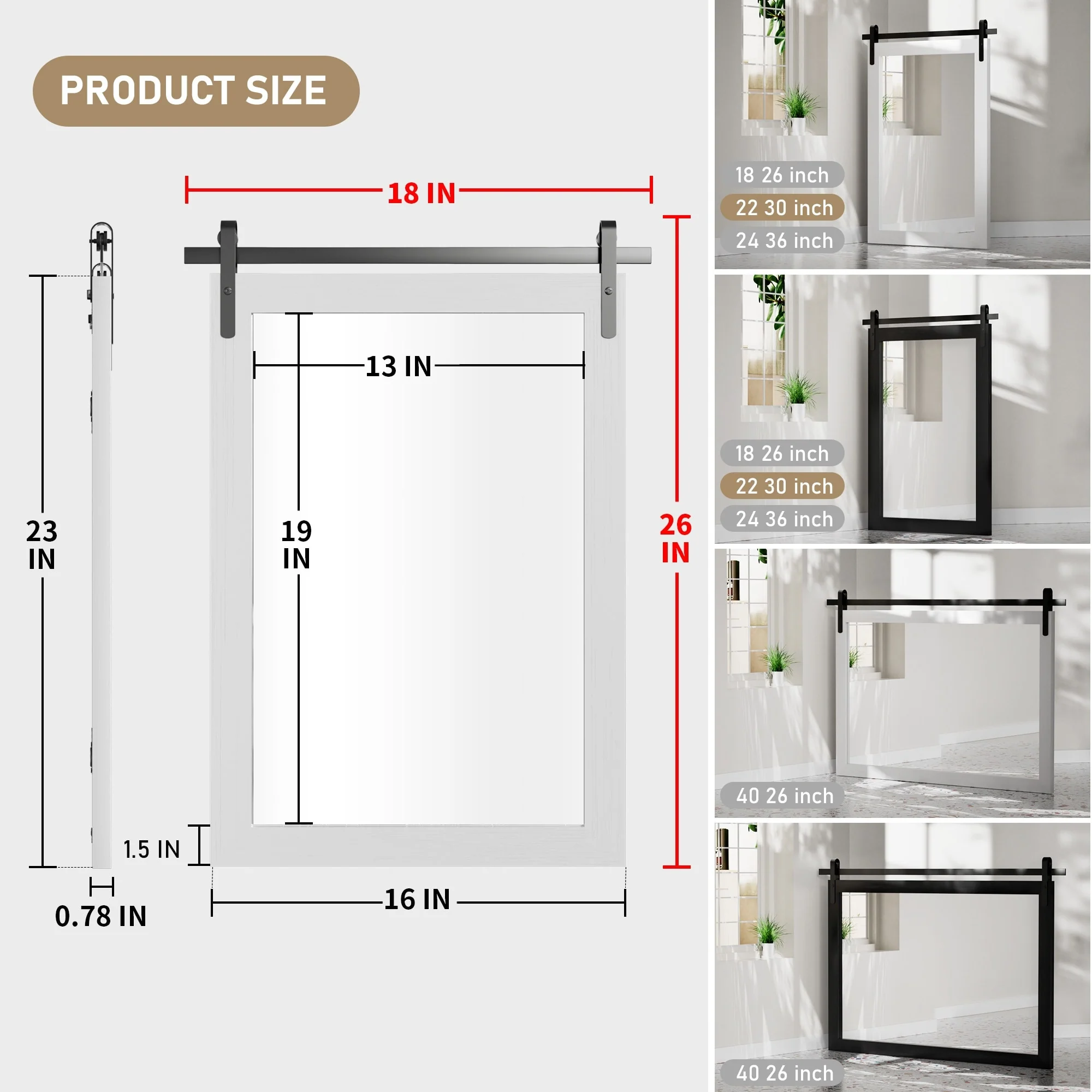 Modern Wall Mirrors, Rectangular Mirror with Wood Framed, Bathroom Mirror Barn Mirror Barn Door Mirror with Multi Size