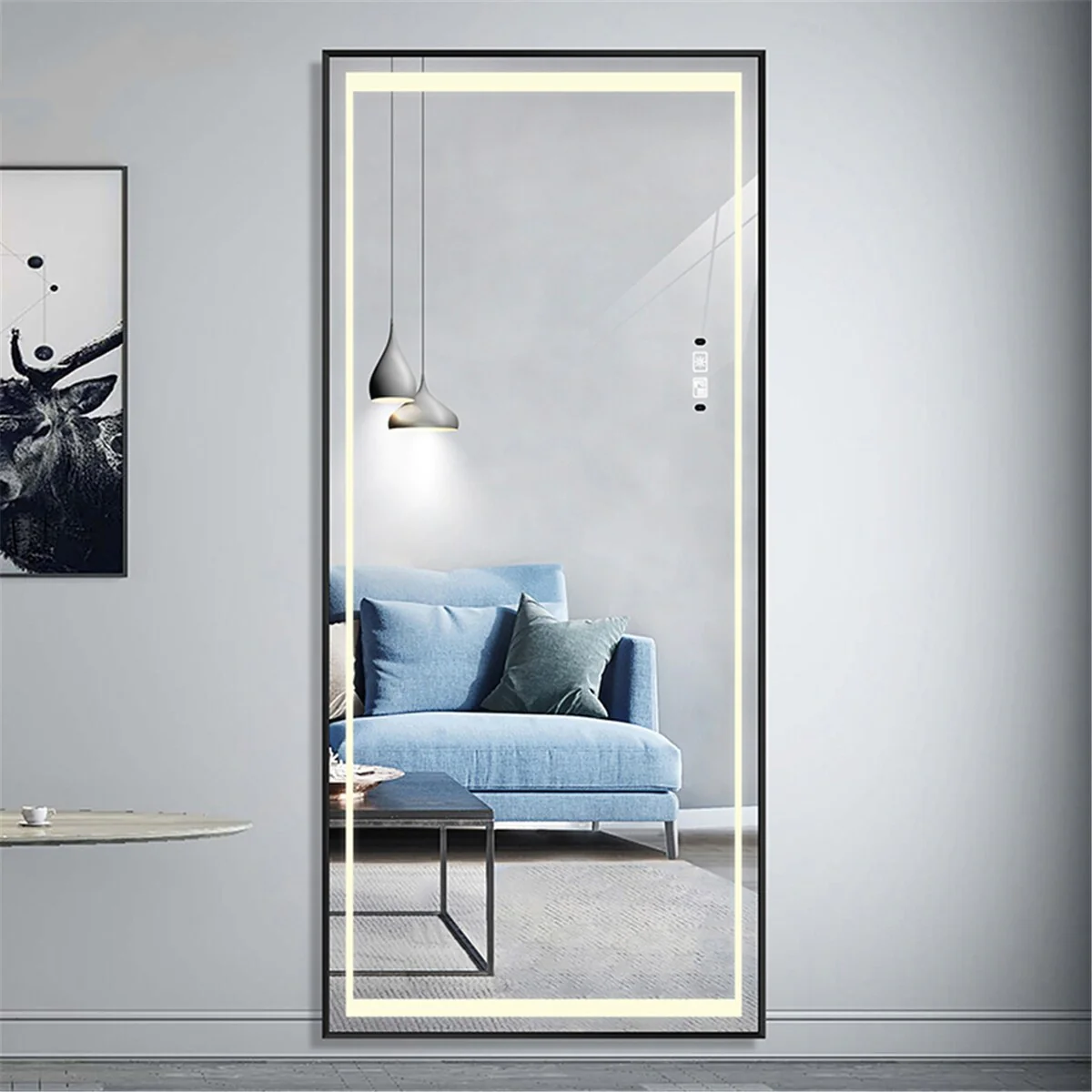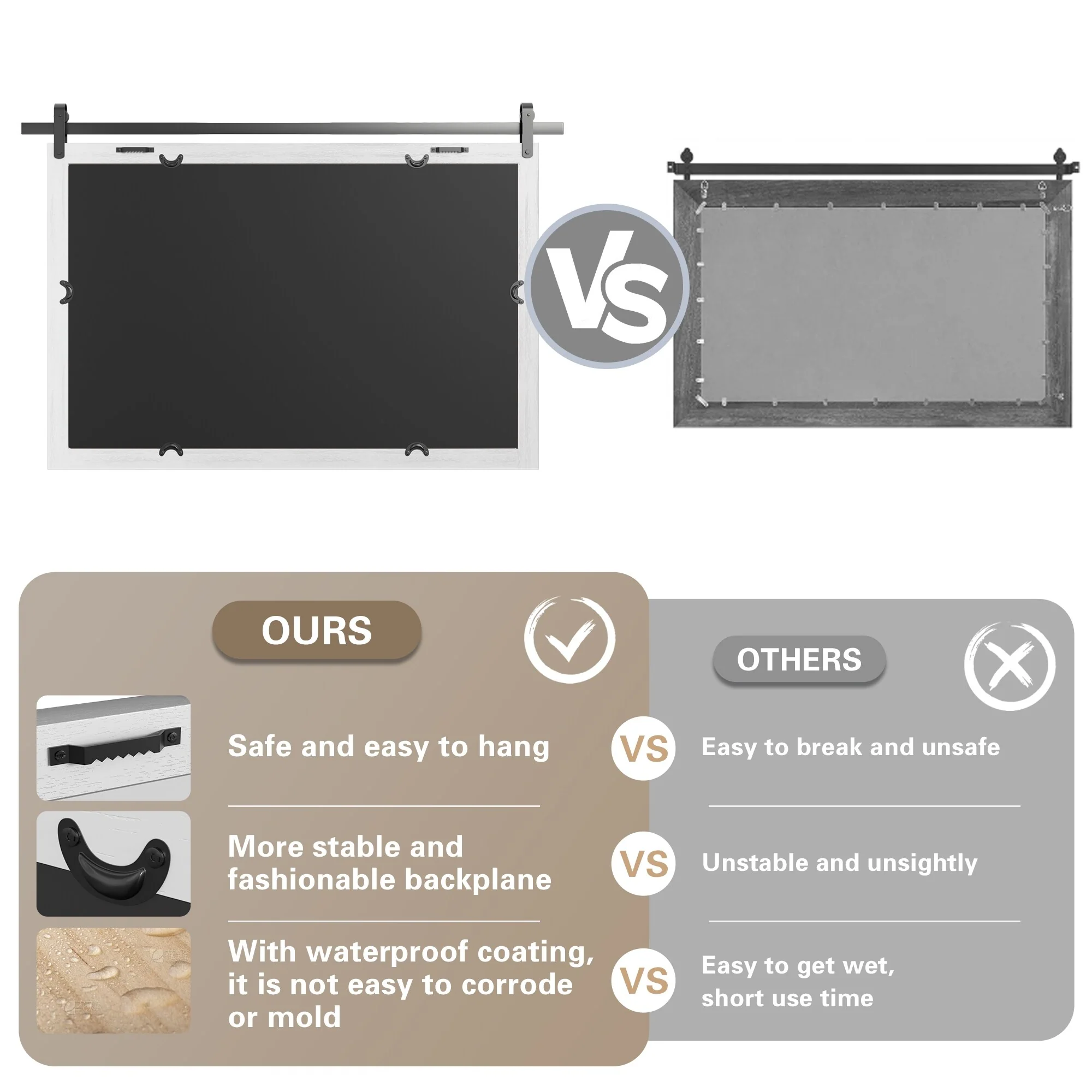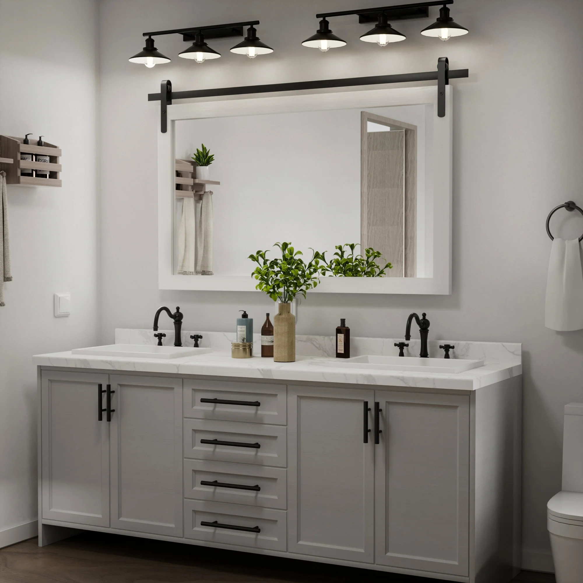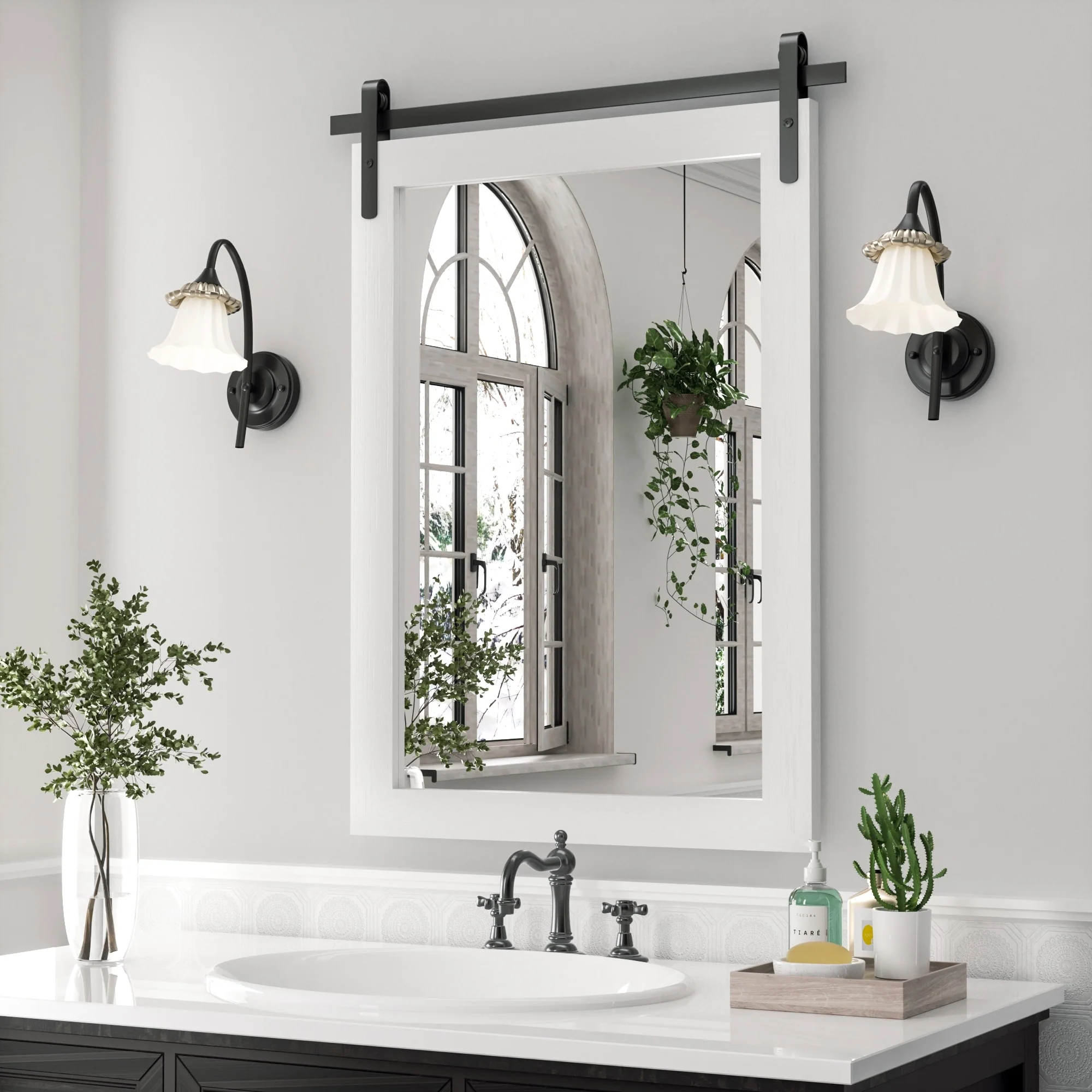 Modern Wall Mirrors, Rectangular Mirror with Wood Framed, Bathroom Mirror Barn Mirror Barn Door Mirror with Multi Size