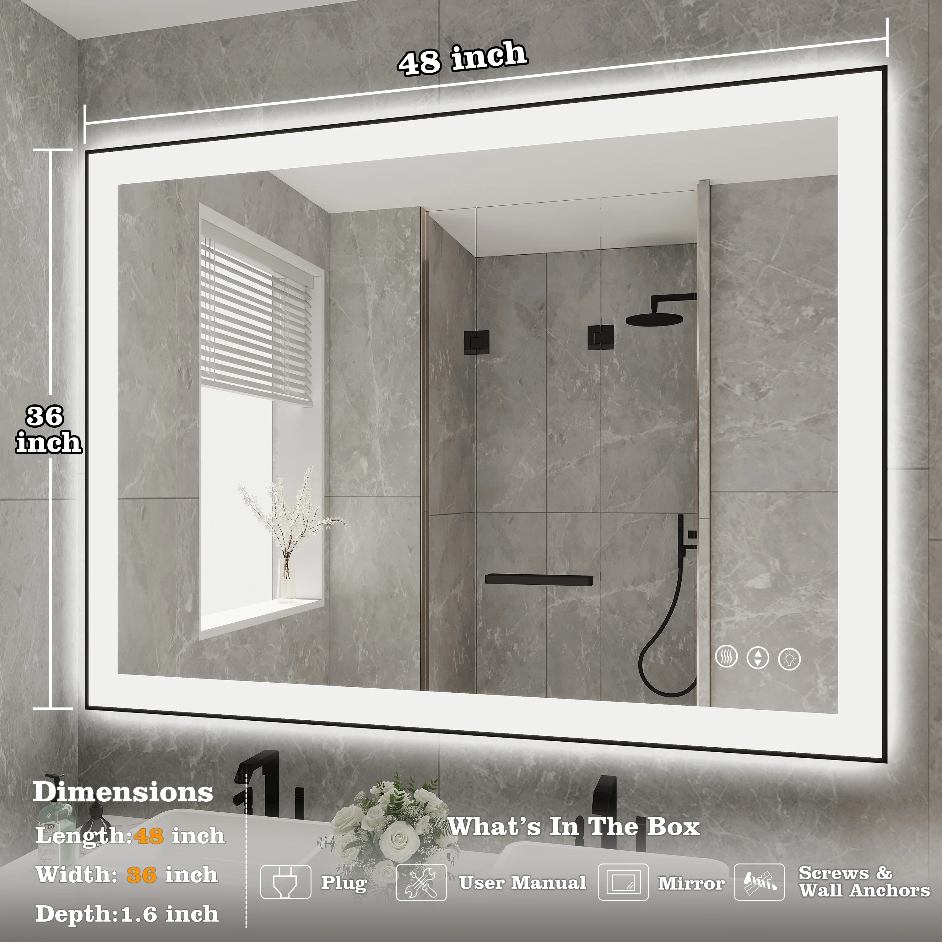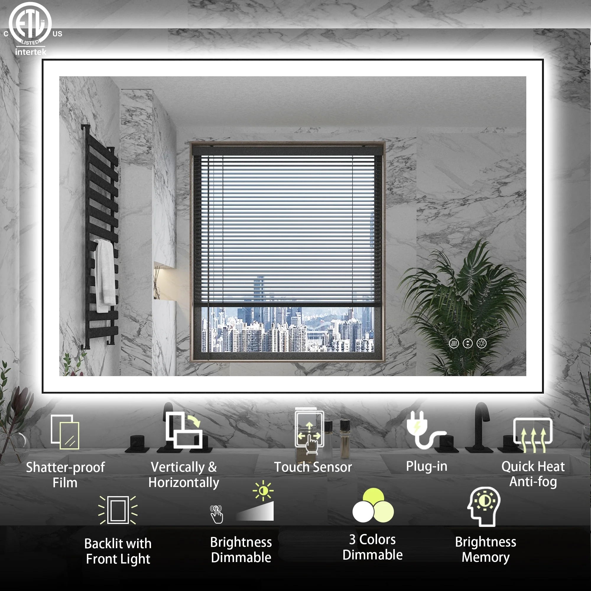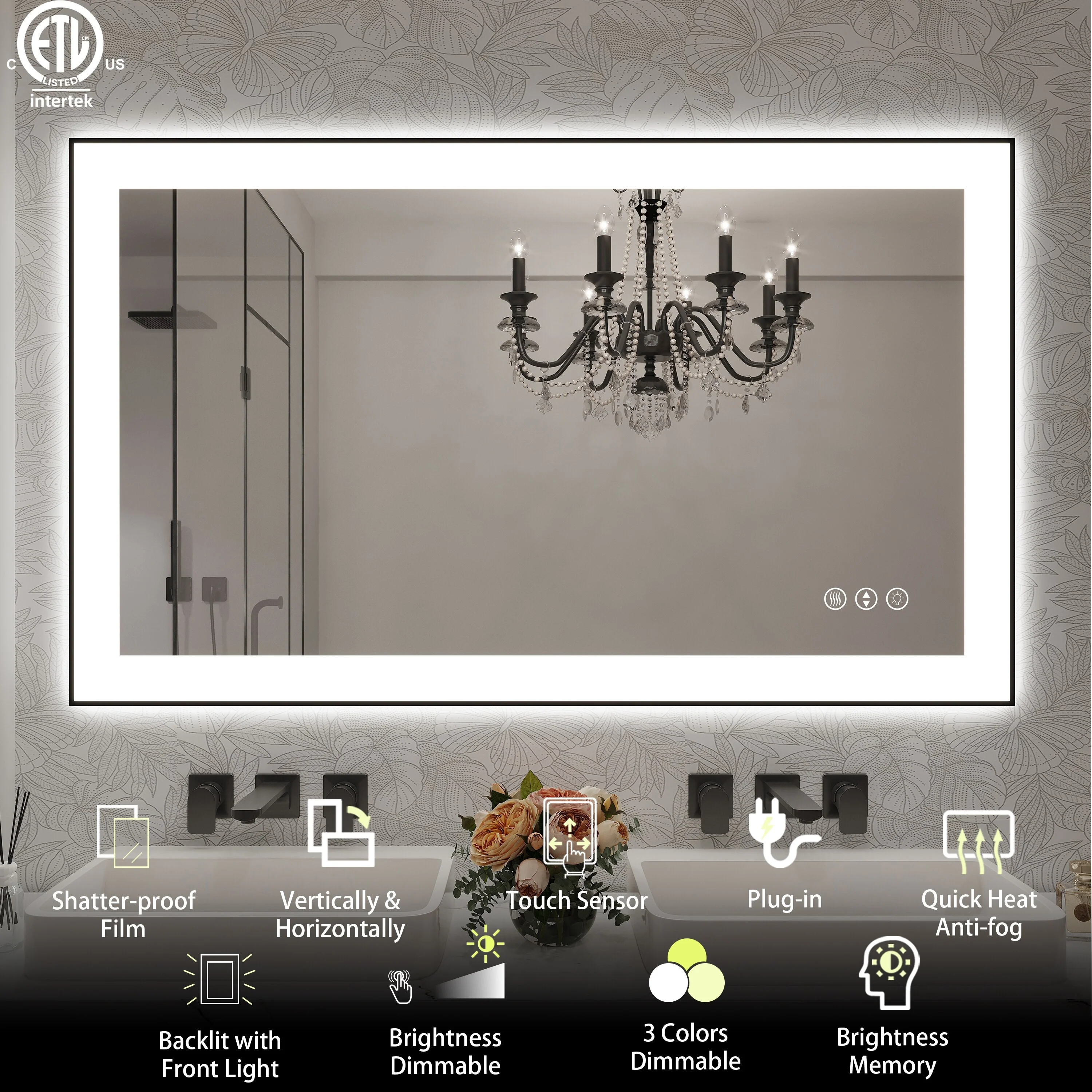 Led Illuminated Backlit Bathroom Mirror with Touch Sensor Demister