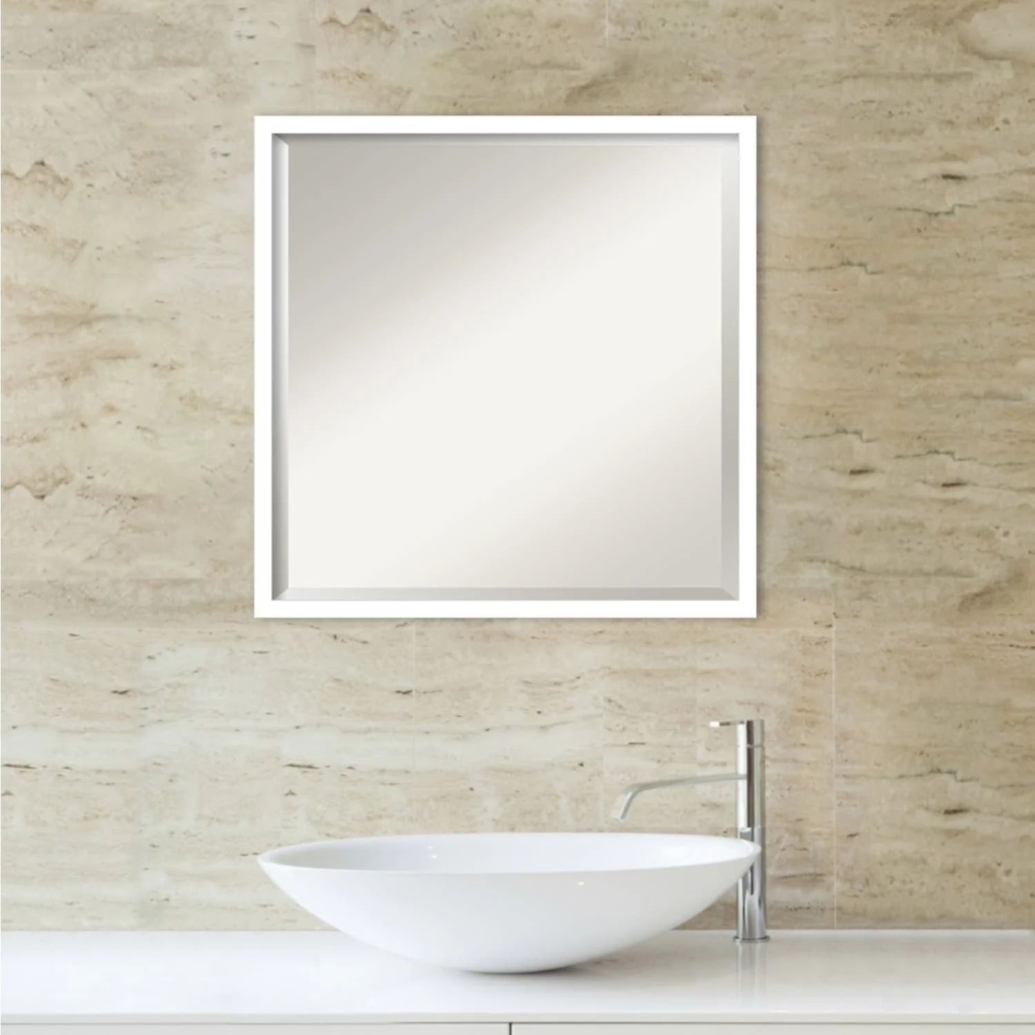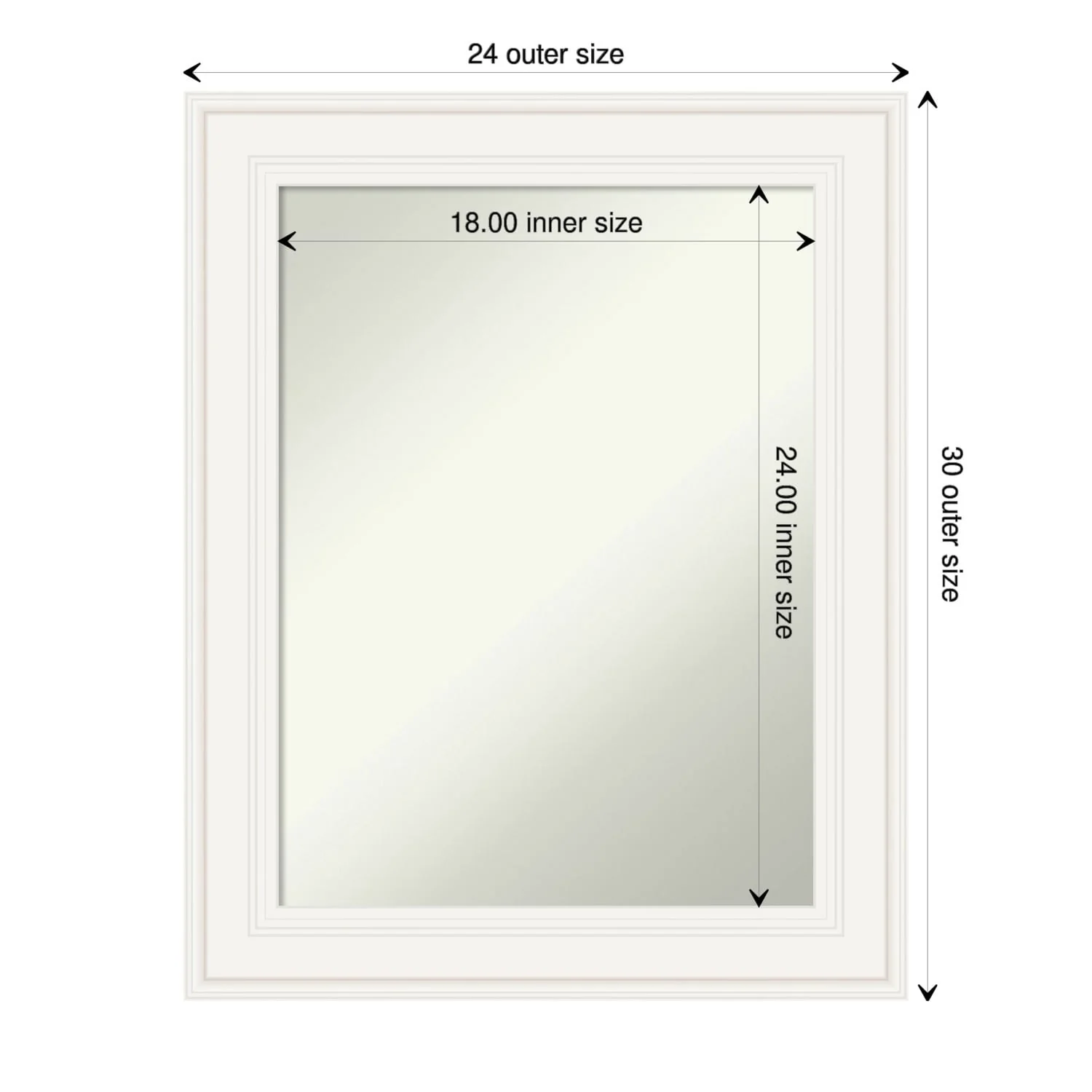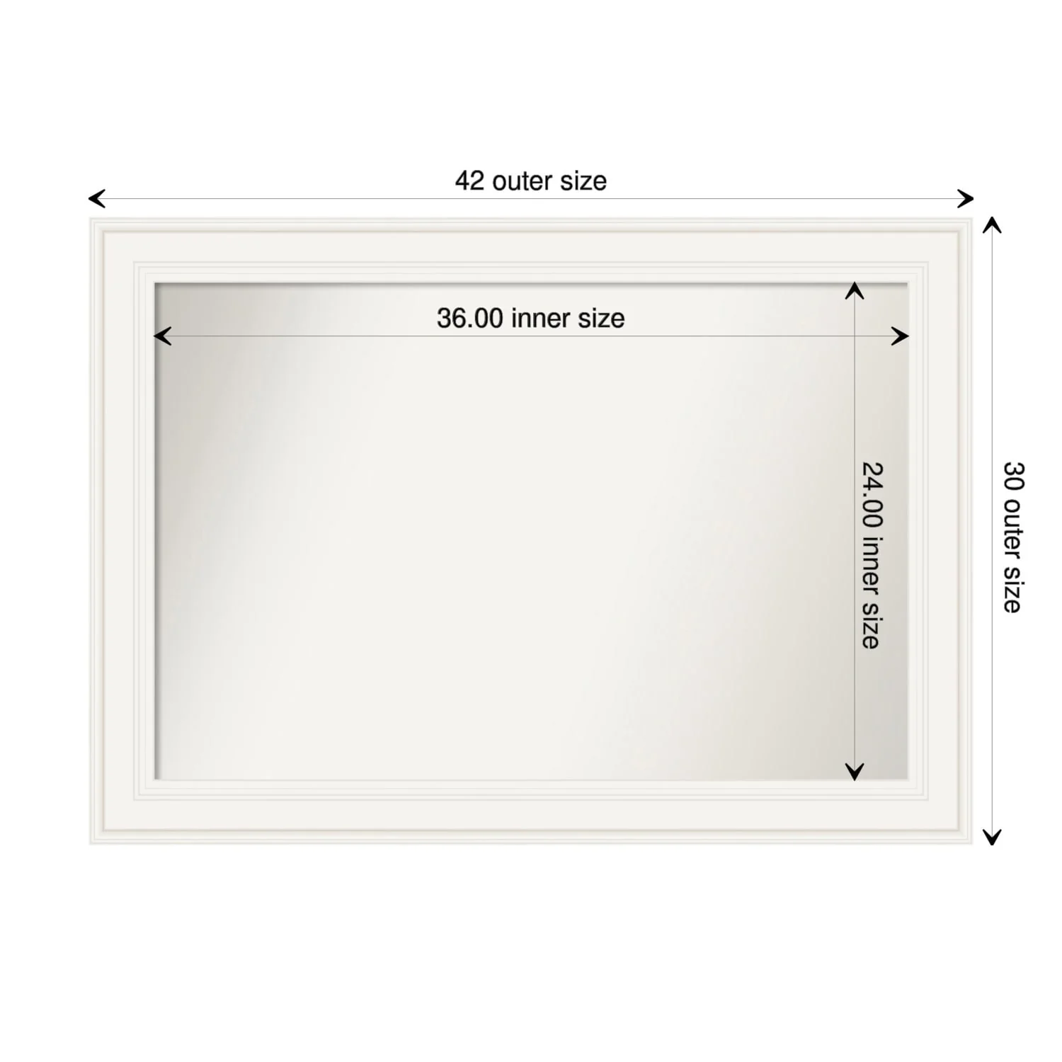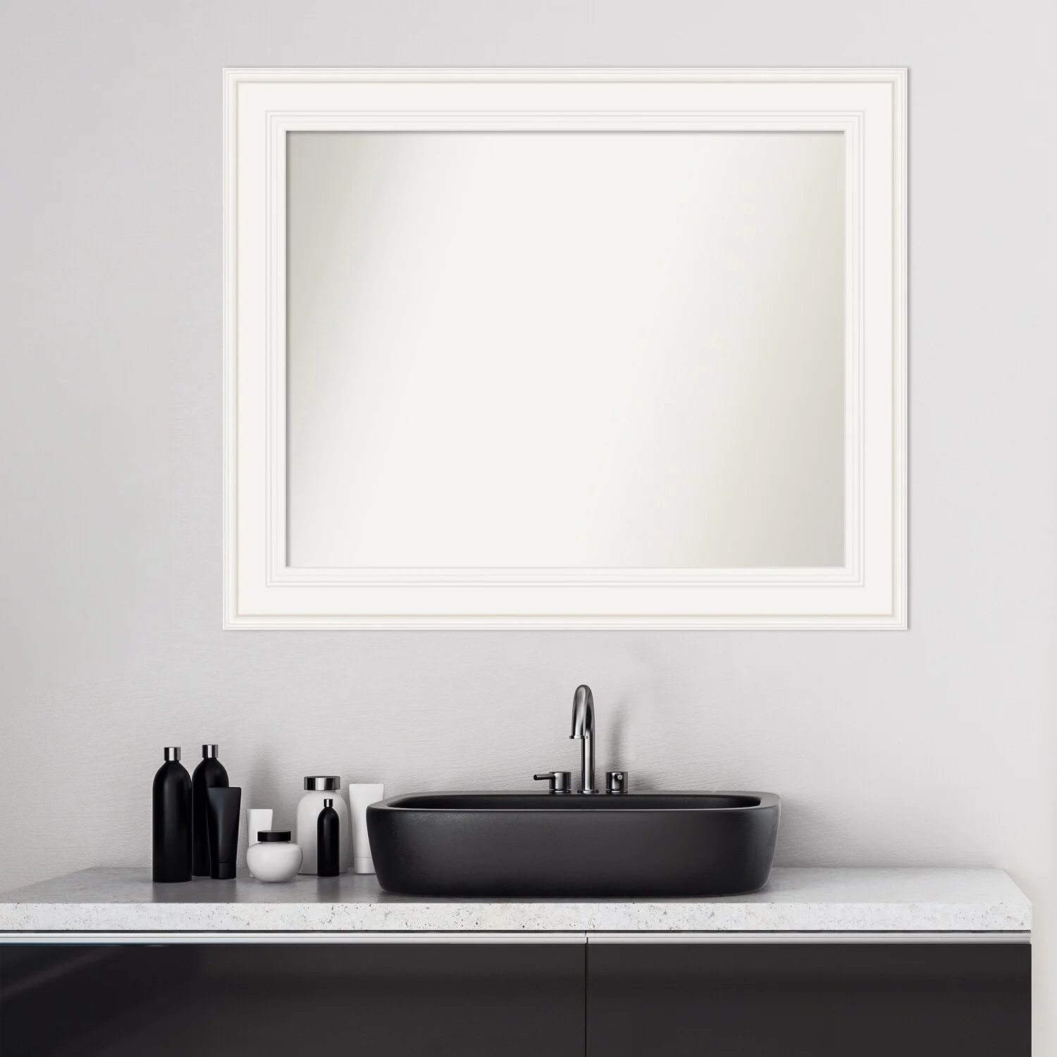 Non-Beveled Bathroom Wall Mirror - Ridge White Frame - Ridge White
