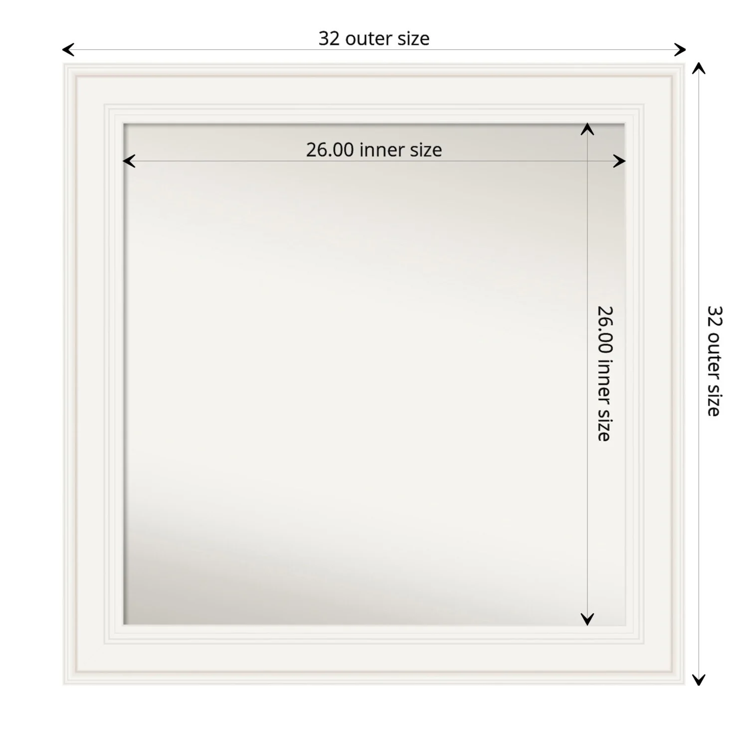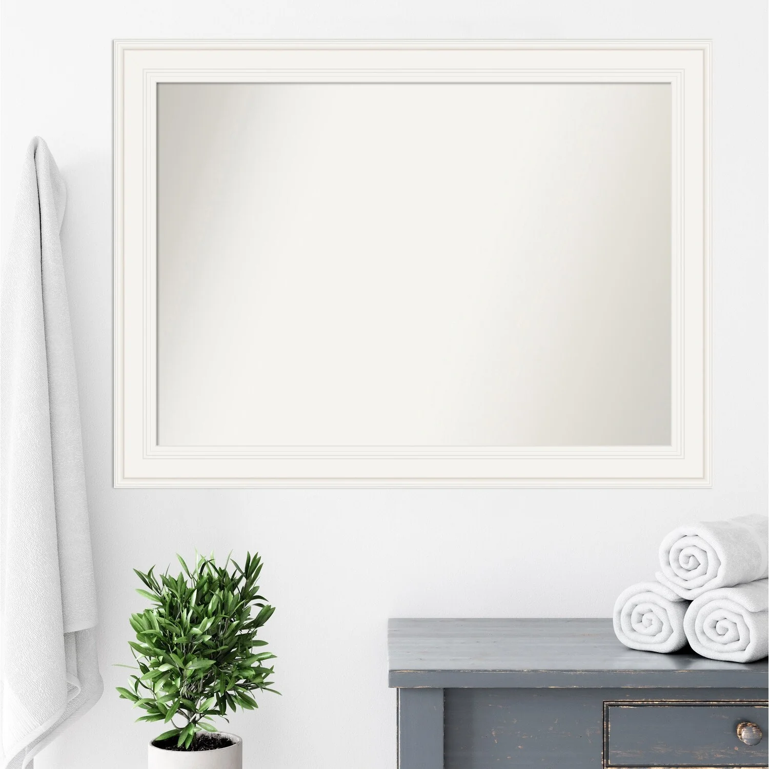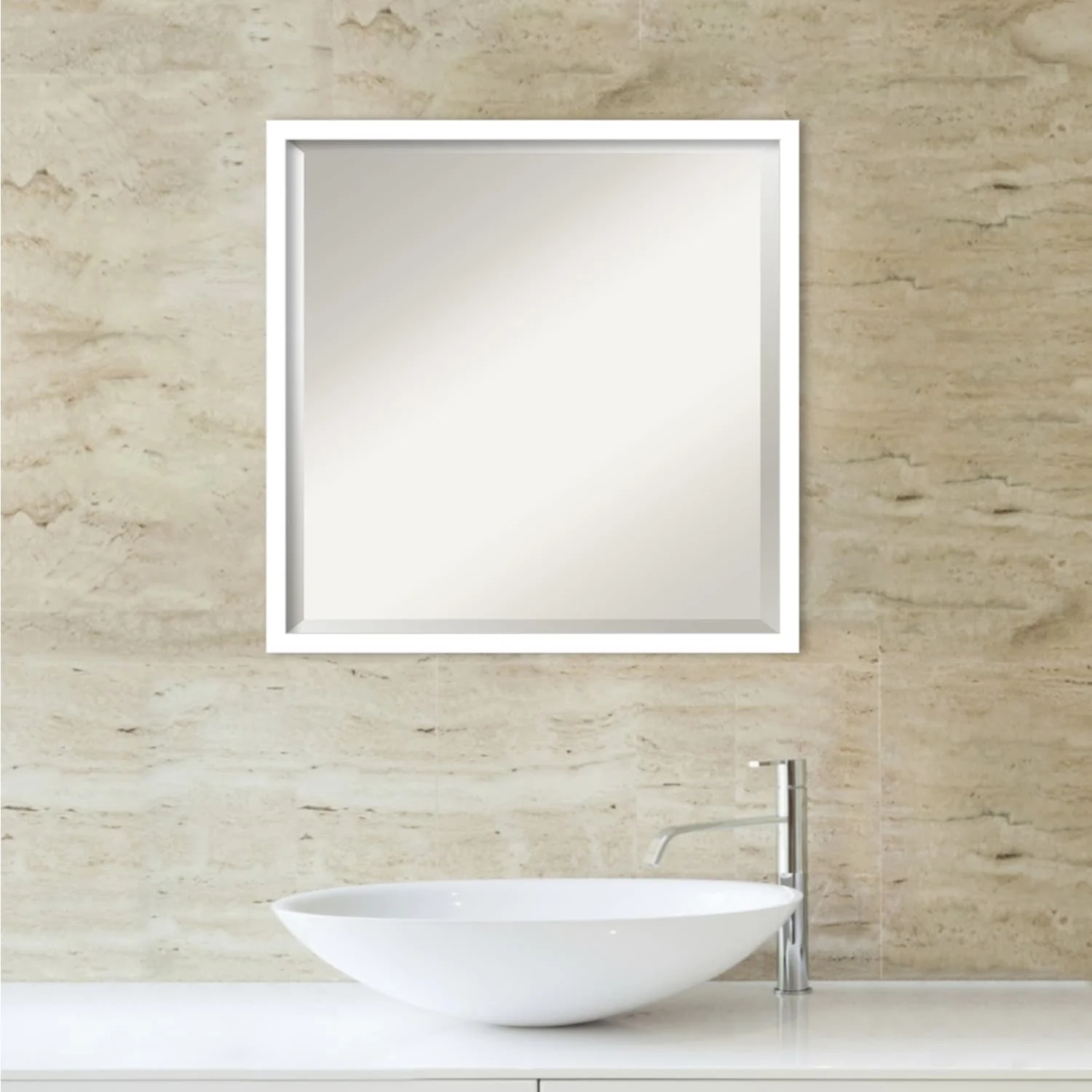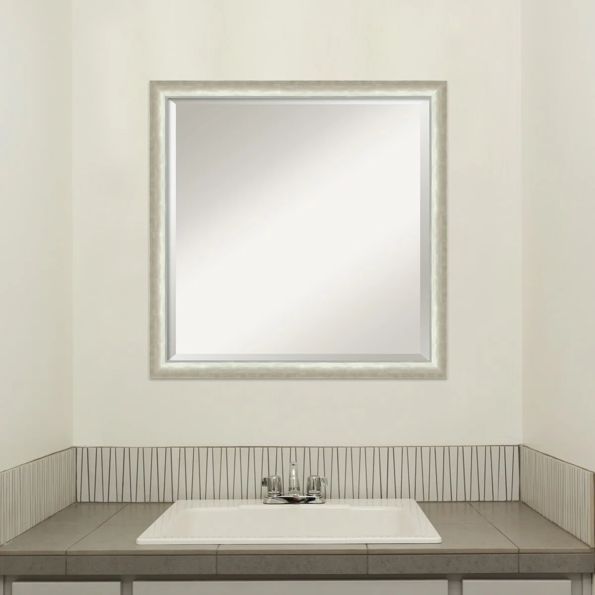 Non-Beveled Bathroom Wall Mirror - Ridge White Frame - Ridge White