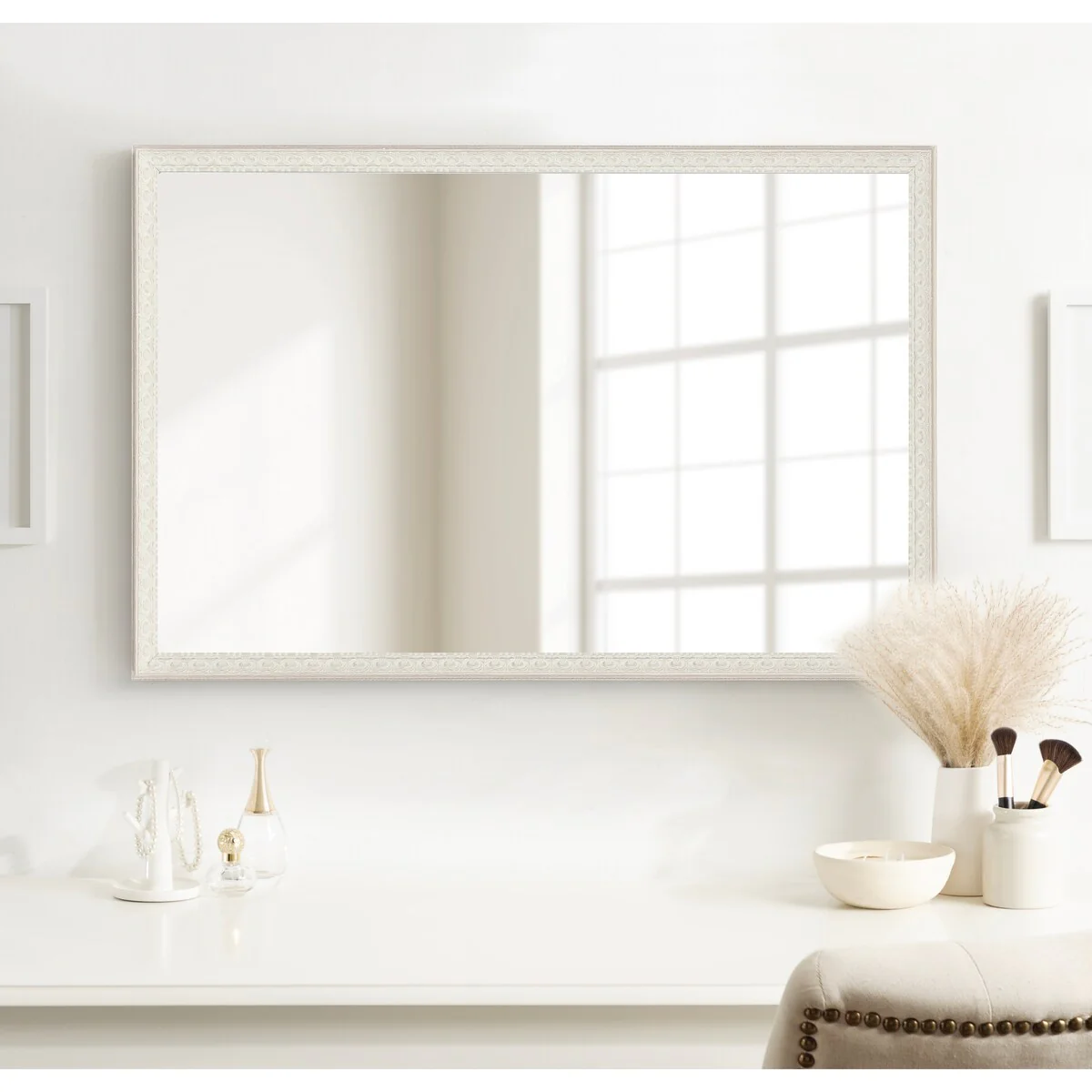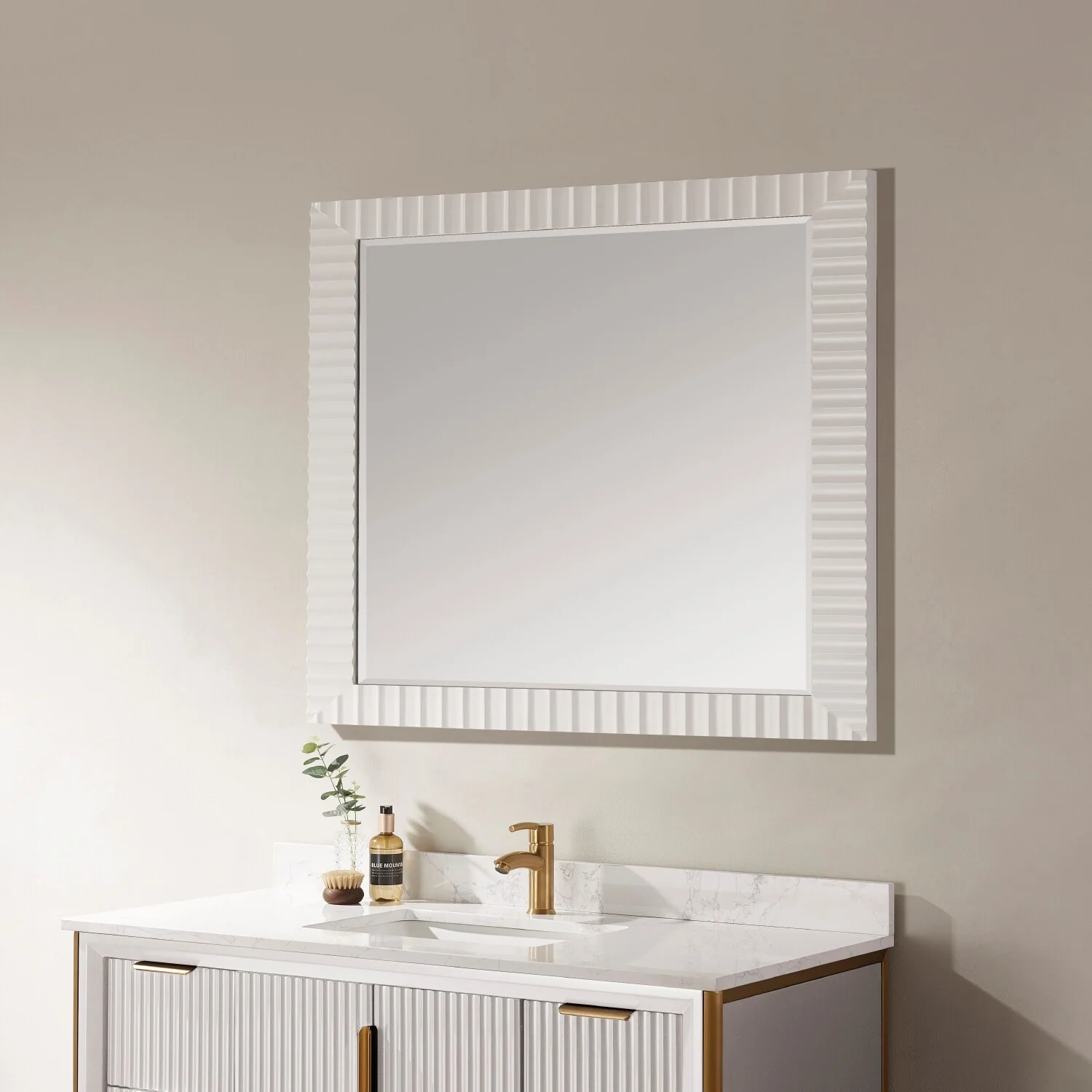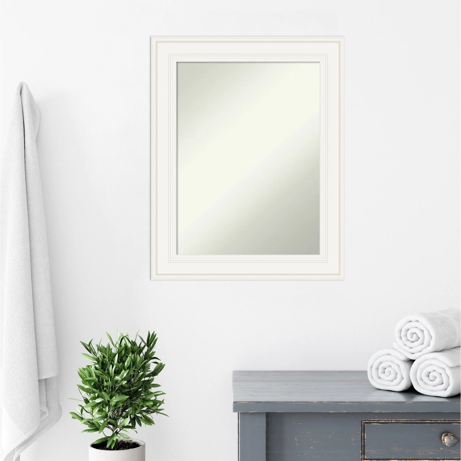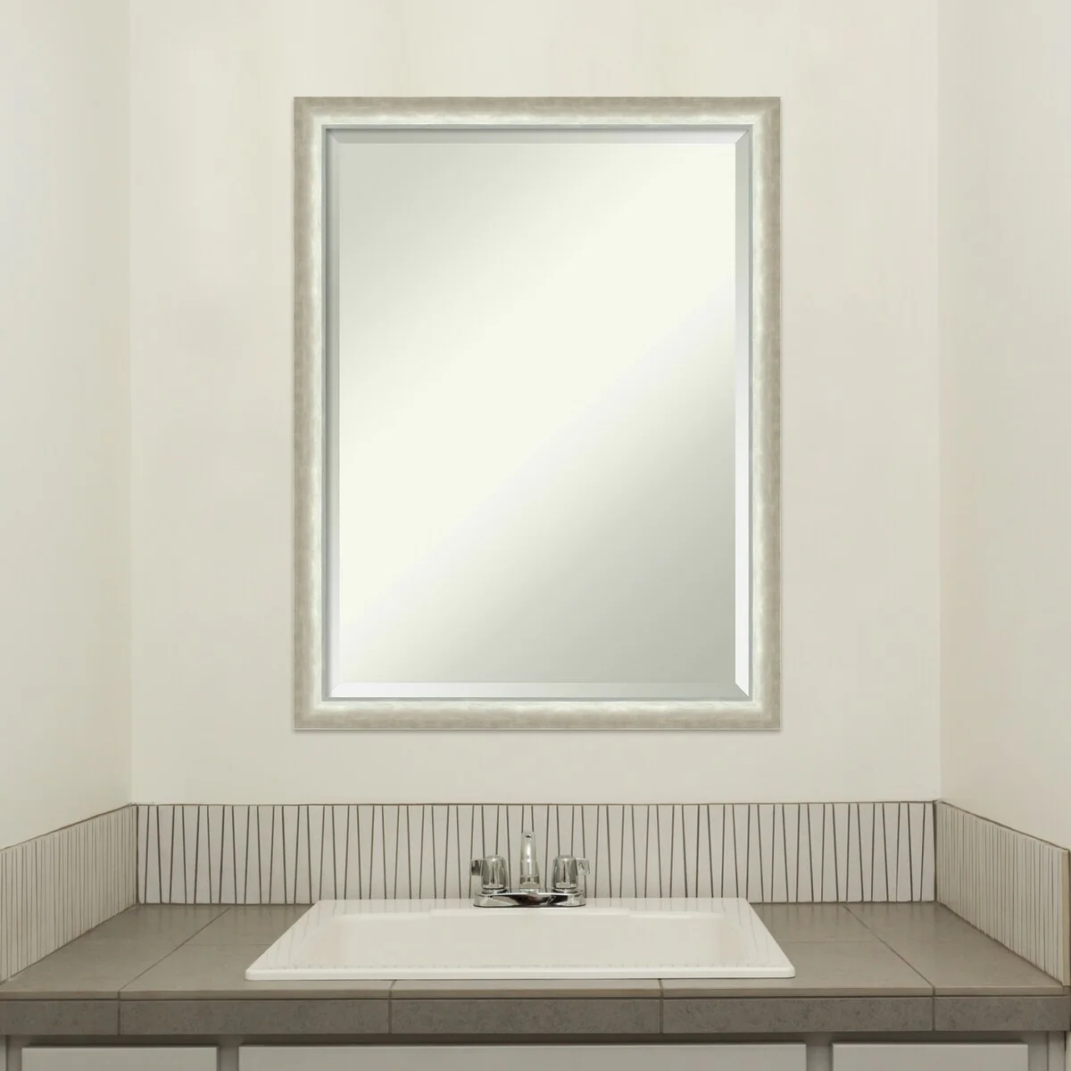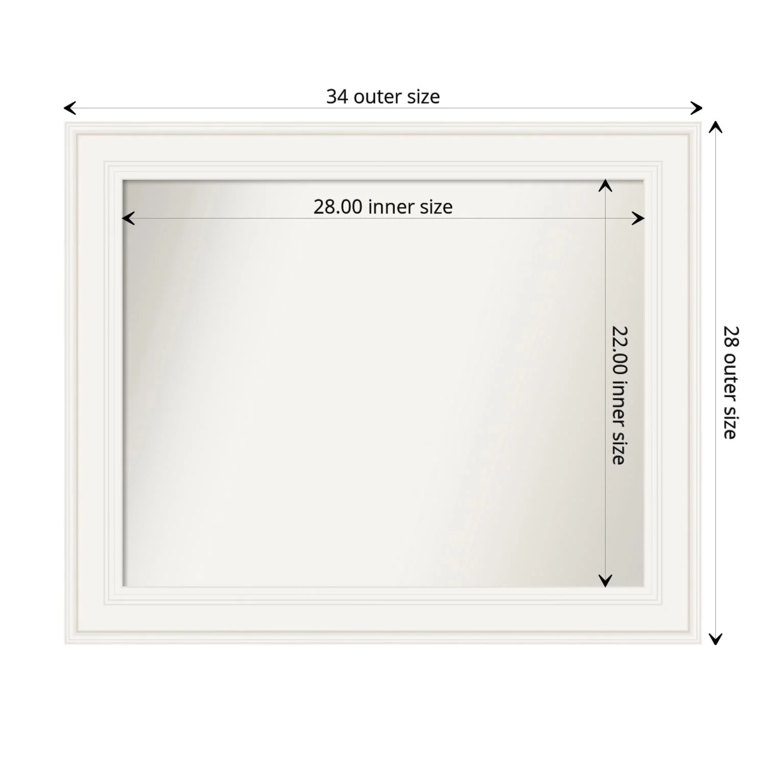 Non-Beveled Bathroom Wall Mirror - Ridge White Frame - Ridge White
