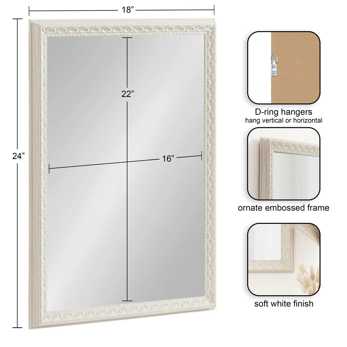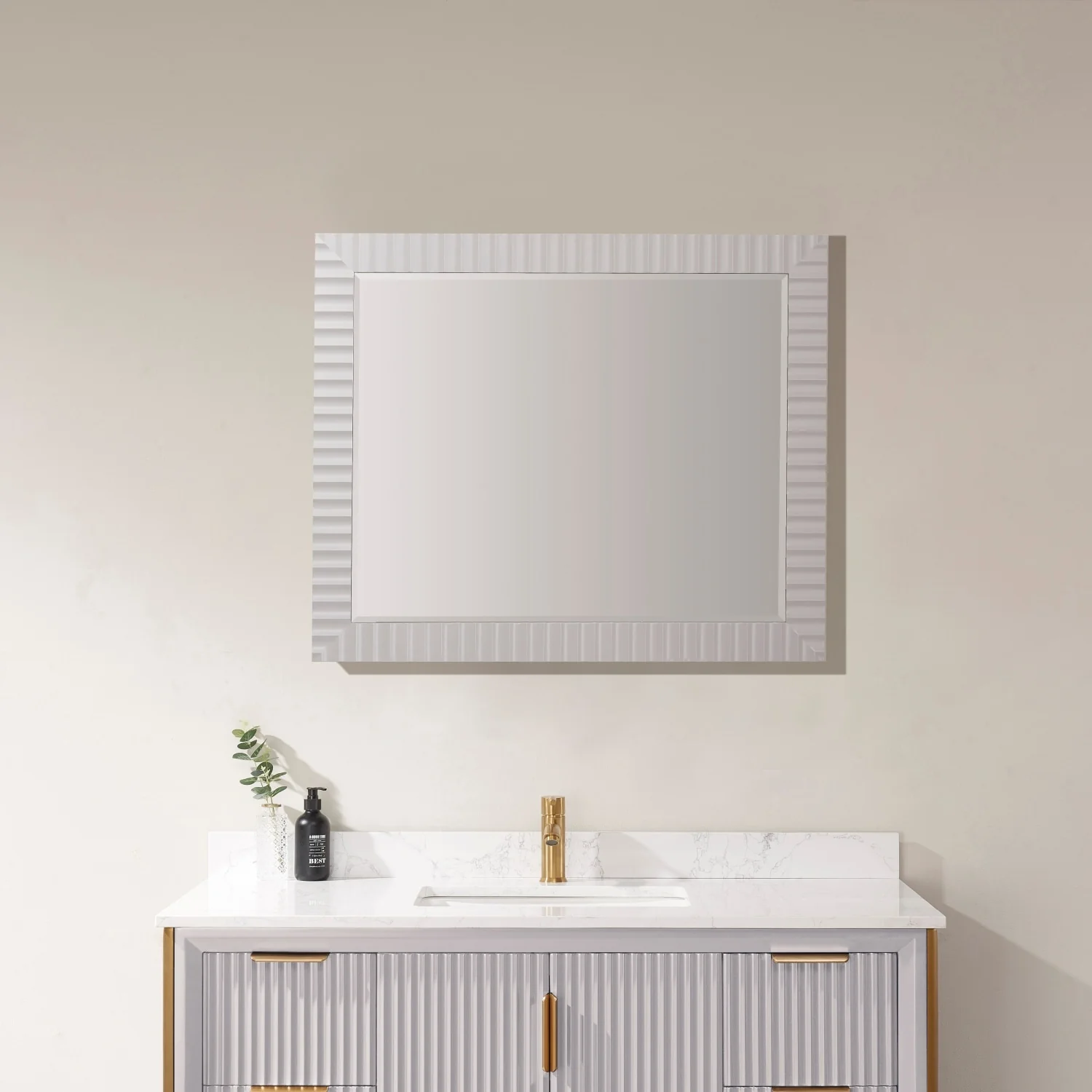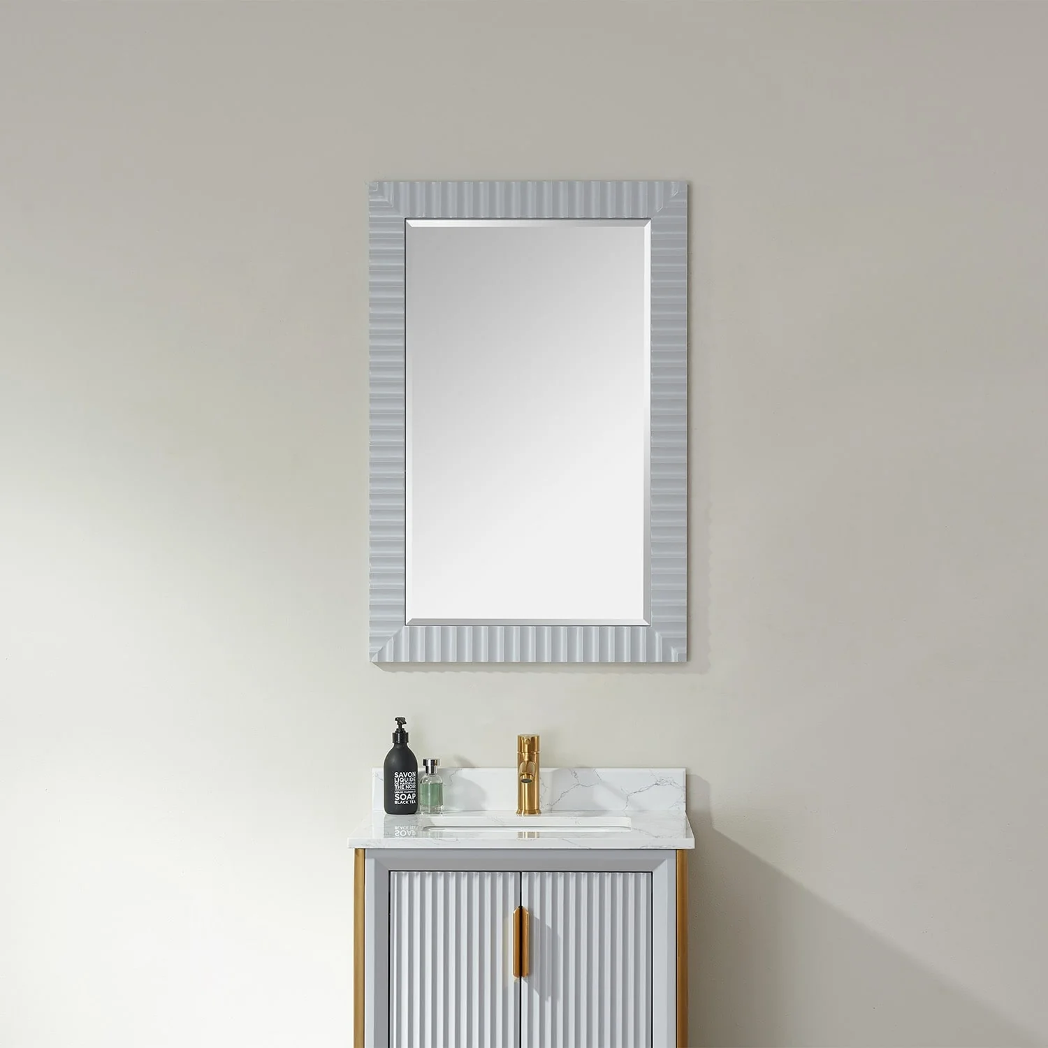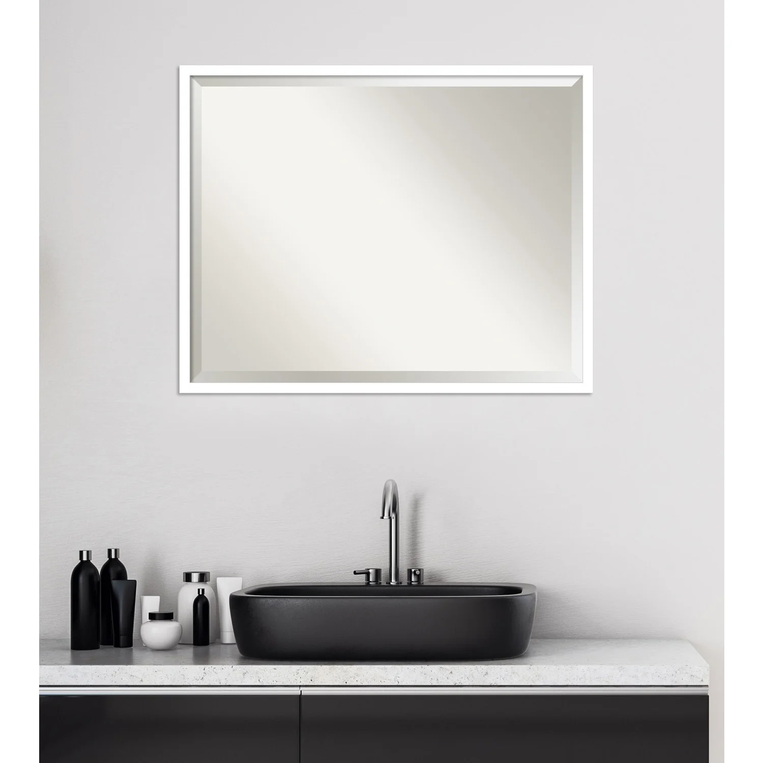 Non-Beveled Bathroom Wall Mirror - Ridge White Frame - Ridge White