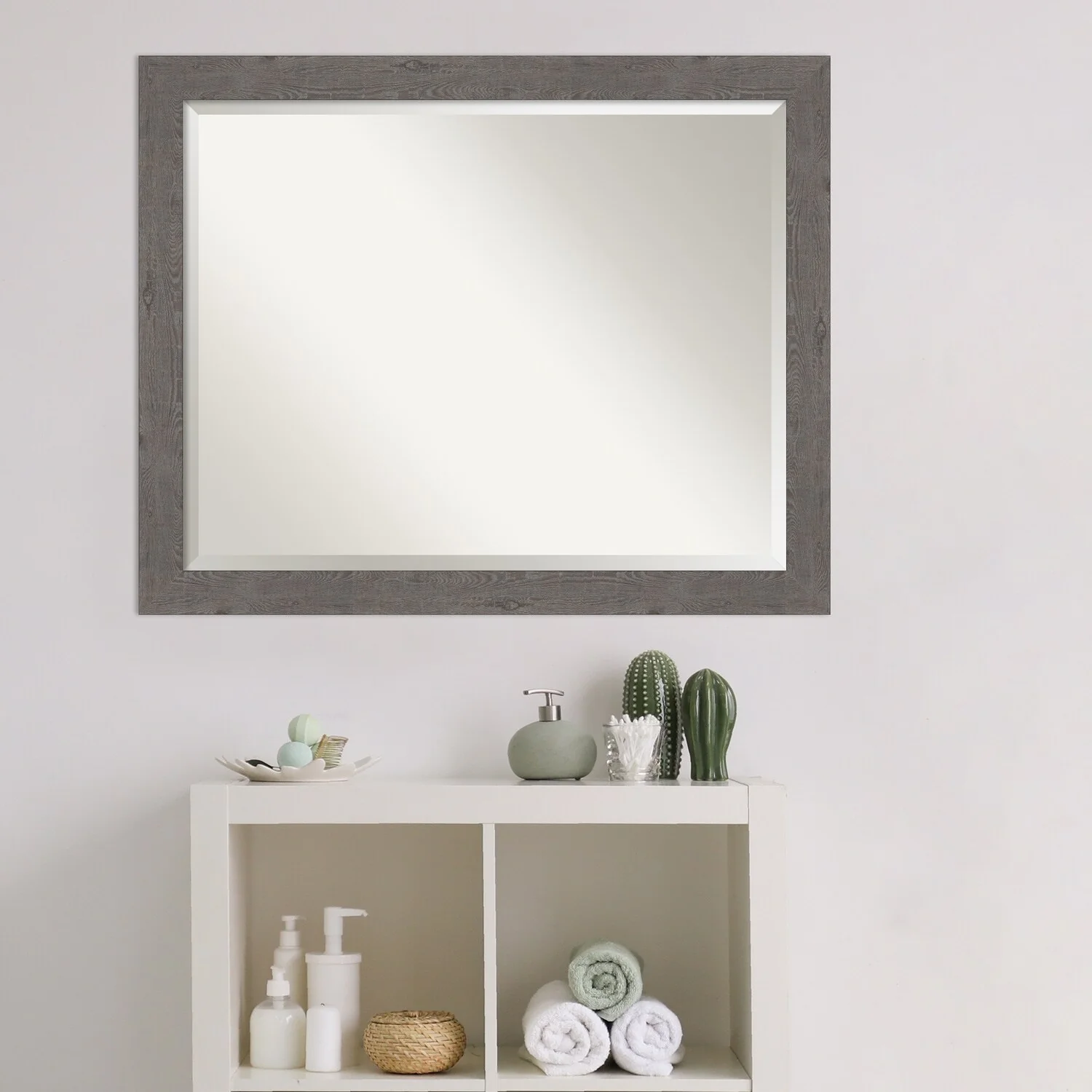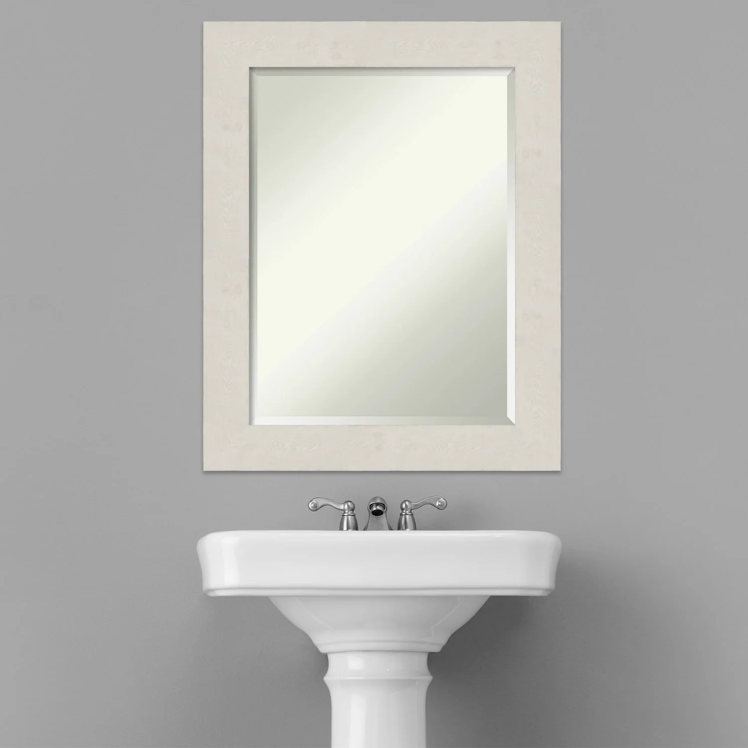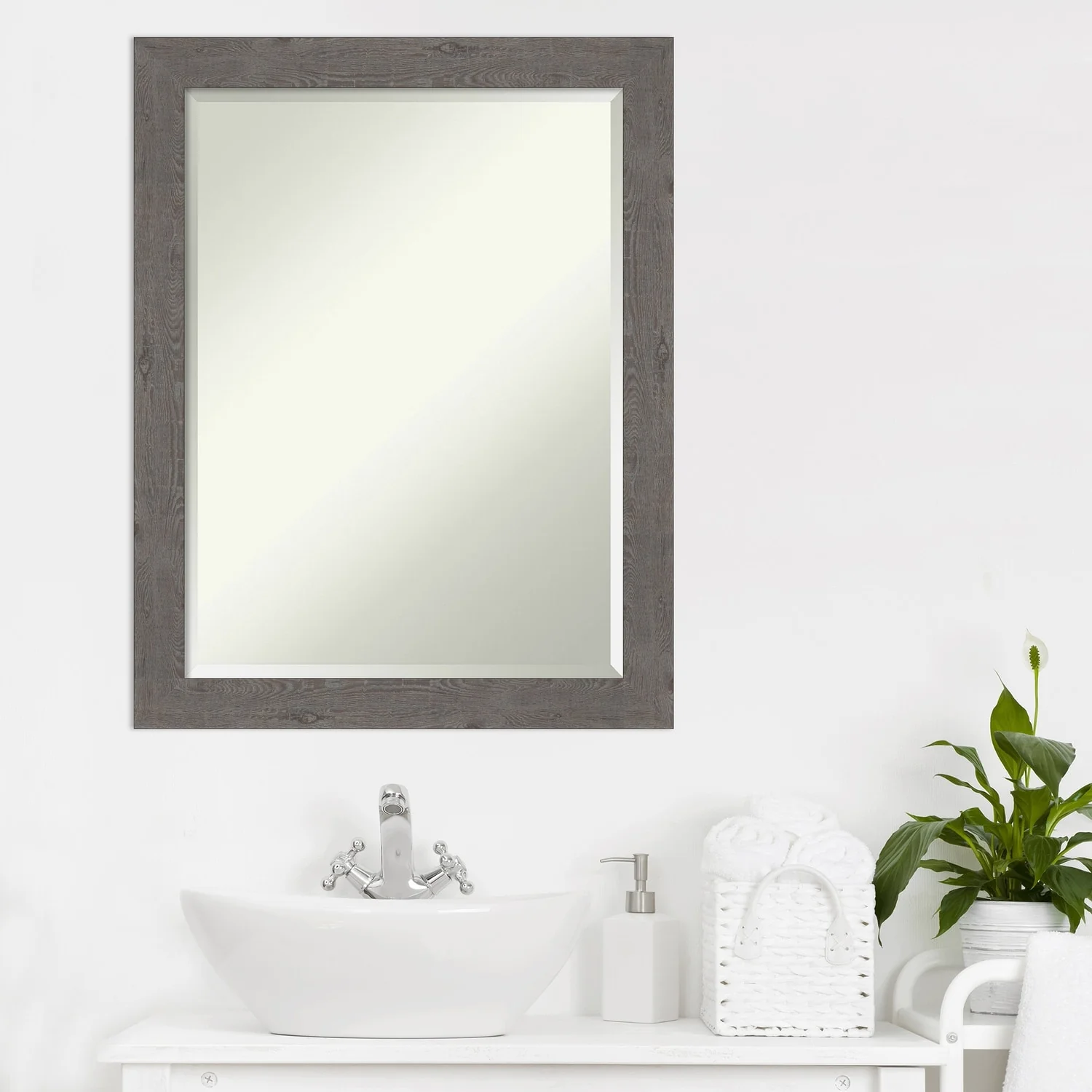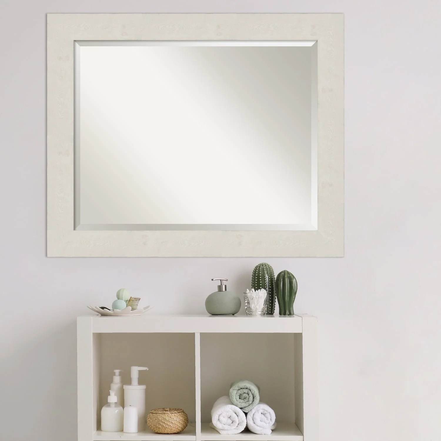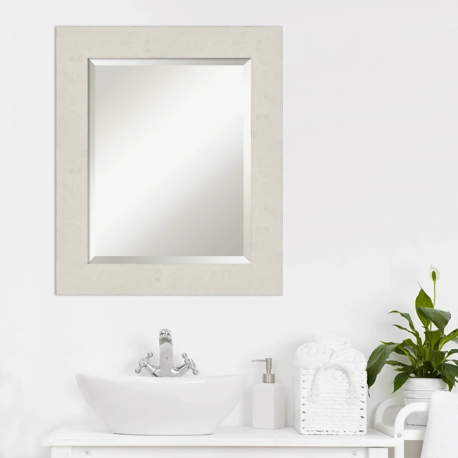 Beveled Bathroom Wall Mirror - Rustic Plank White Frame