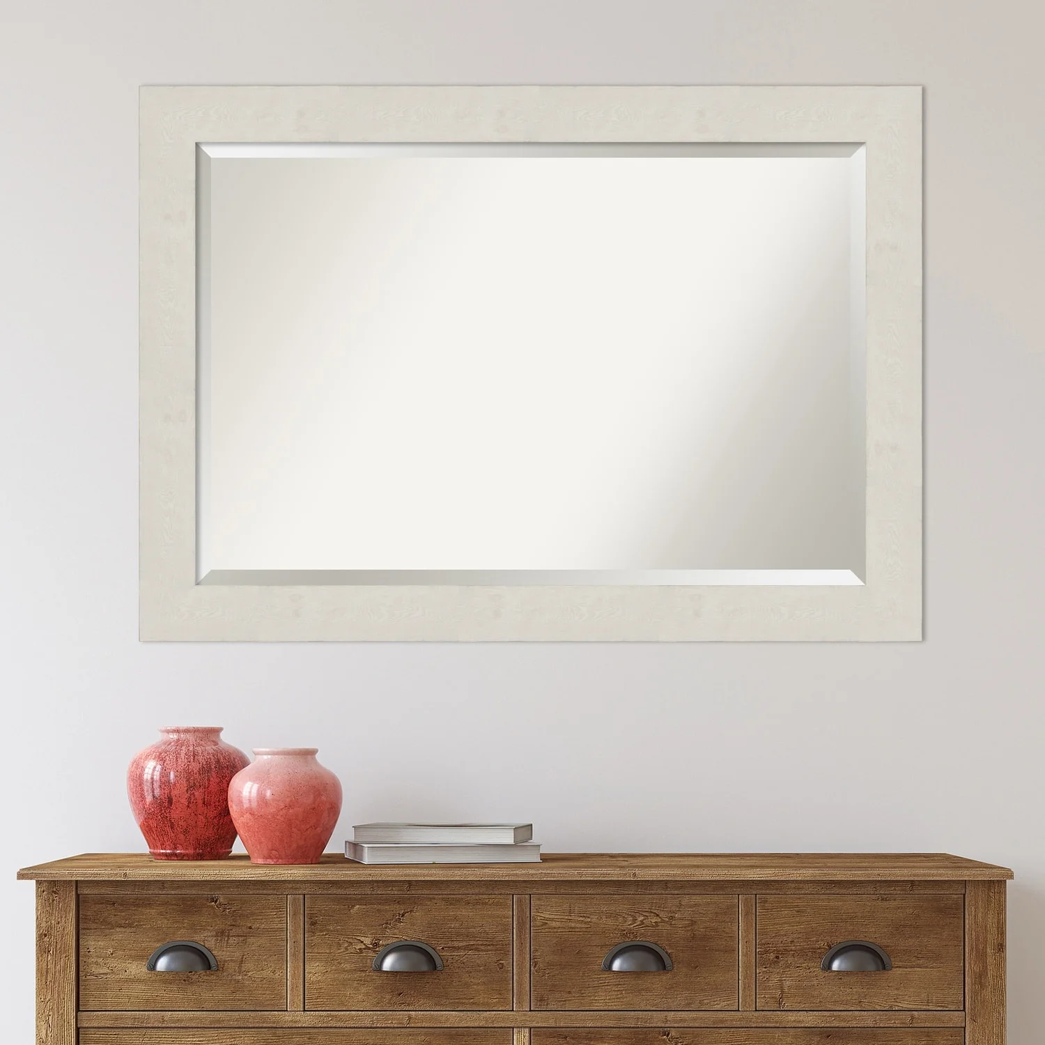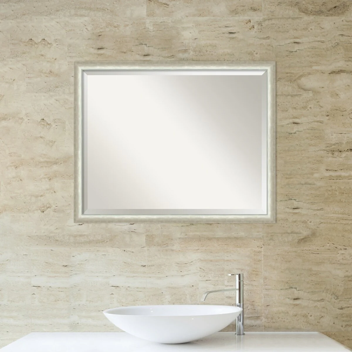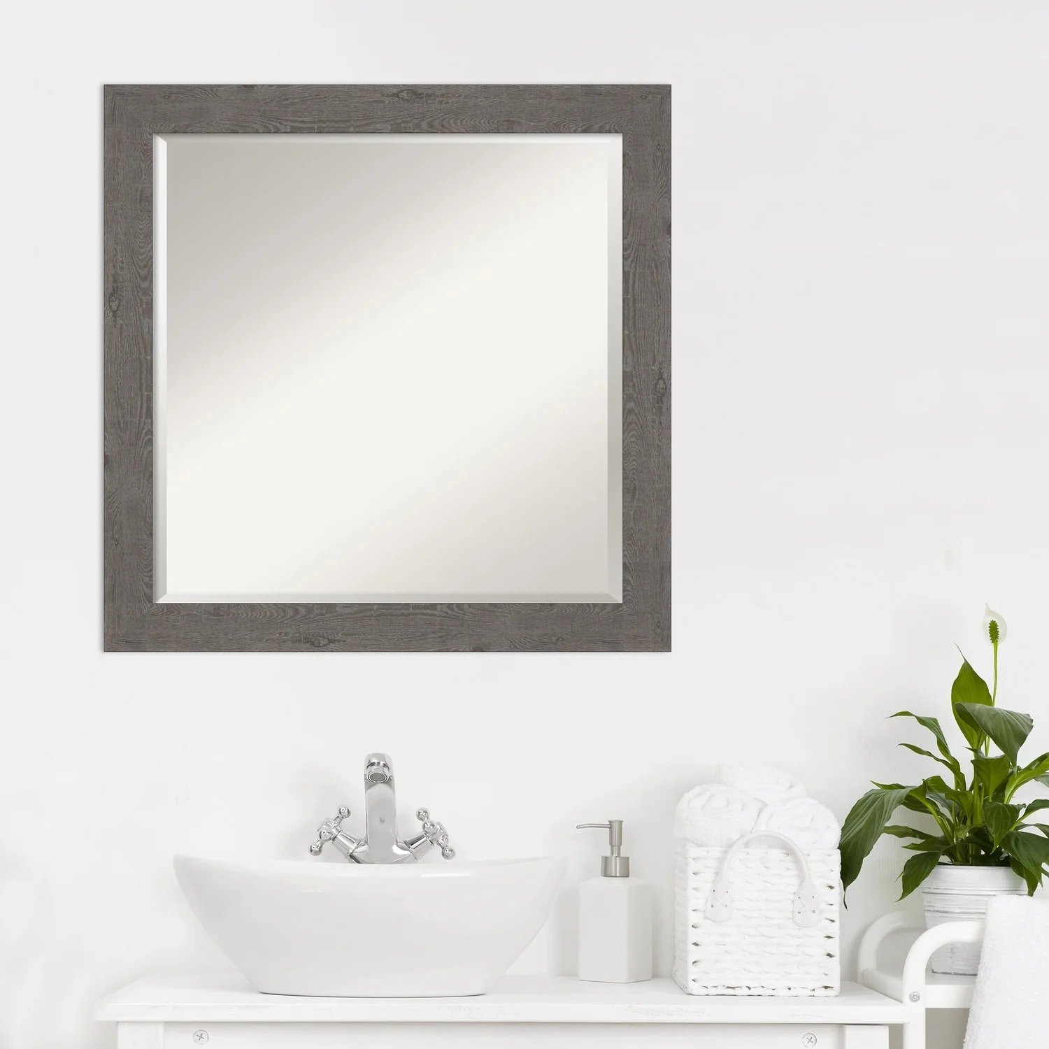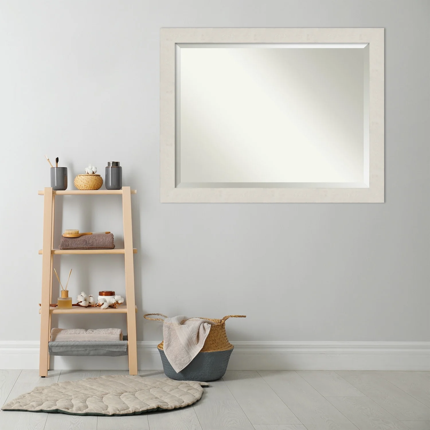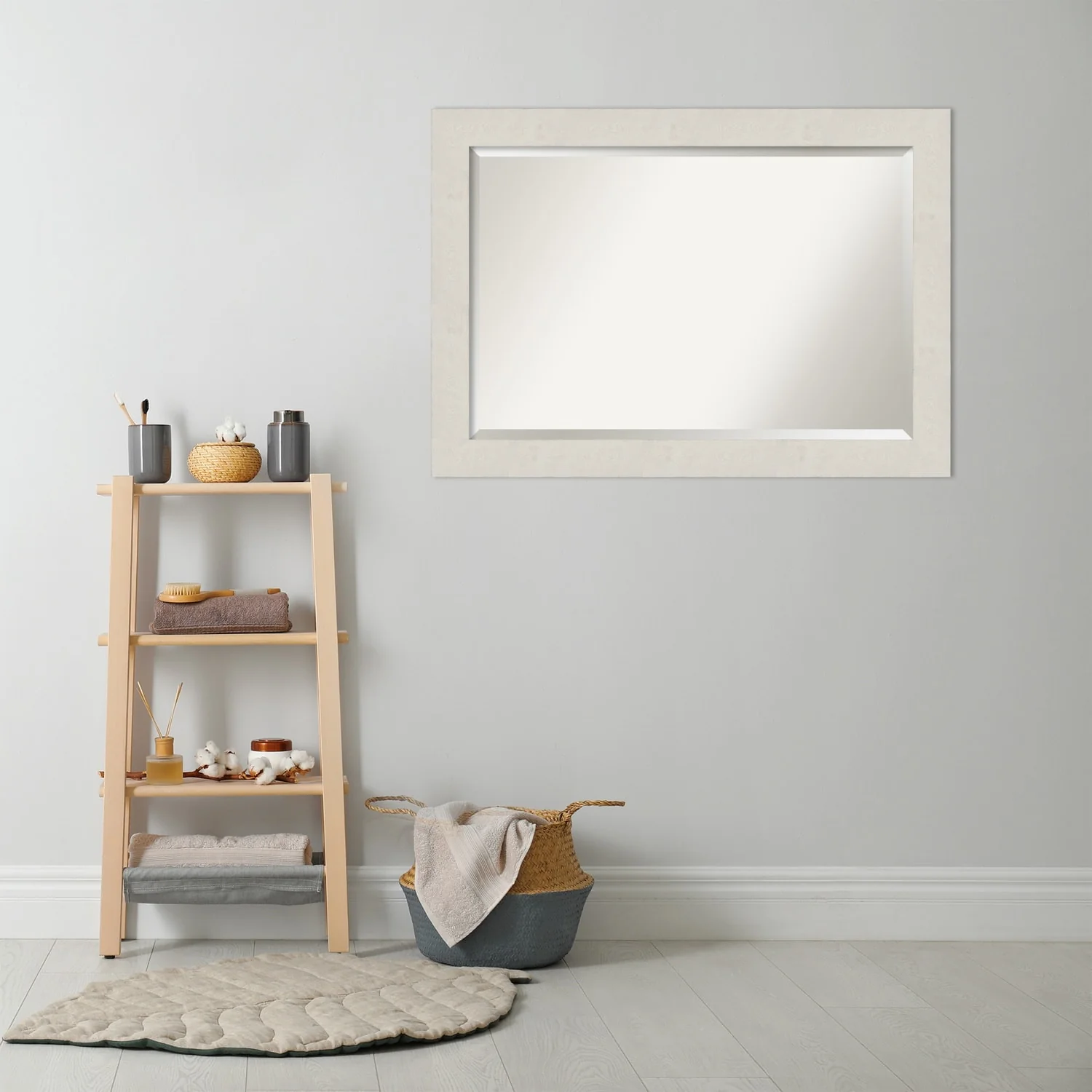 Beveled Bathroom Wall Mirror - Rustic Plank White Frame