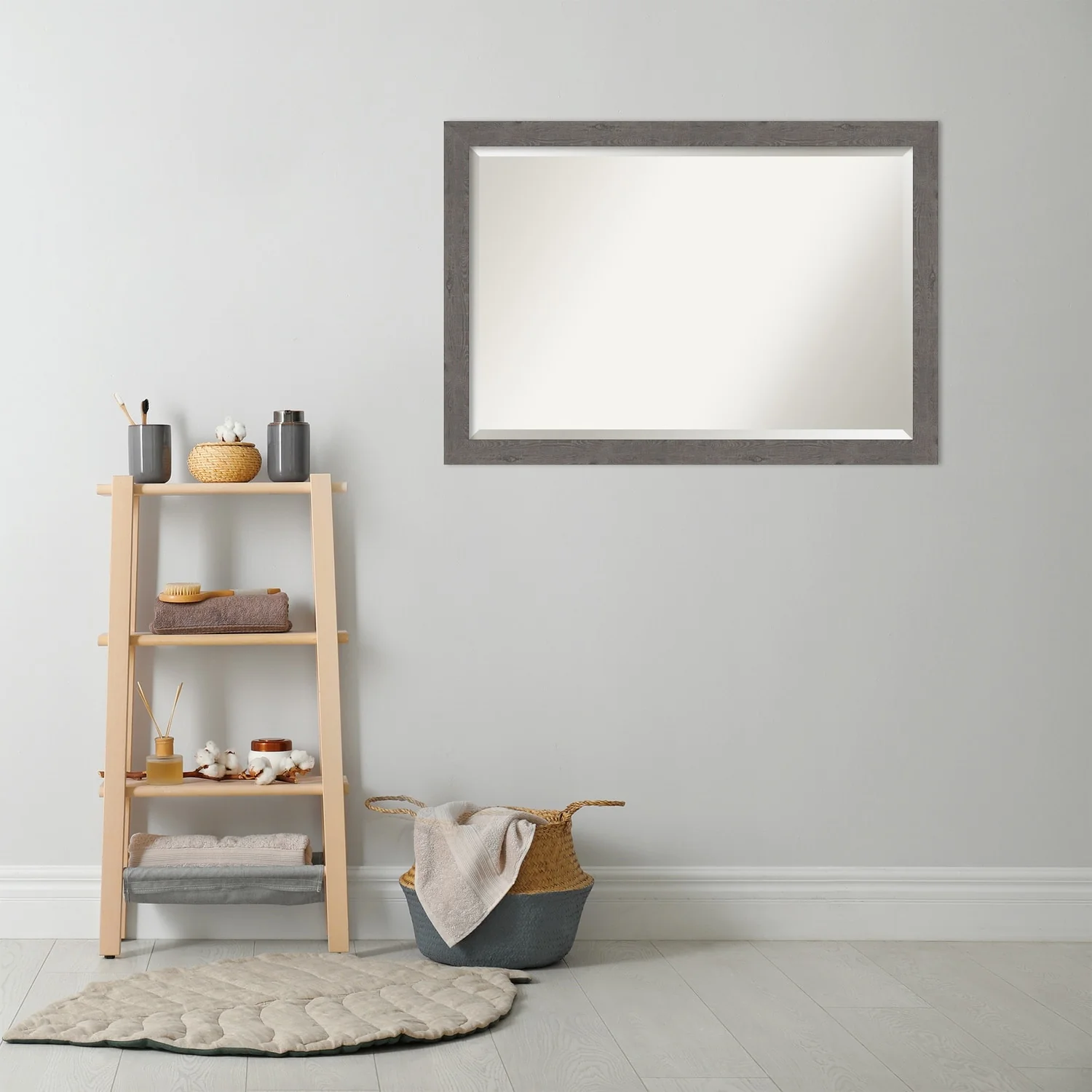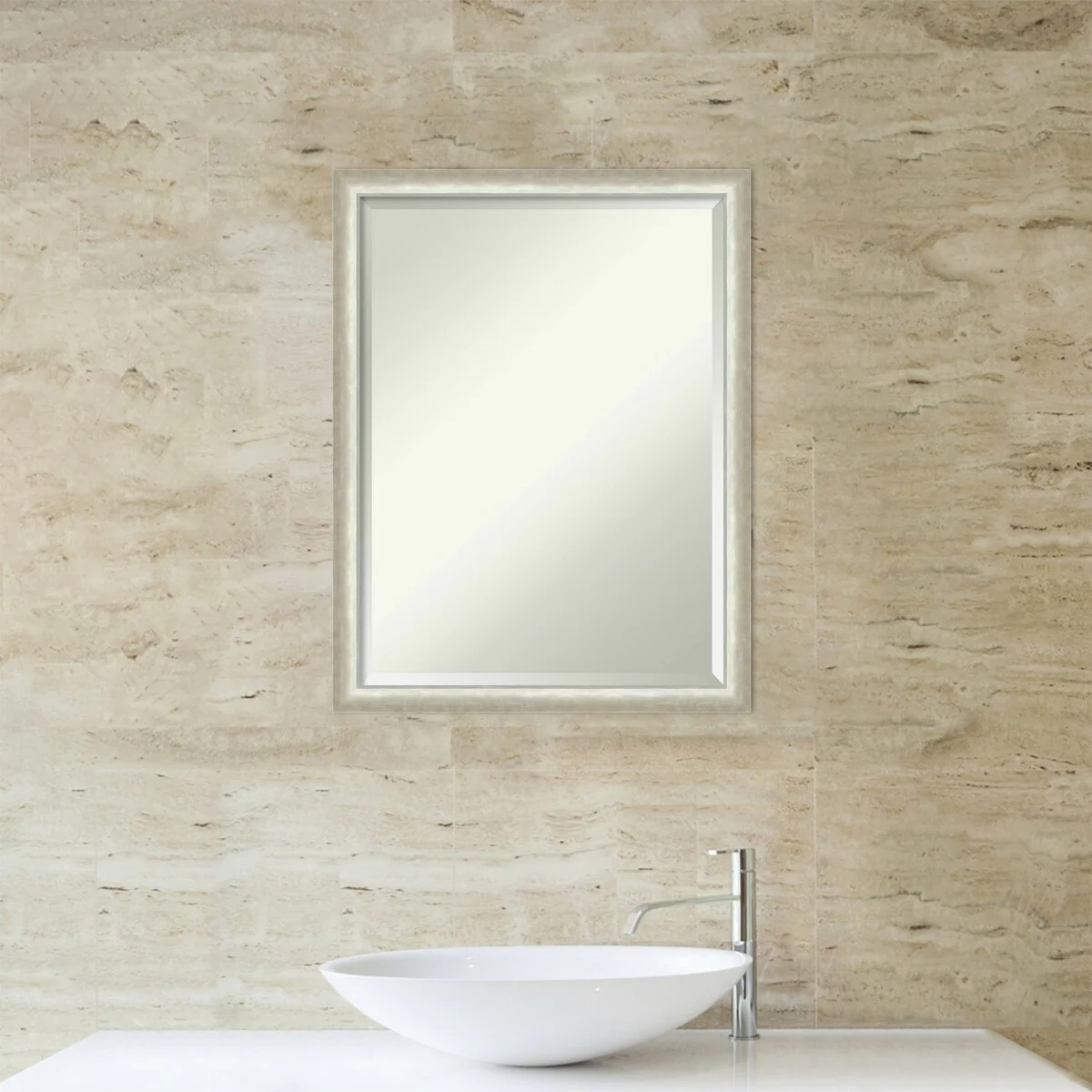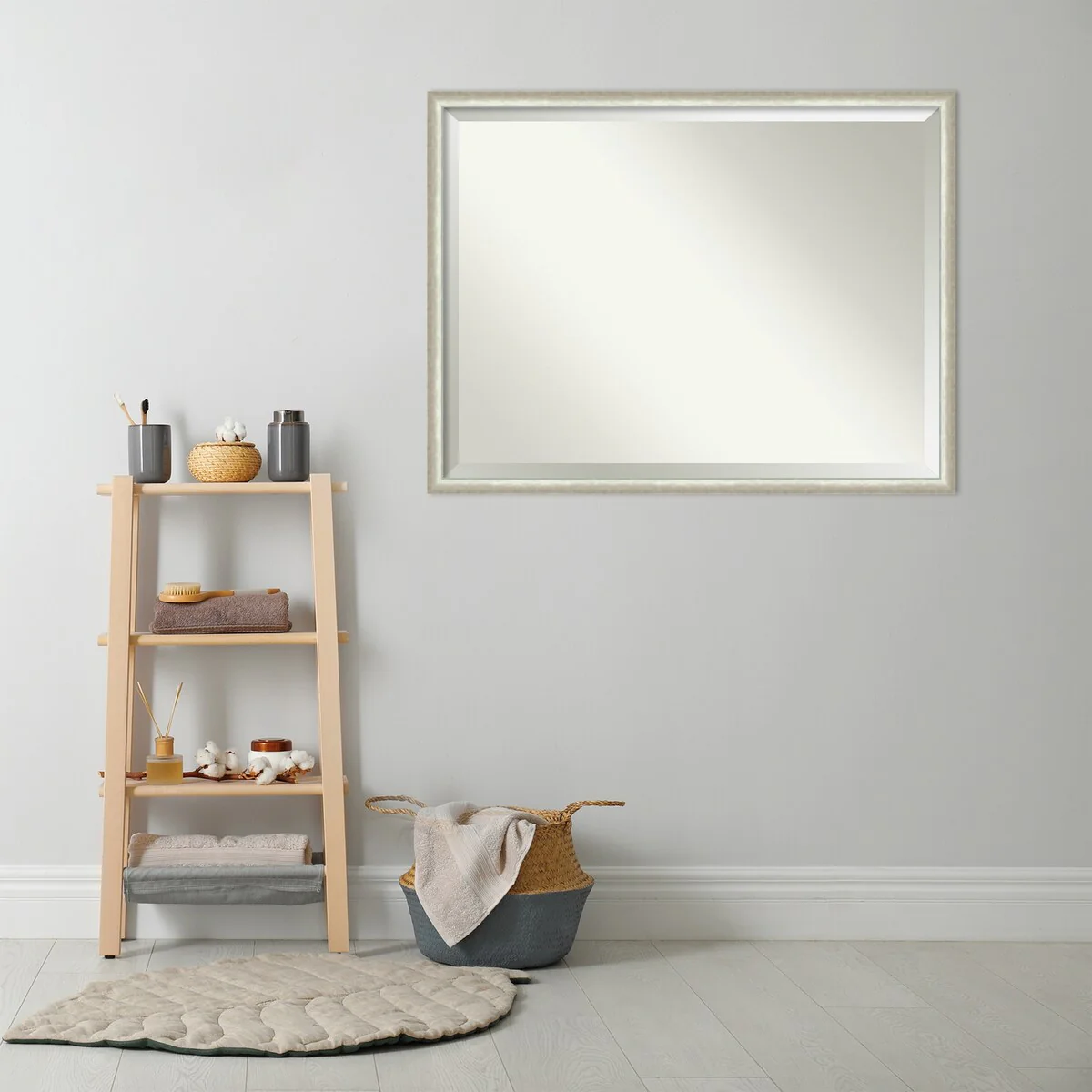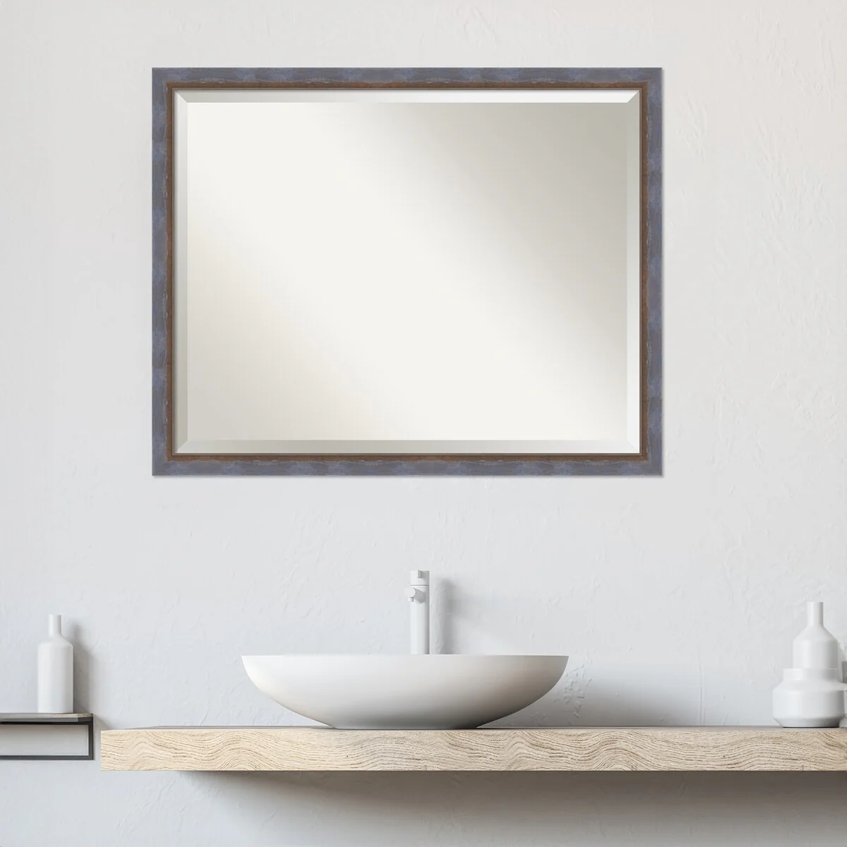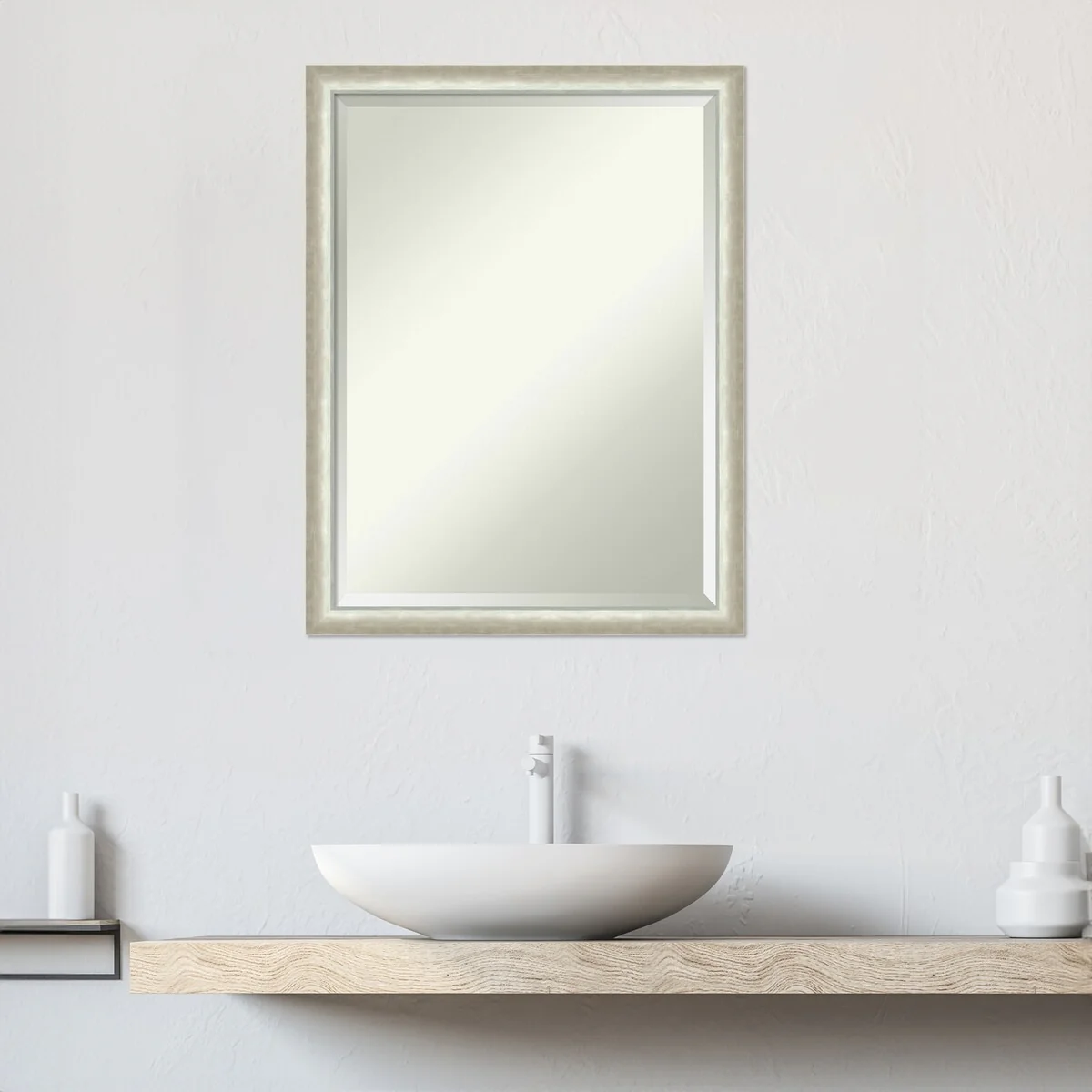 Beveled Bathroom Wall Mirror - Rustic Plank White Frame