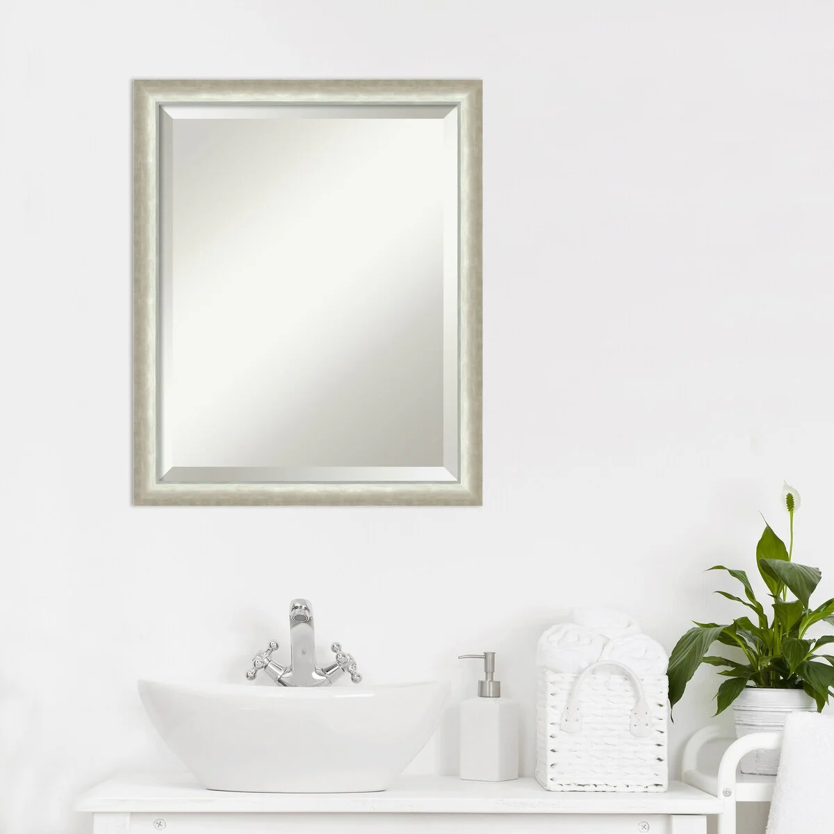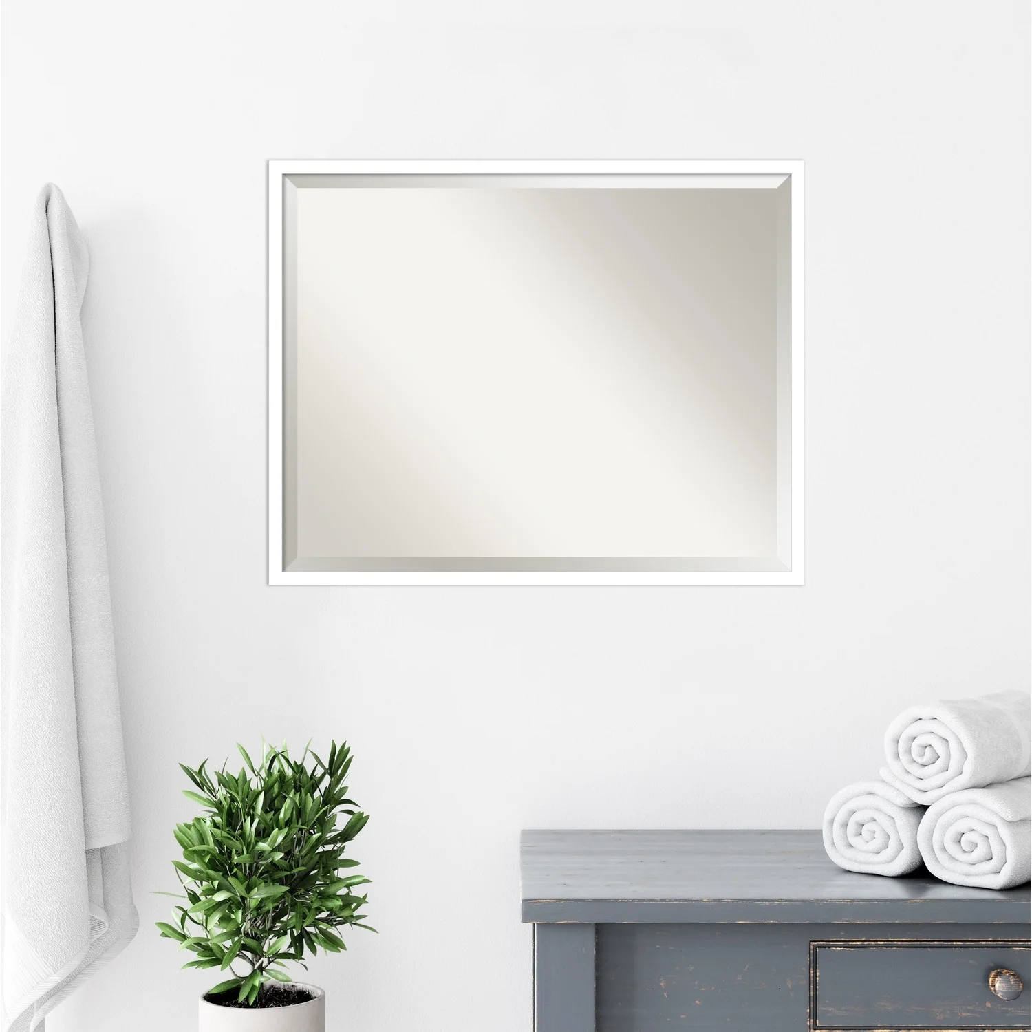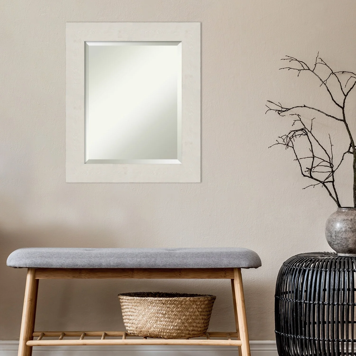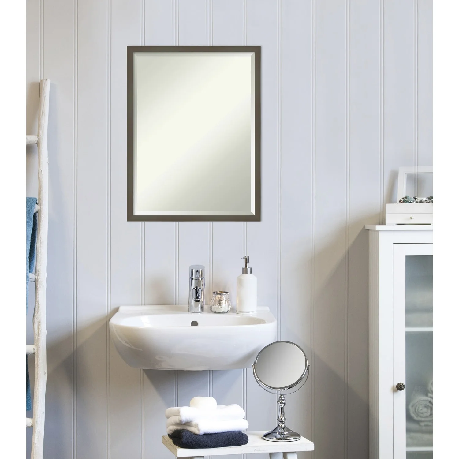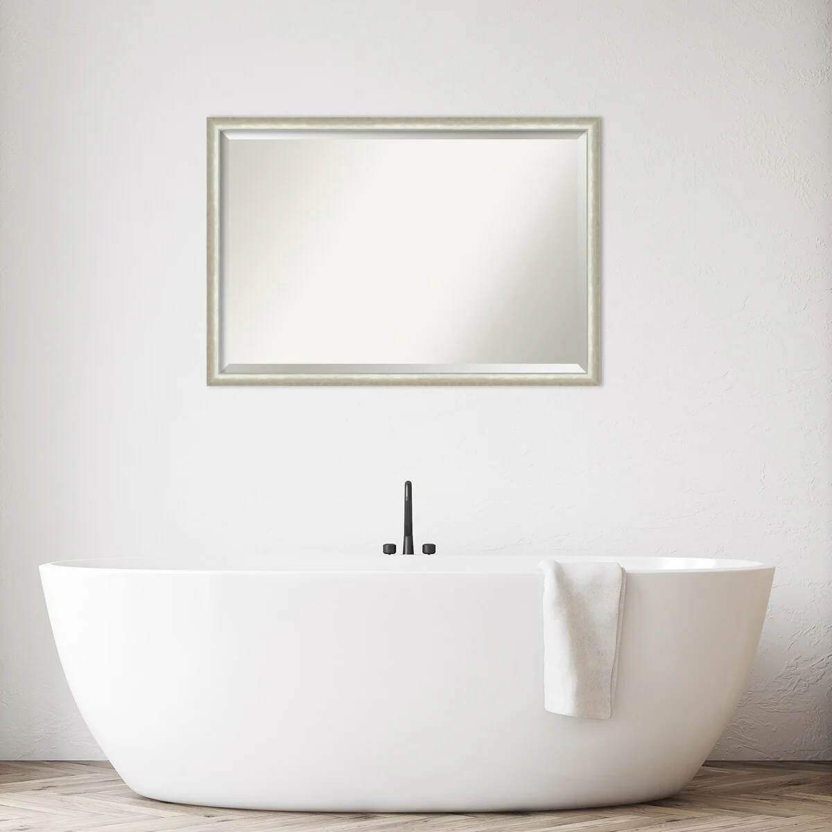 Beveled Bathroom Wall Mirror - Rustic Plank White Frame