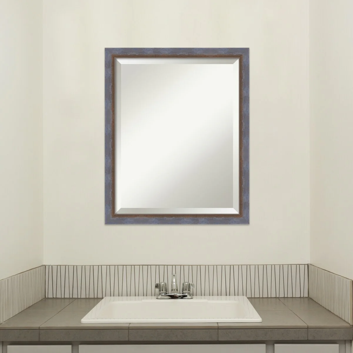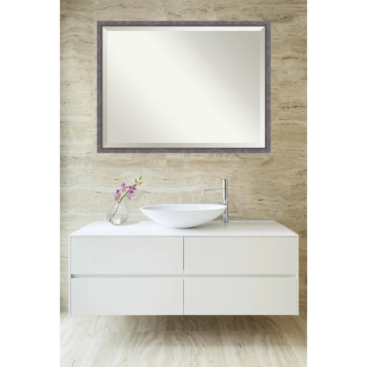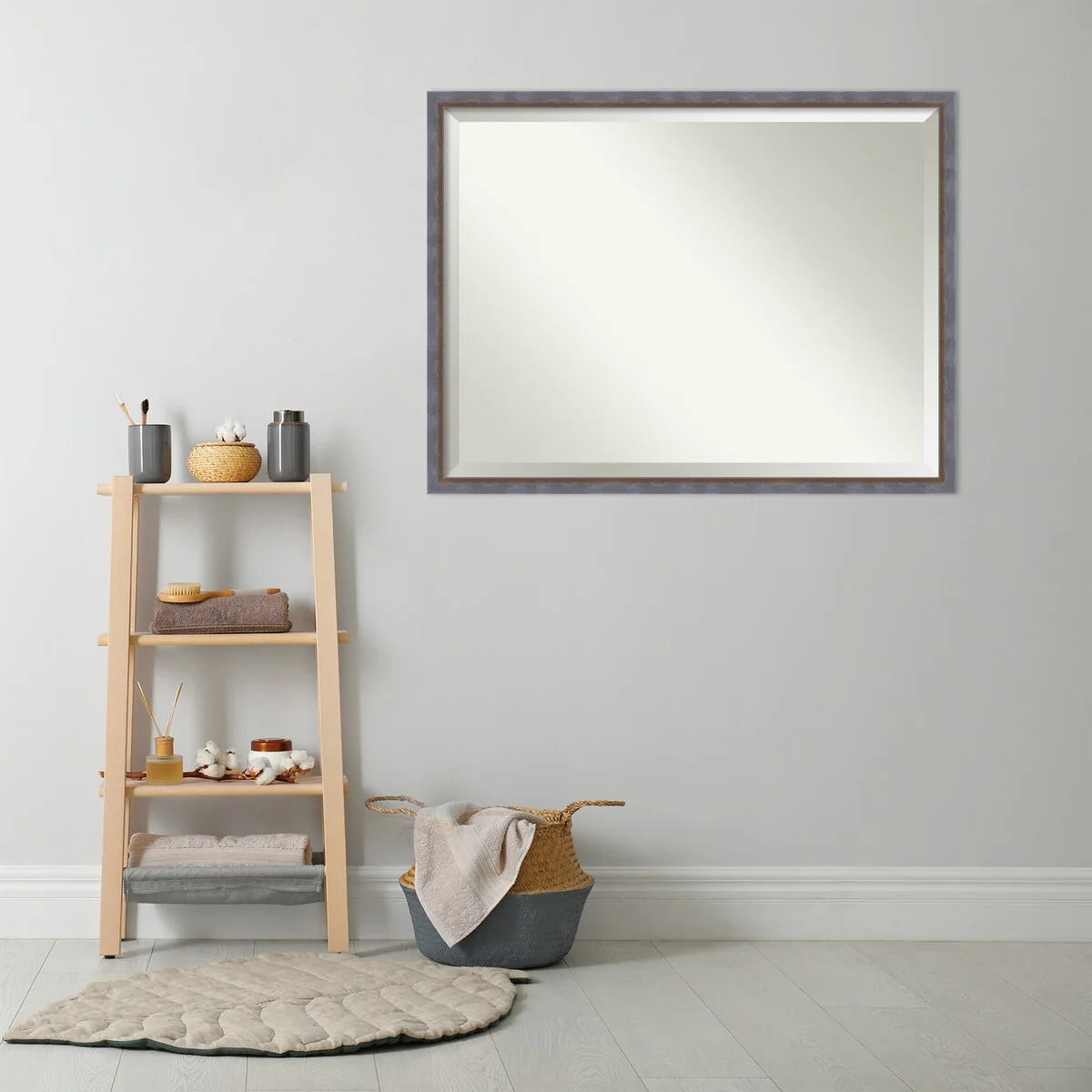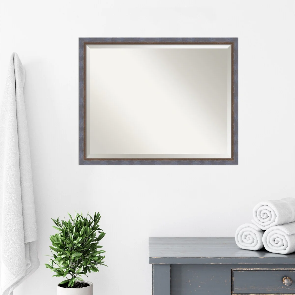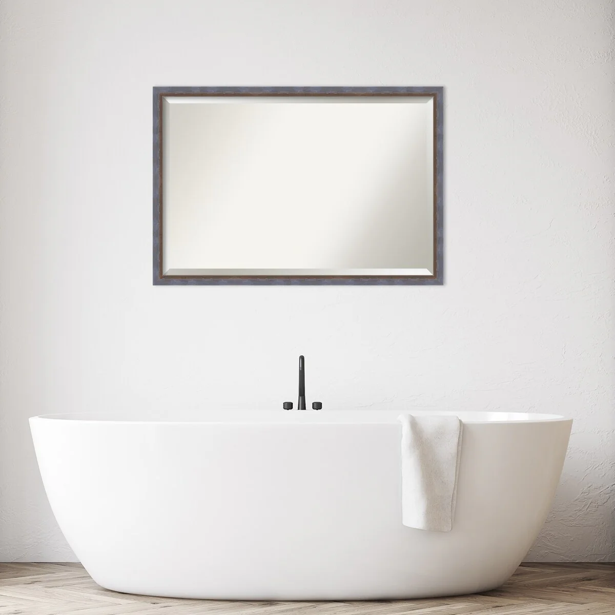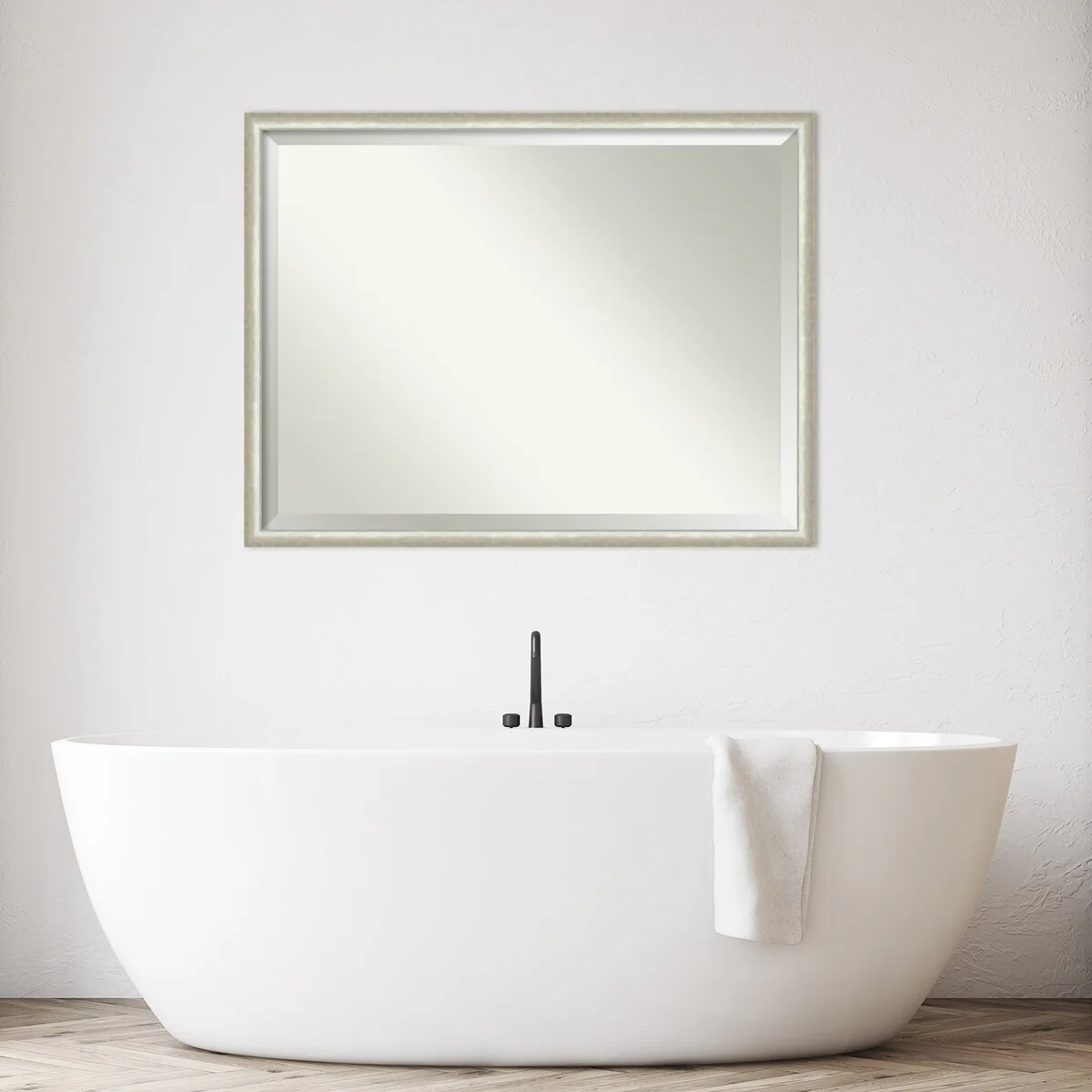 Beveled Bathroom Wall Mirror - Rustic Plank White Frame