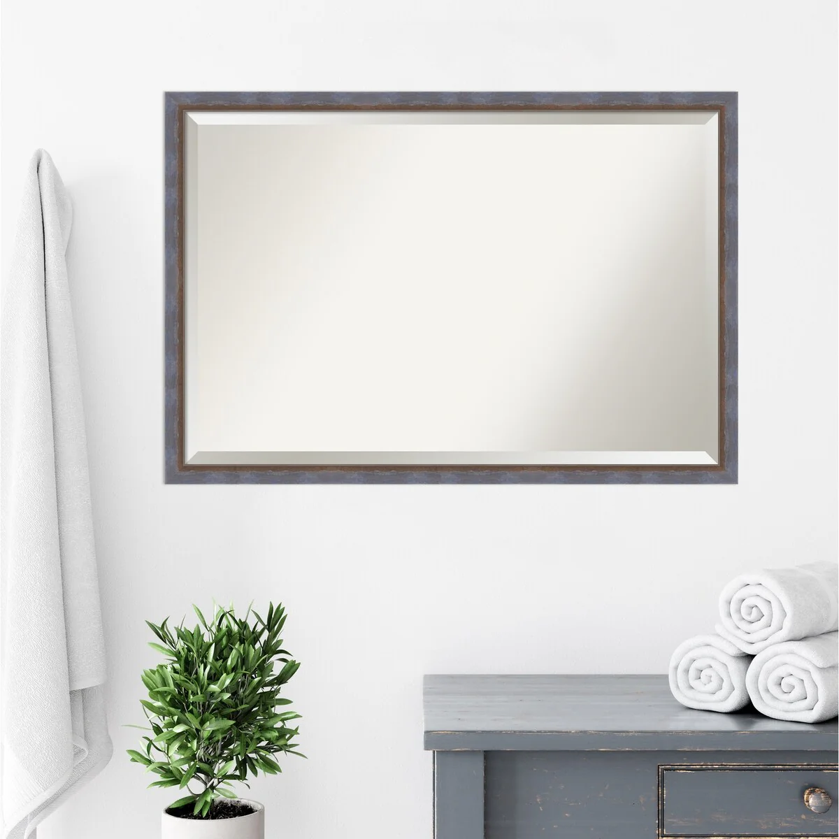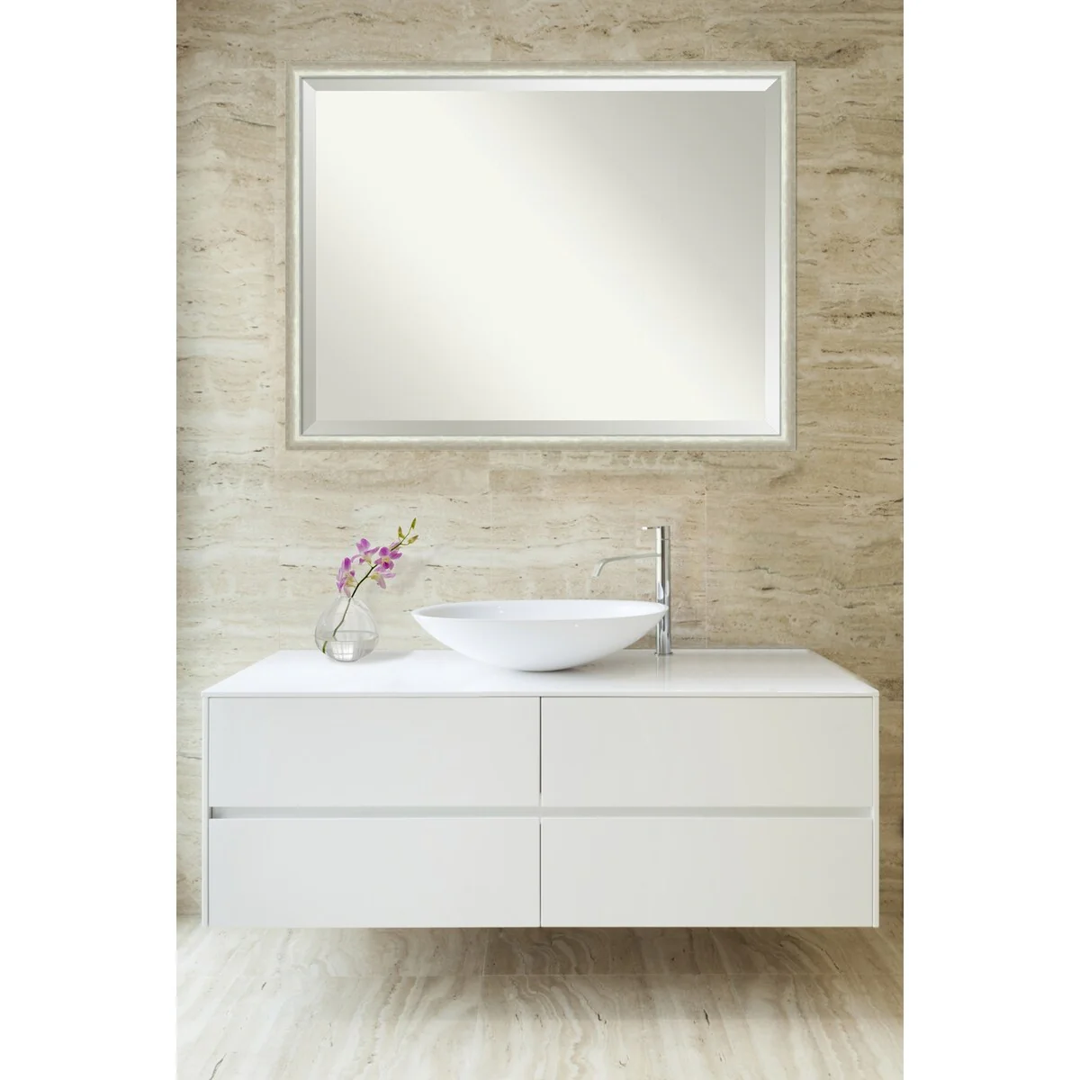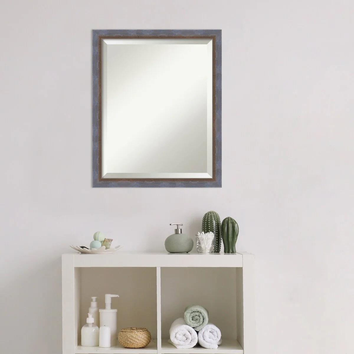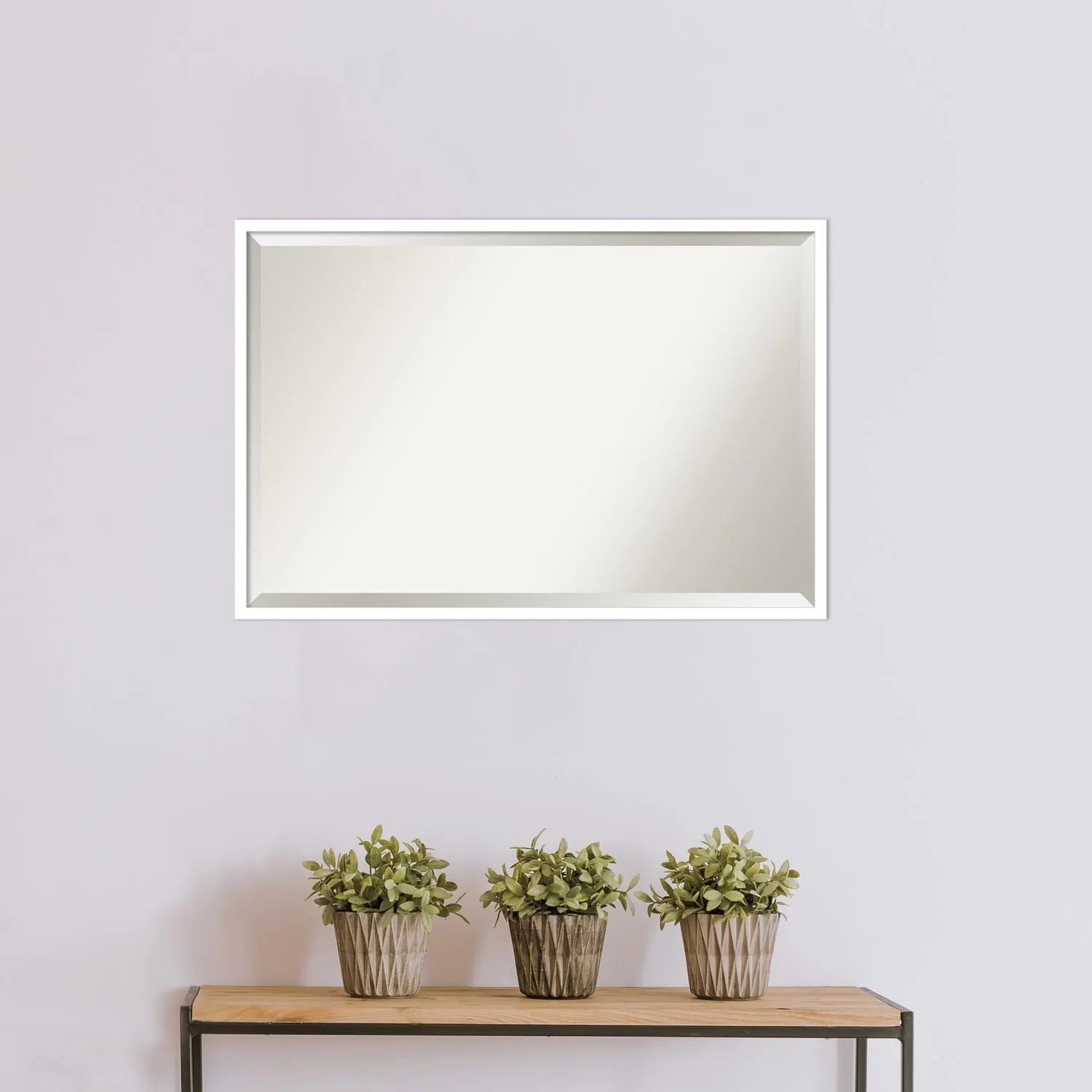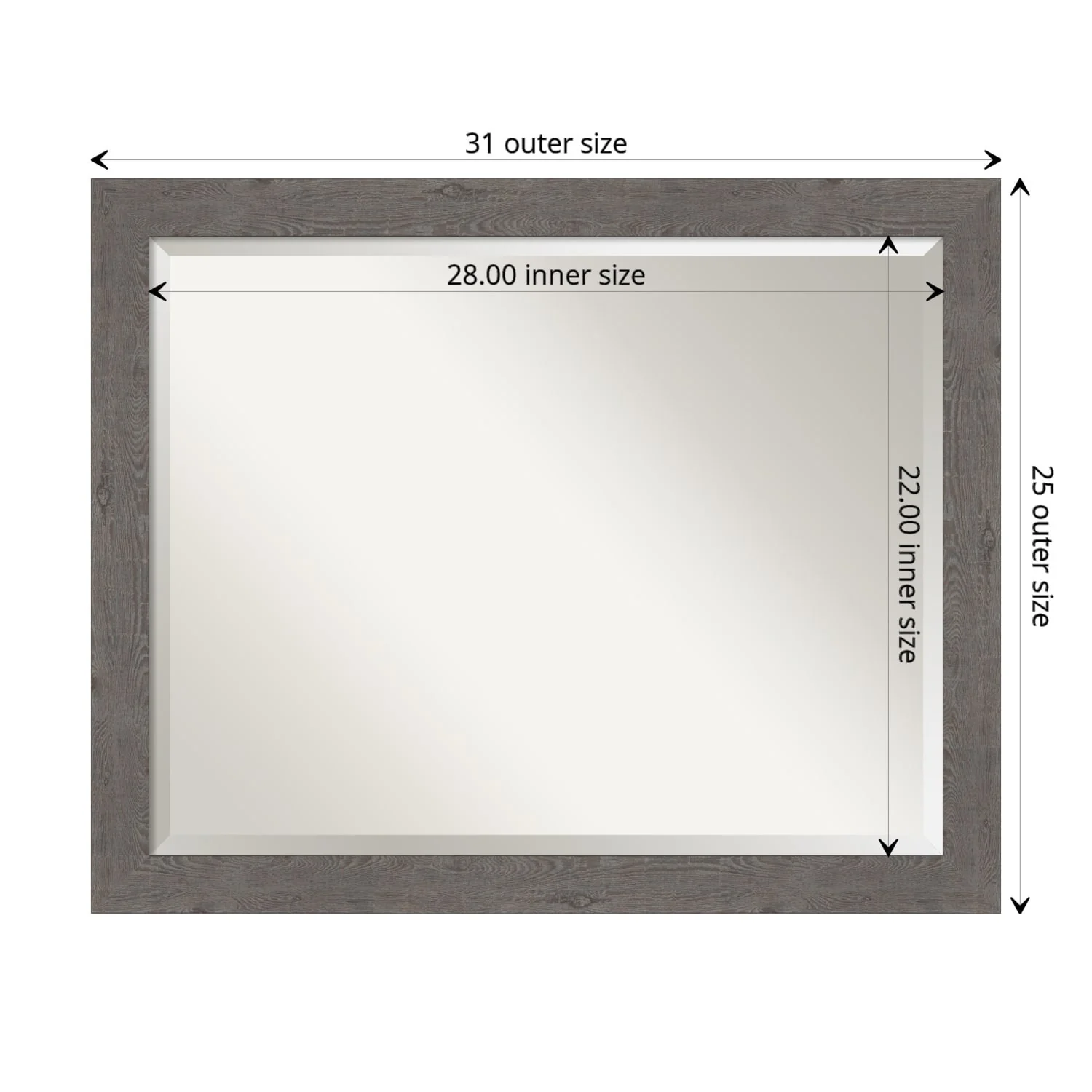 Beveled Bathroom Wall Mirror - Rustic Plank White Frame