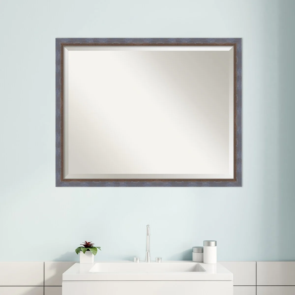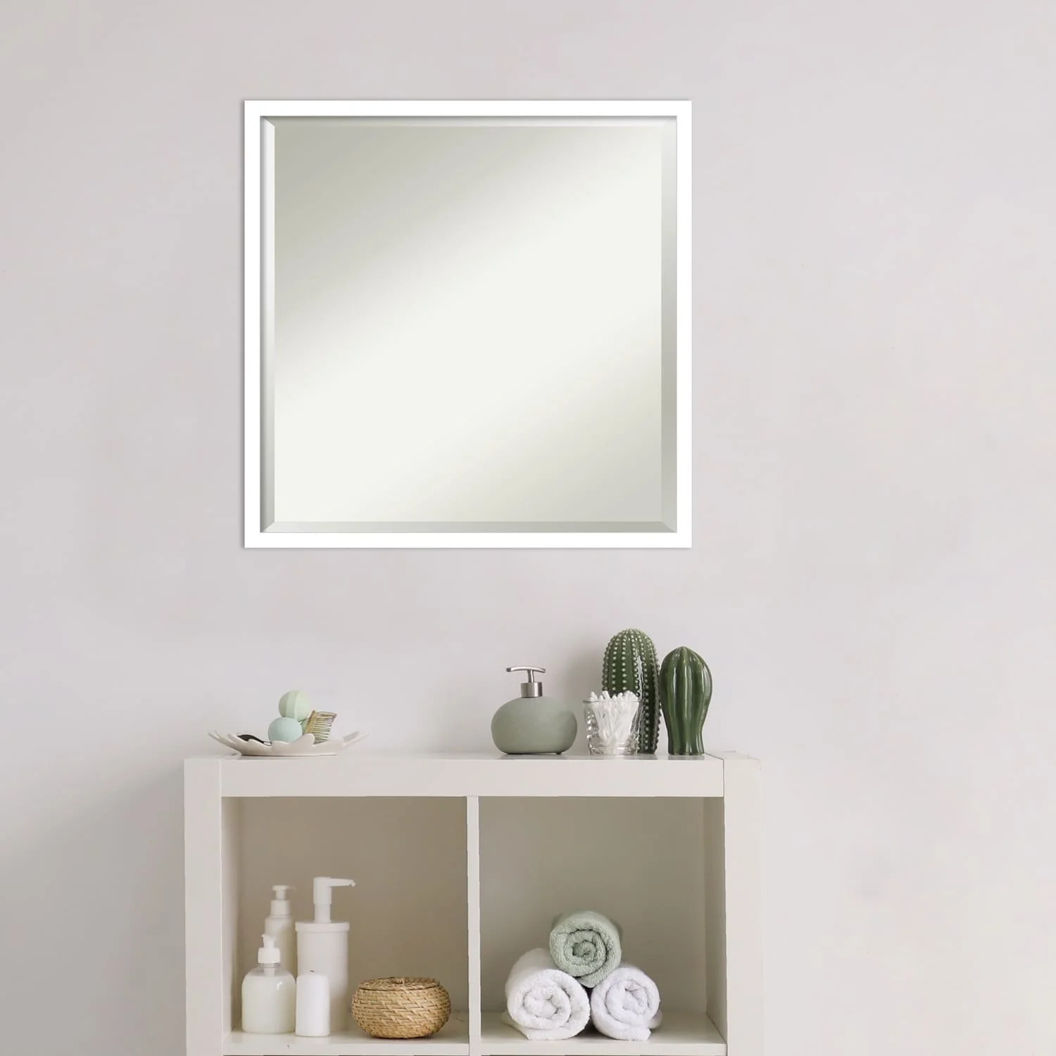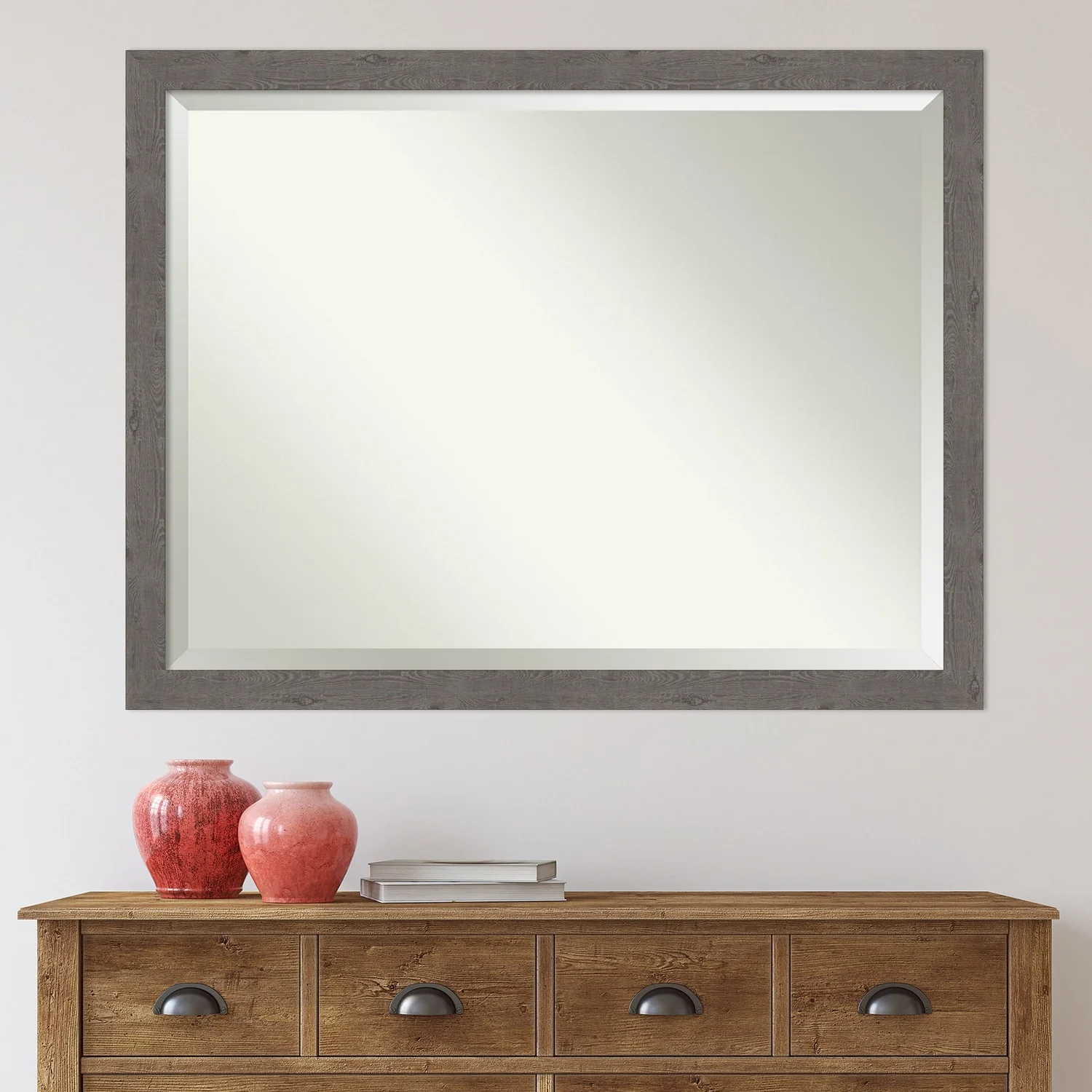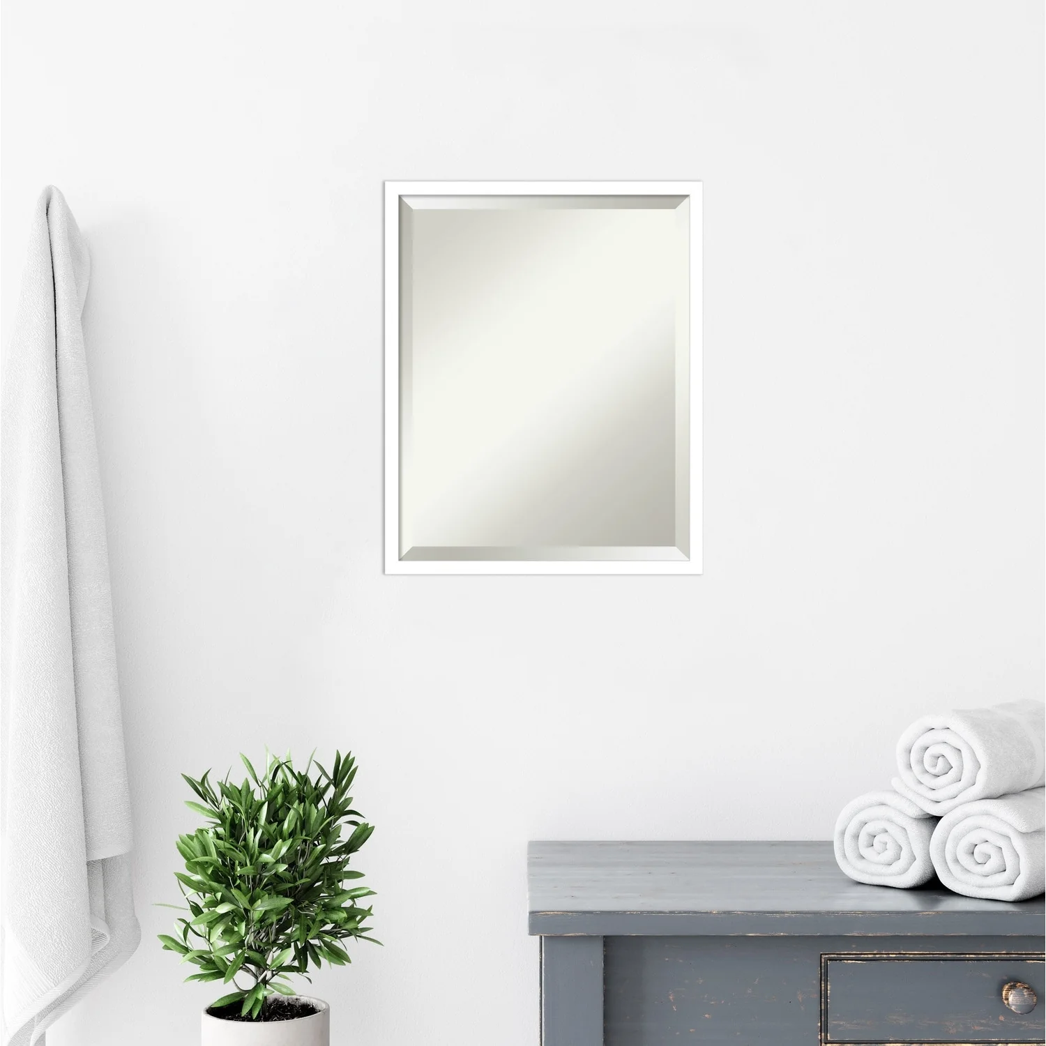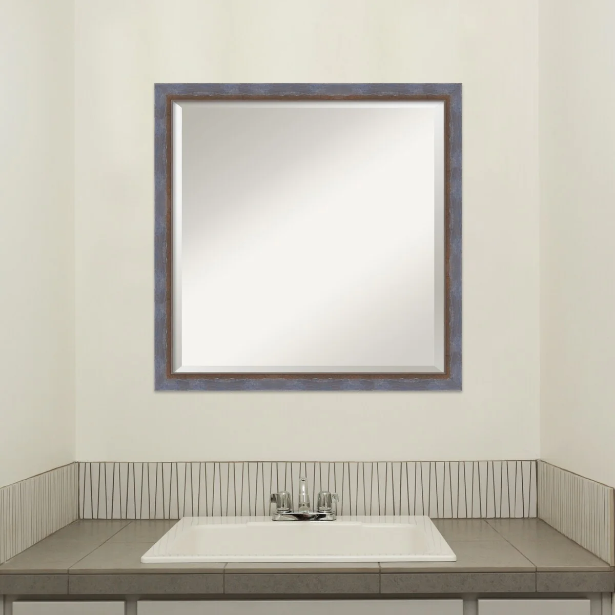 Beveled Bathroom Wall Mirror - Rustic Plank White Frame