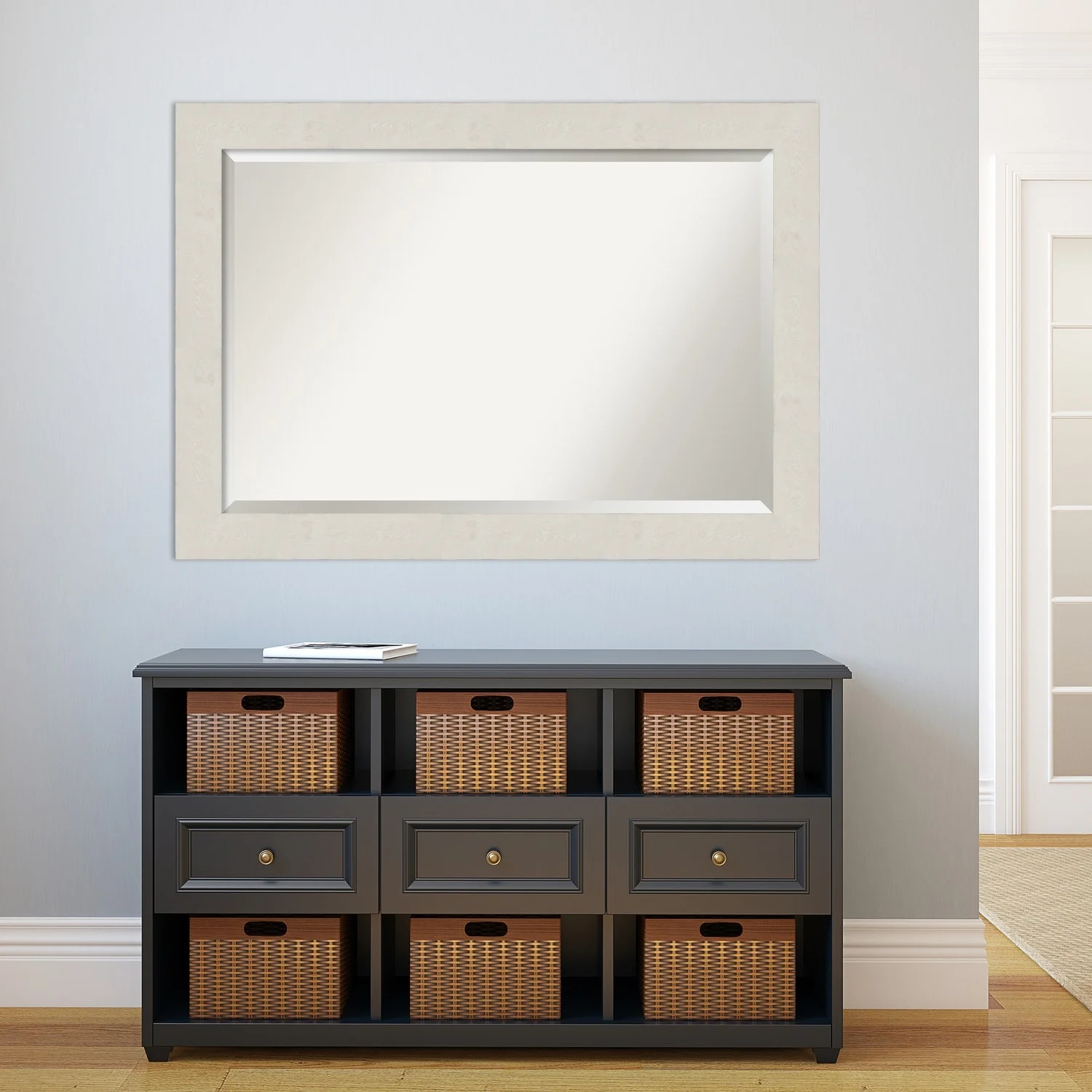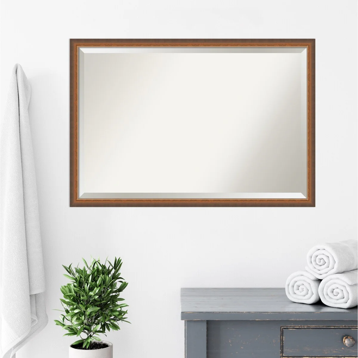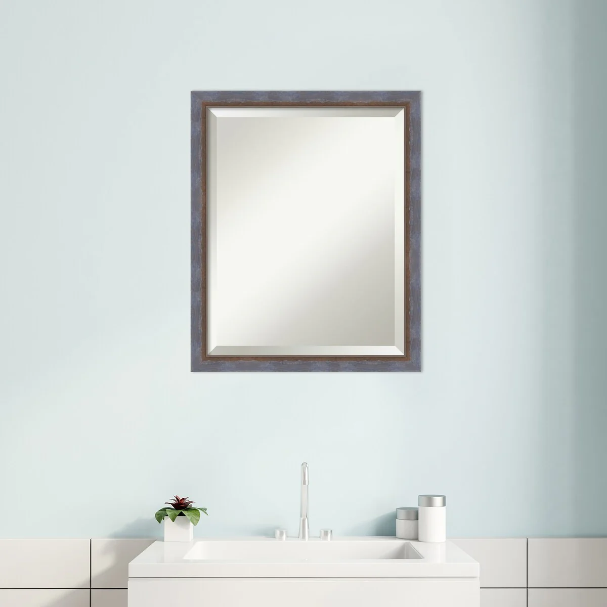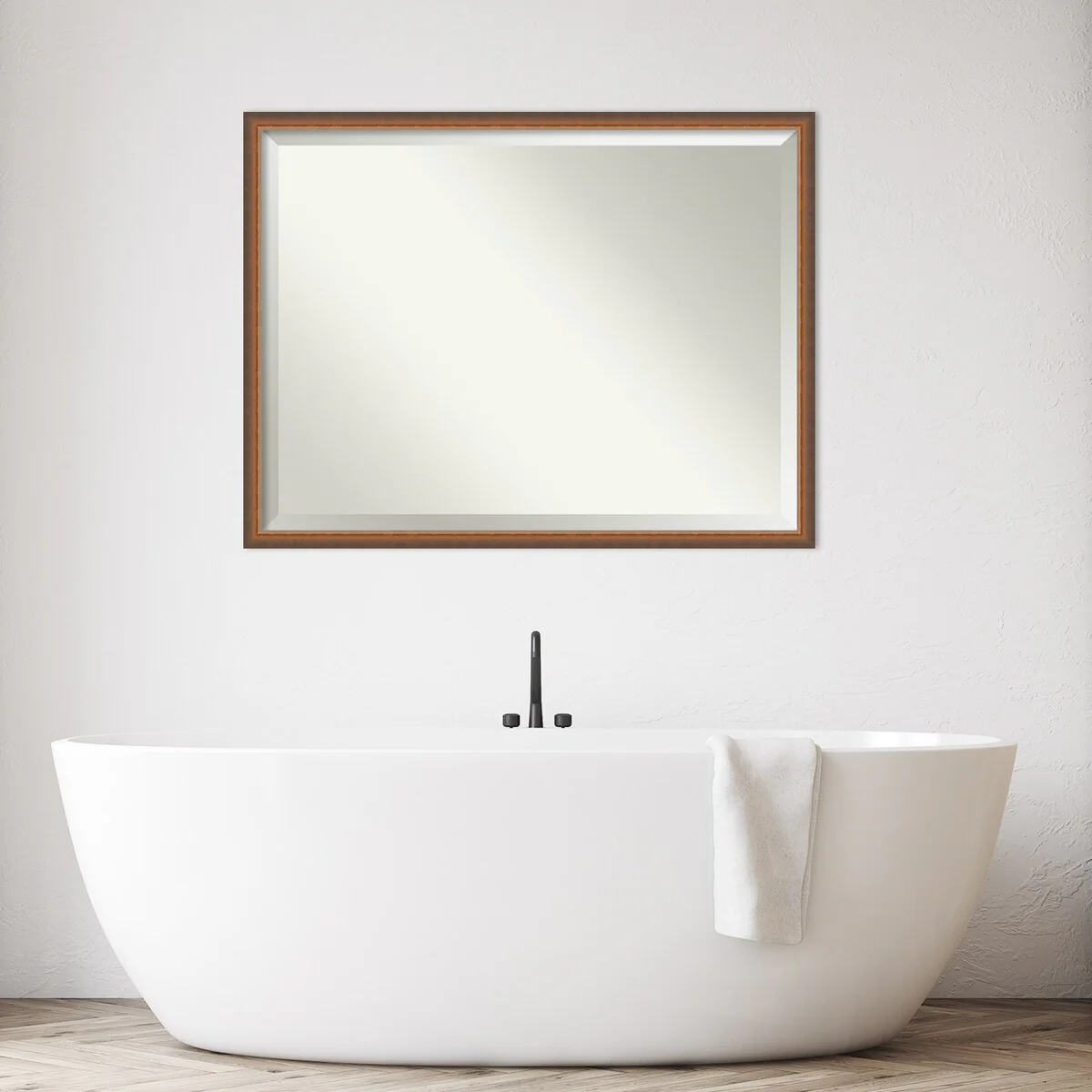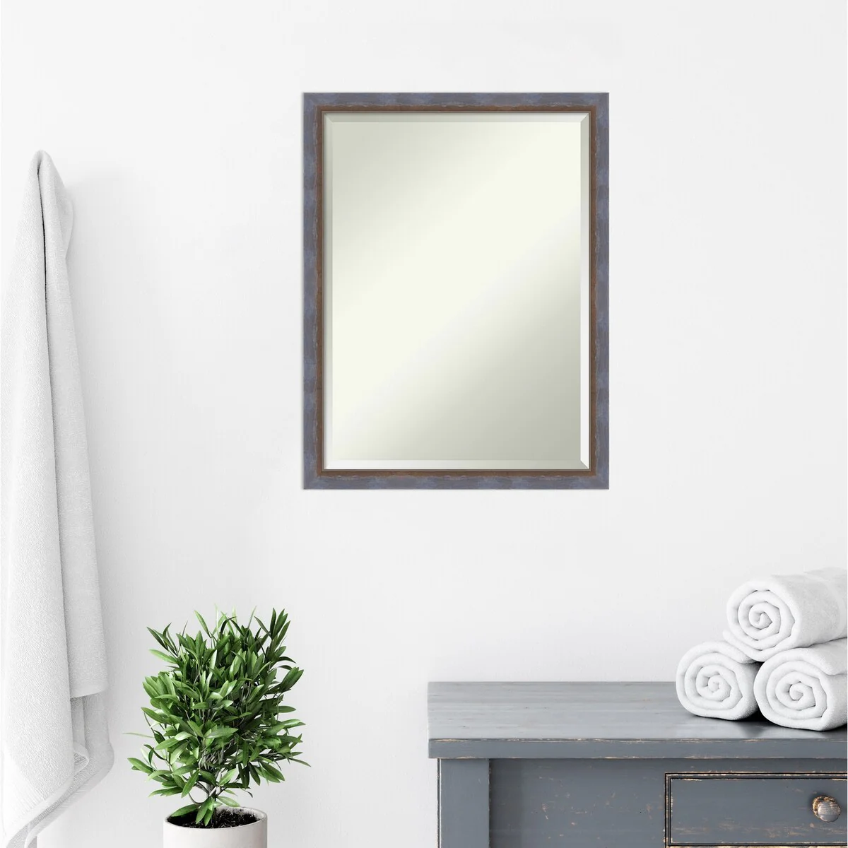 Beveled Bathroom Wall Mirror - Rustic Plank White Frame