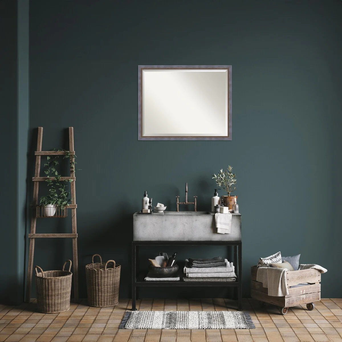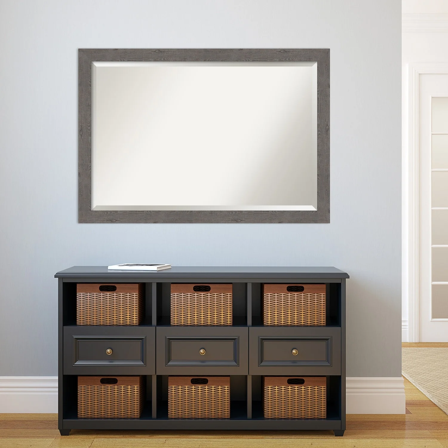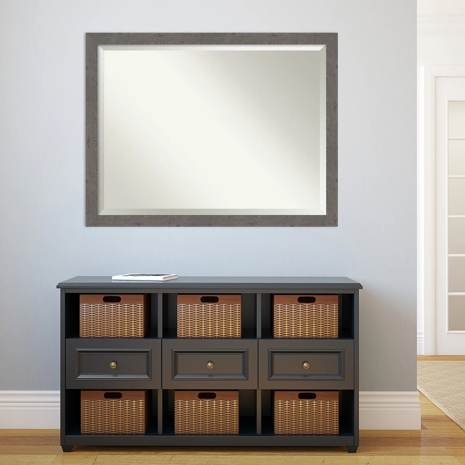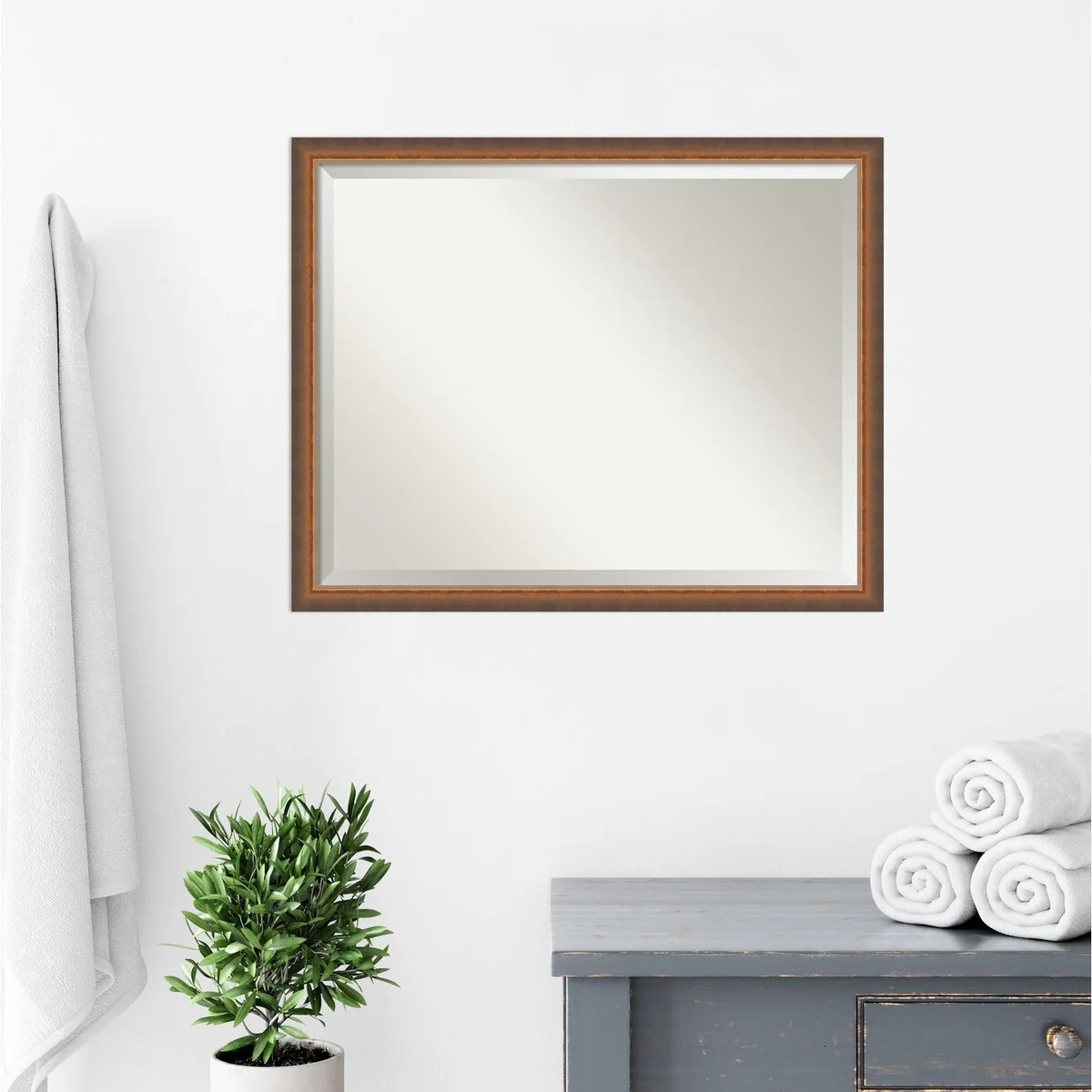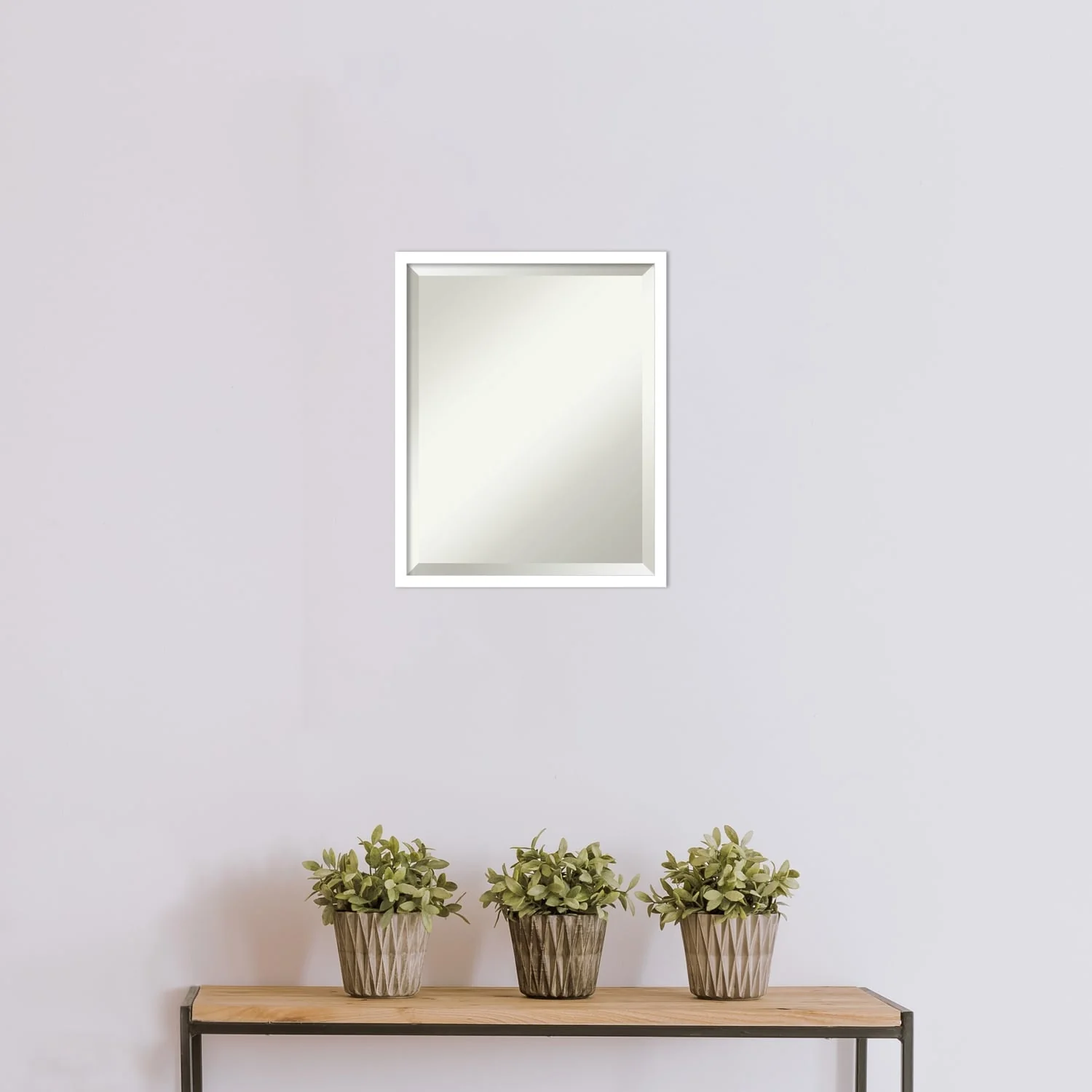 Beveled Bathroom Wall Mirror - Rustic Plank White Frame