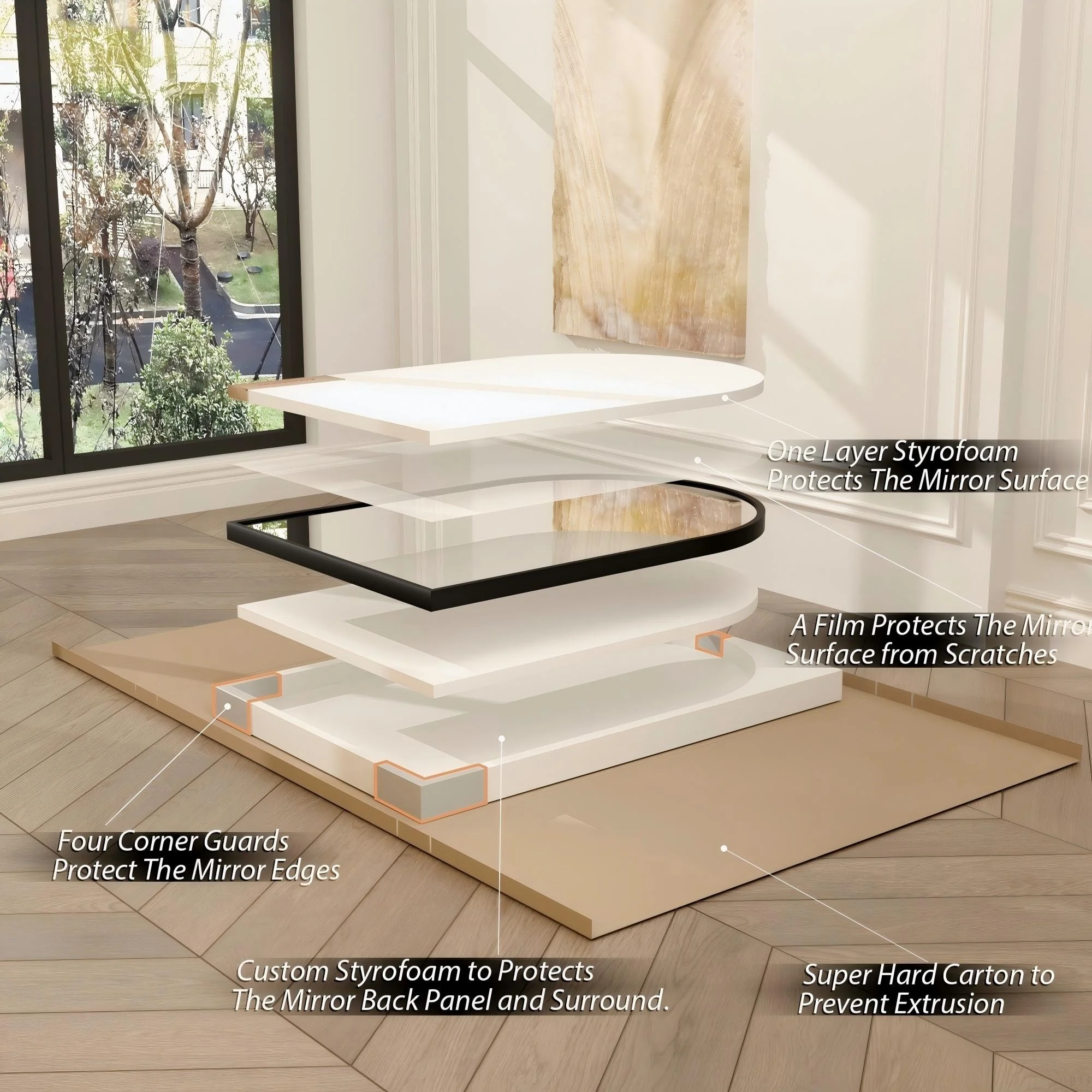 Full Scalloped Corners Arch Square Mirror
