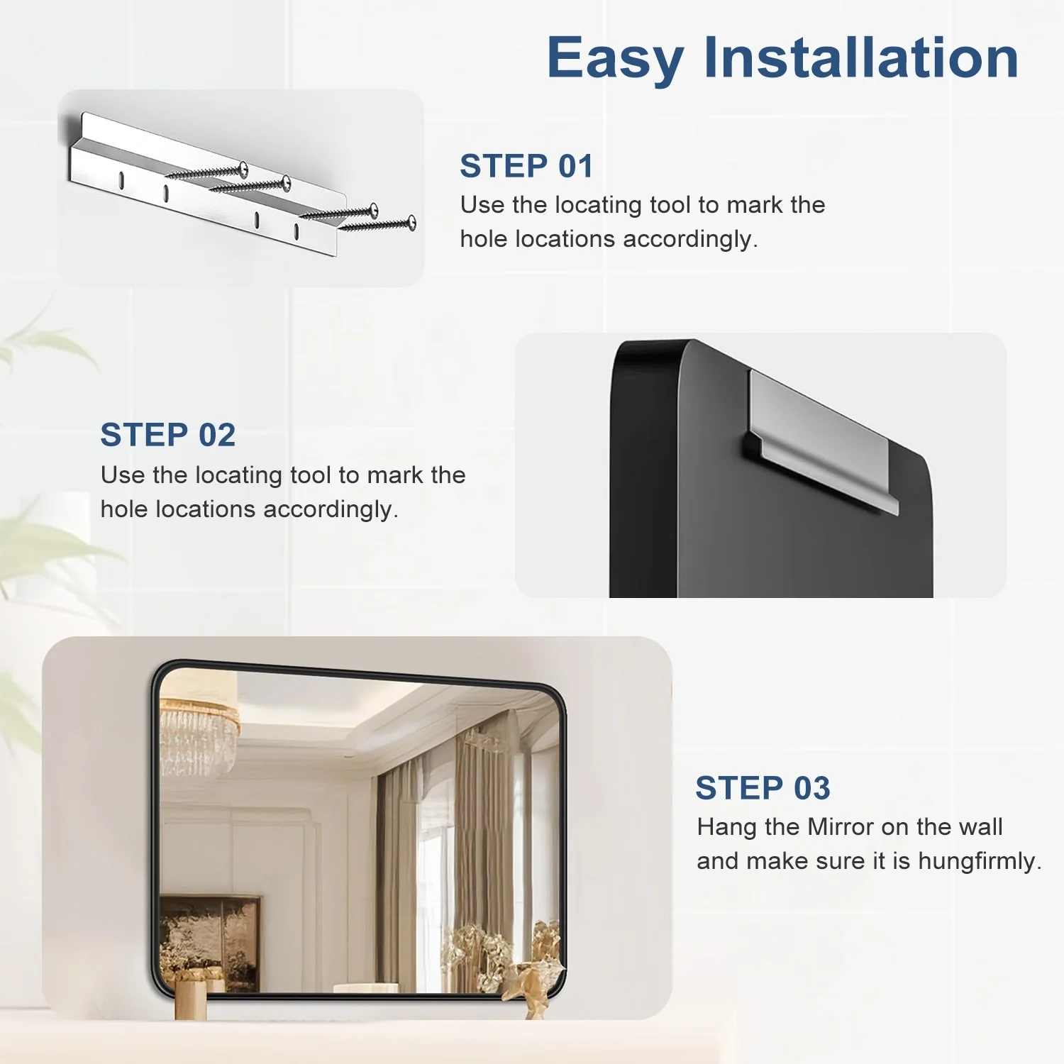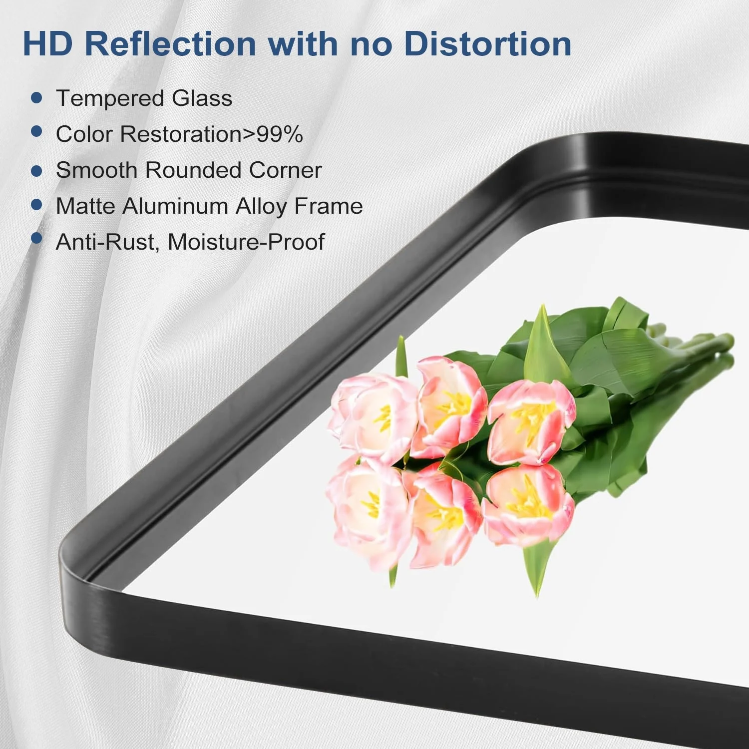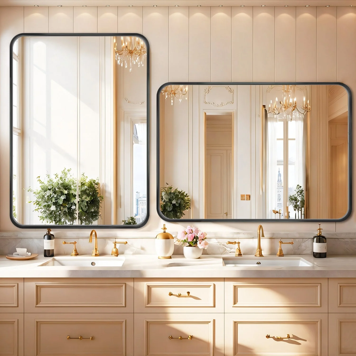 Black Aluminum Alloy Framed Vanity Rounded Rectangle Bathroom Mirrors for Over Sink Wall, Horizontally or Vertically Hanging