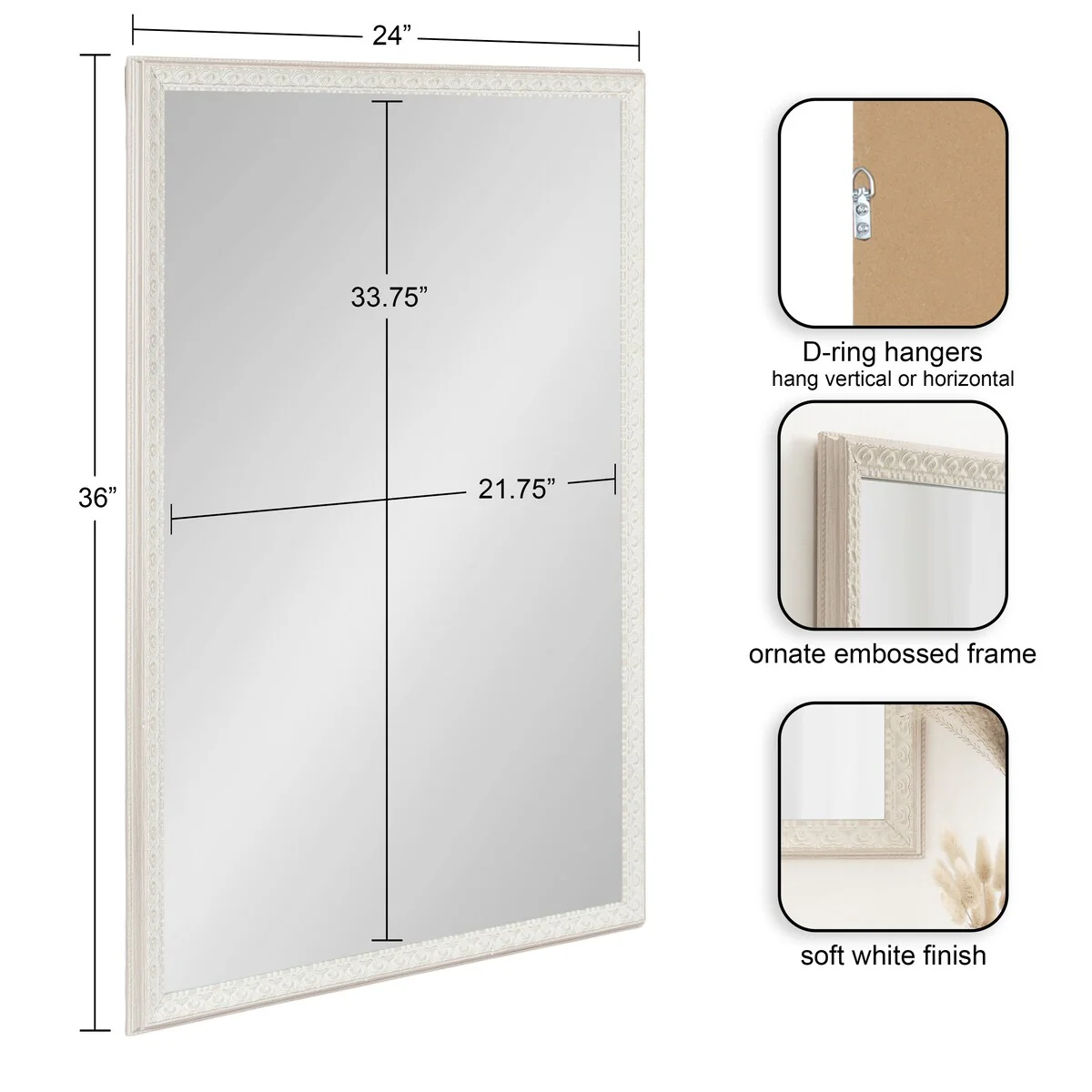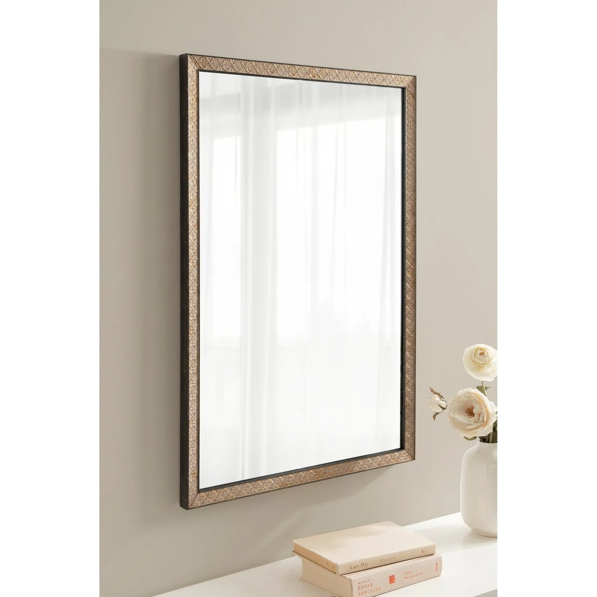 27-1/2in Rectangular Beveled Wall Mounted Mirror with Accents