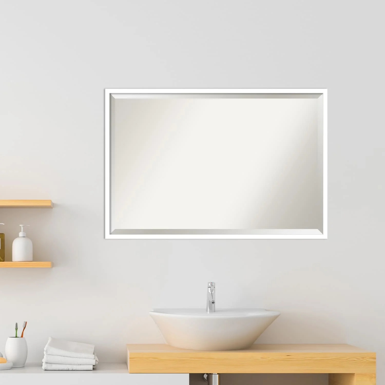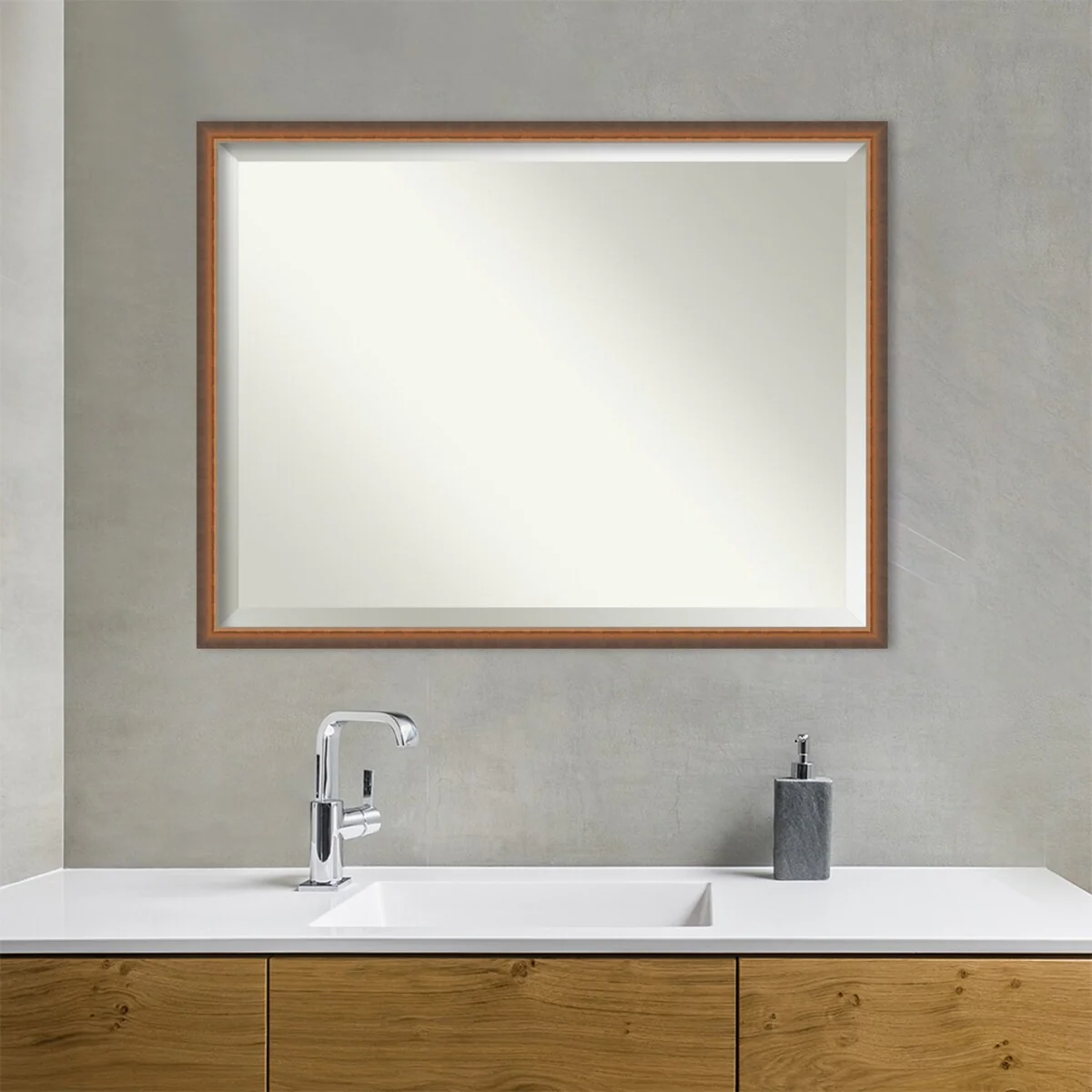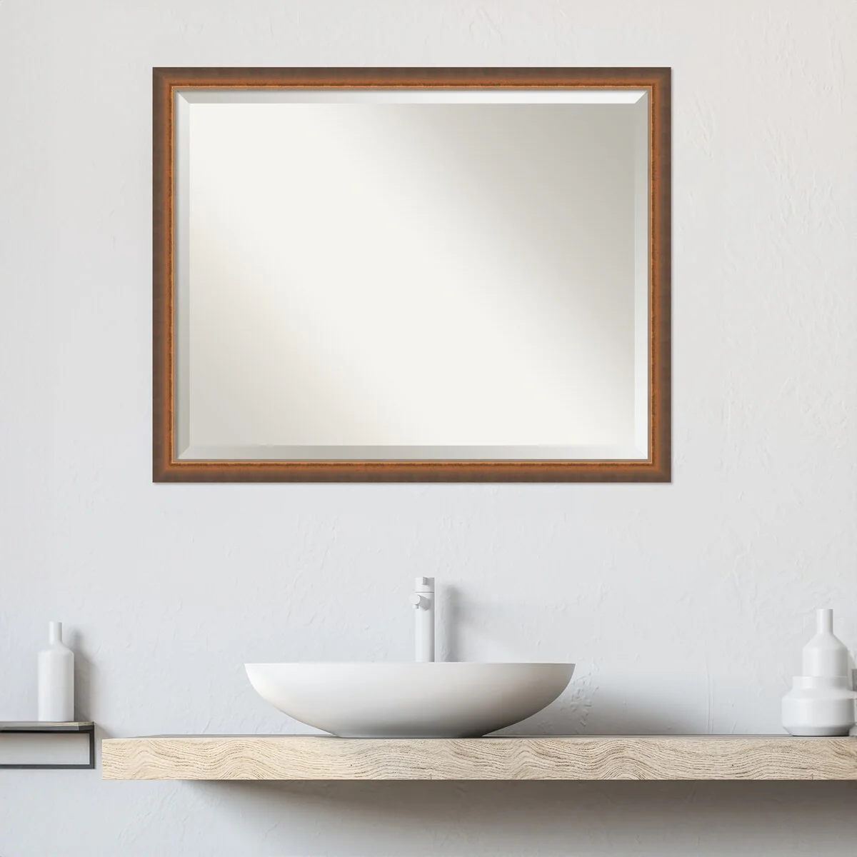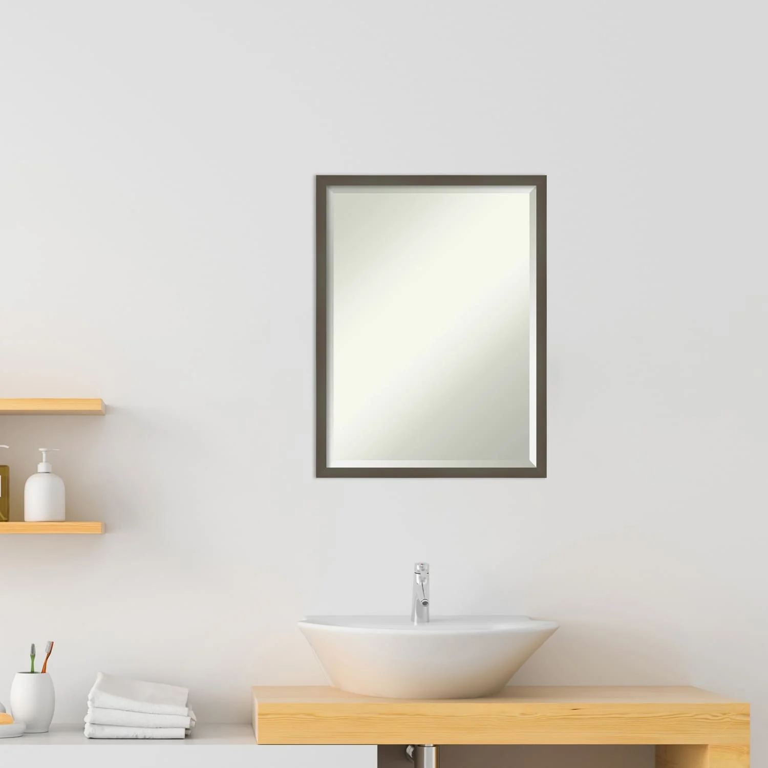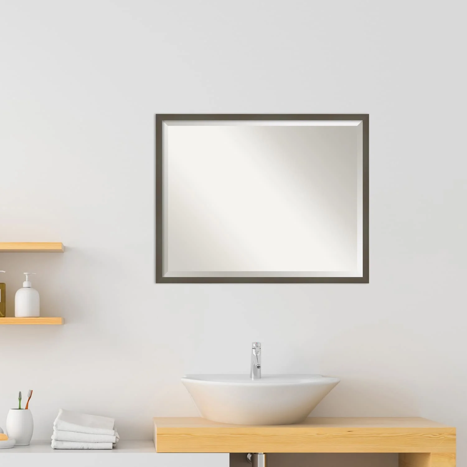 Beveled Wood Bathroom Wall Mirror - Svelte Frame
