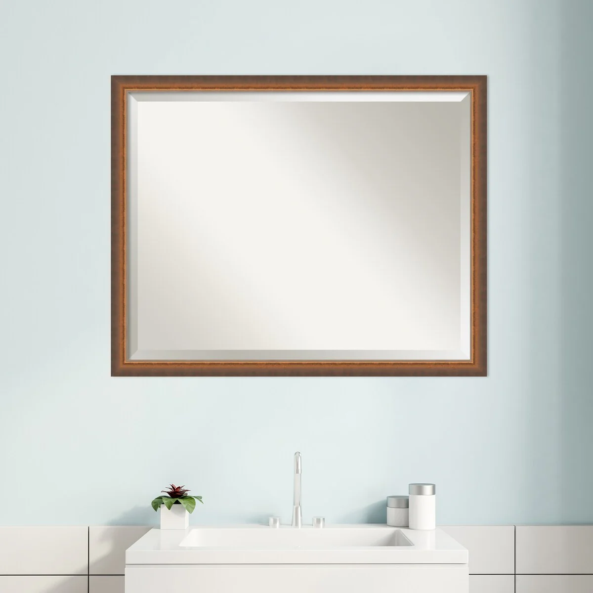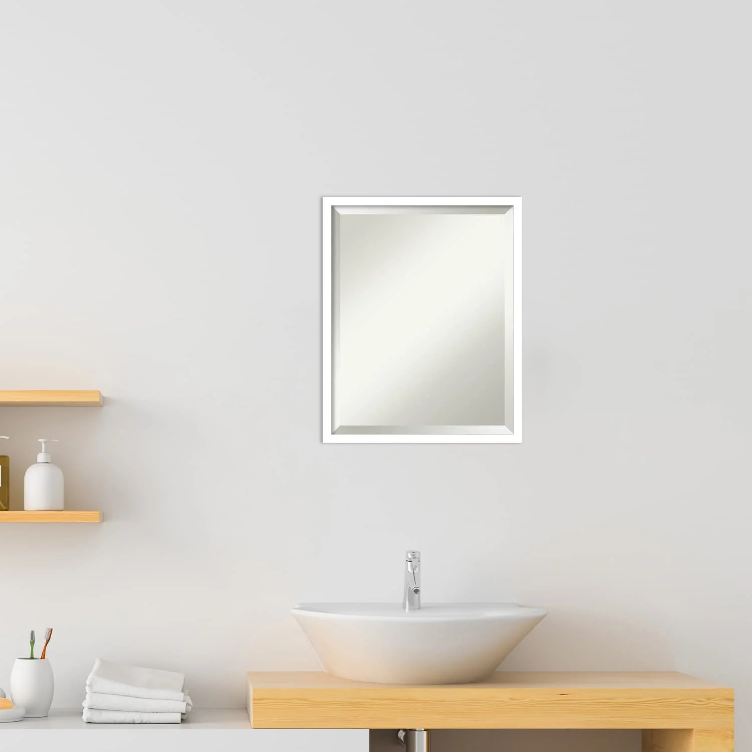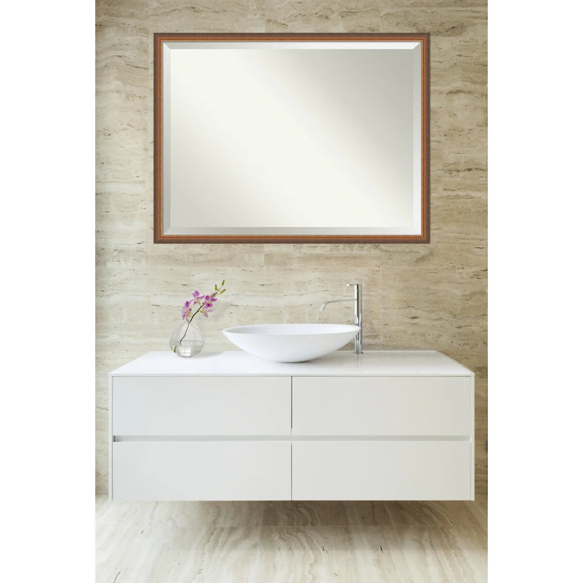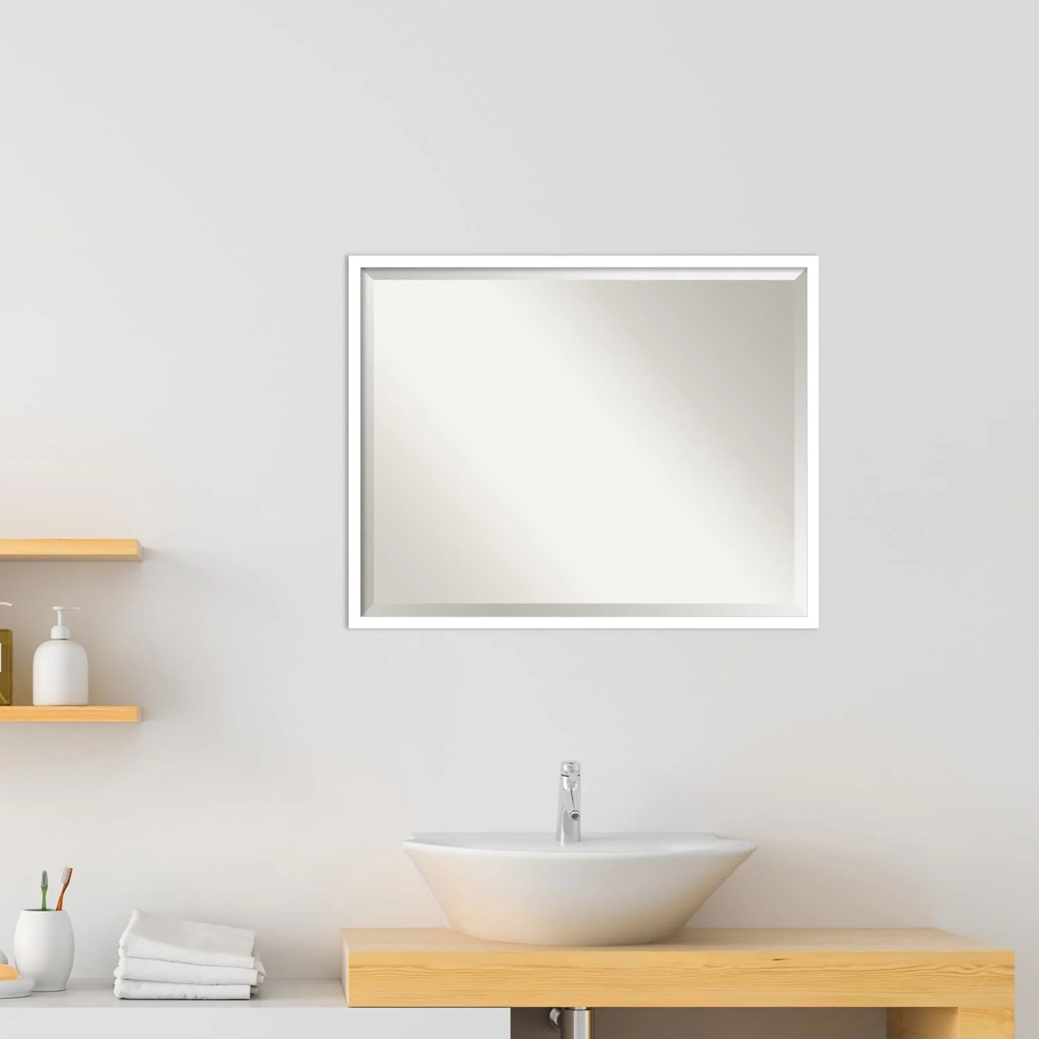 Beveled Wood Bathroom Wall Mirror - Svelte Frame