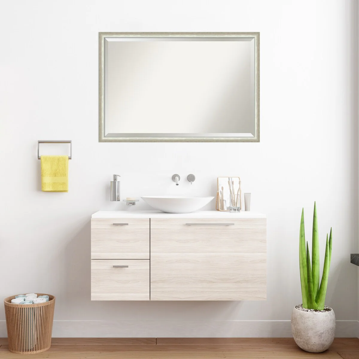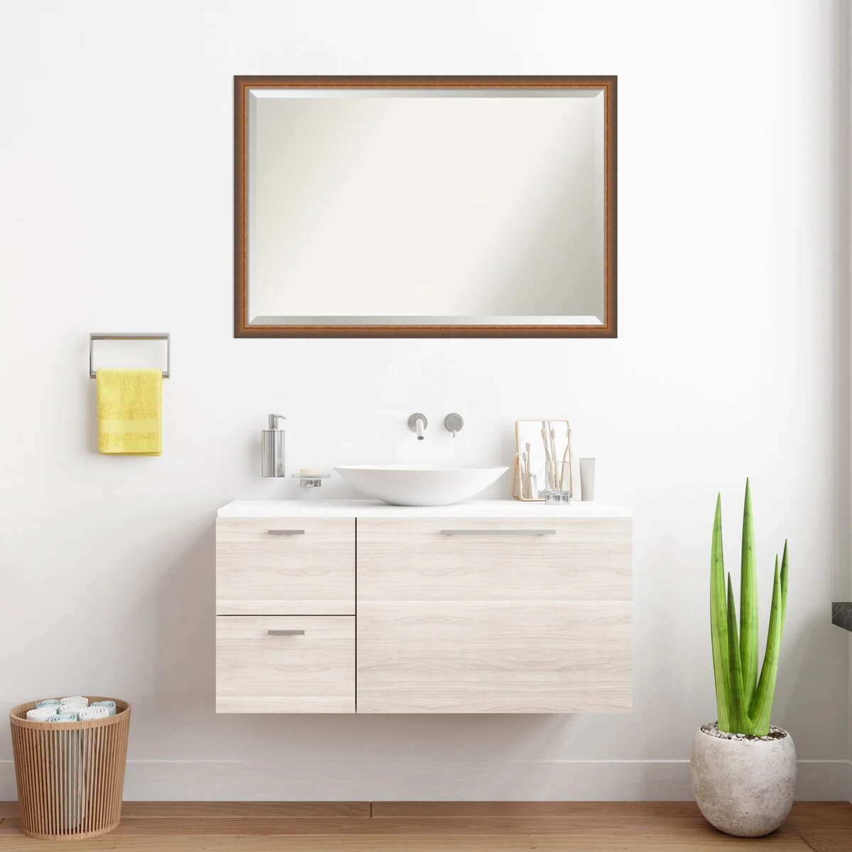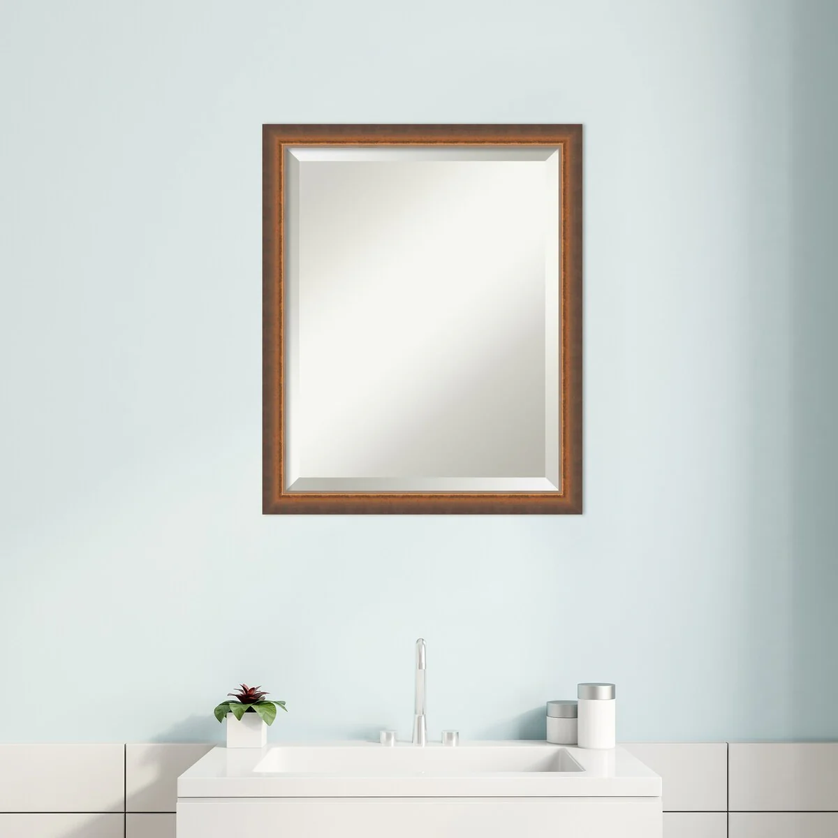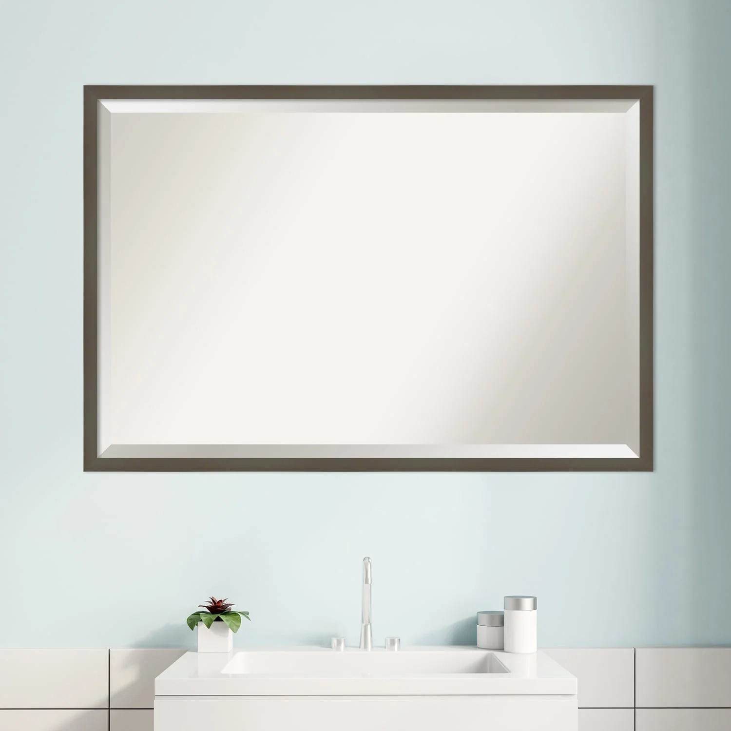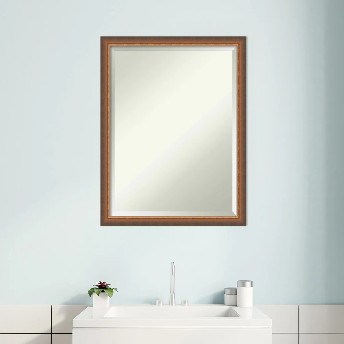 Beveled Wood Bathroom Wall Mirror - Svelte Frame