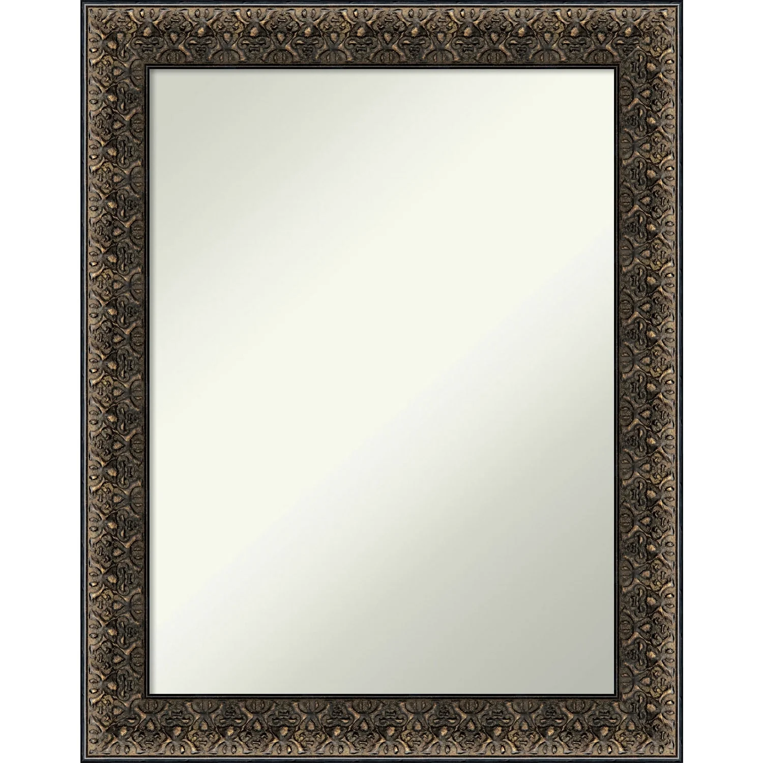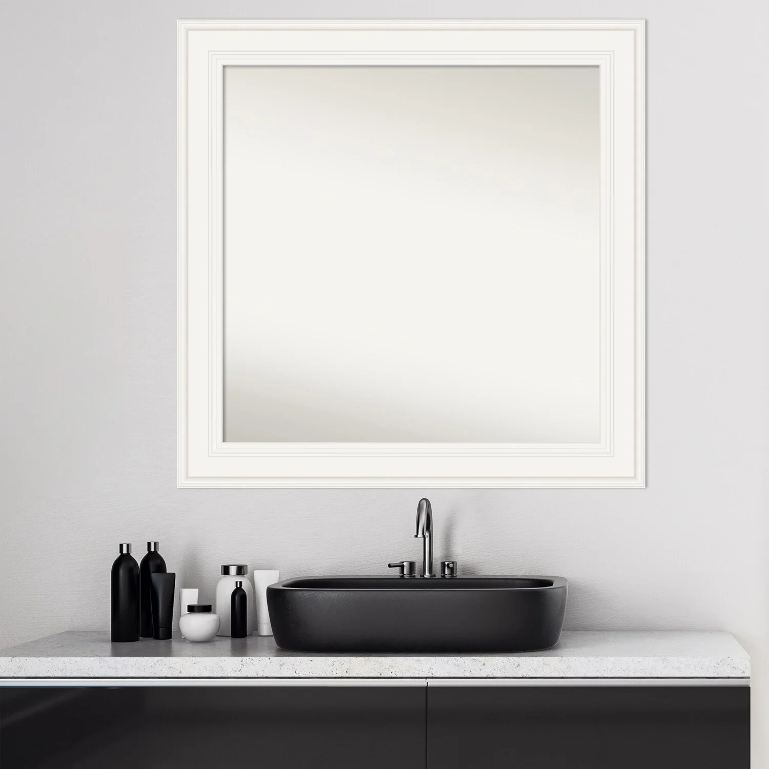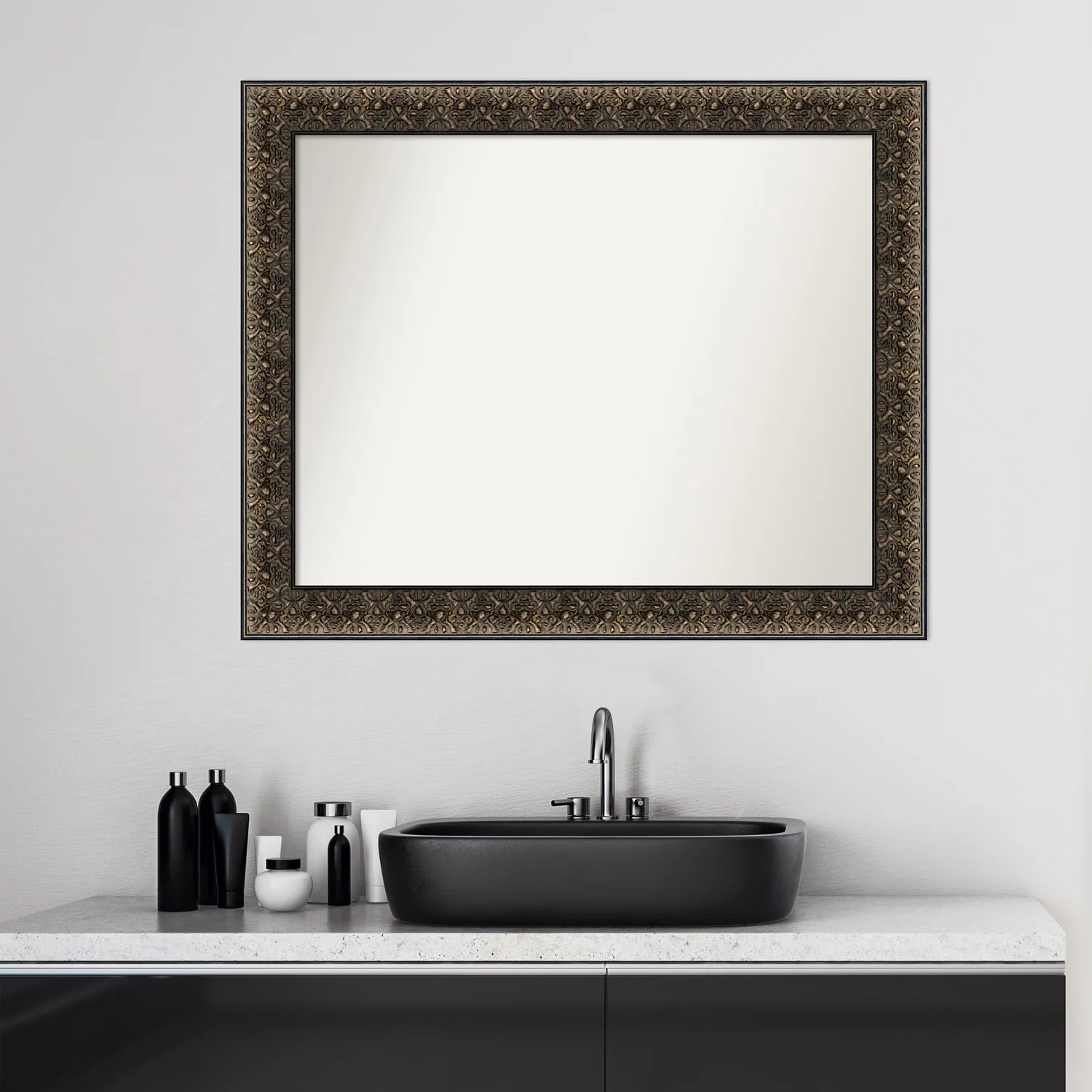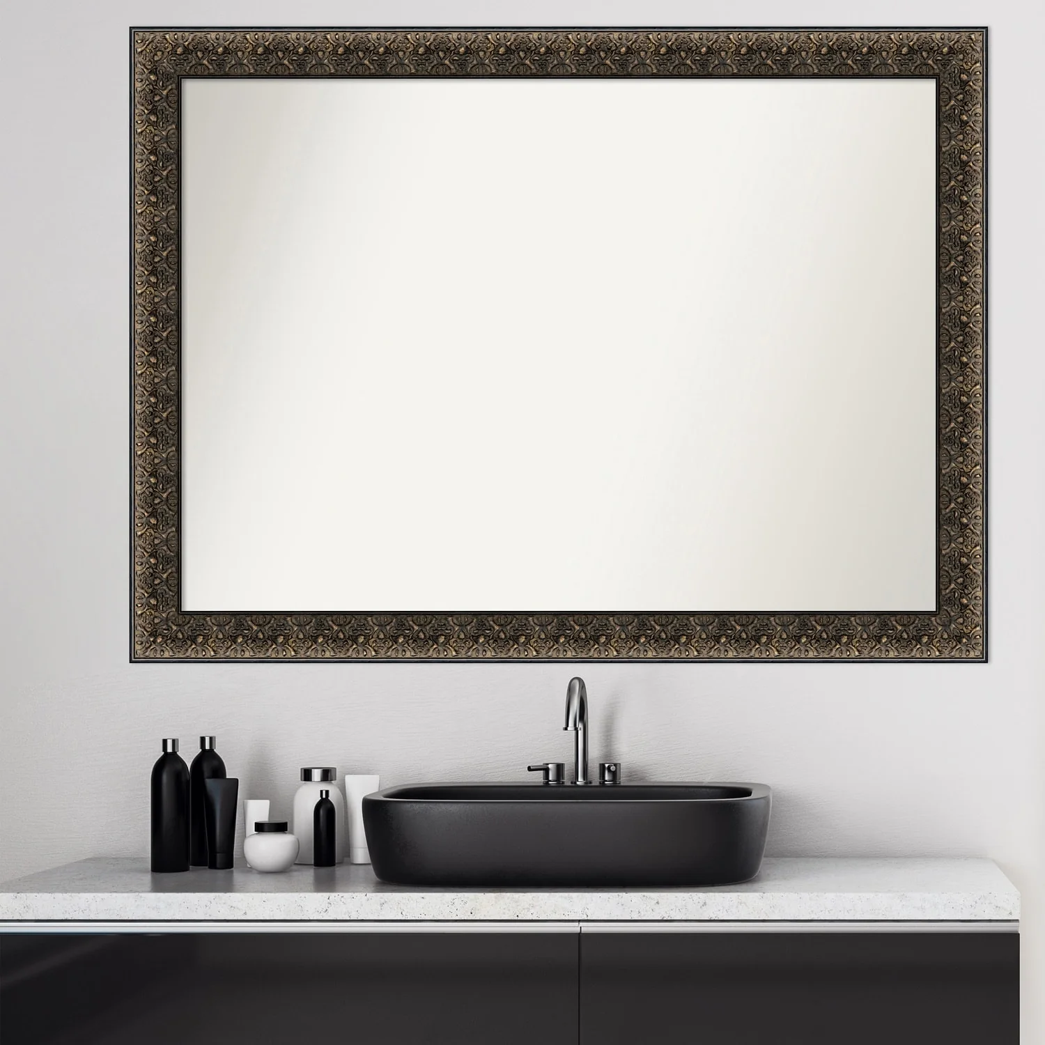 Non-Beveled Wood Bathroom Wall Mirror - Intaglio Embossed Black Frame