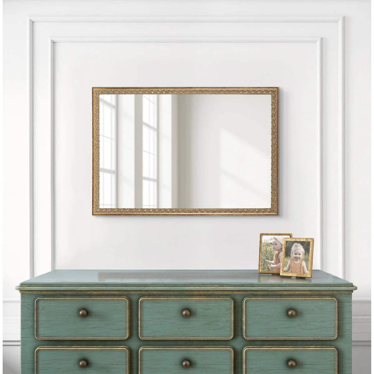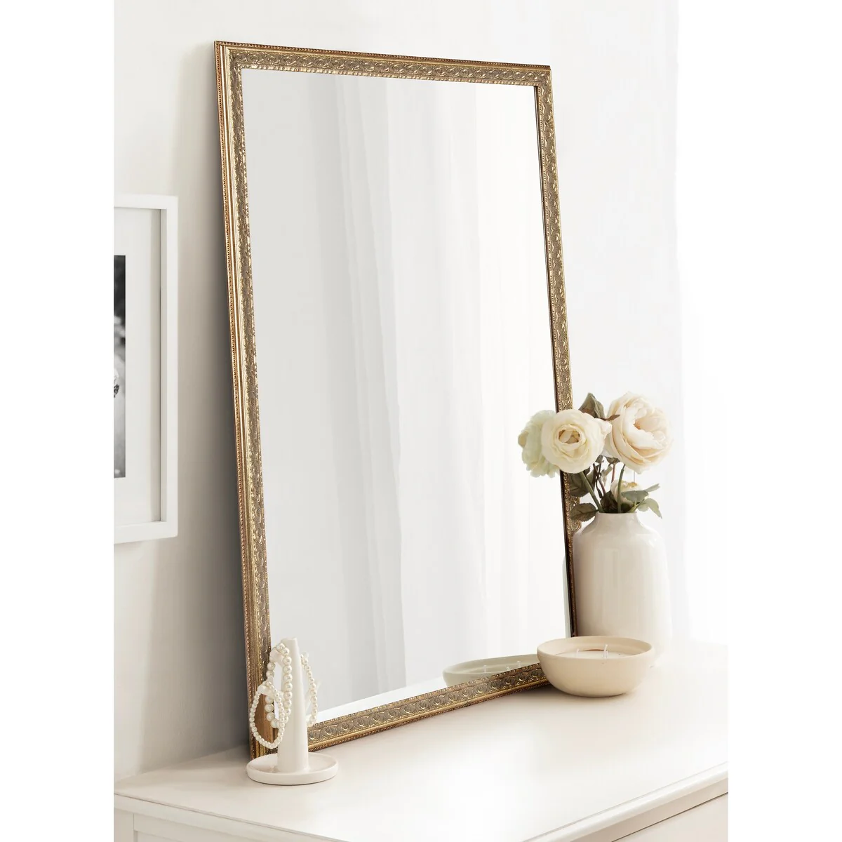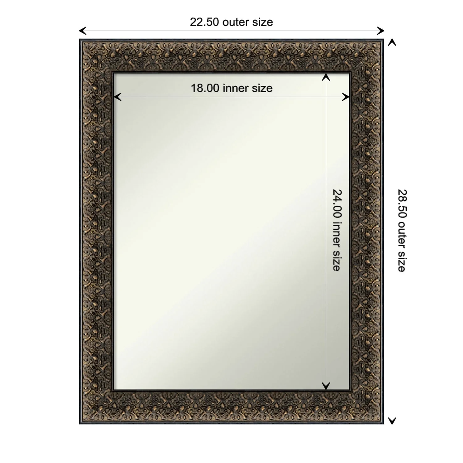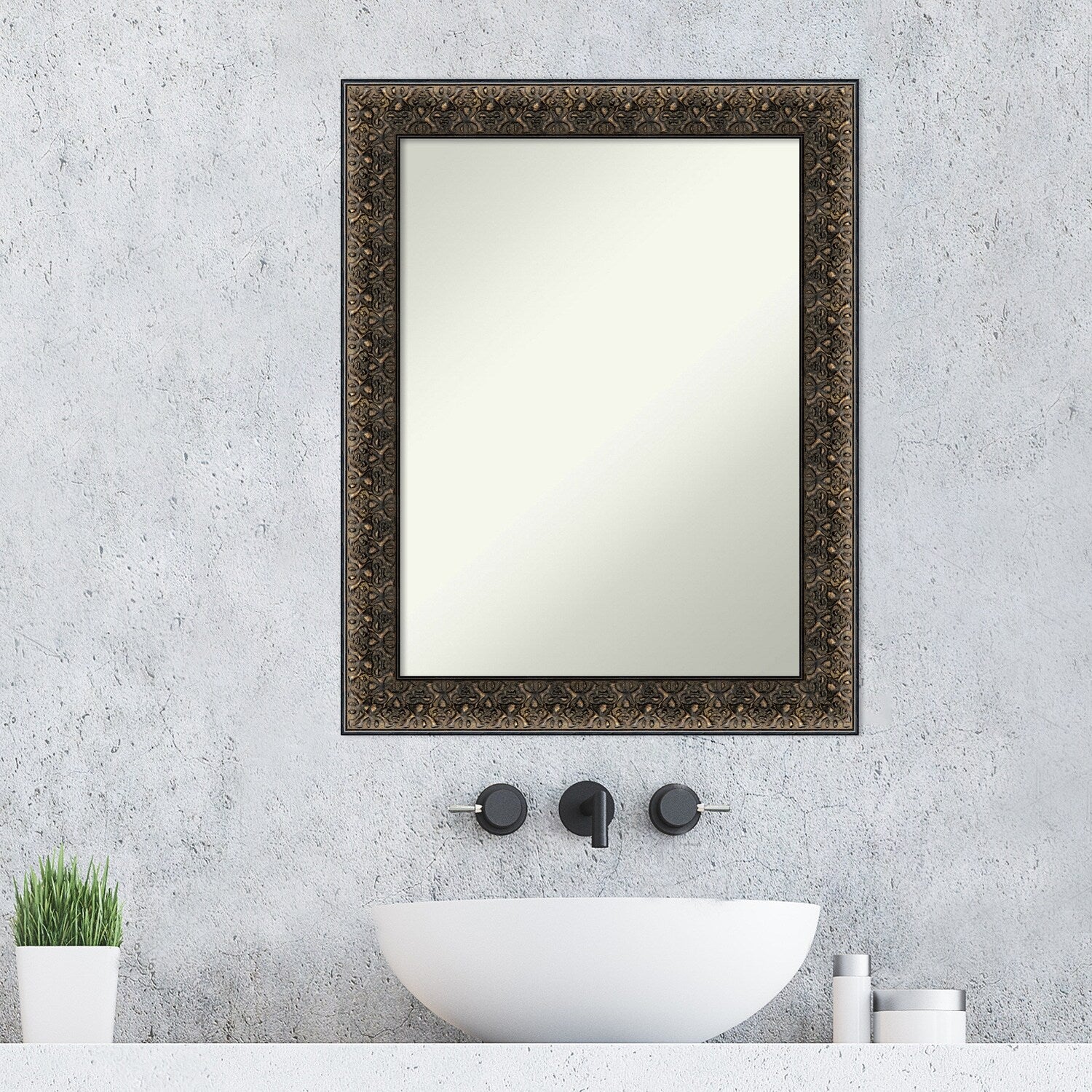 Non-Beveled Wood Bathroom Wall Mirror - Intaglio Embossed Black Frame
