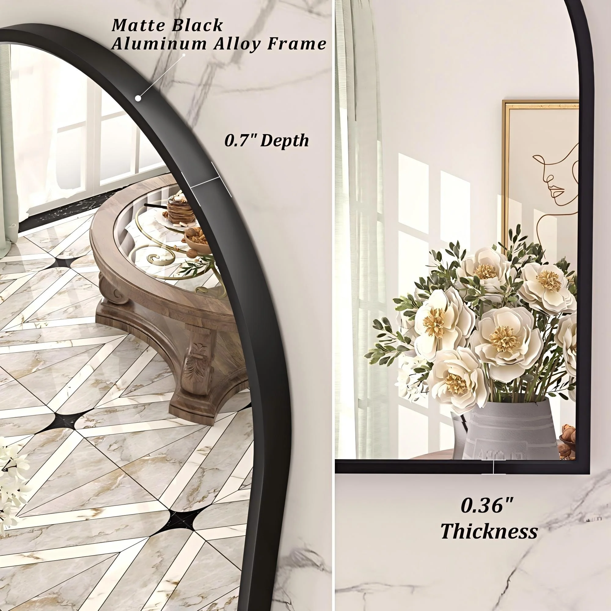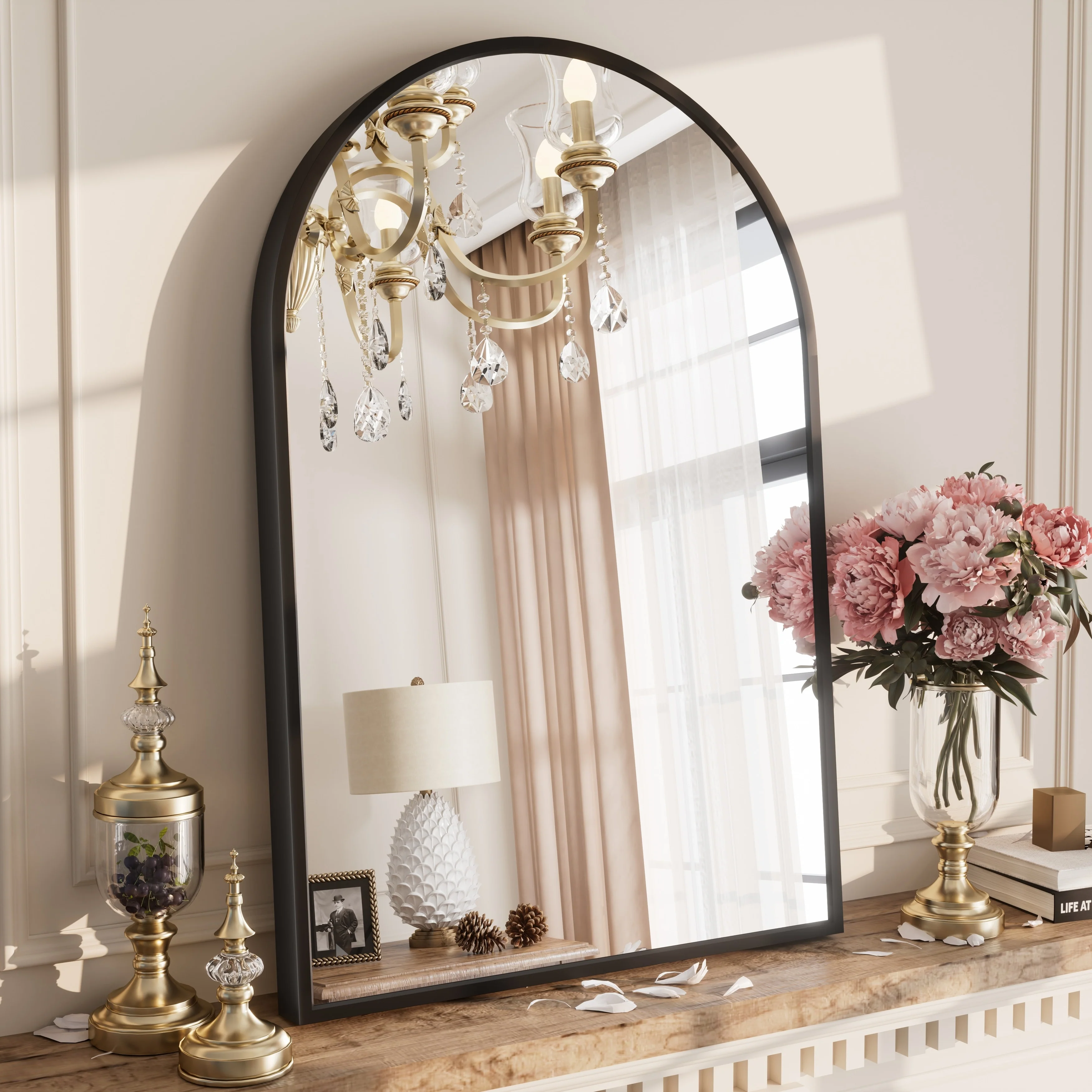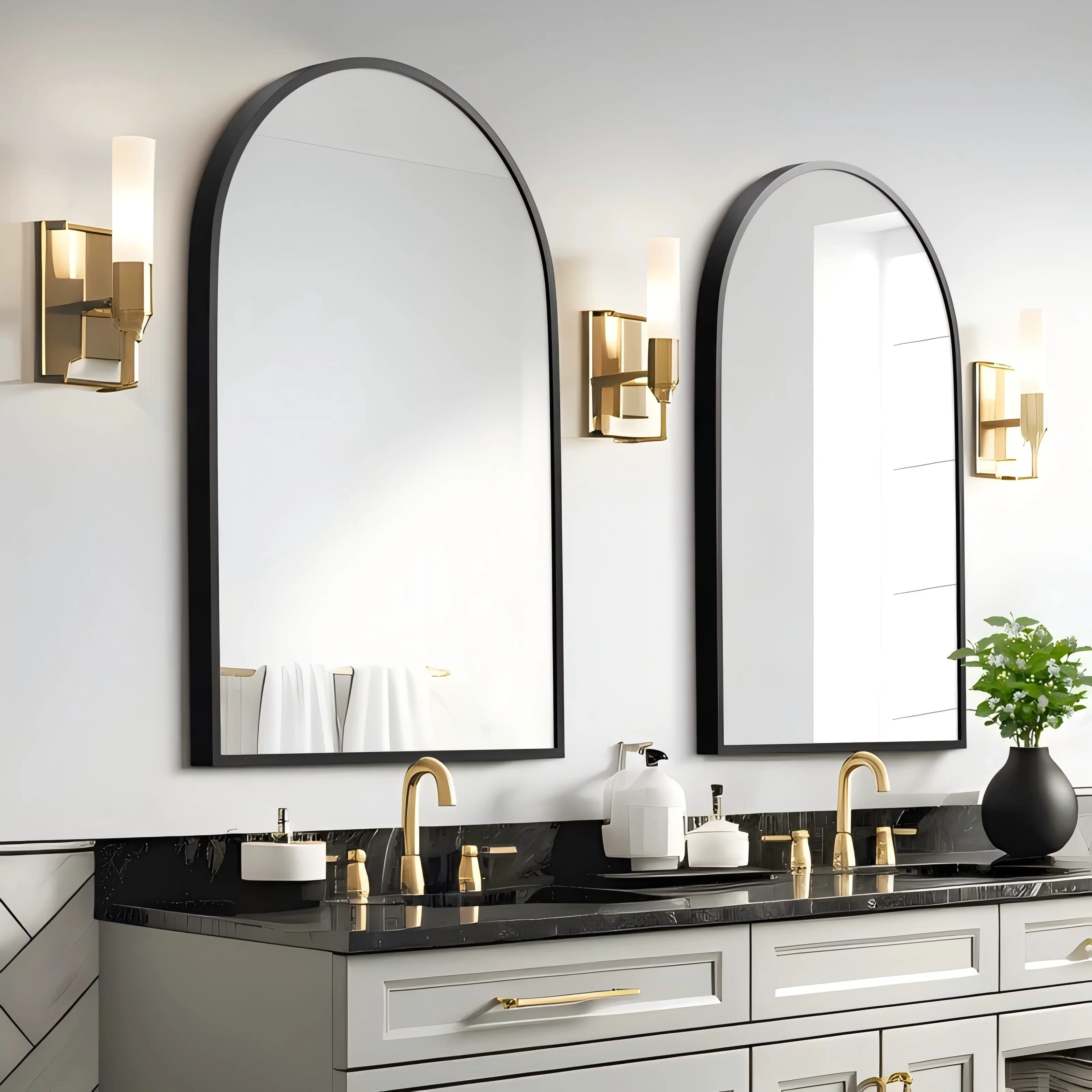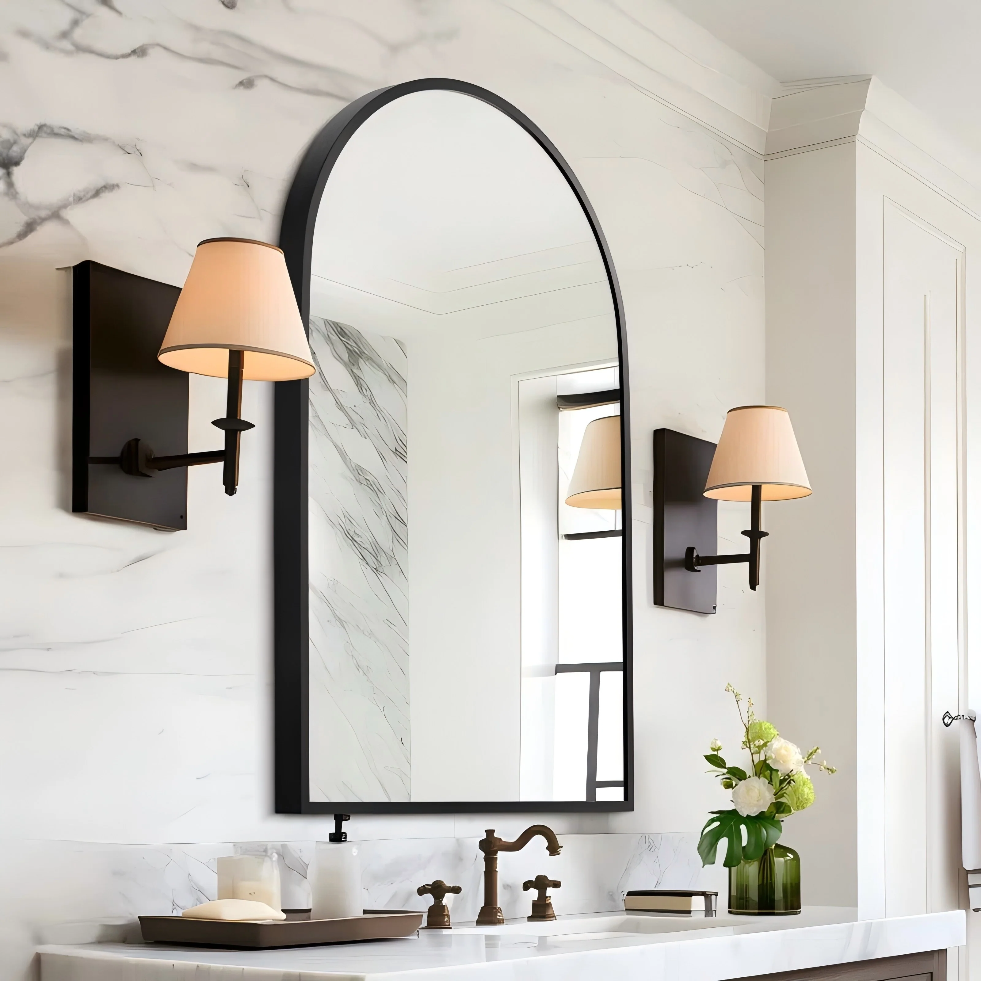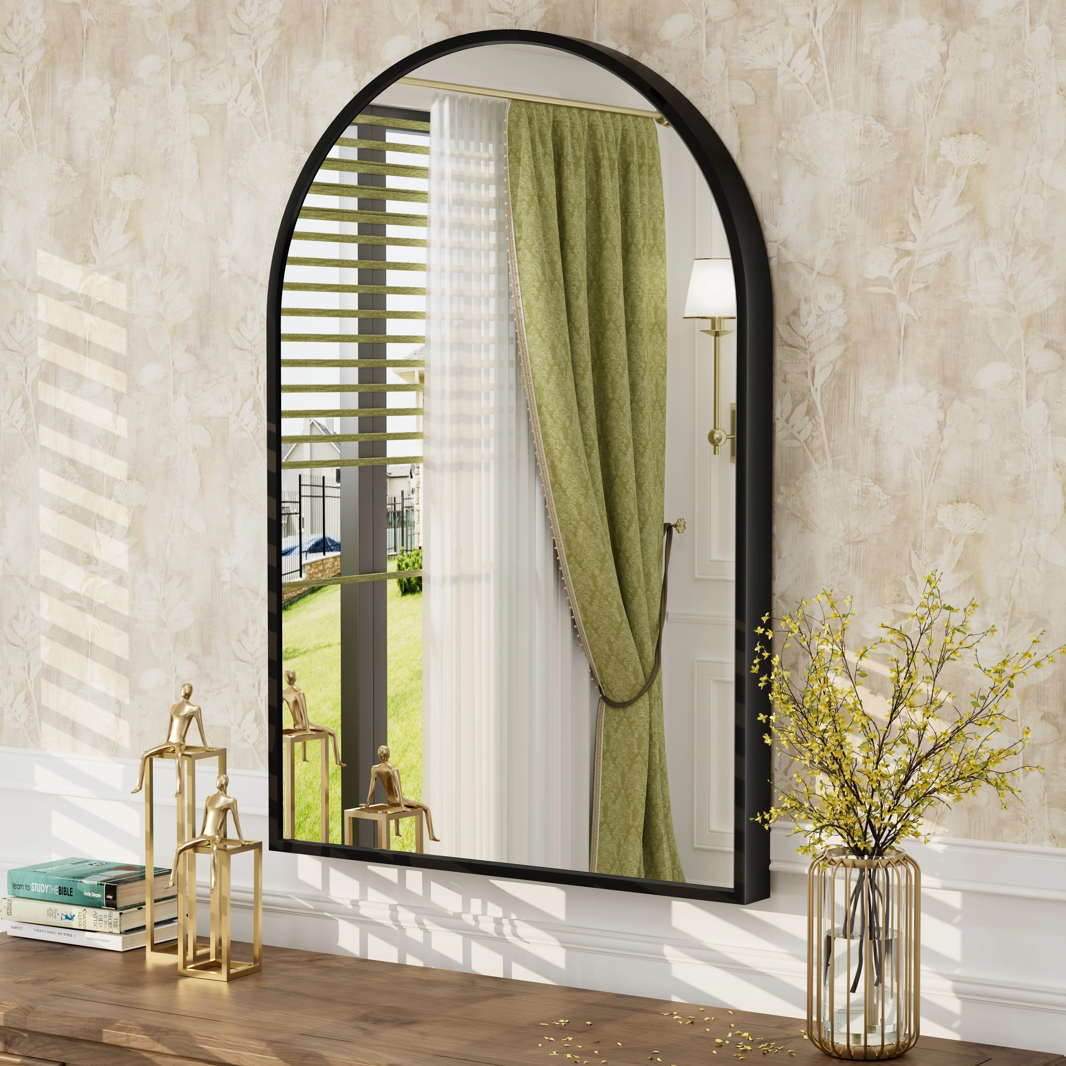 Apmir Arched Wall Mirror Black Metal Framed Bathroom Vanity Mirror