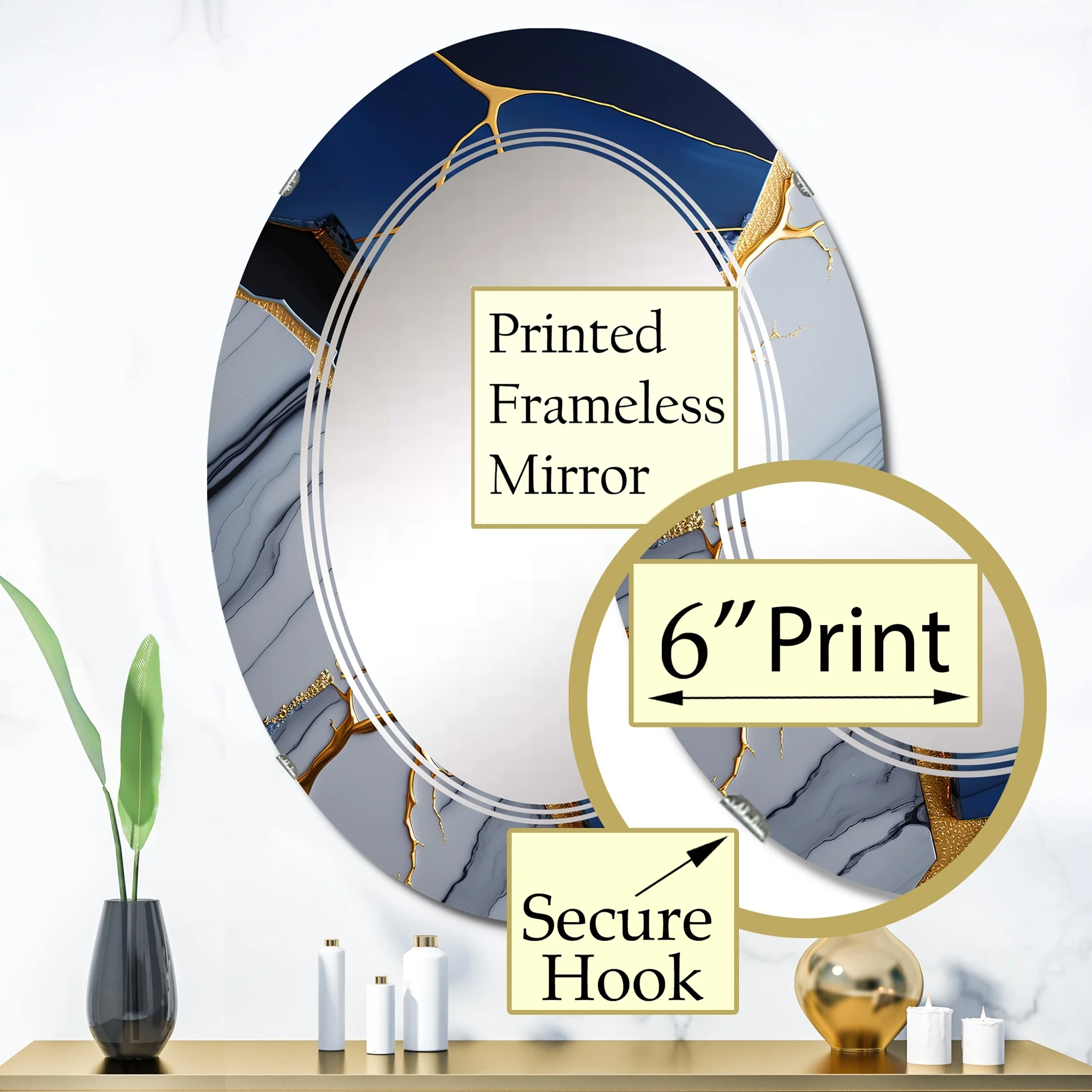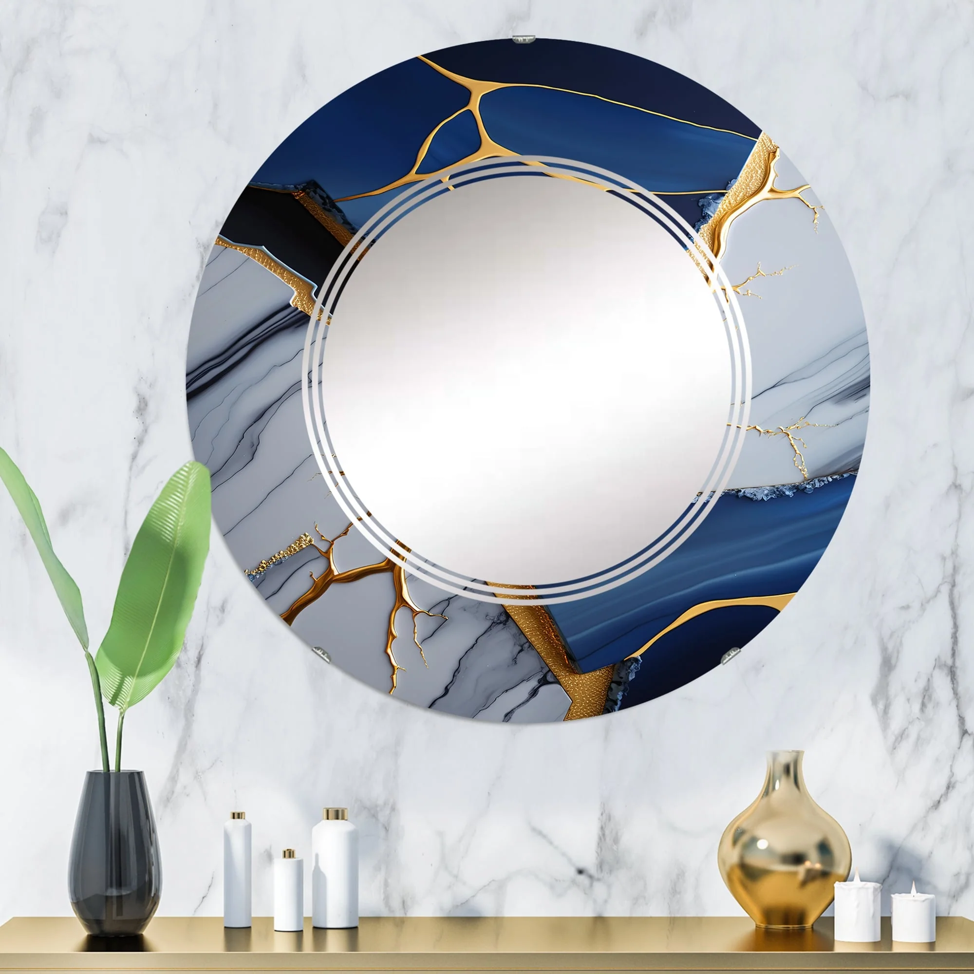 Designart 'Abstract Geode Blue I' Printed Abstract Marble Wall Mirror