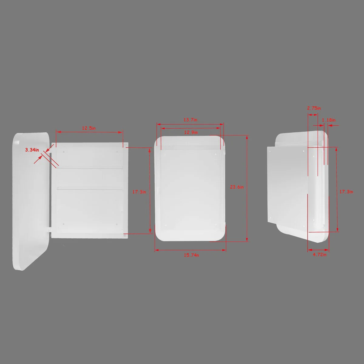 16 in. x 24 in. Black/ White Rectangular Metal Framed Medicine Cabinet with Mirror and Adjustable Shelves