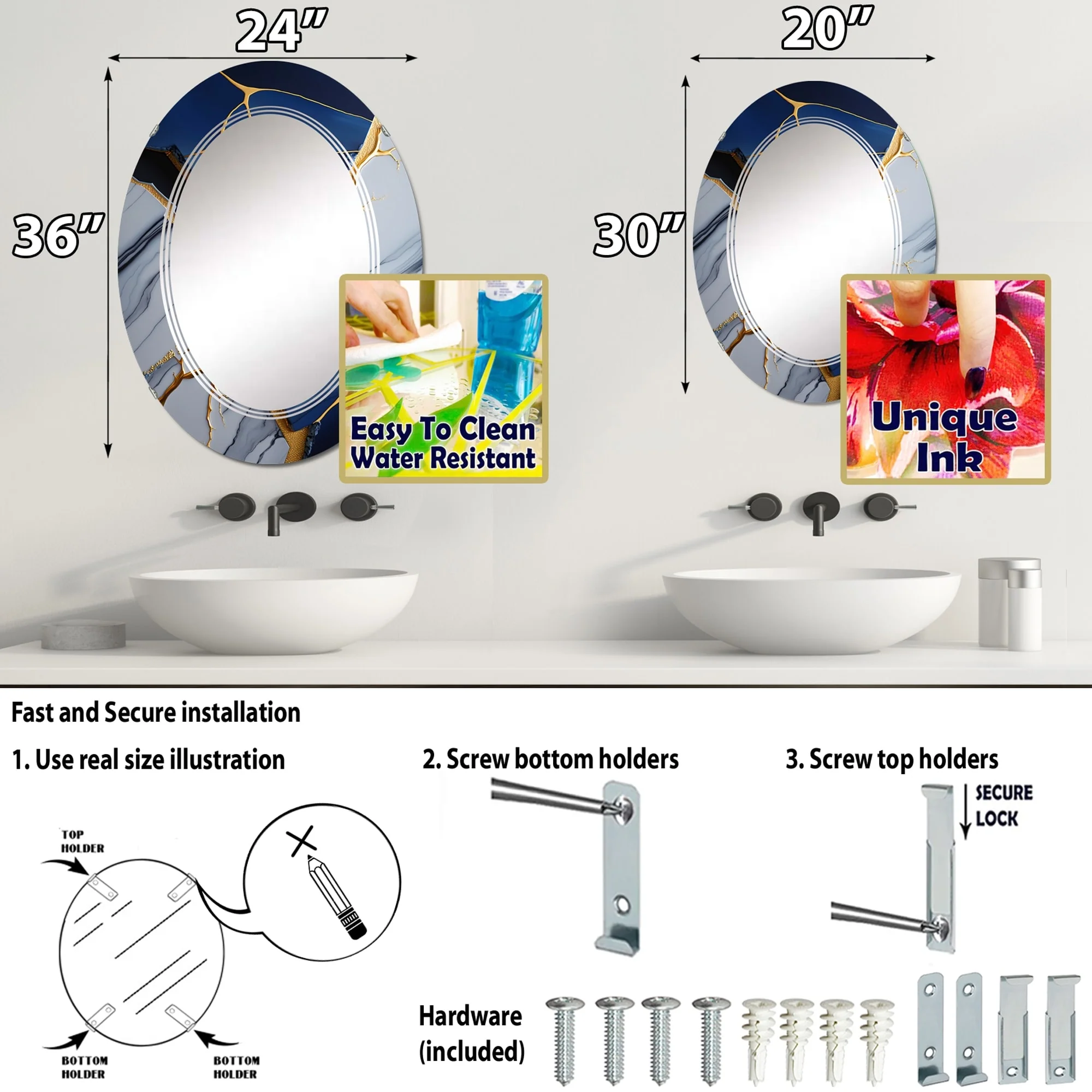 Vera 24 in. x 32 in. Modern Oval Framed Vanity Mirror