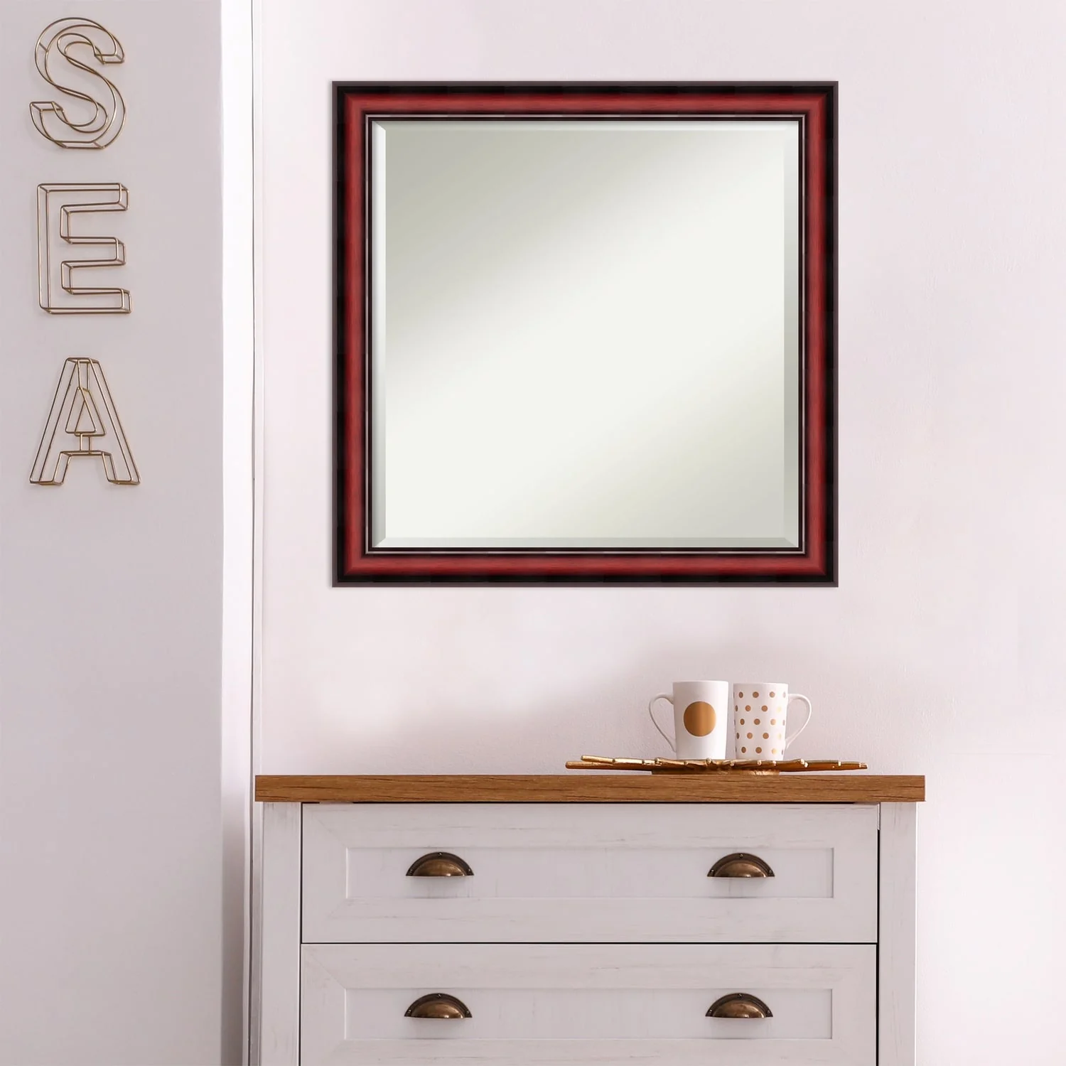 Beveled Wood Wall Mirror - Rubino Cherry Scoop Frame