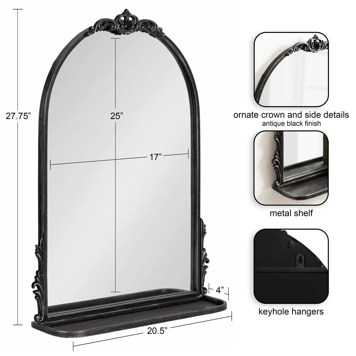 Kate and Laurel Myrcelle Arched Wall Mirror with Shelf