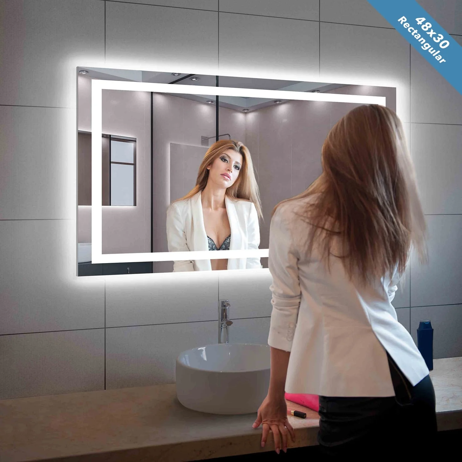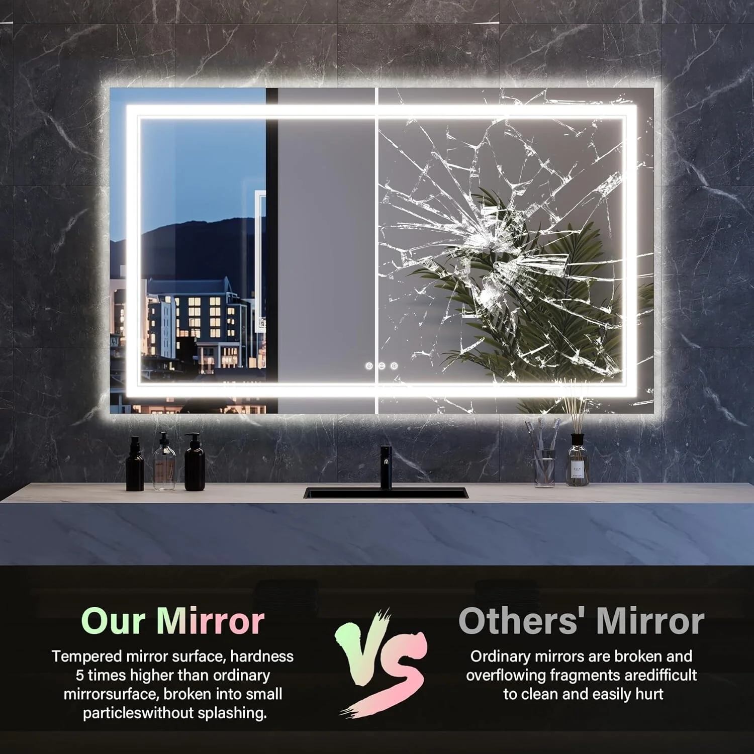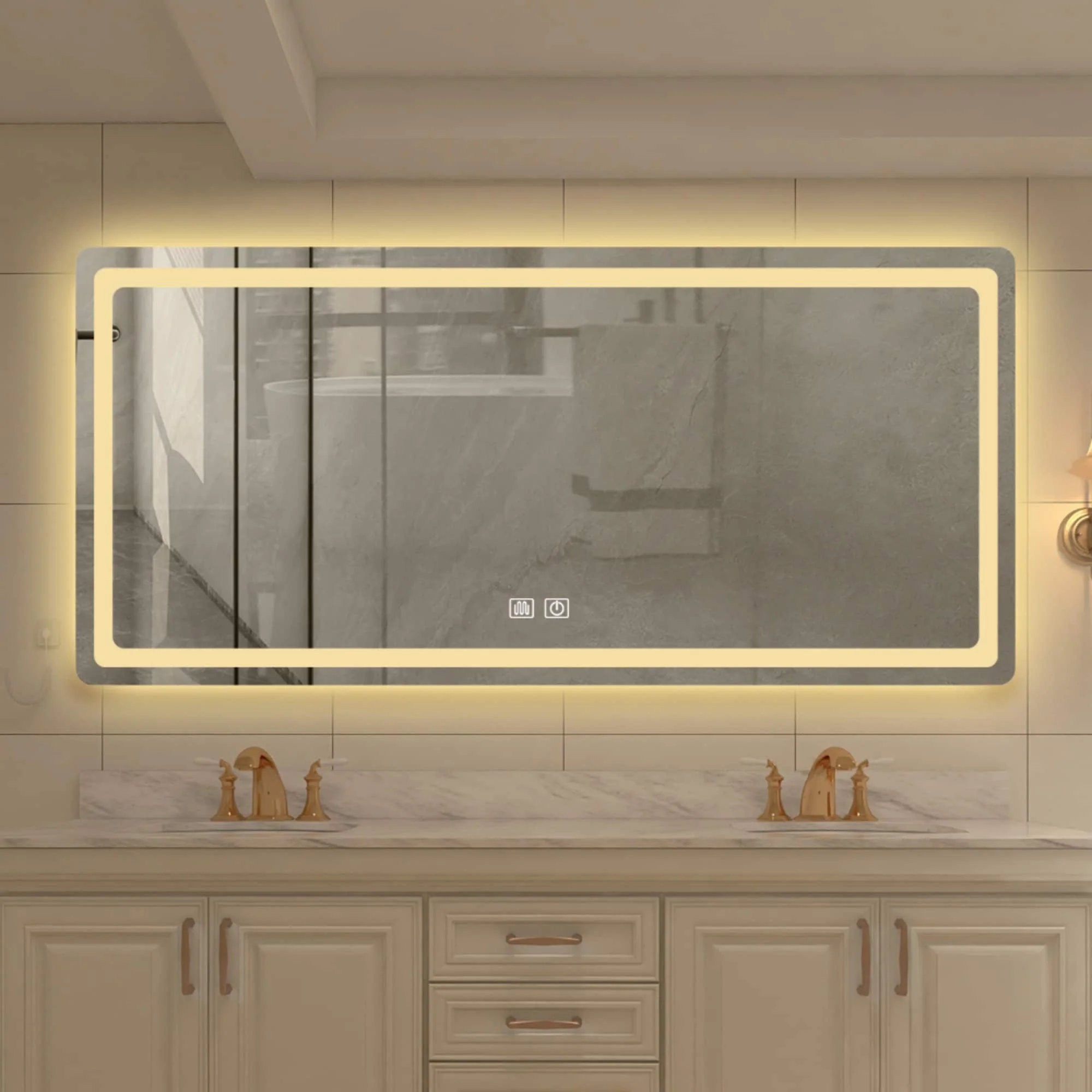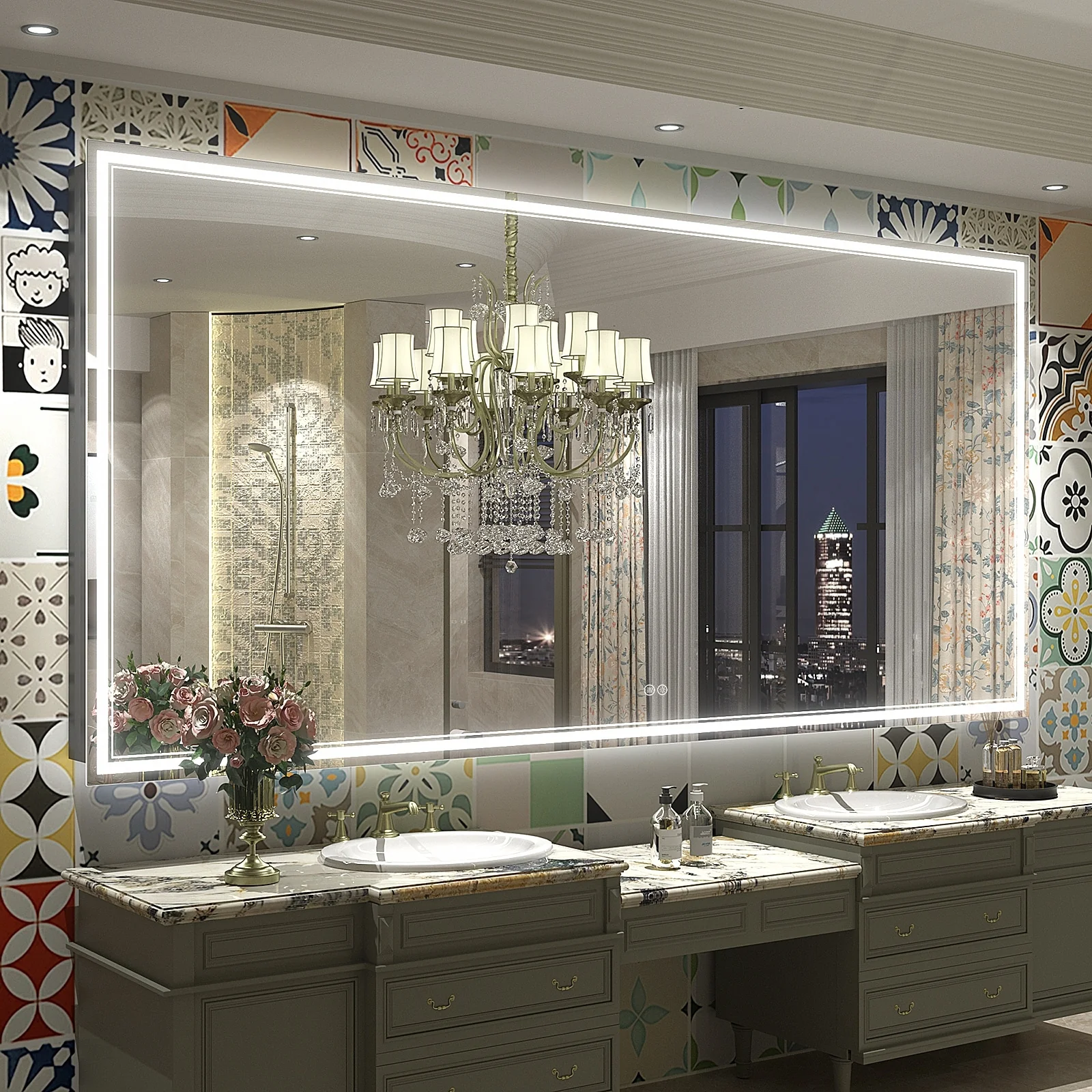 LED Bathroom Mirror with Lights,Bathroom Wall with 3 Colors Dimmable - 60"L x 36"W